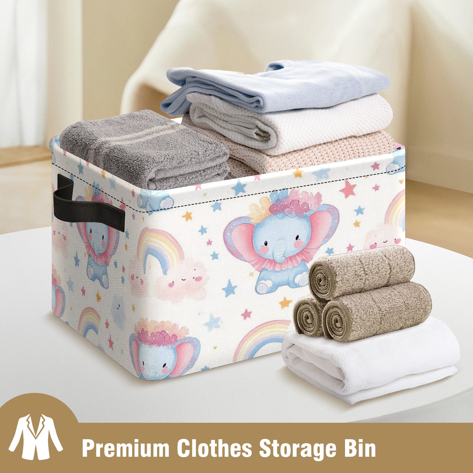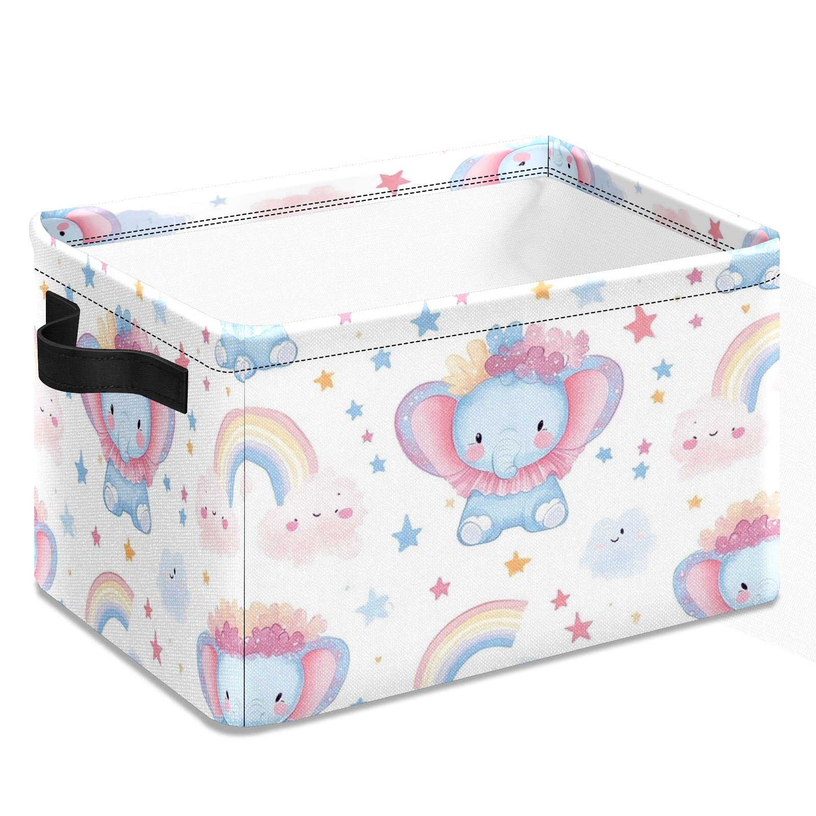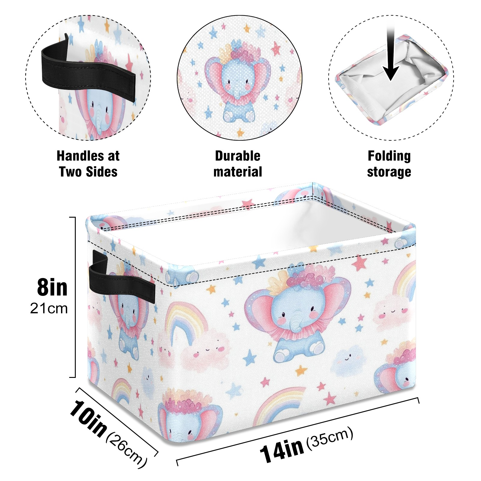 Foldable and Stackable Fabric Storage Basket for Home Organization with Handles, Decorative Closet Bins for Shelves and Laundry Storage( Cute Baby Elephant)