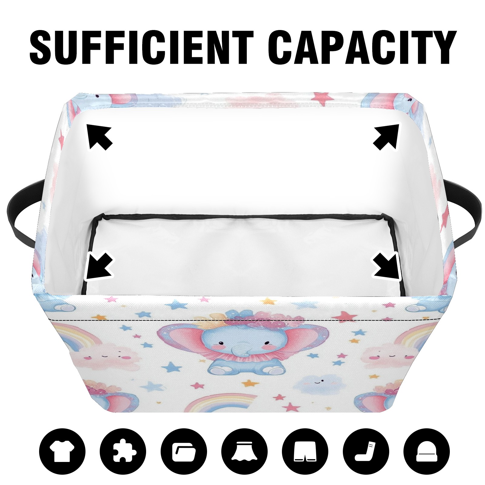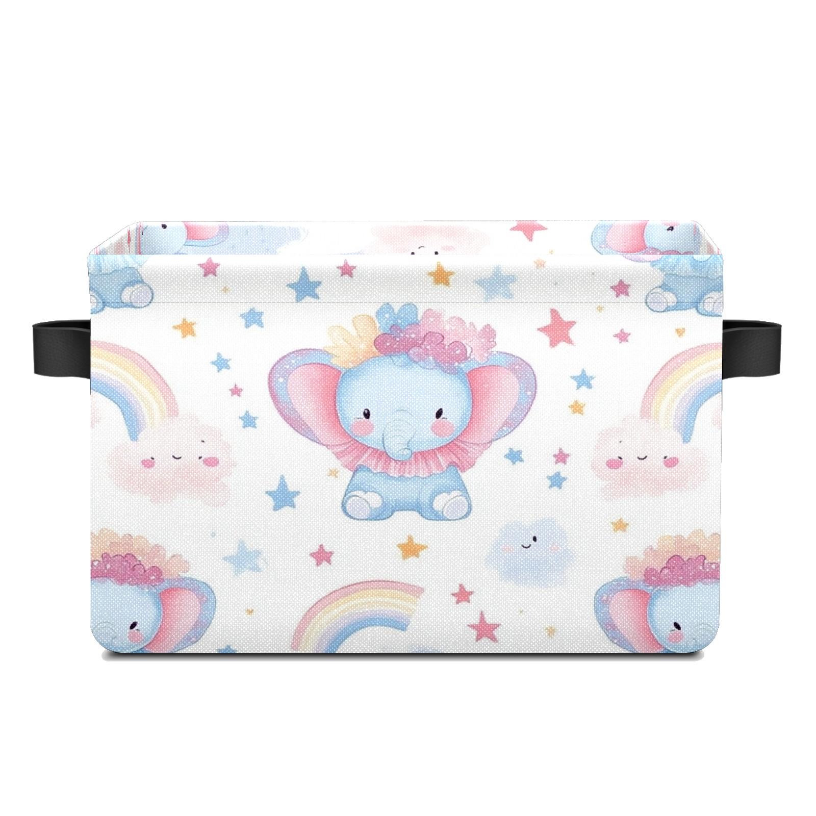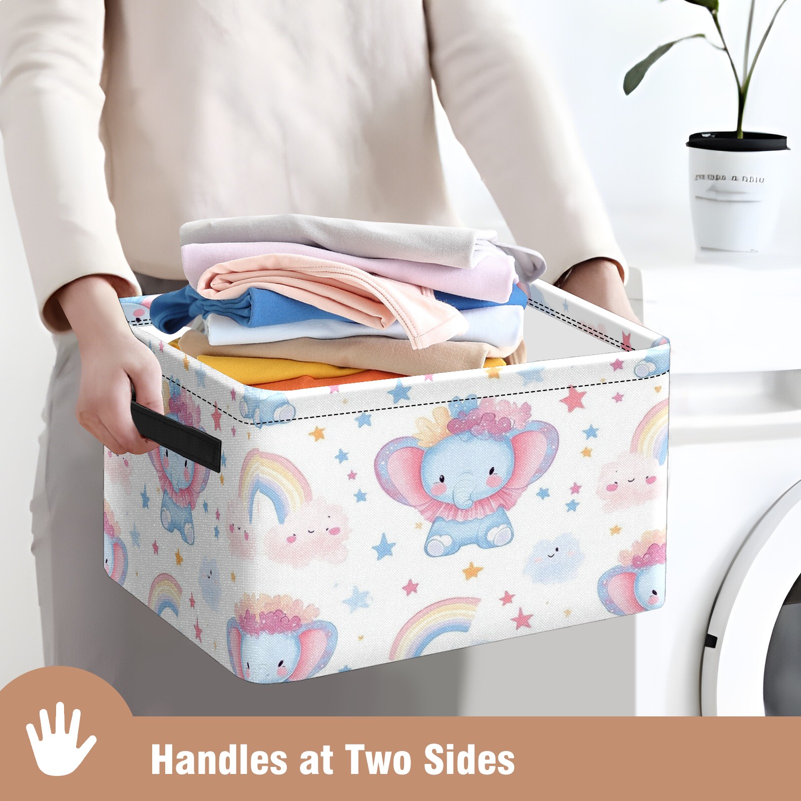 Foldable and Stackable Fabric Storage Basket for Home Organization with Handles, Decorative Closet Bins for Shelves and Laundry Storage( Cute Baby Elephant)