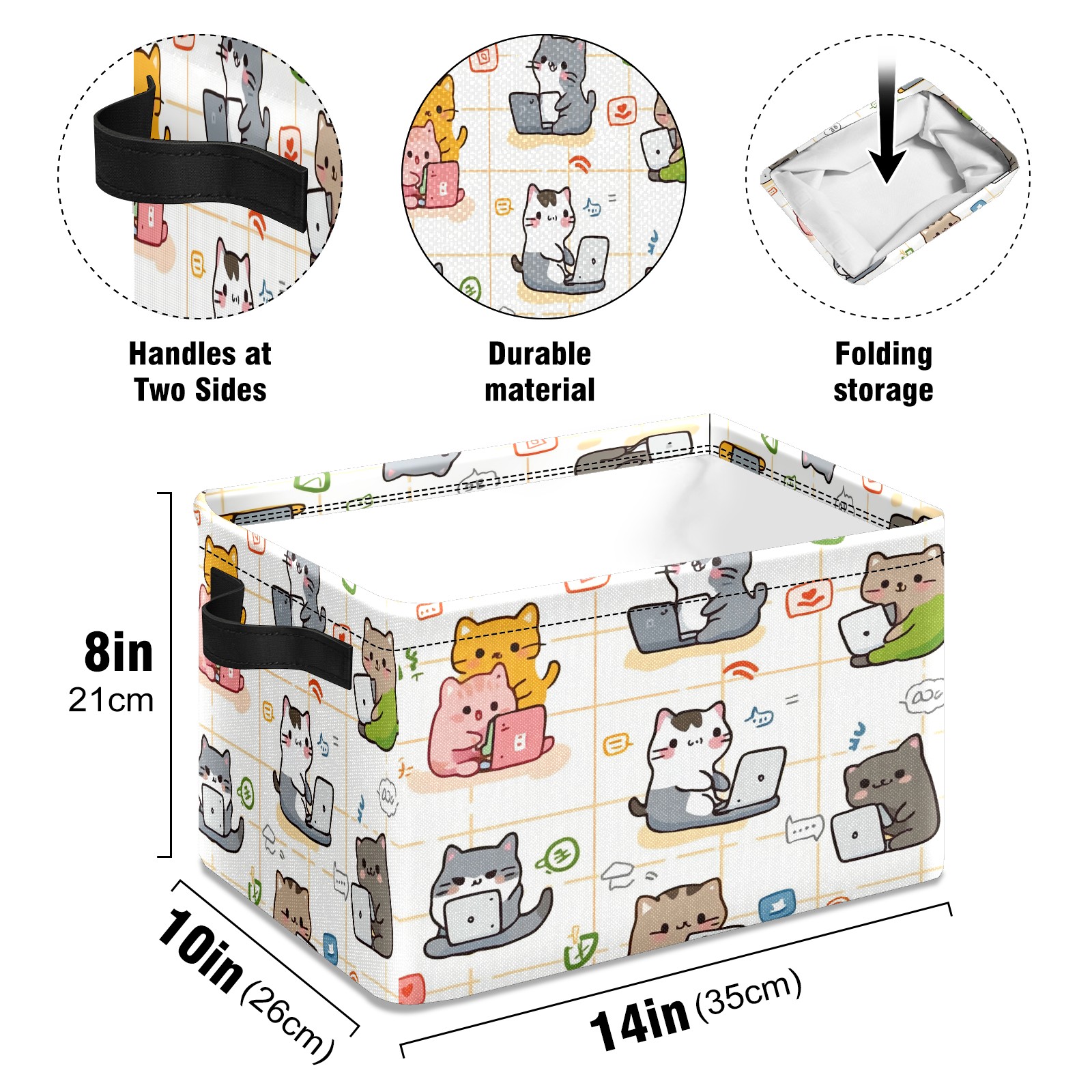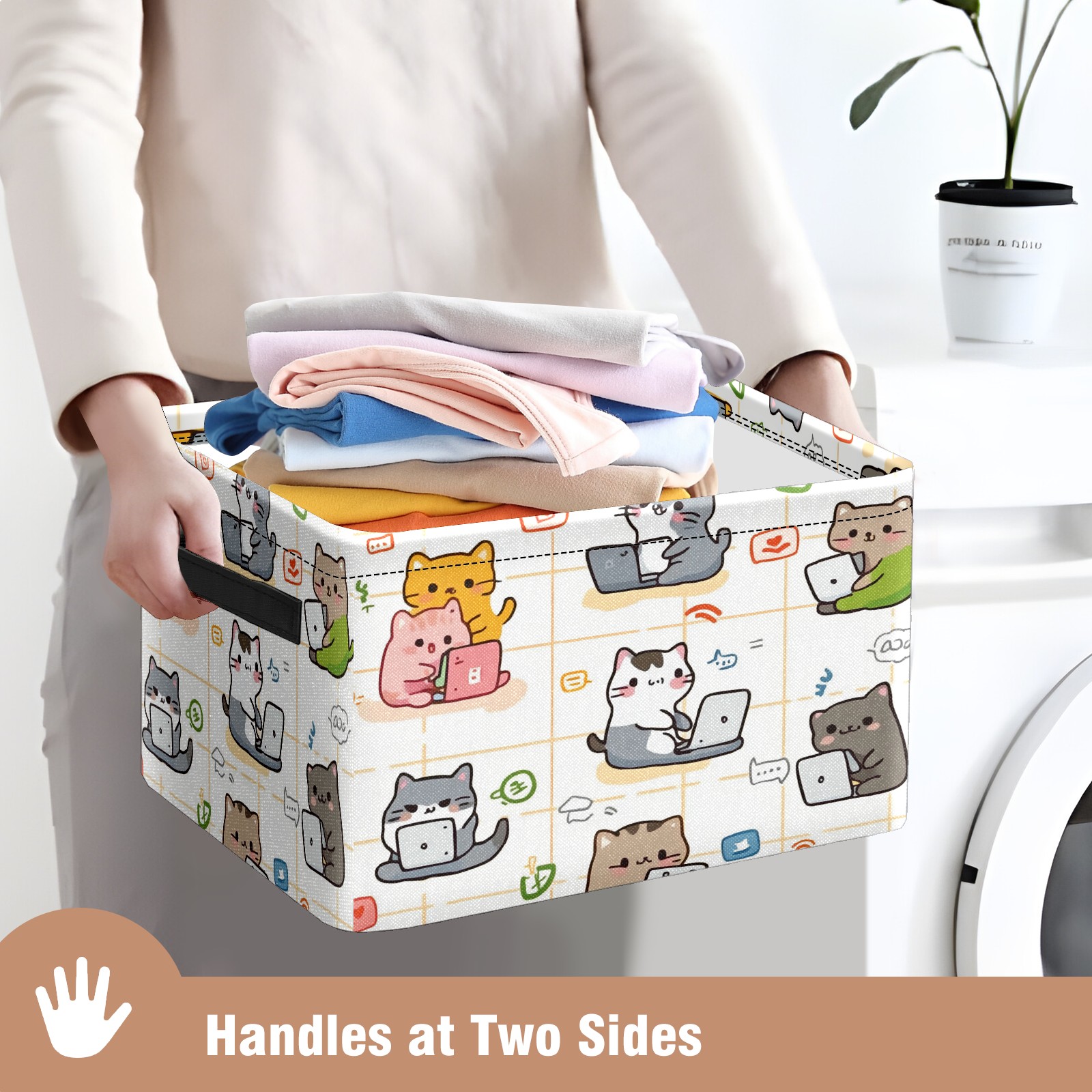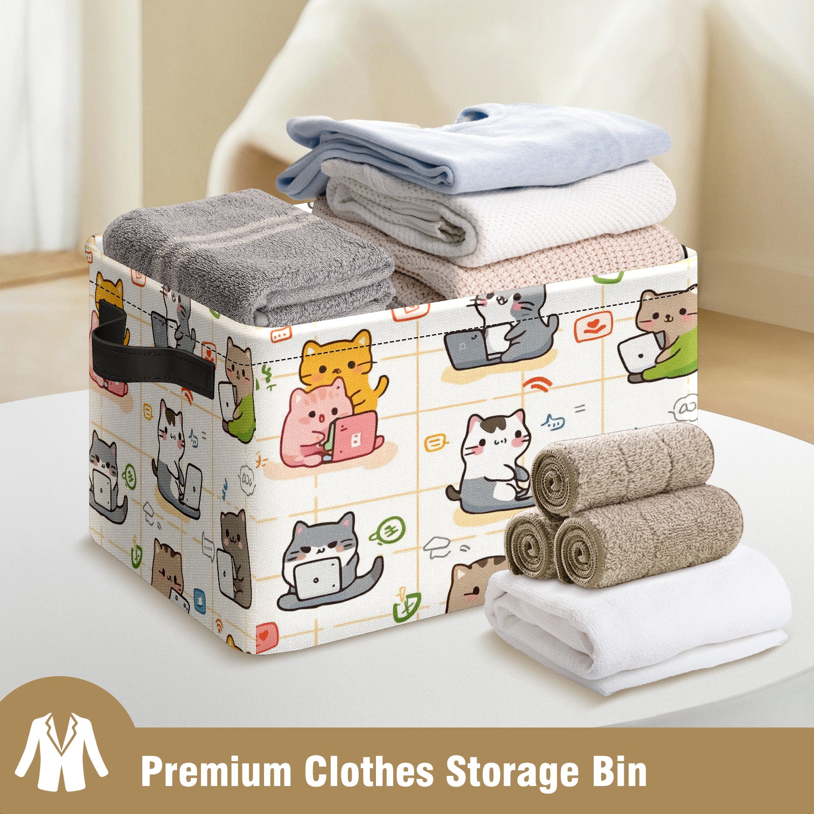 Foldable and Stackable Fabric Storage Basket for Home Organization with Handles, Decorative Closet Bins for Shelves and Laundry Storage( Cats Working On Laptops)