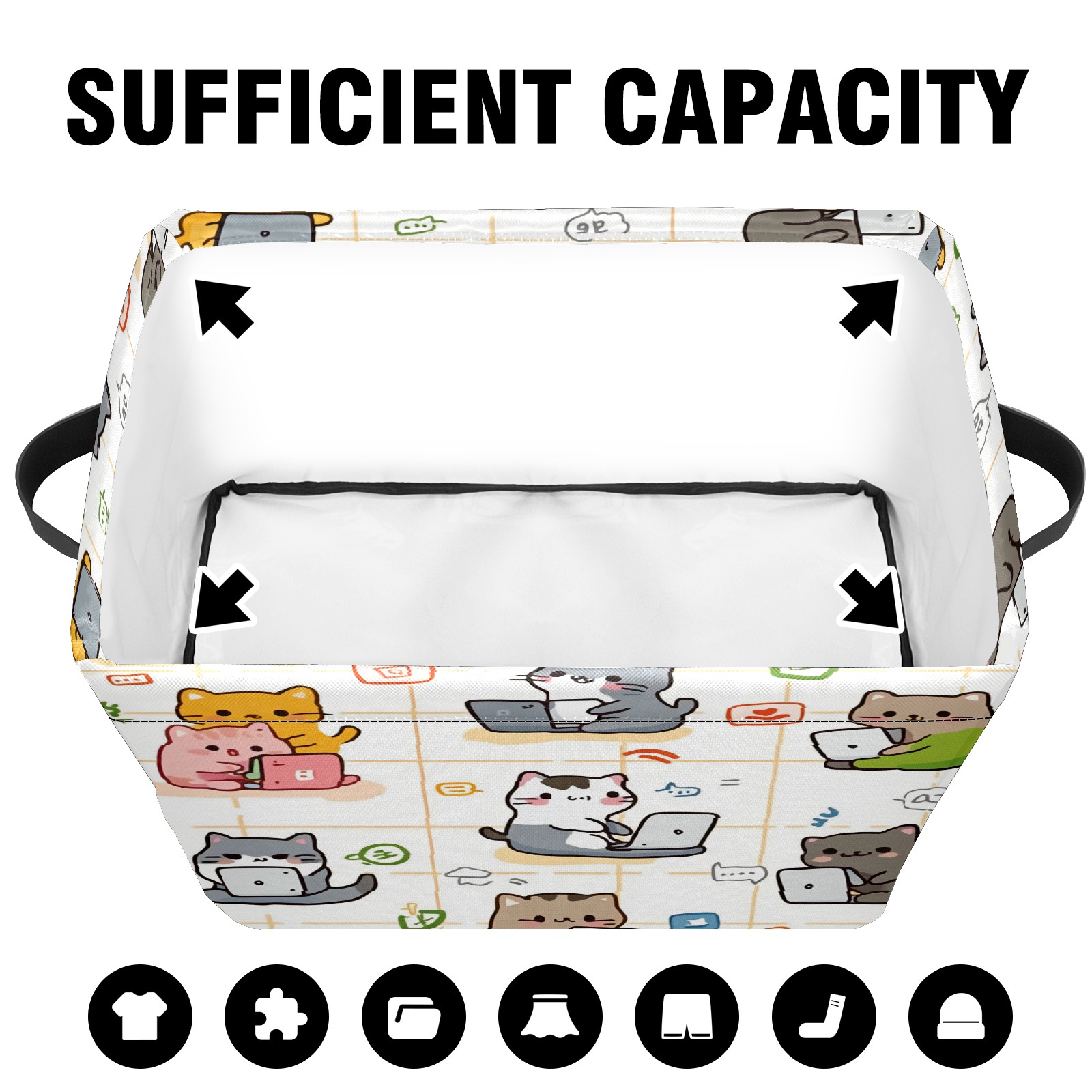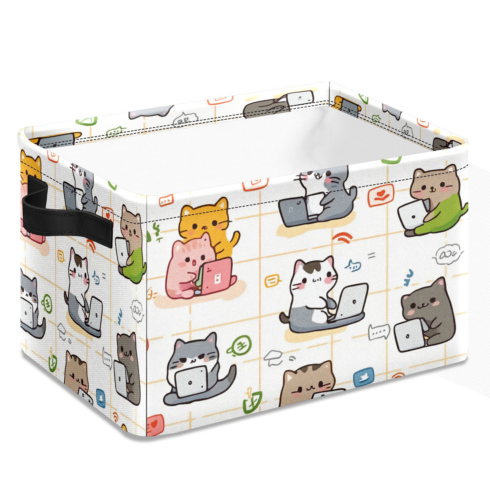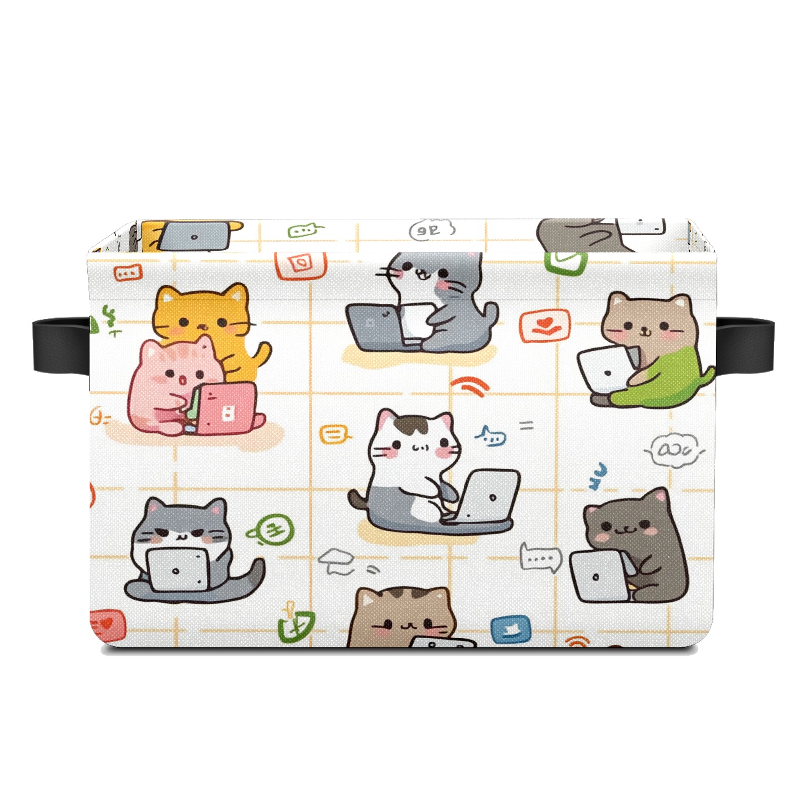 Foldable and Stackable Fabric Storage Basket for Home Organization with Handles, Decorative Closet Bins for Shelves and Laundry Storage( Cats Working On Laptops)
