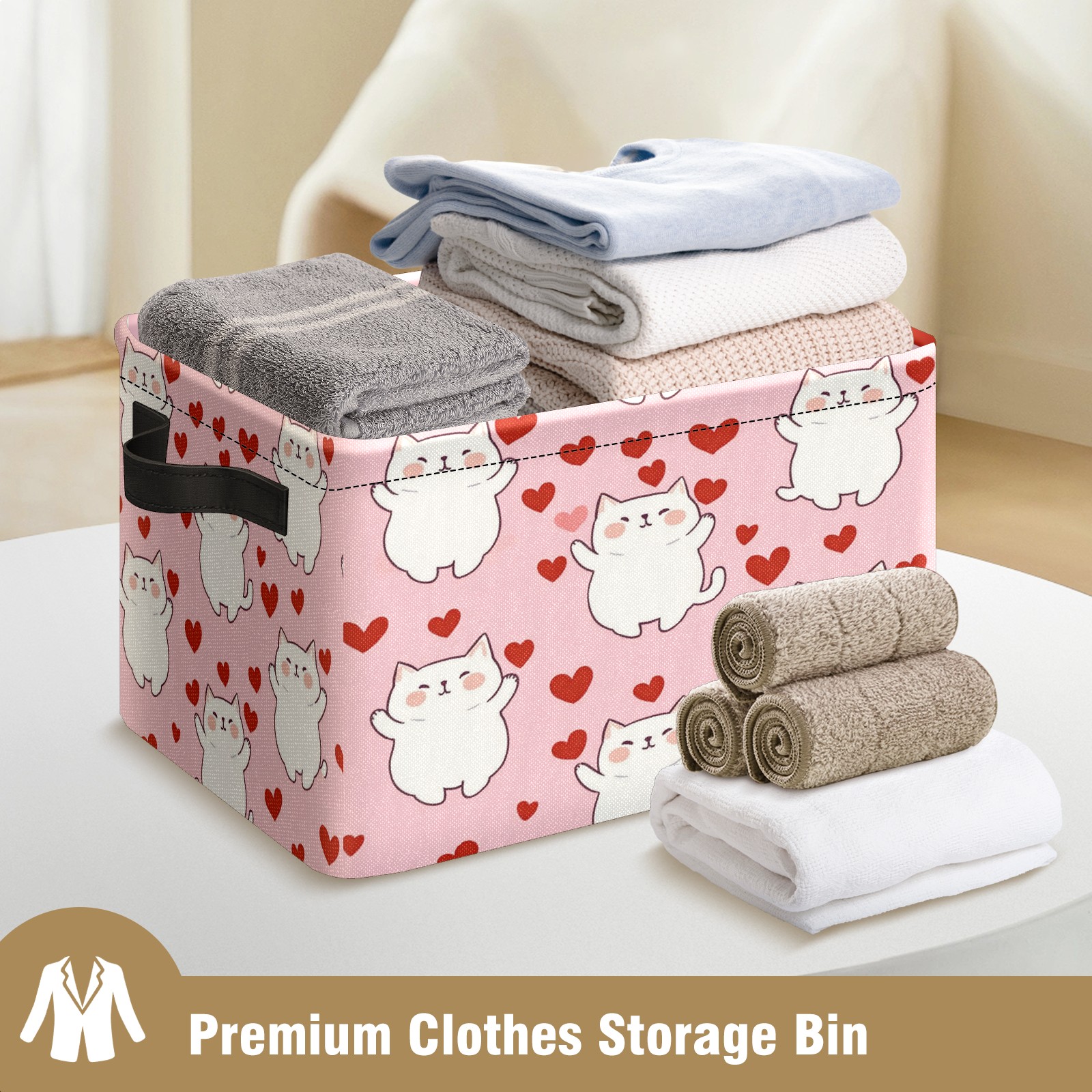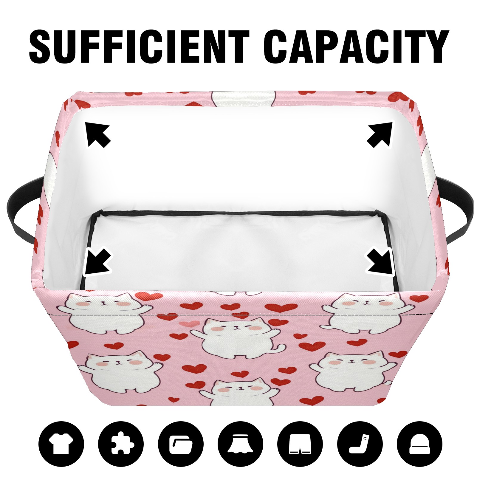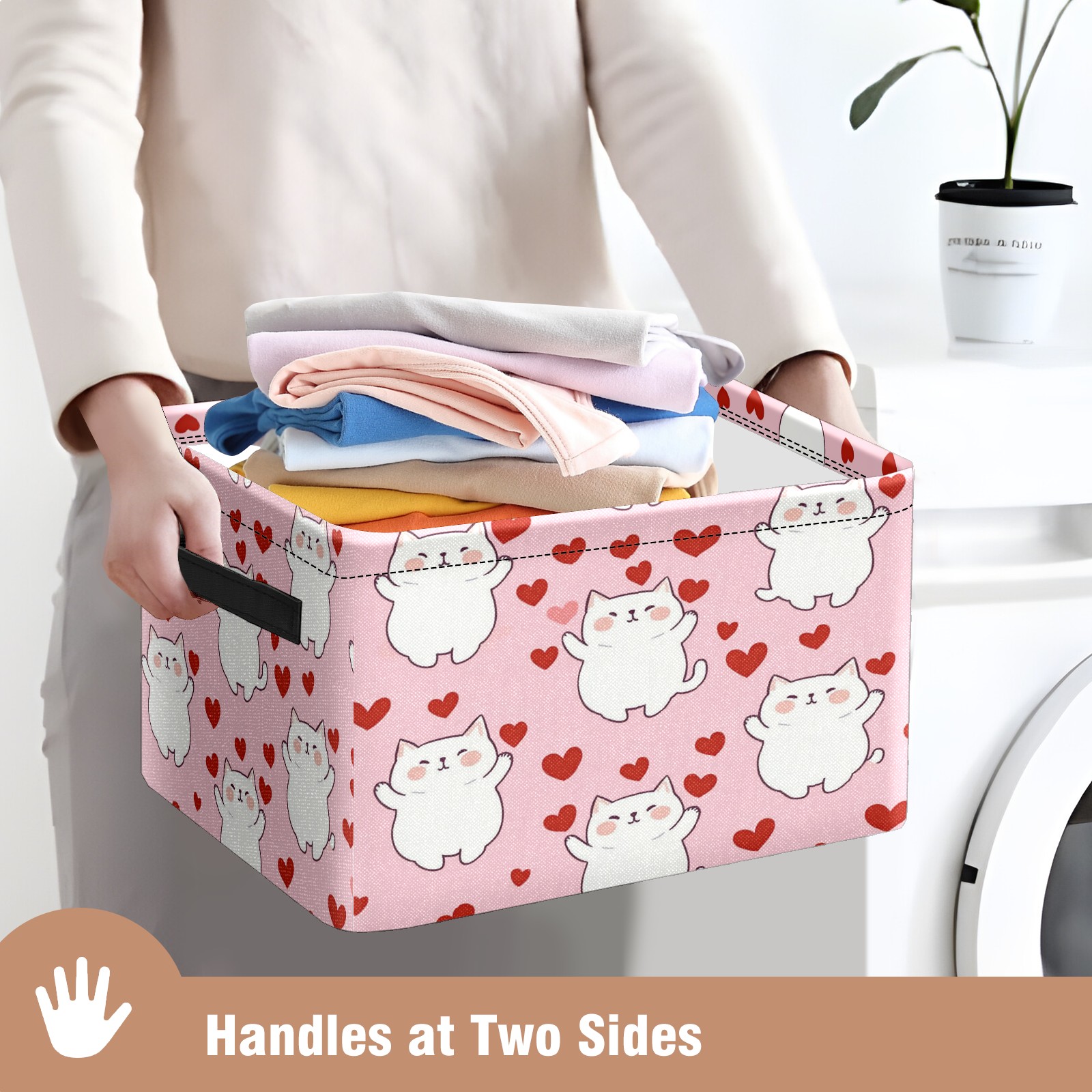 Foldable and Stackable Fabric Storage Basket for Home Organization with Handles, Decorative Closet Bins for Shelves and Laundry Storage( Cats)