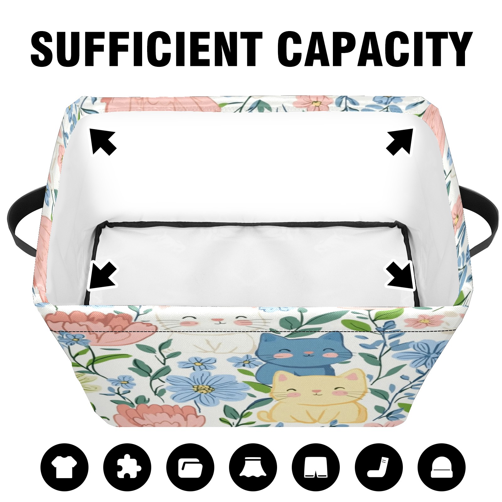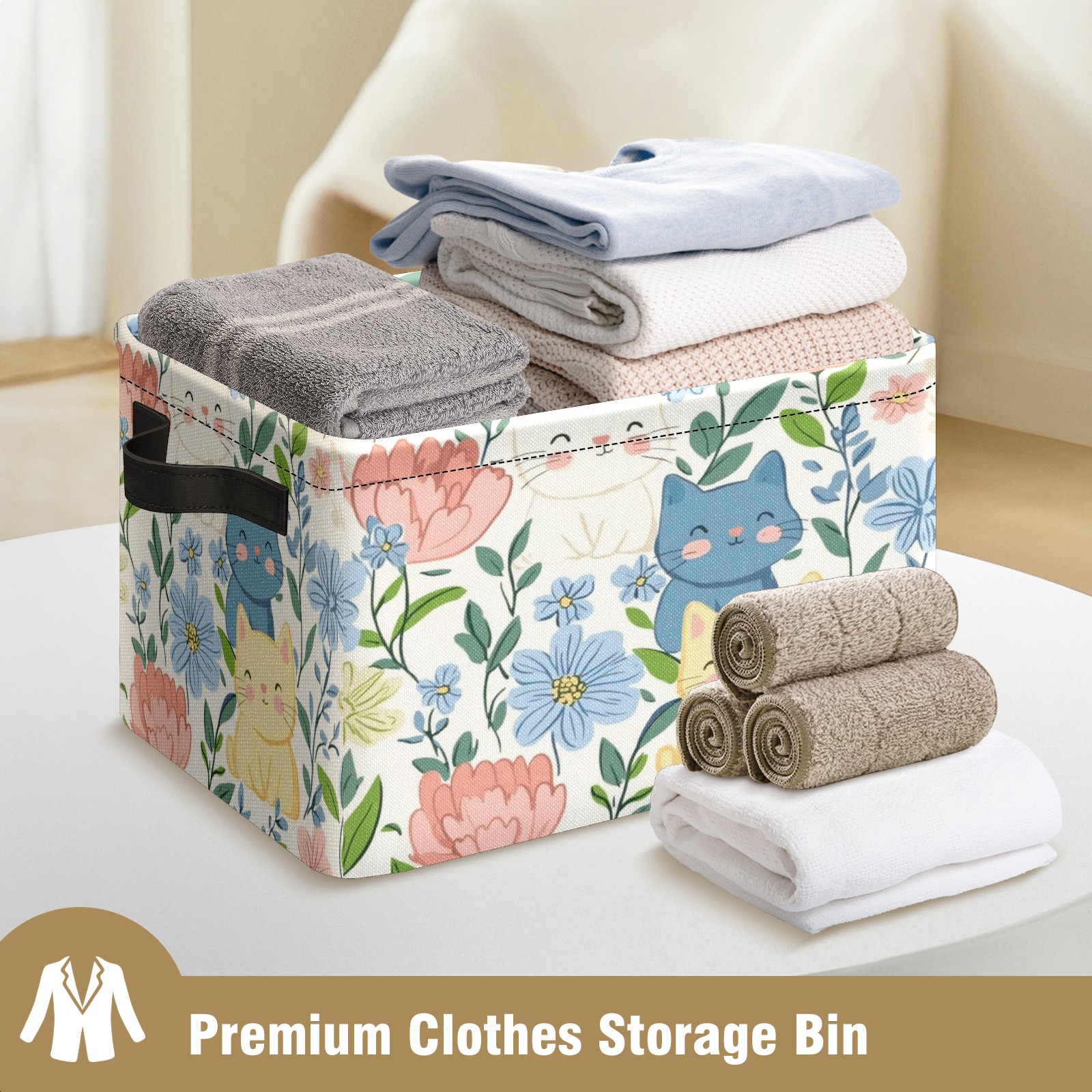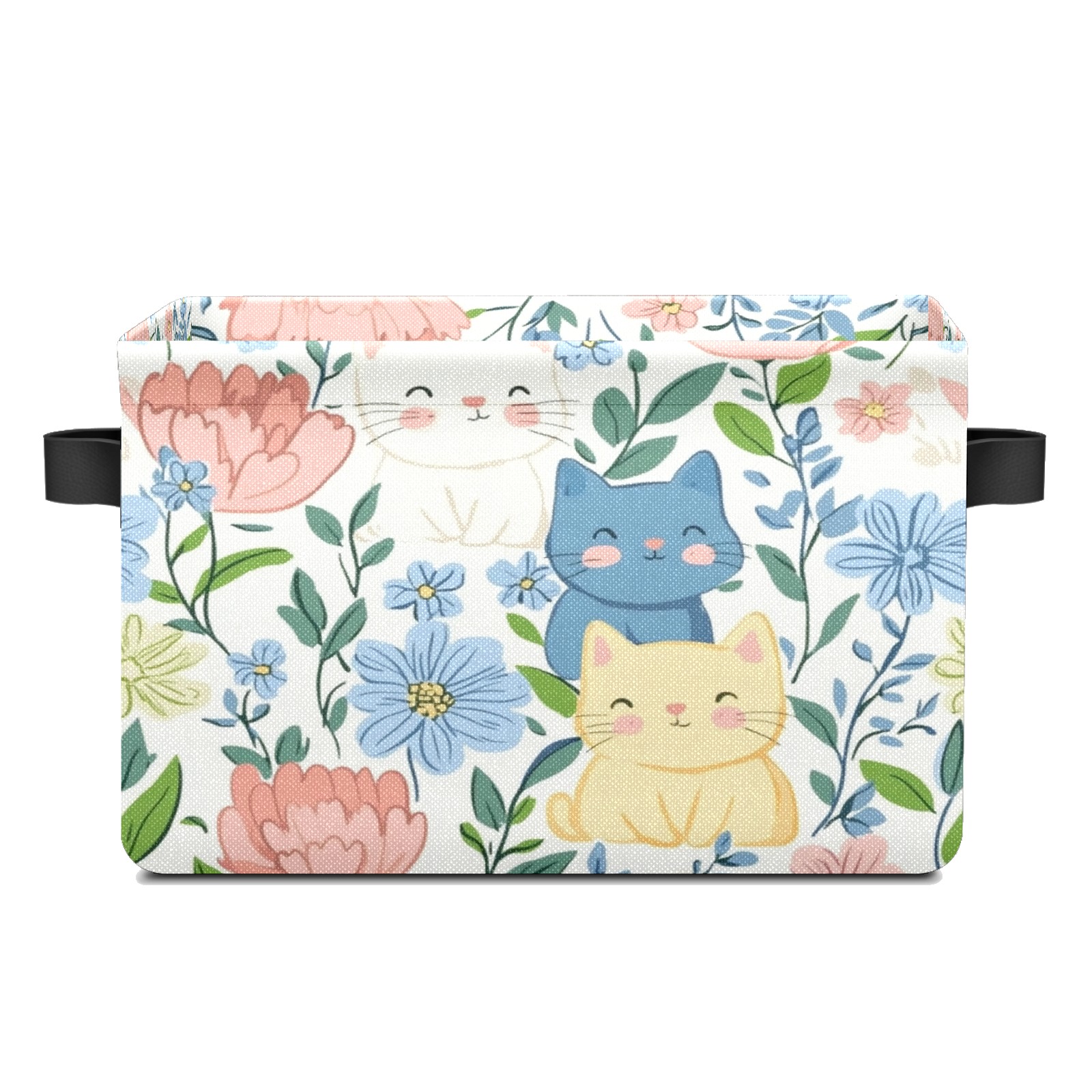 Foldable and Stackable Fabric Storage Basket for Home Organization with Handles, Decorative Closet Bins for Shelves and Laundry Storage( Cats In Flowers)