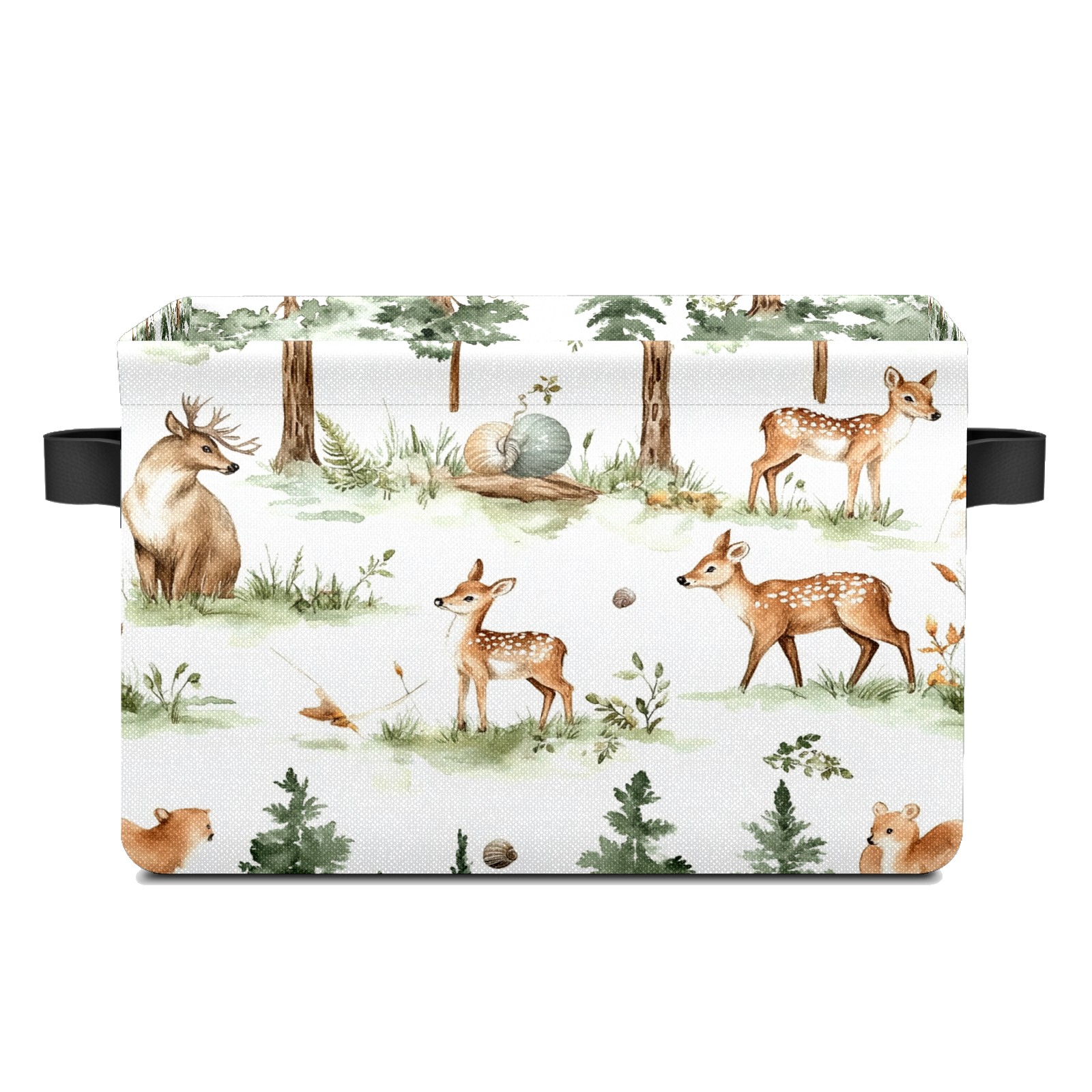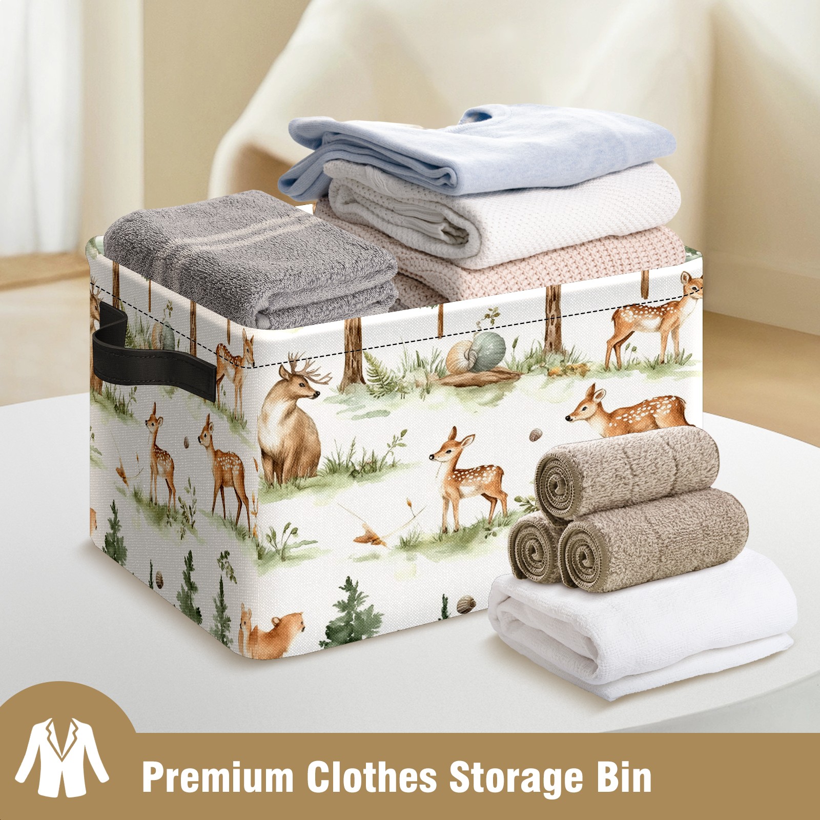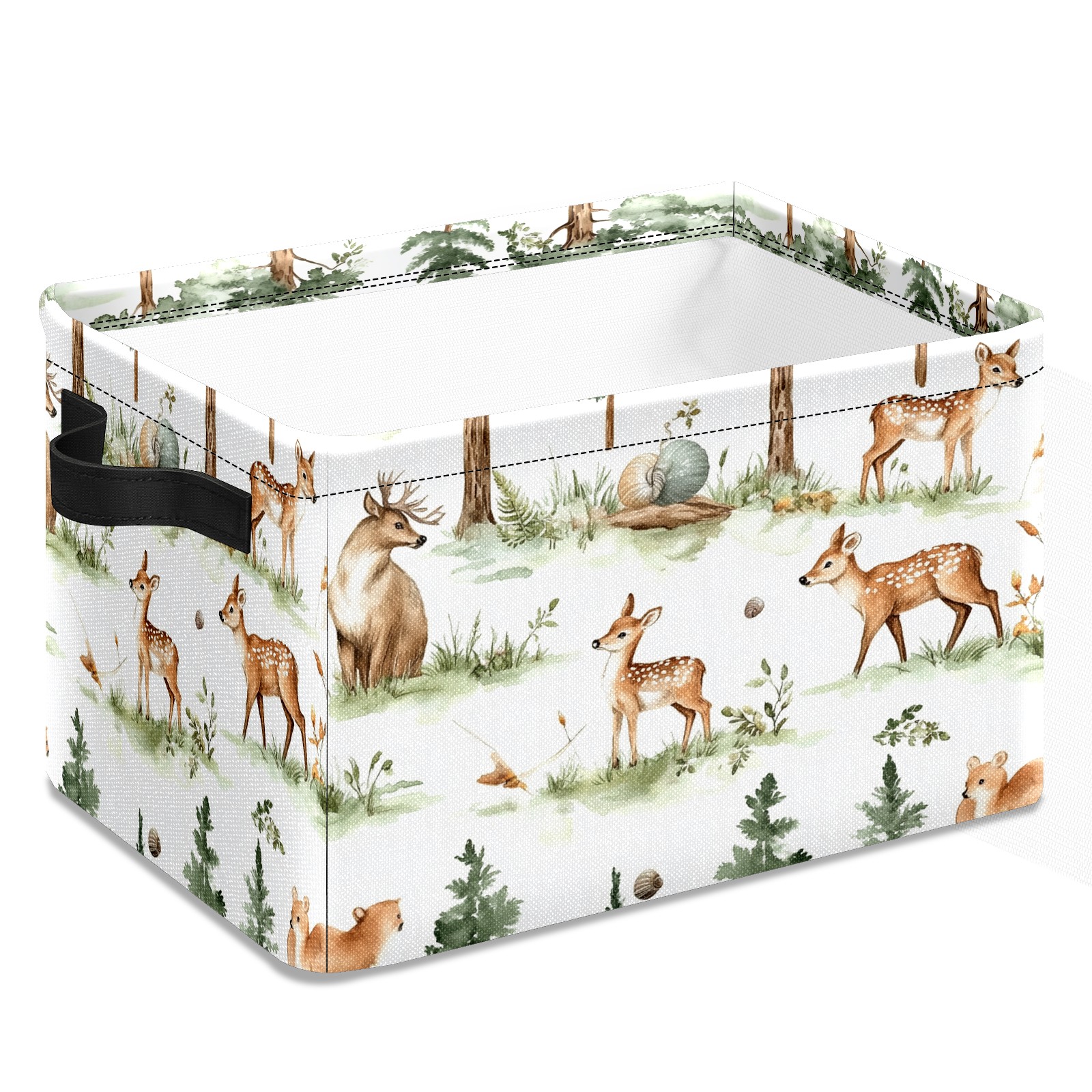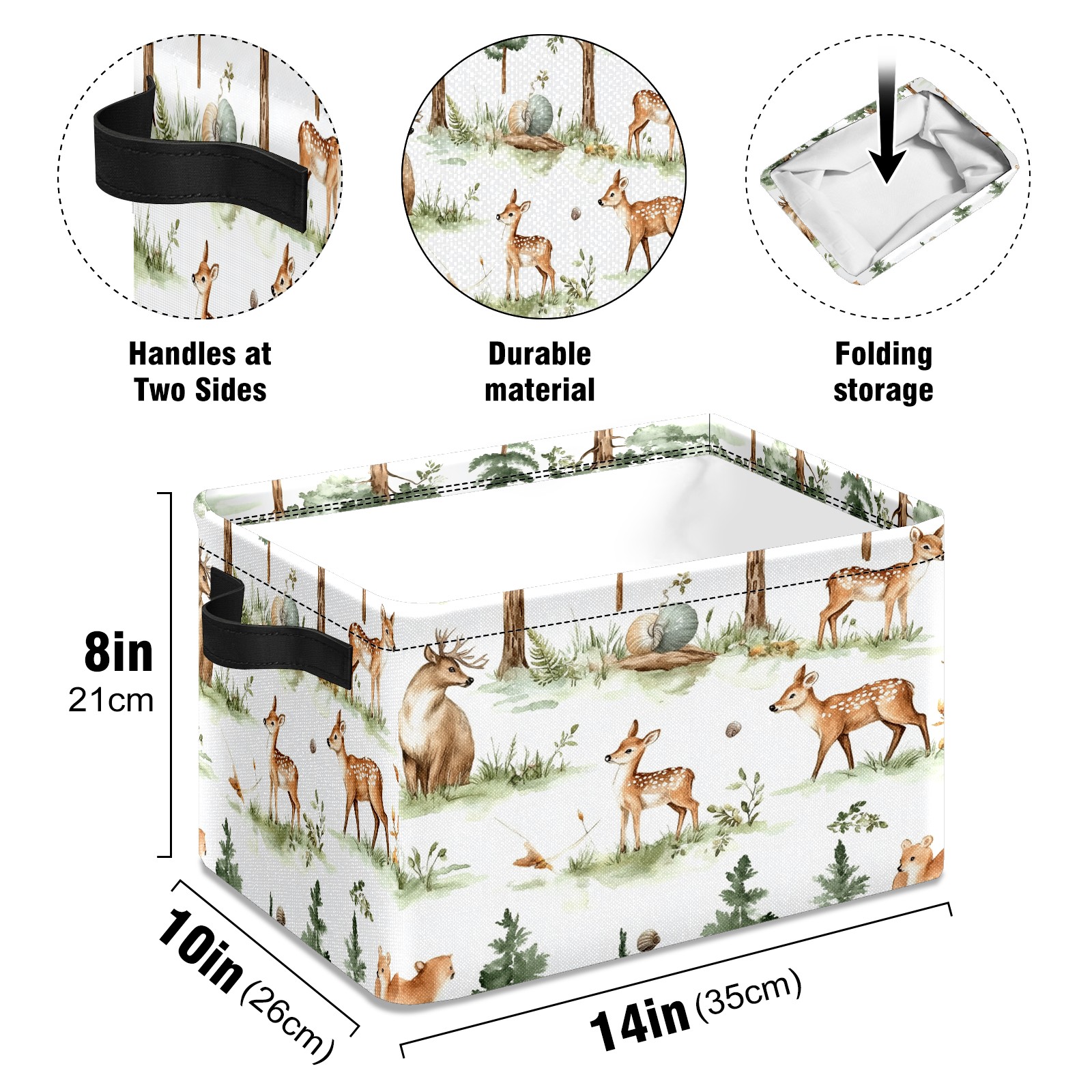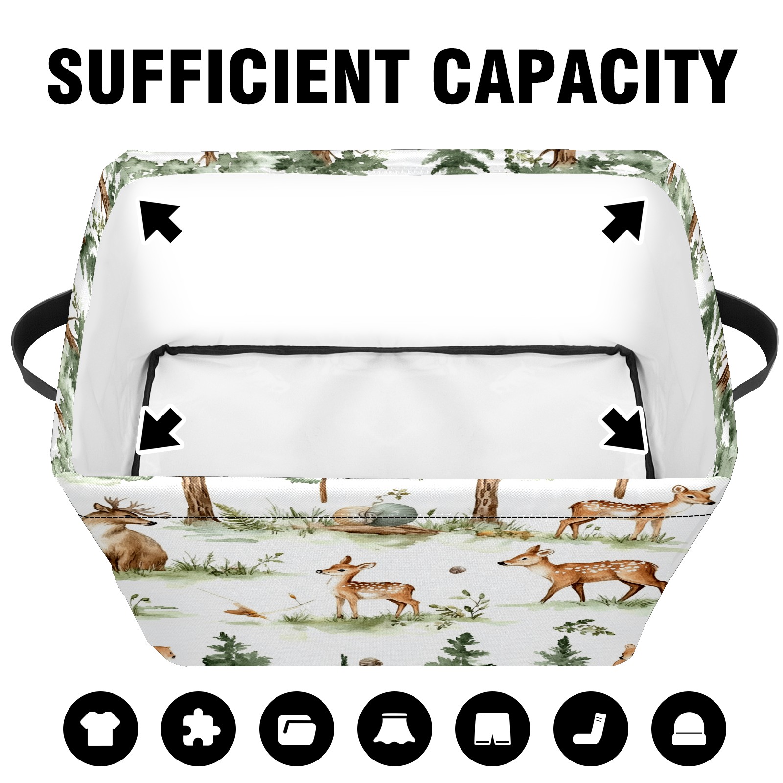 Foldable and Stackable Fabric Storage Basket for Home Organization with Handles, Decorative Closet Bins for Shelves and Laundry Storage( Wood And Deer)