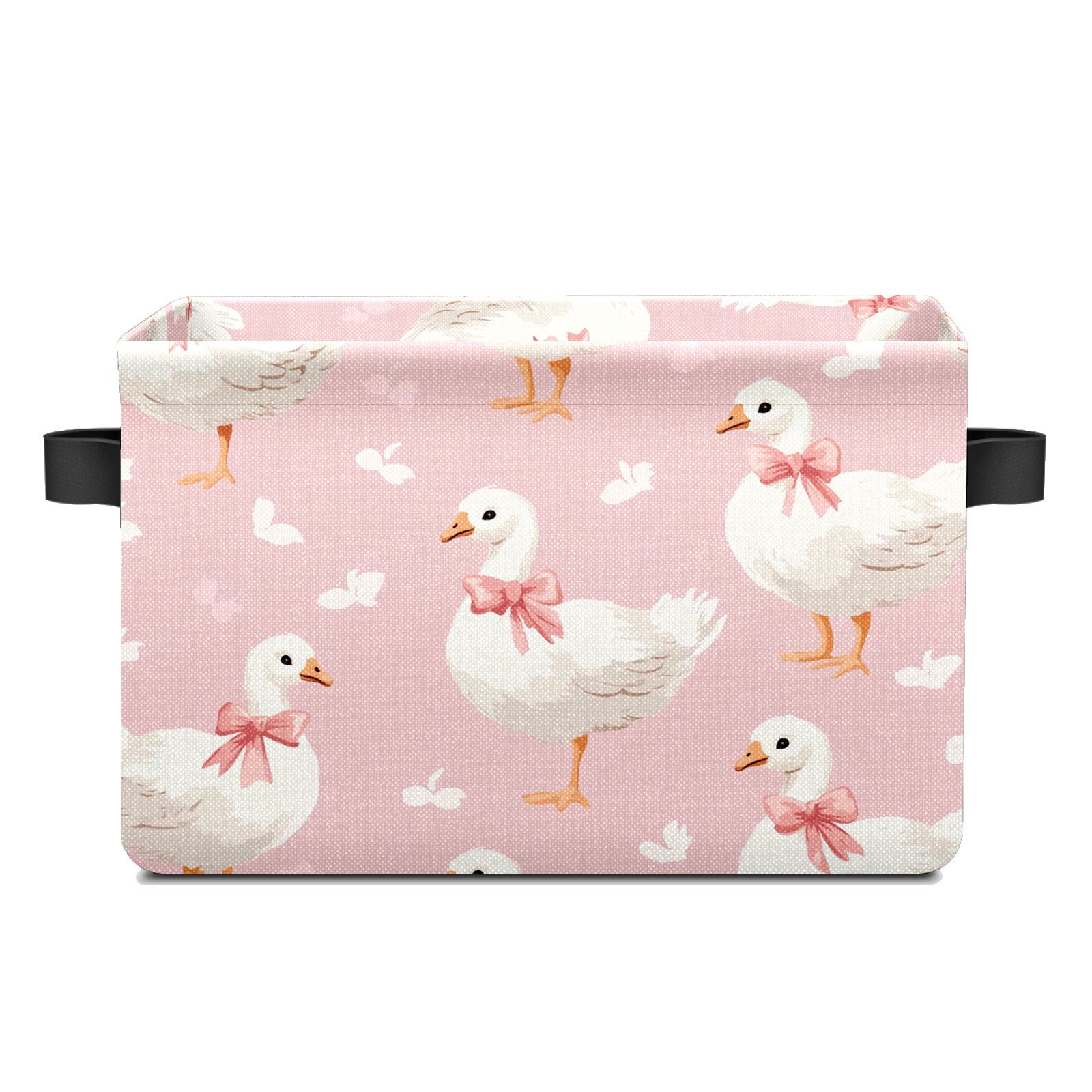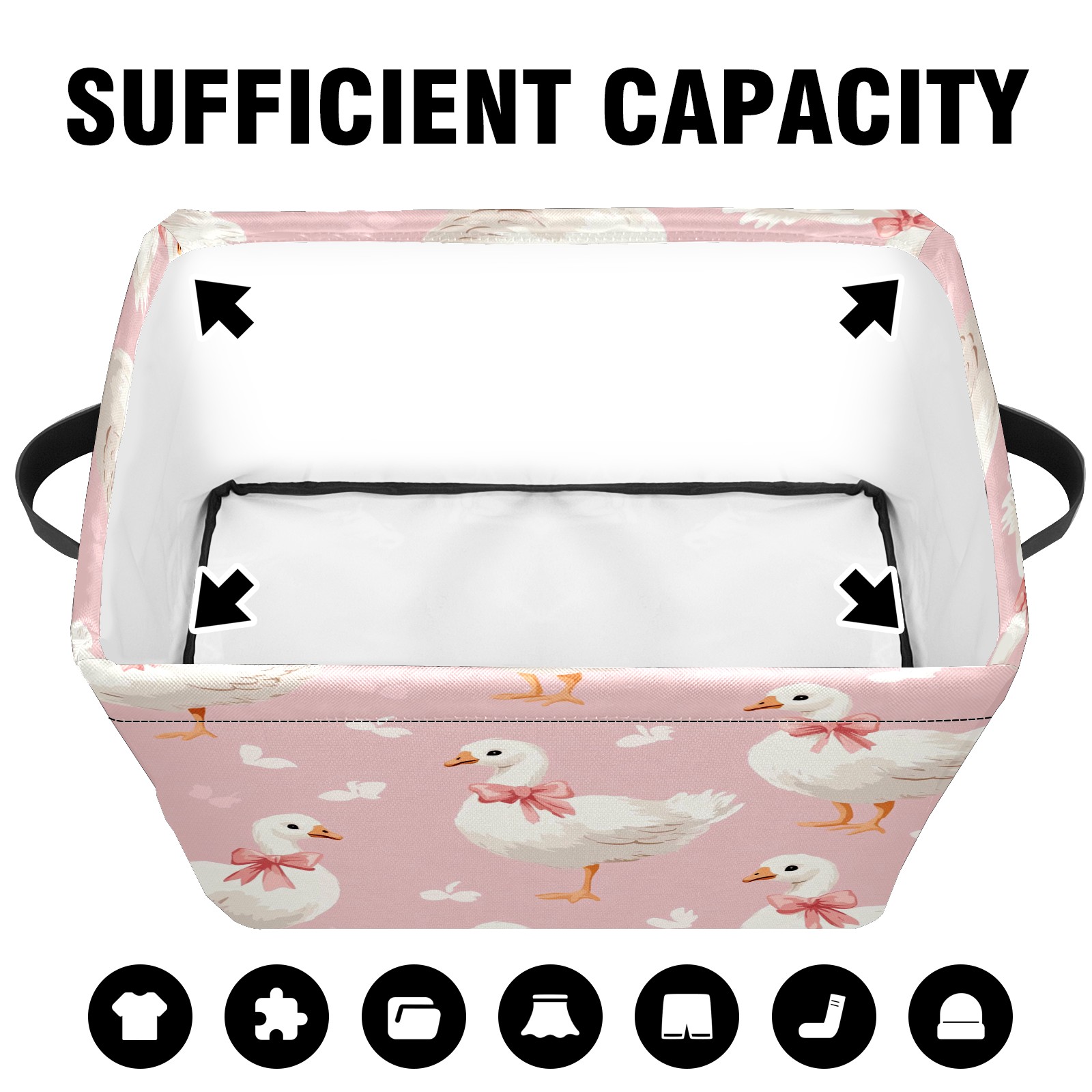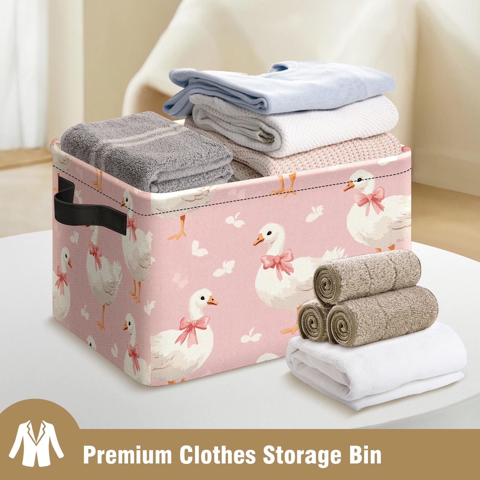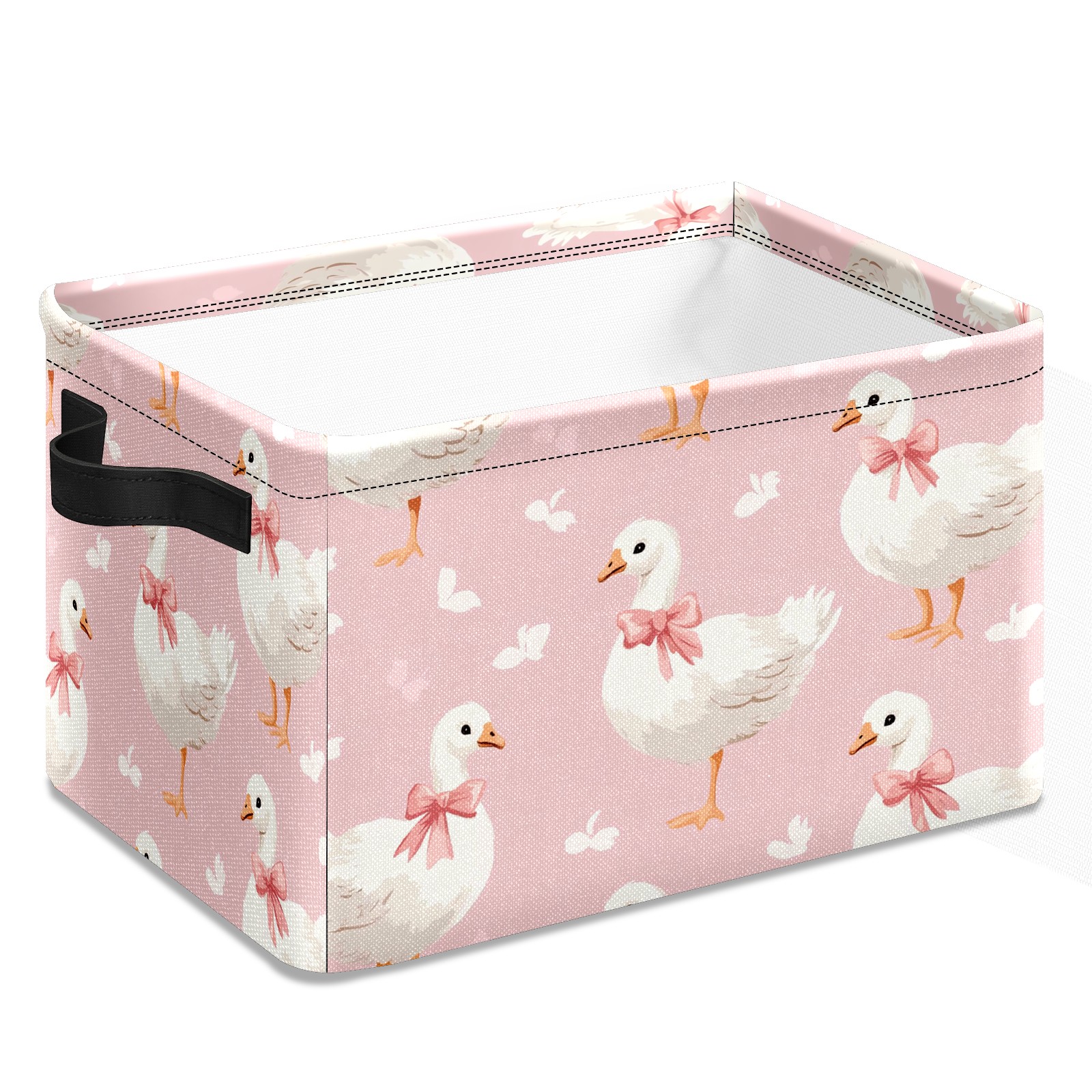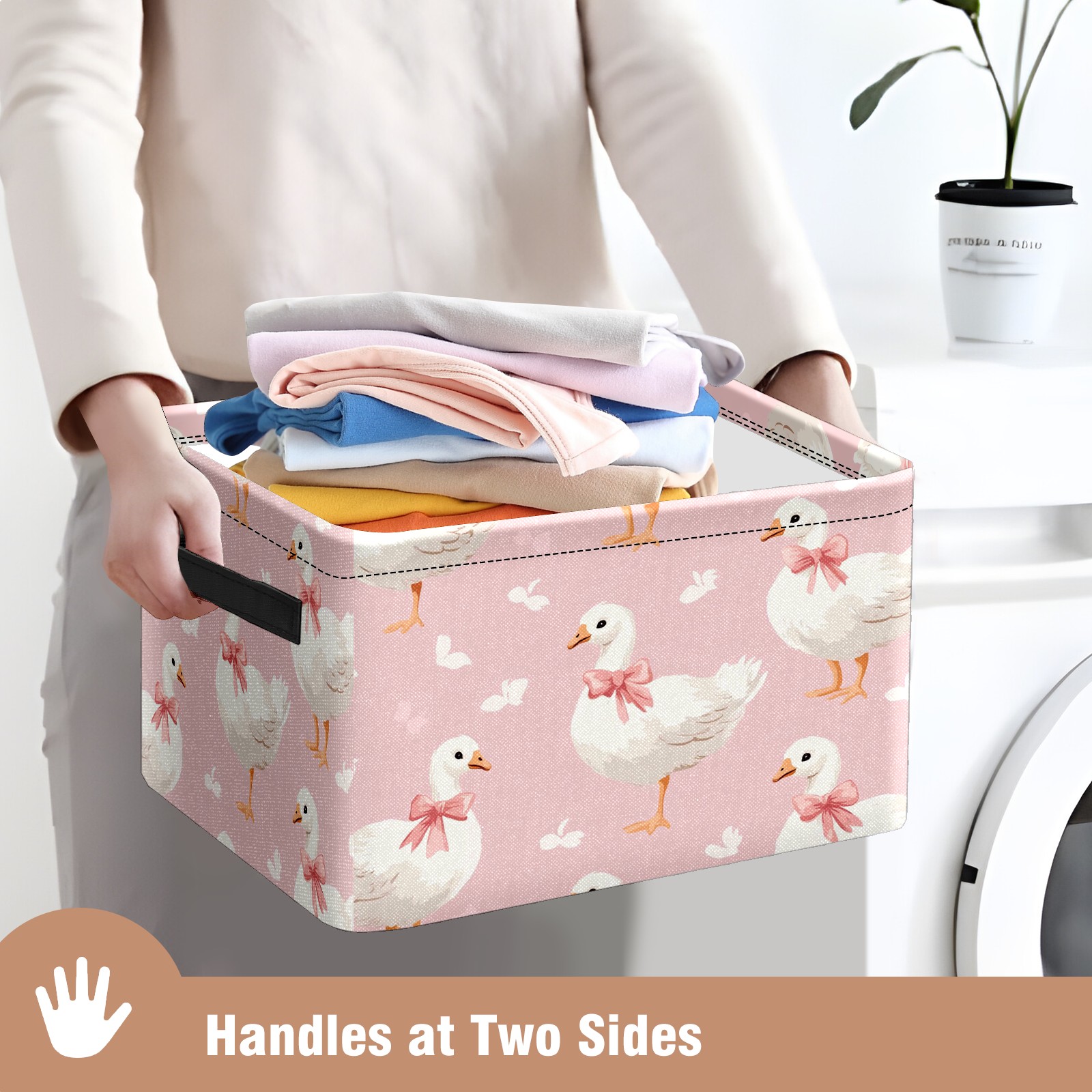Foldable and Stackable Fabric Storage Basket for Home Organization with Handles, Decorative Closet Bins for Shelves and Laundry Storage( White Geese)