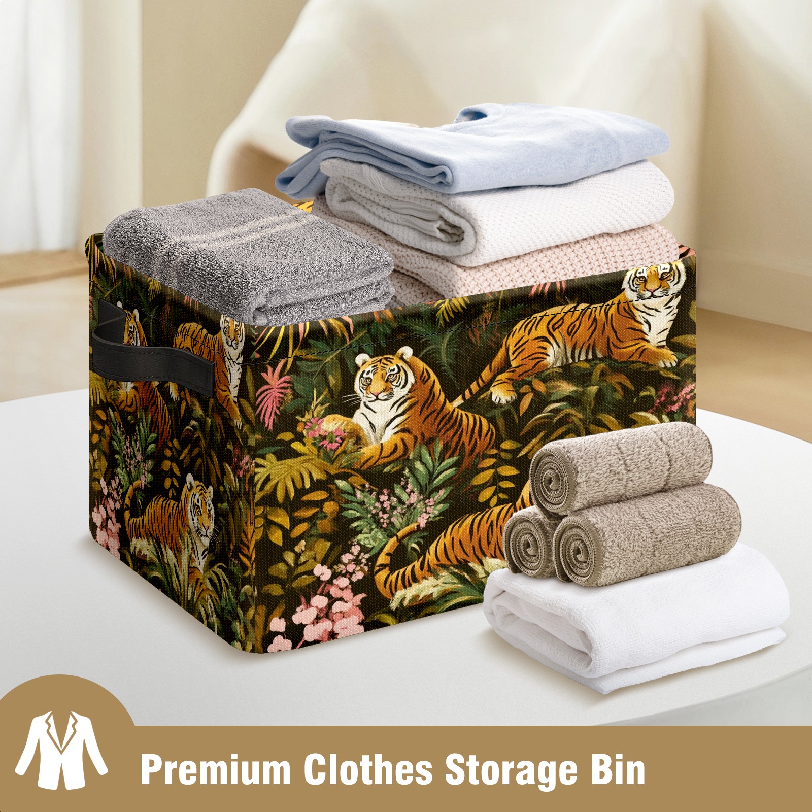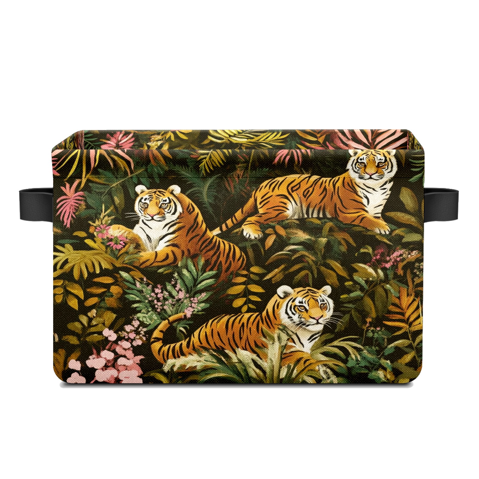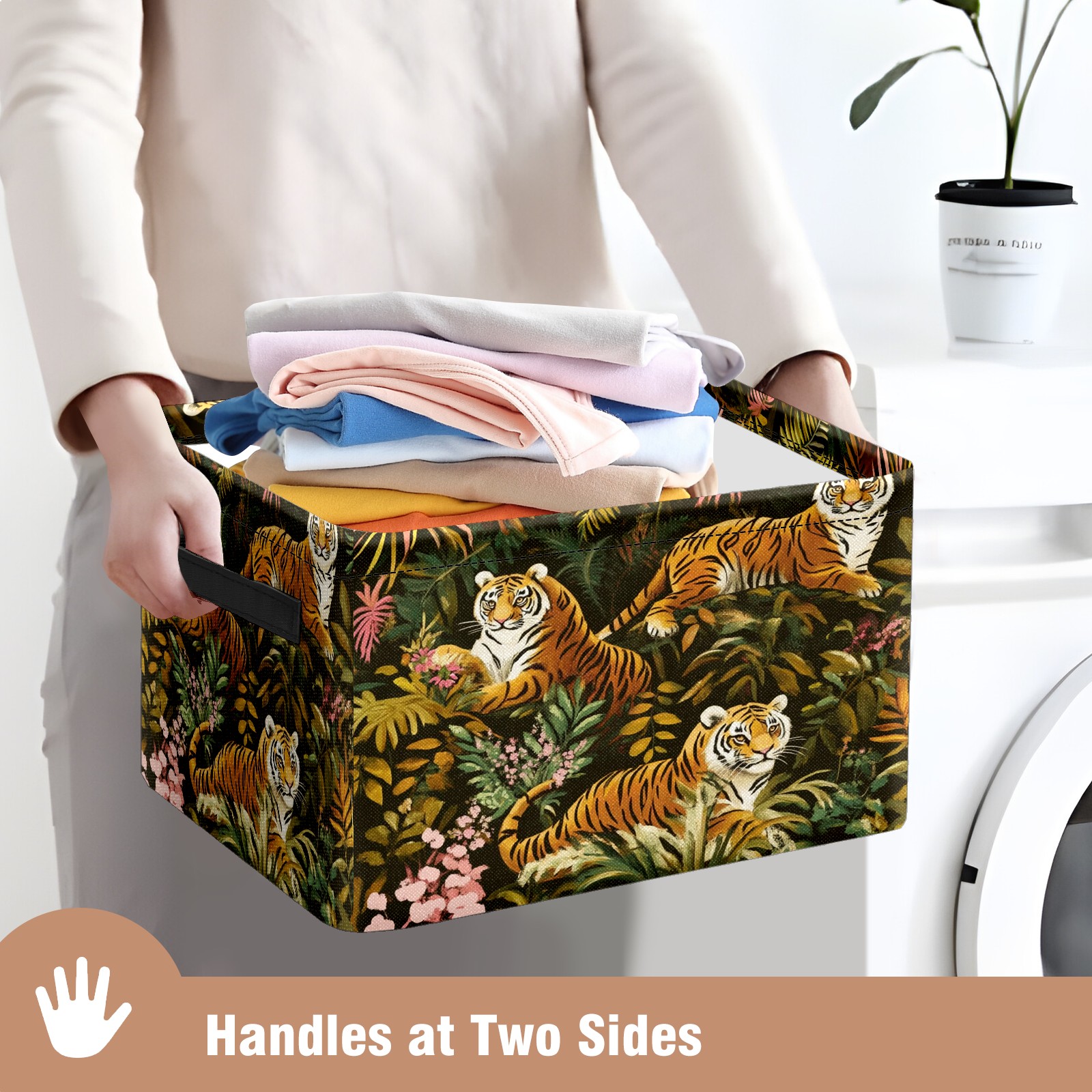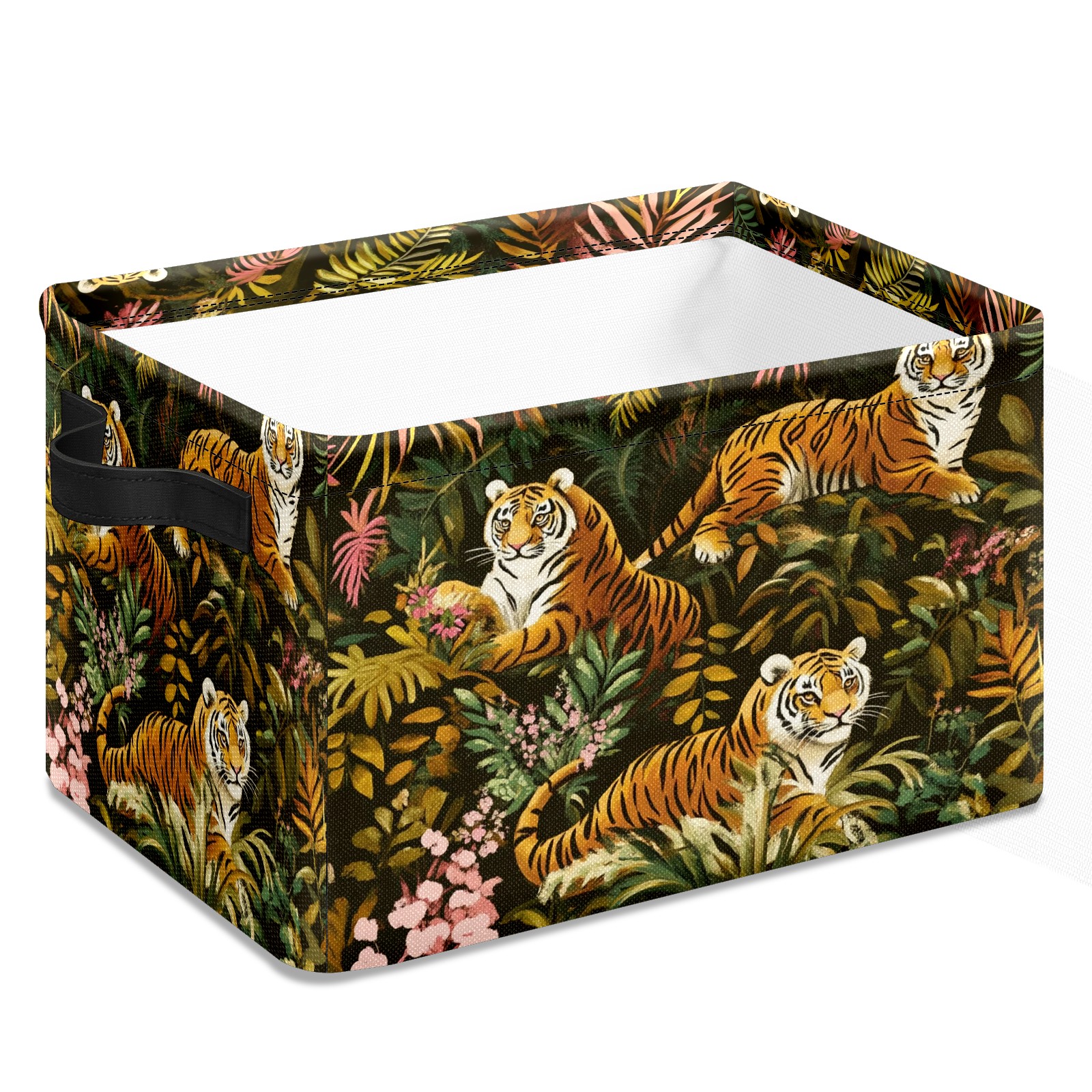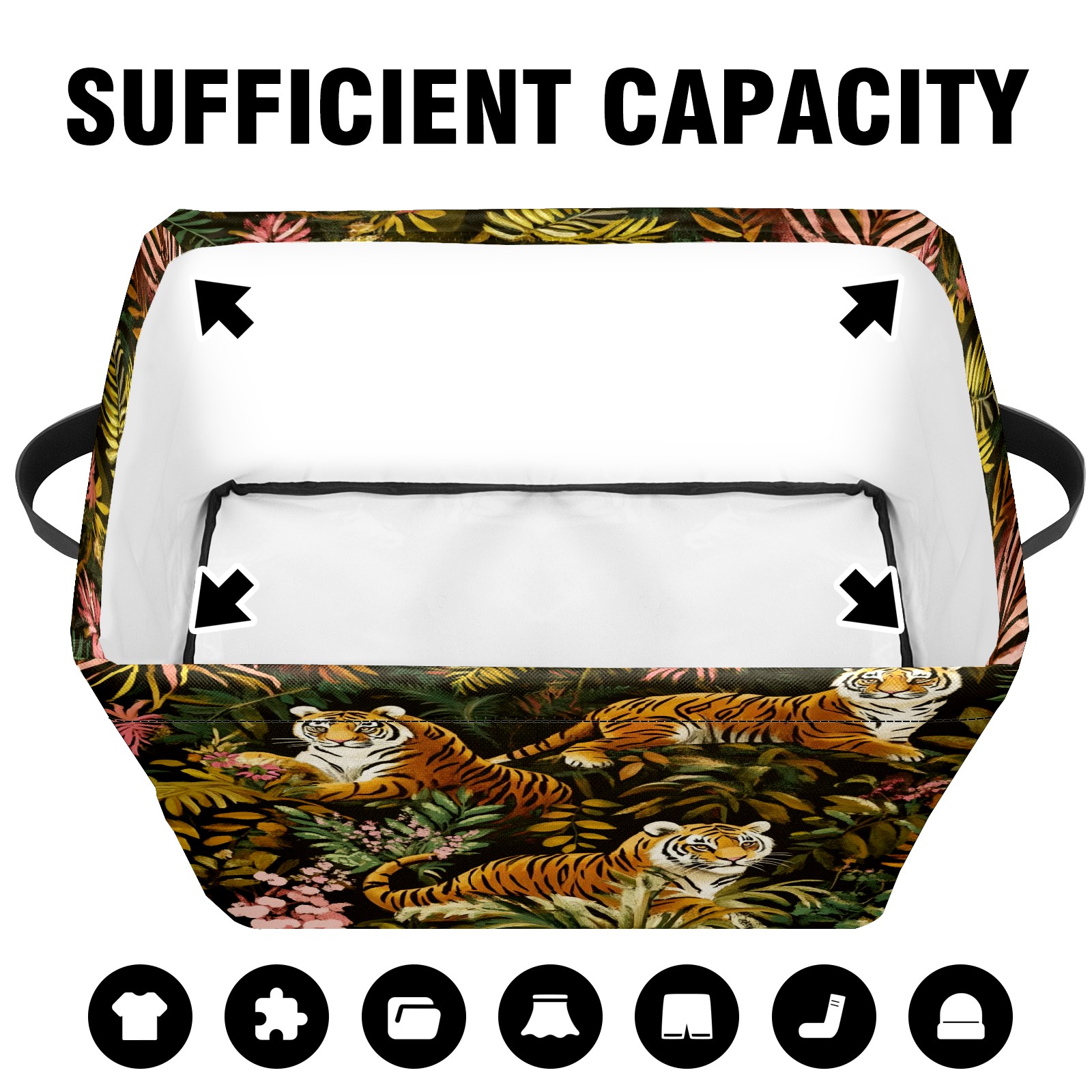 Foldable and Stackable Fabric Storage Basket for Home Organization with Handles, Decorative Closet Bins for Shelves and Laundry Storage( Tigers And Leopards)