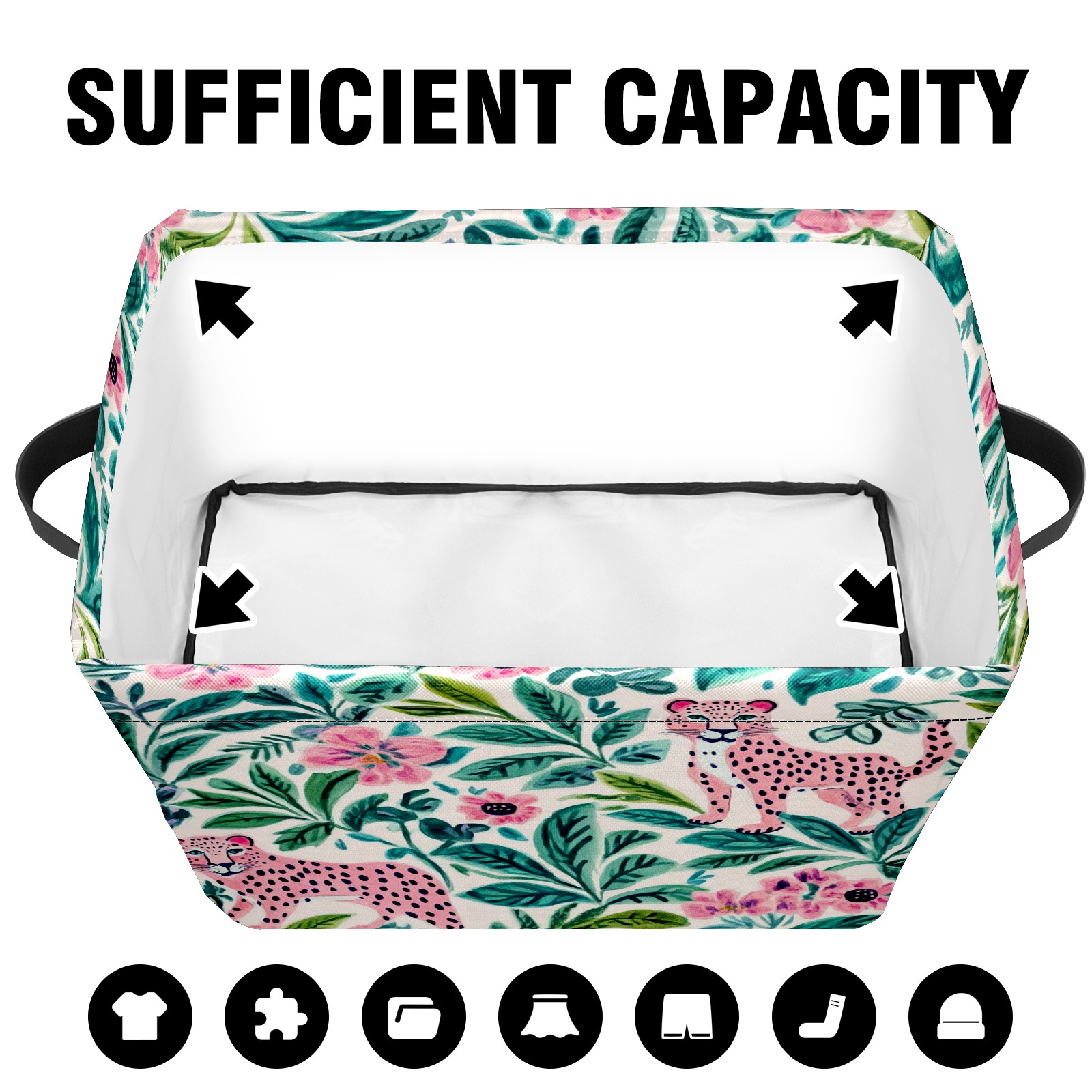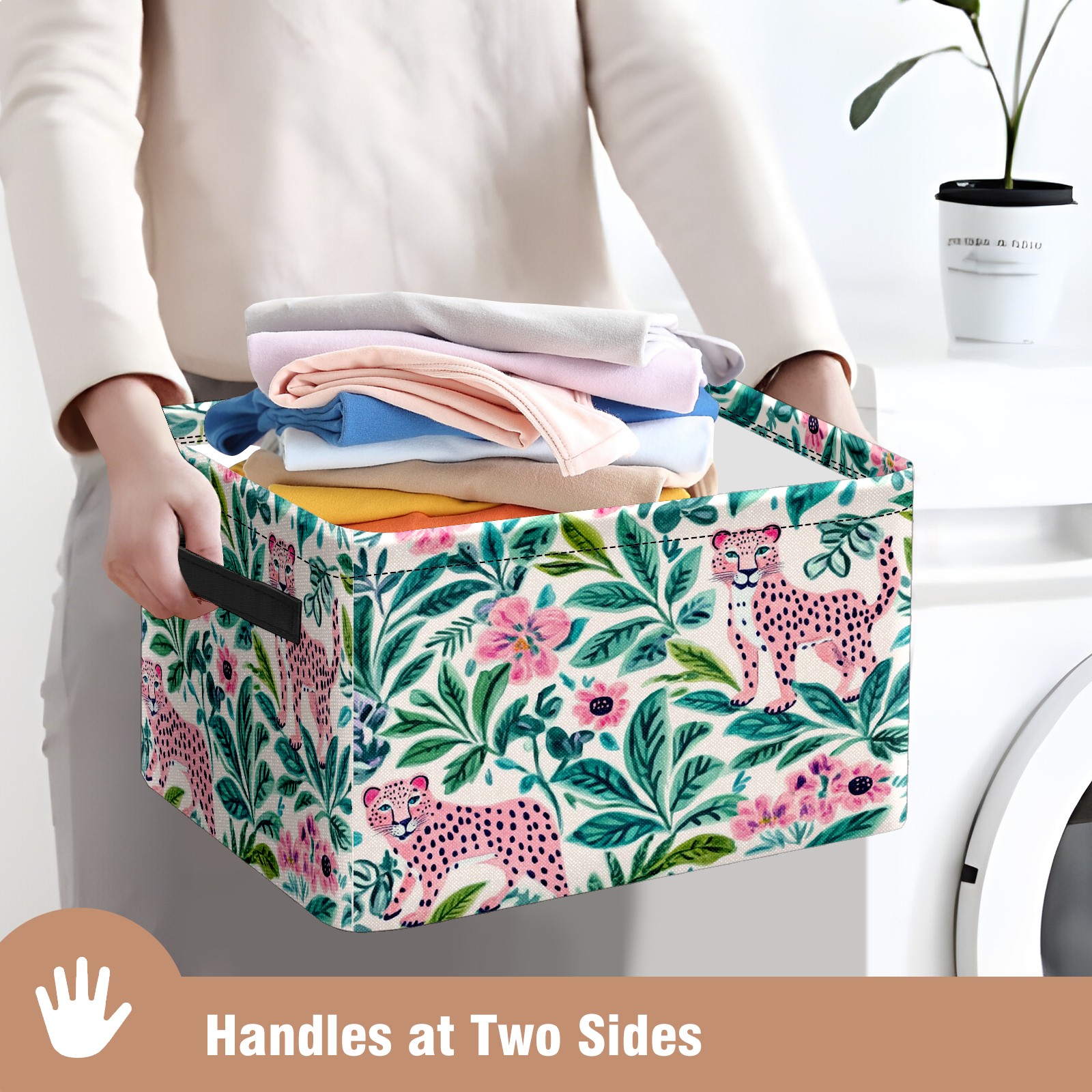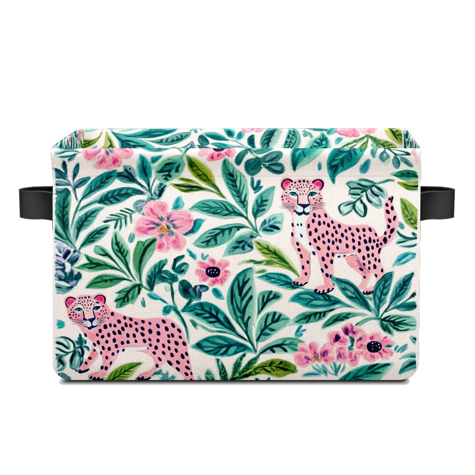 Foldable and Stackable Fabric Storage Basket for Home Organization with Handles, Decorative Closet Bins for Shelves and Laundry Storage( Pink Cheetahs)