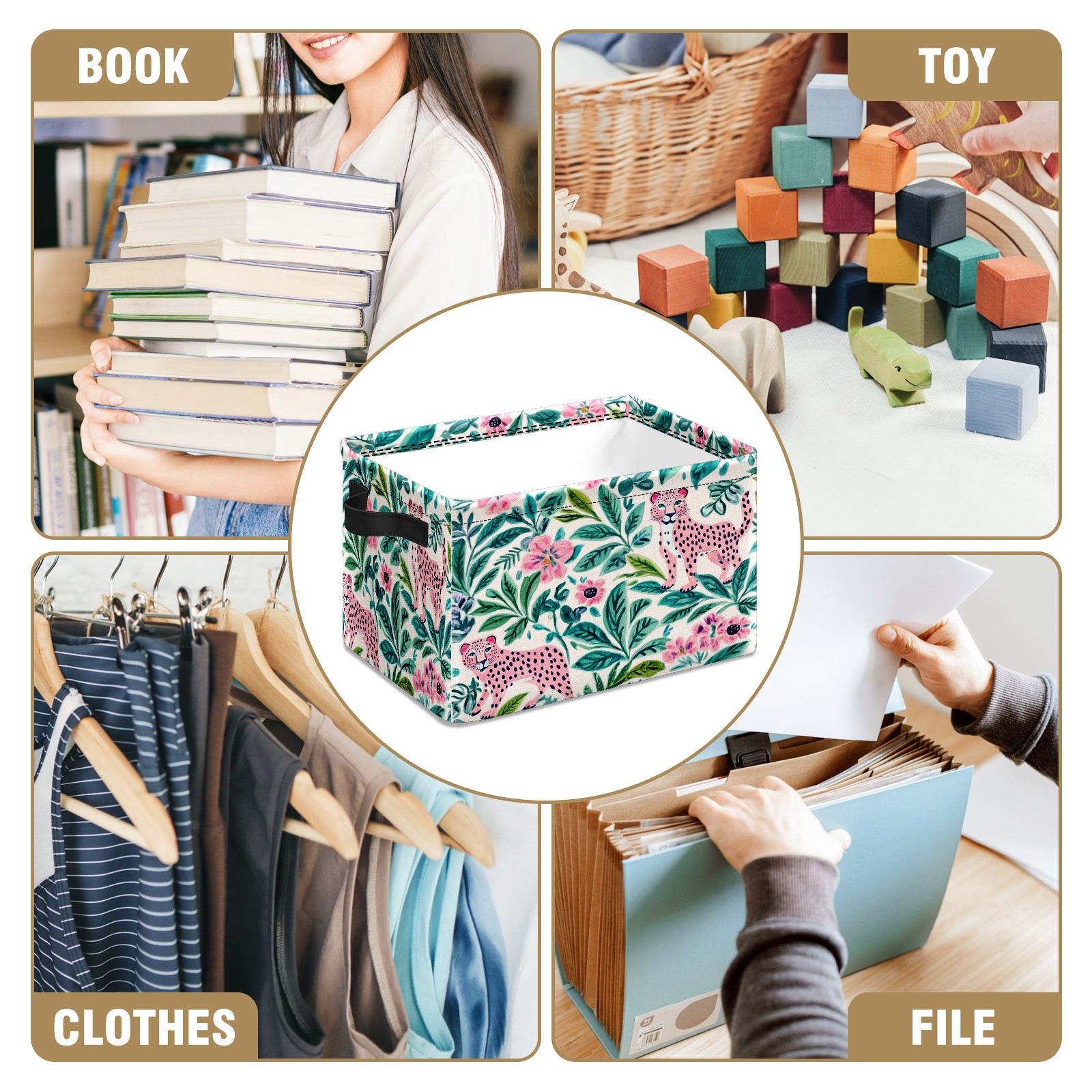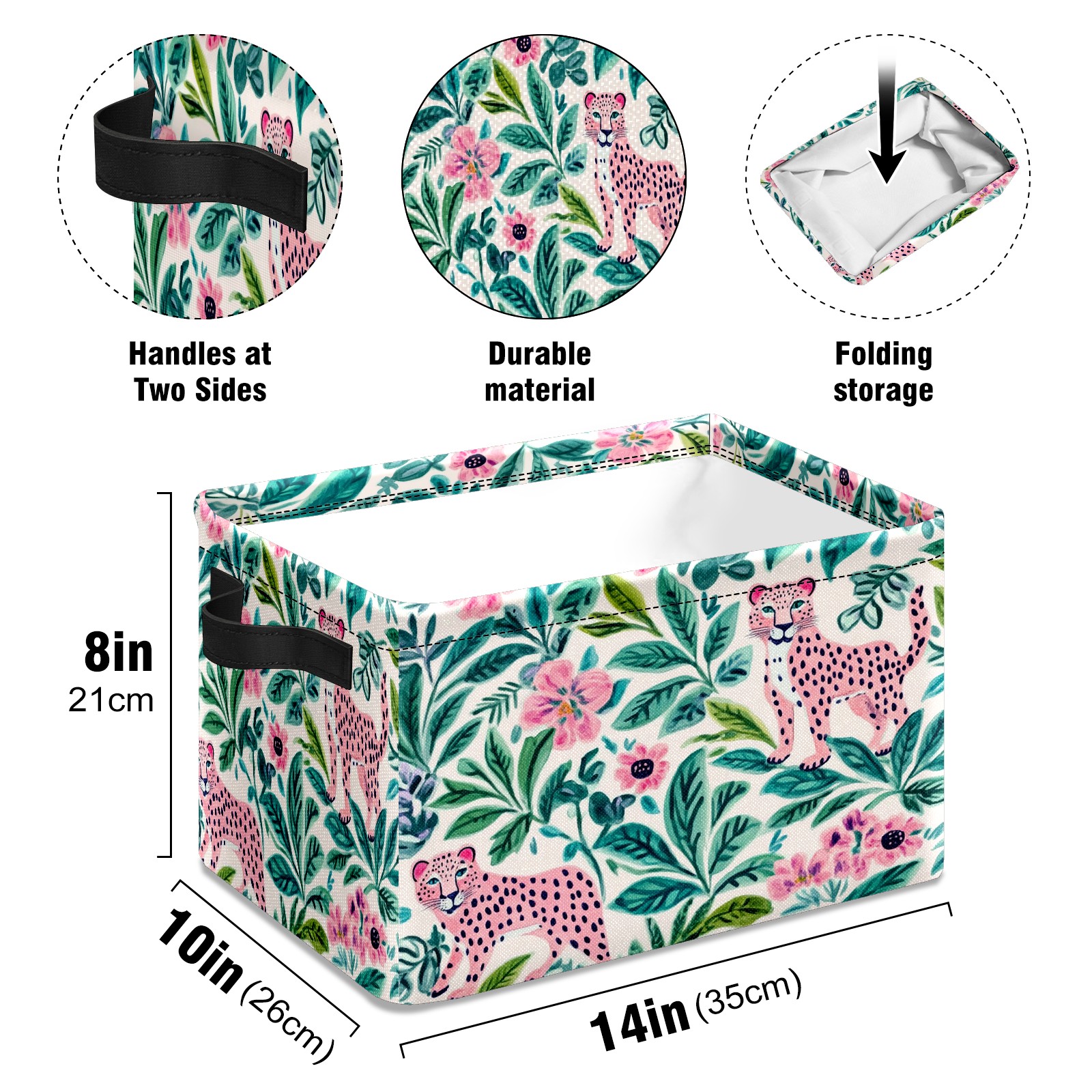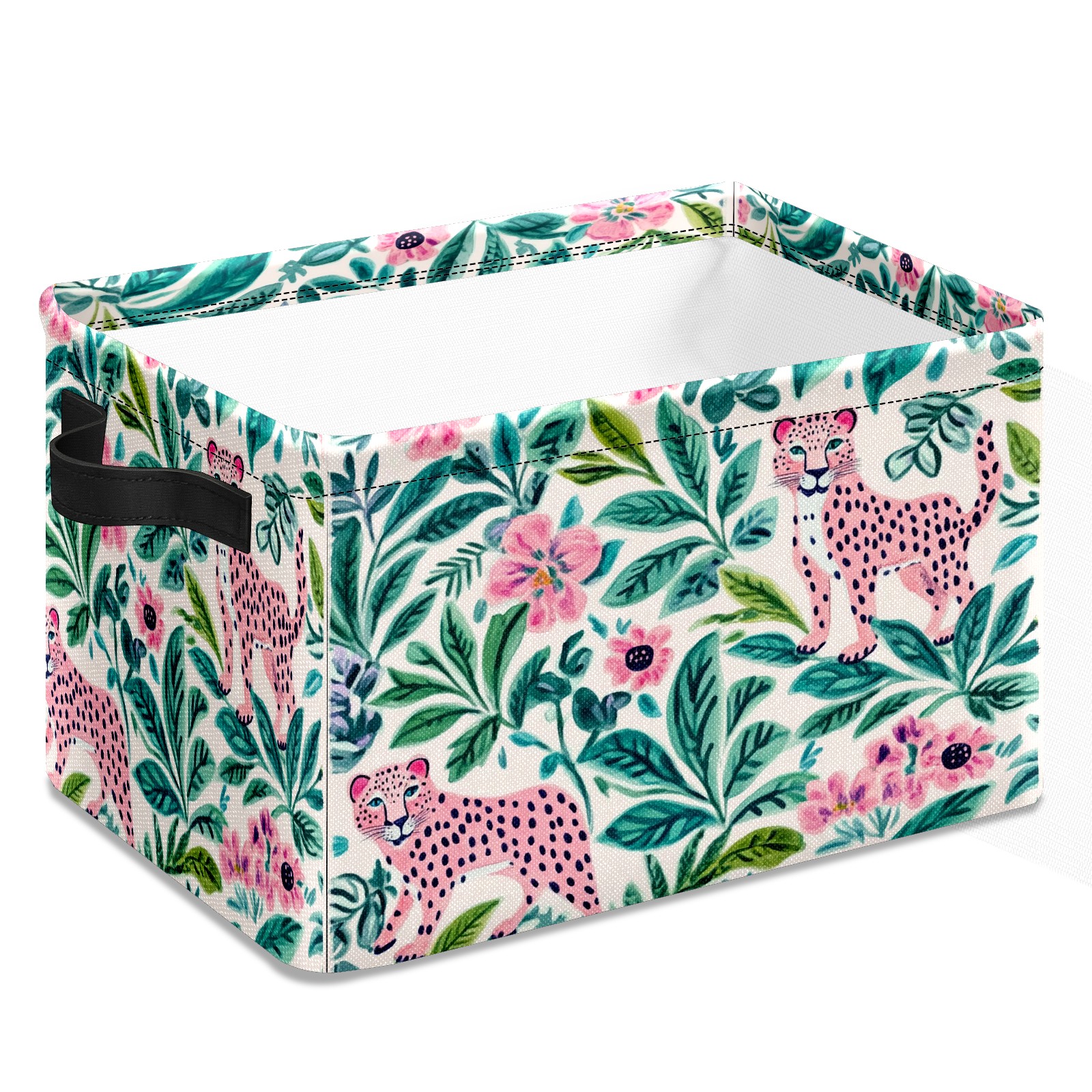 Foldable and Stackable Fabric Storage Basket for Home Organization with Handles, Decorative Closet Bins for Shelves and Laundry Storage( Pink Cheetahs)