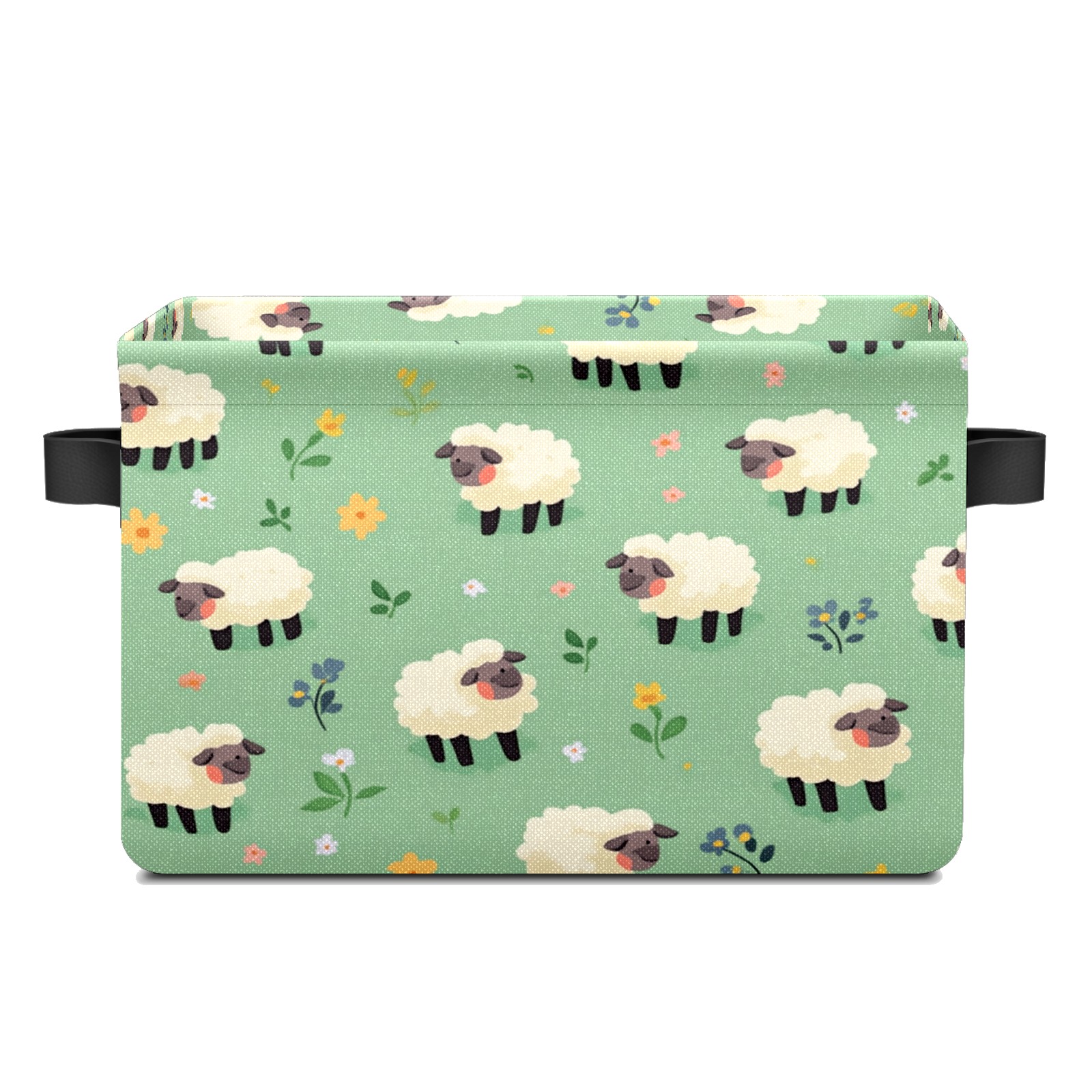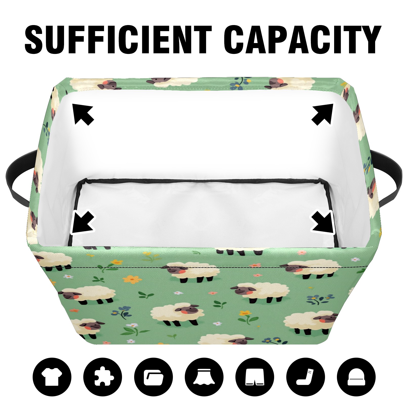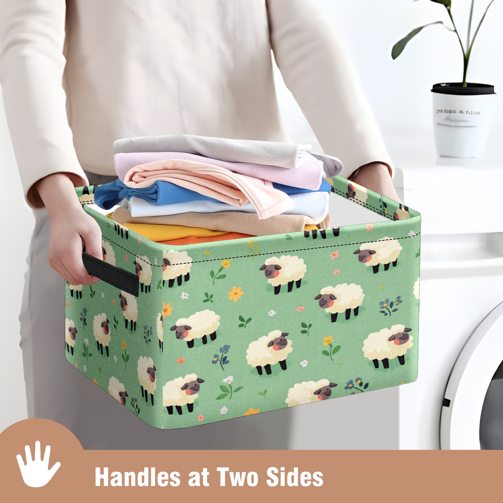 Foldable and Stackable Fabric Storage Basket for Home Organization with Handles, Decorative Closet Bins for Shelves and Laundry Storage( Cartoon Sheep)