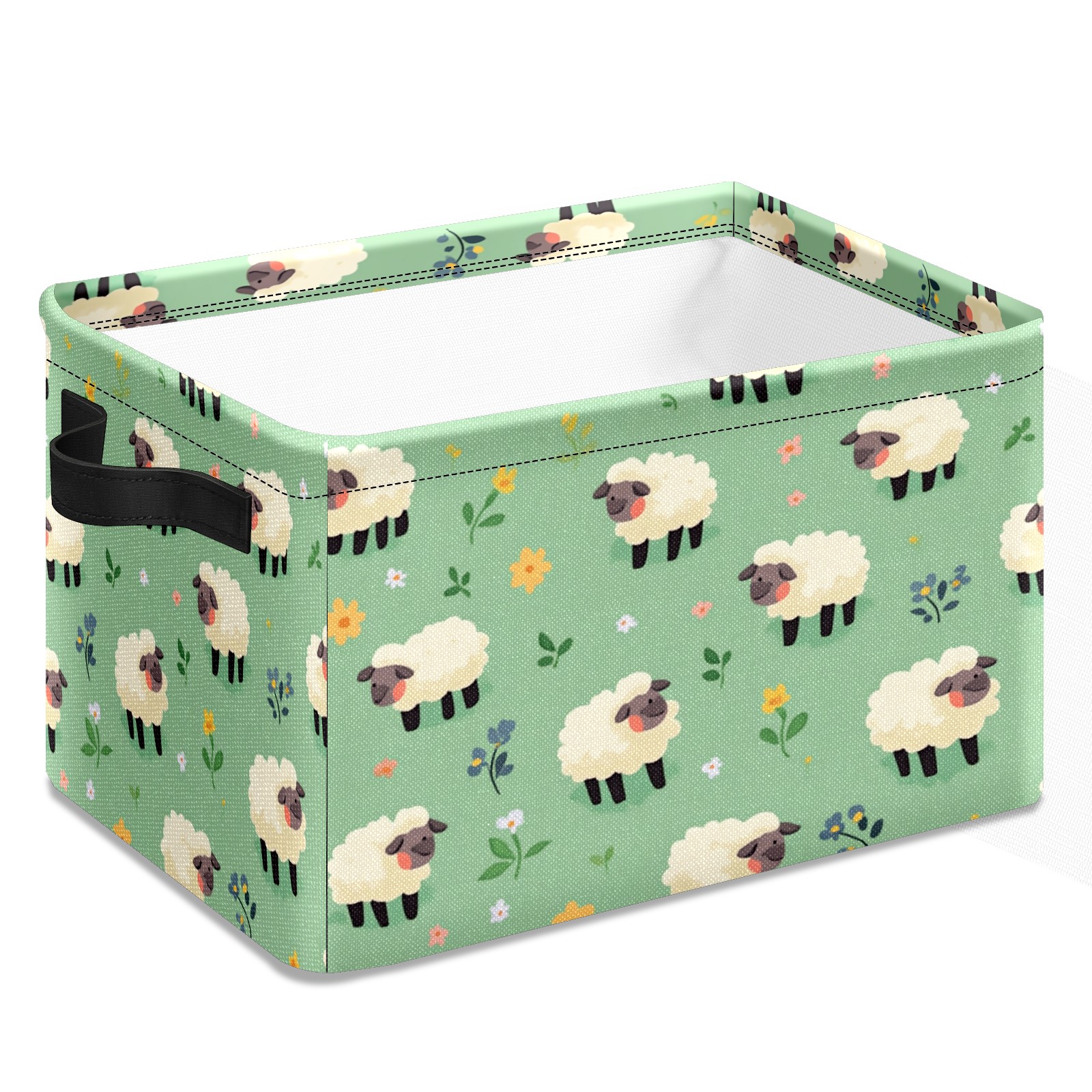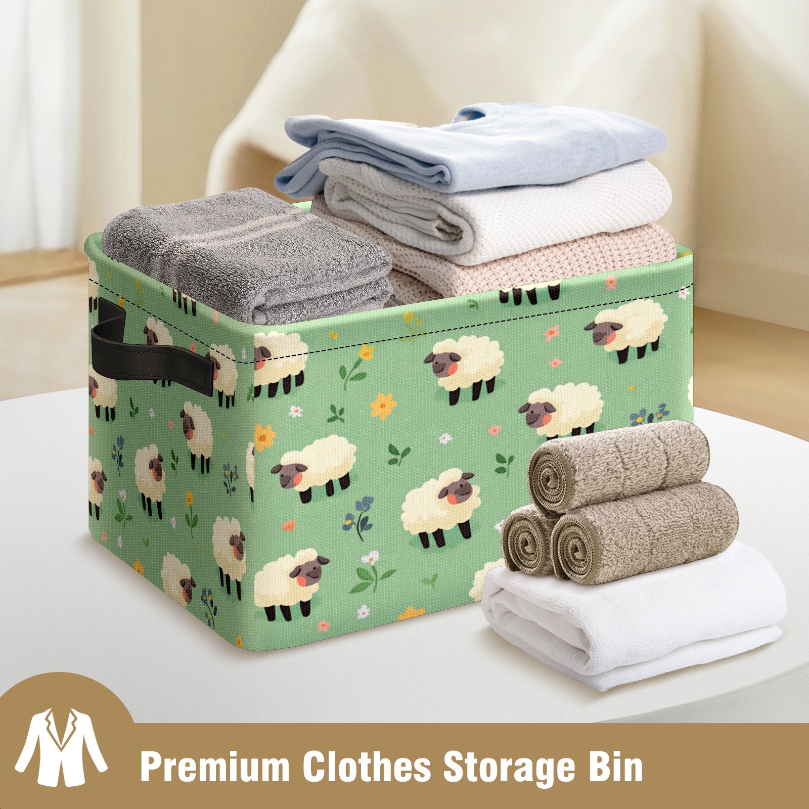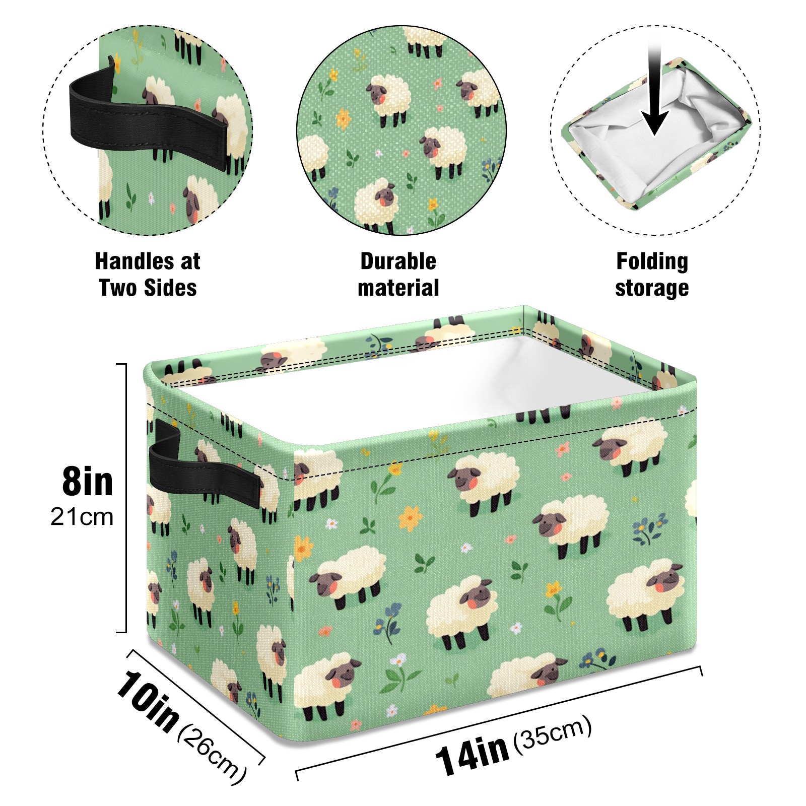 Foldable and Stackable Fabric Storage Basket for Home Organization with Handles, Decorative Closet Bins for Shelves and Laundry Storage( Cartoon Sheep)