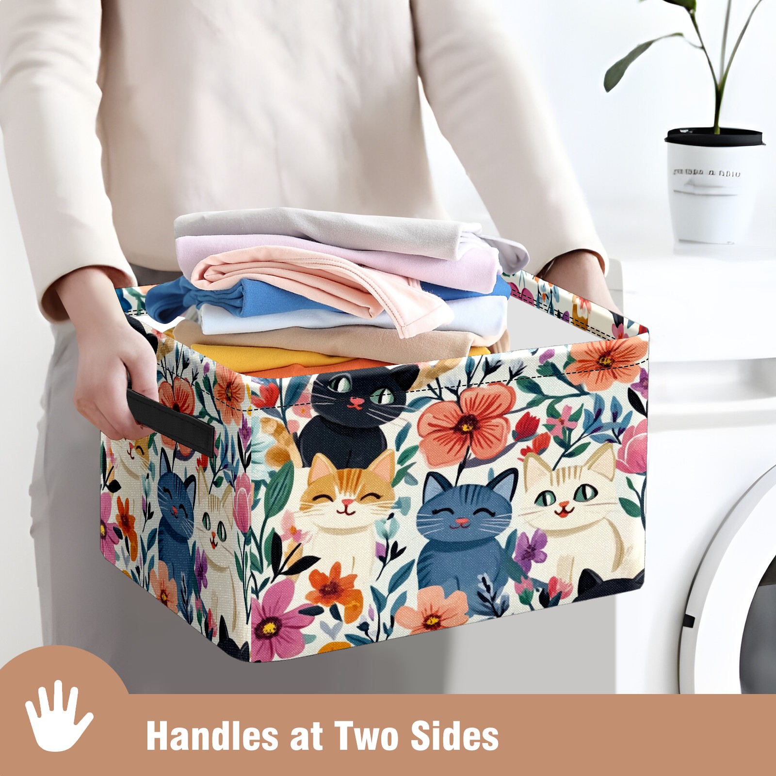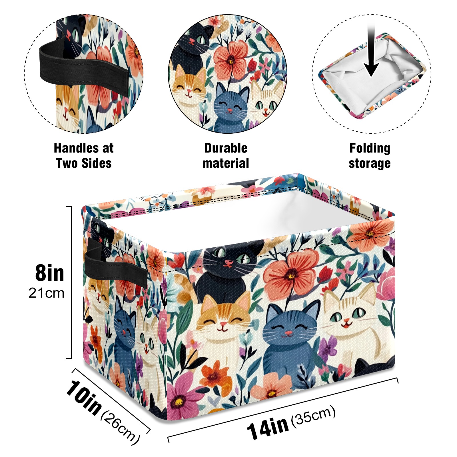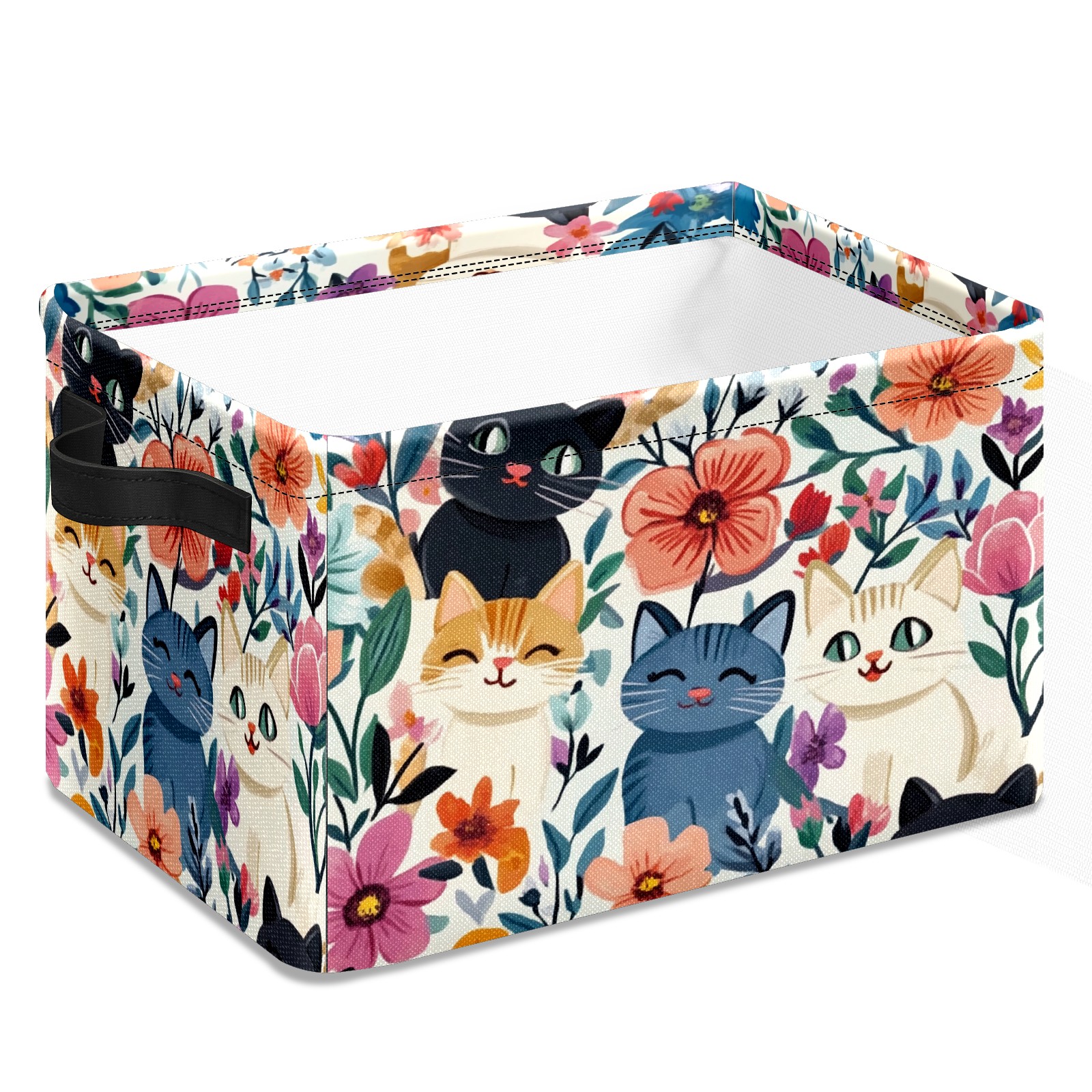 Foldable and Stackable Fabric Storage Basket for Home Organization with Handles, Decorative Closet Bins for Shelves and Laundry Storage( Adorable Cats)