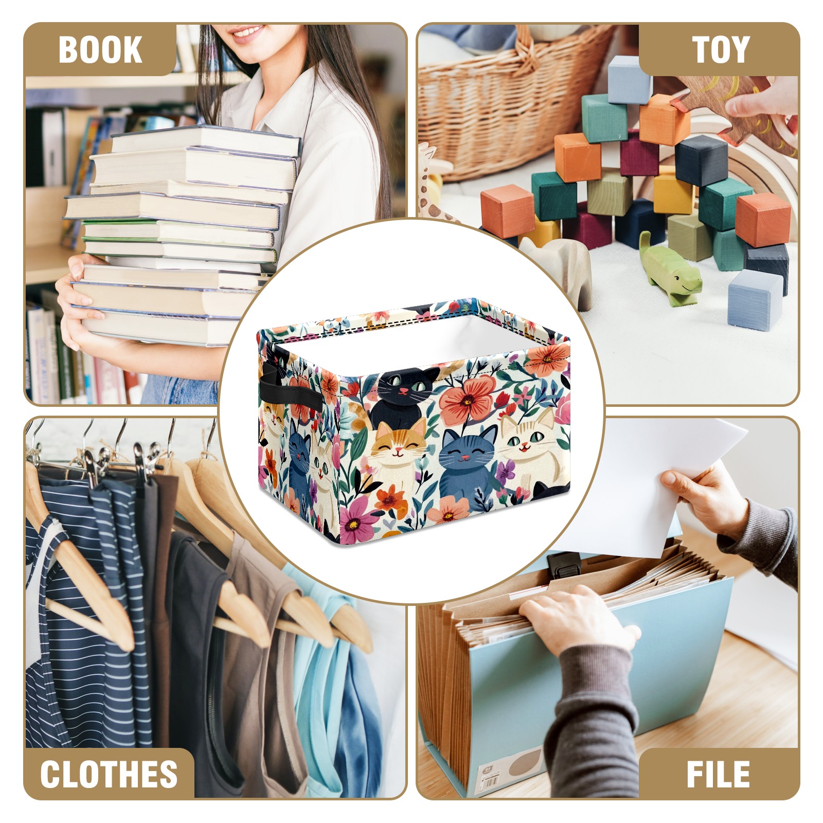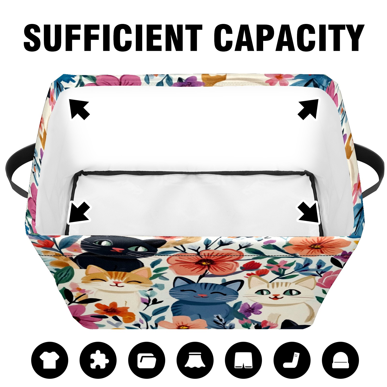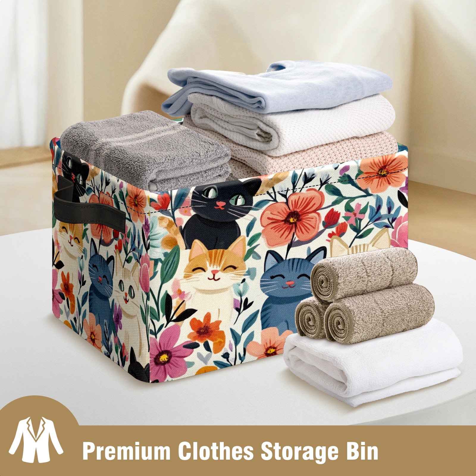 Foldable and Stackable Fabric Storage Basket for Home Organization with Handles, Decorative Closet Bins for Shelves and Laundry Storage( Adorable Cats)