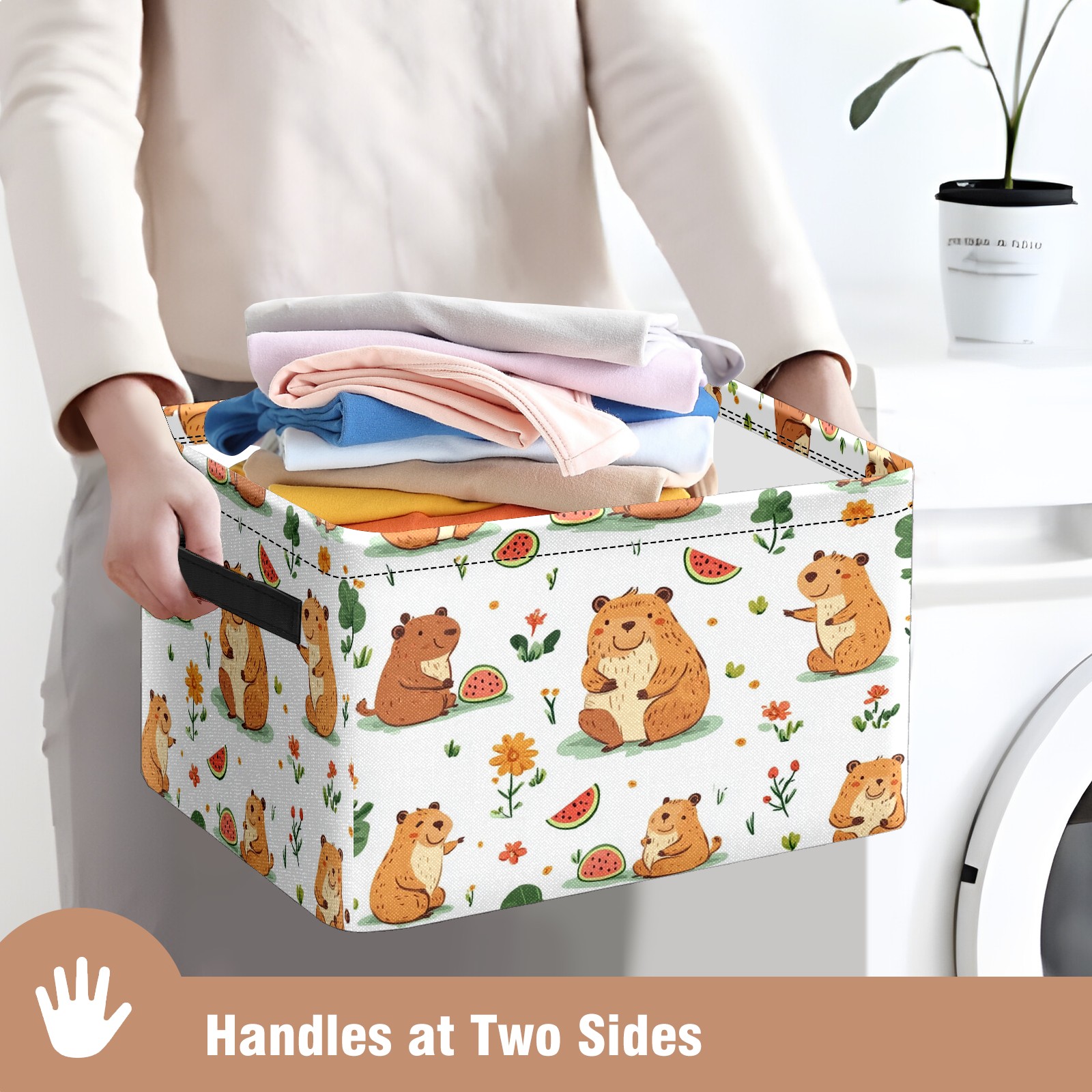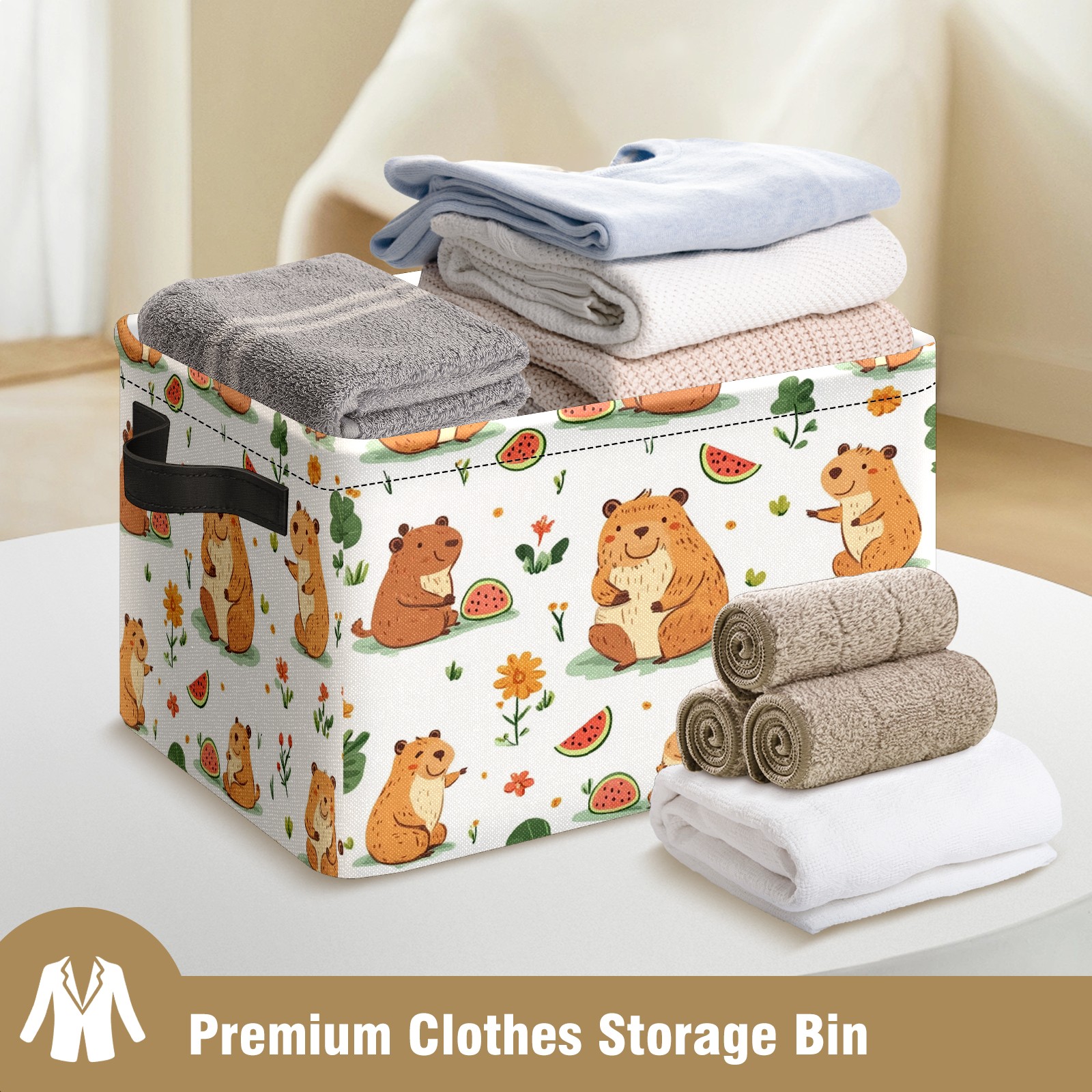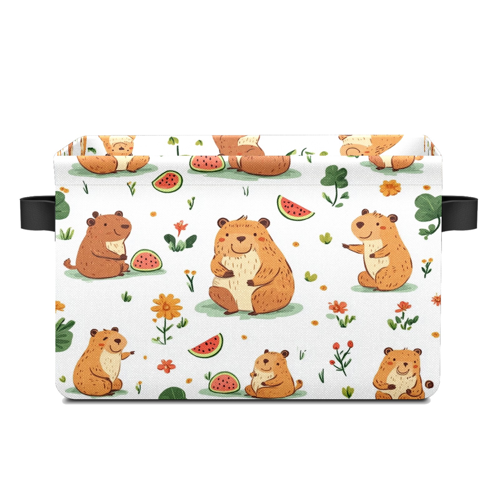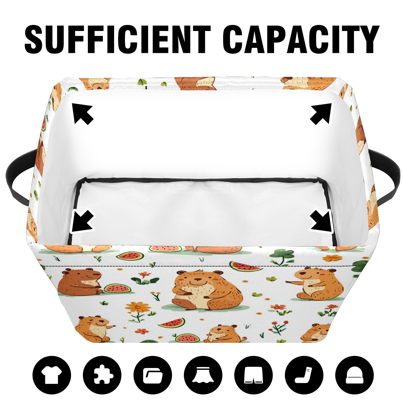 Foldable and Stackable Fabric Storage Basket for Home Organization with Handles, Decorative Closet Bins for Shelves and Laundry Storage( Capybara Pattern)