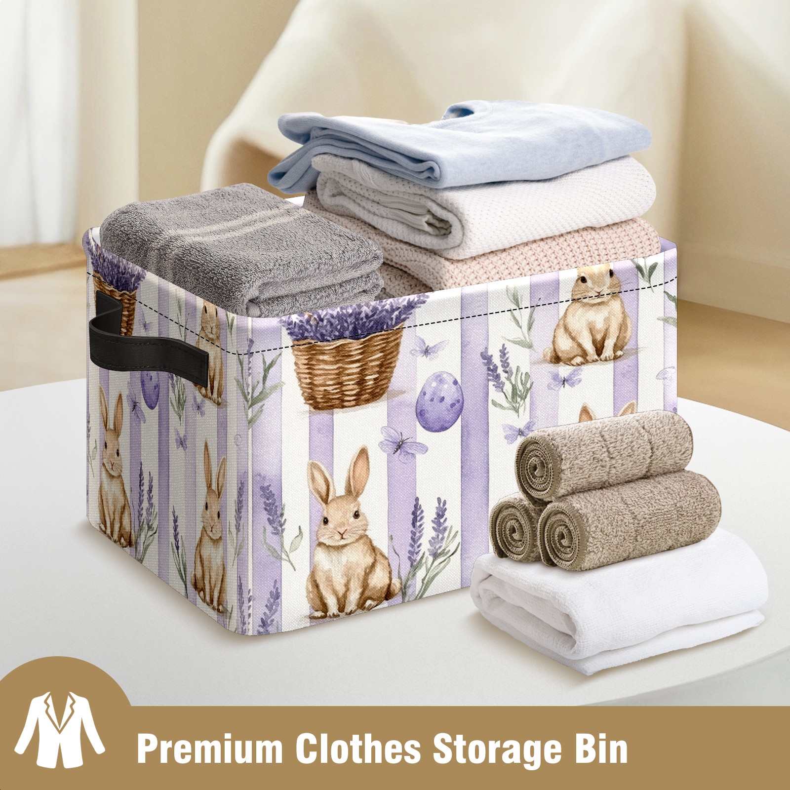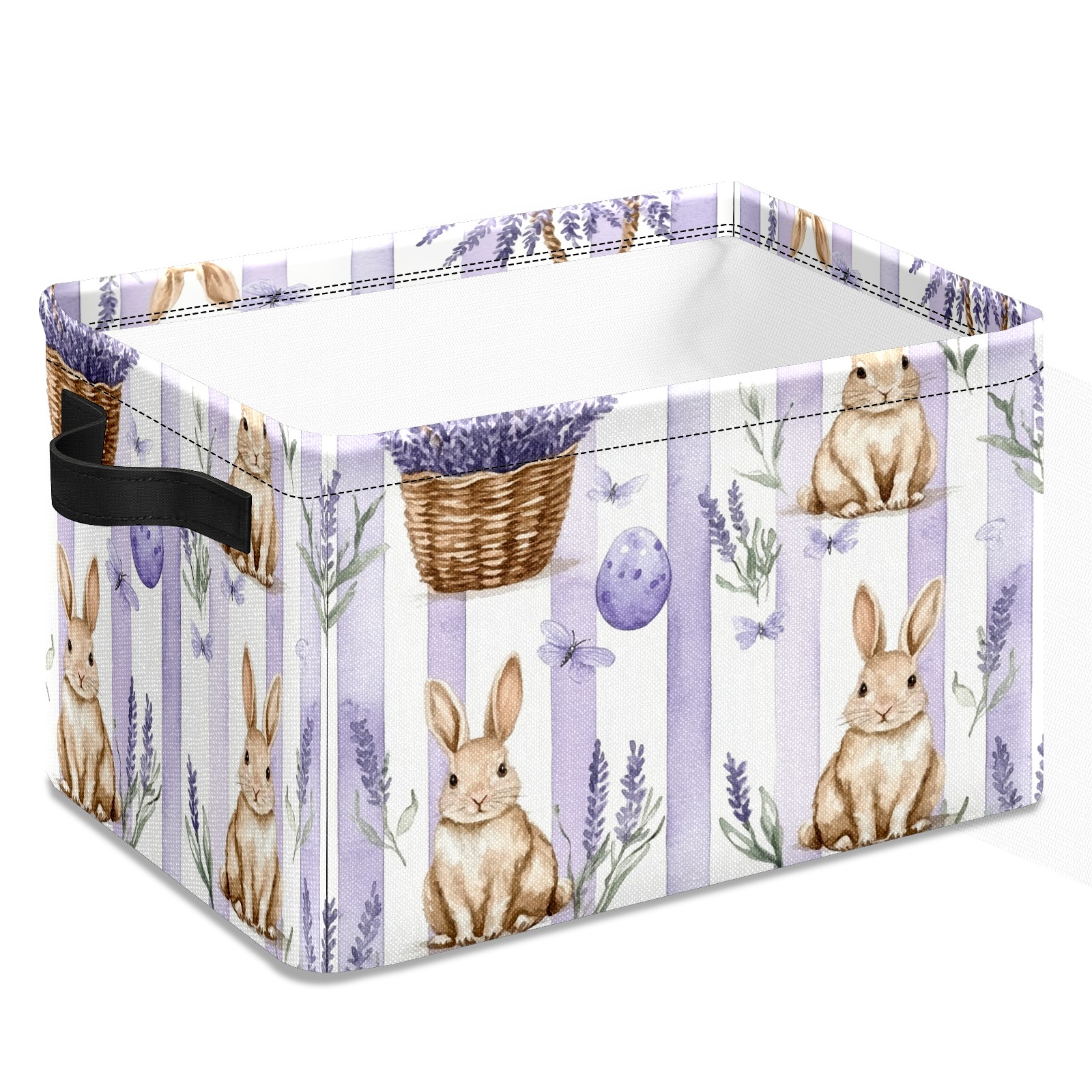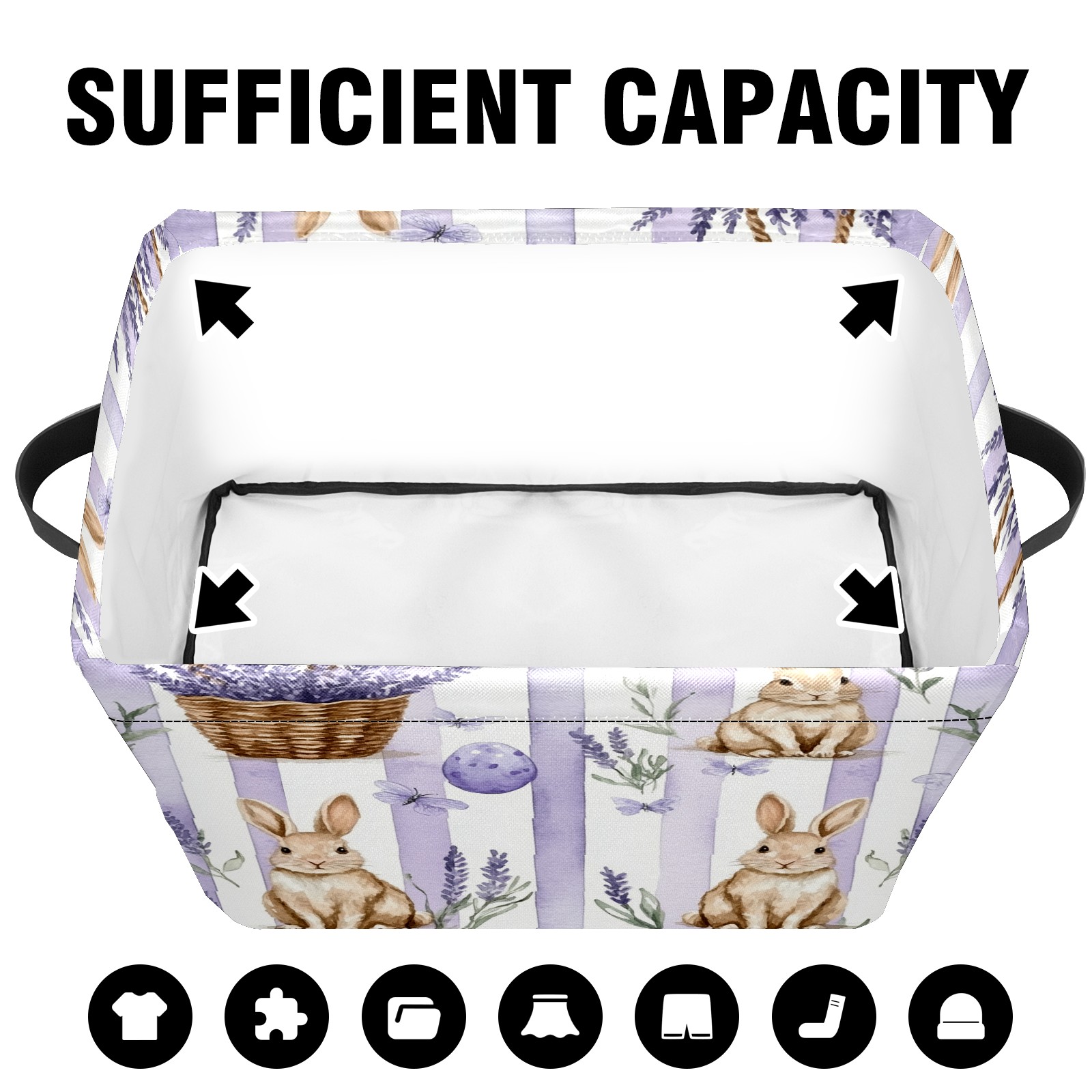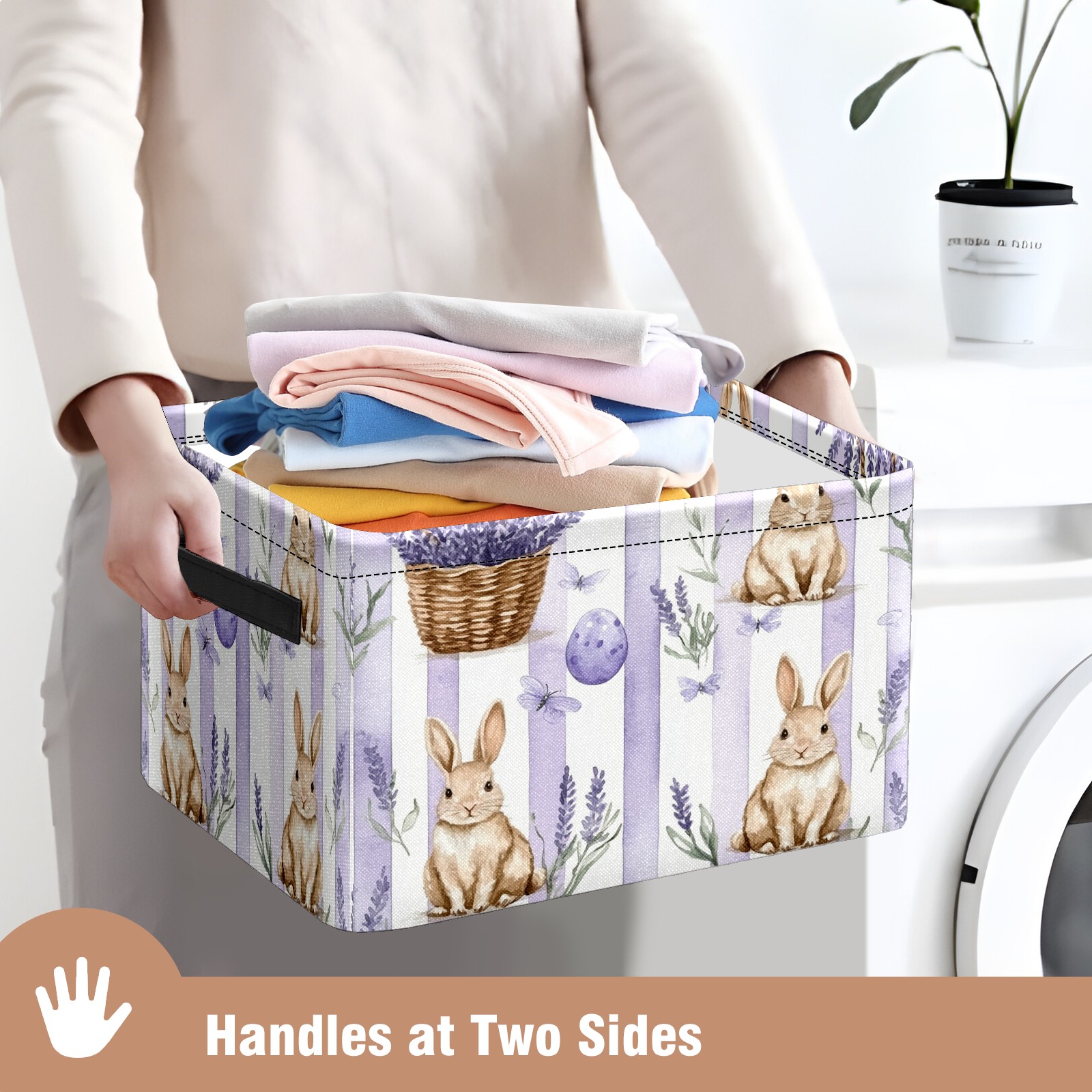 Foldable and Stackable Fabric Storage Basket for Home Organization with Handles, Decorative Closet Bins for Shelves and Laundry Storage( Bunnies)