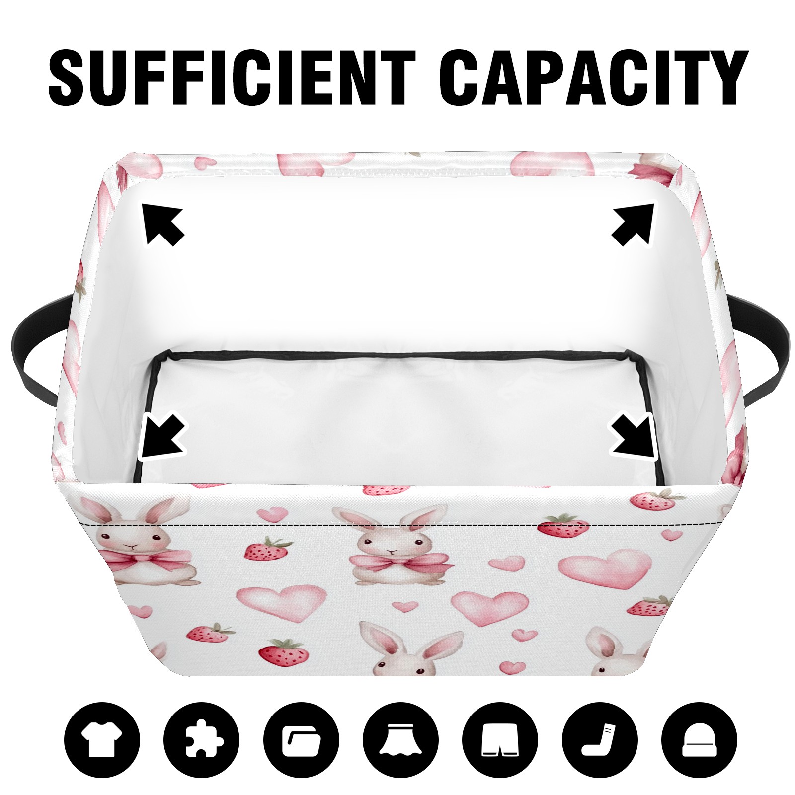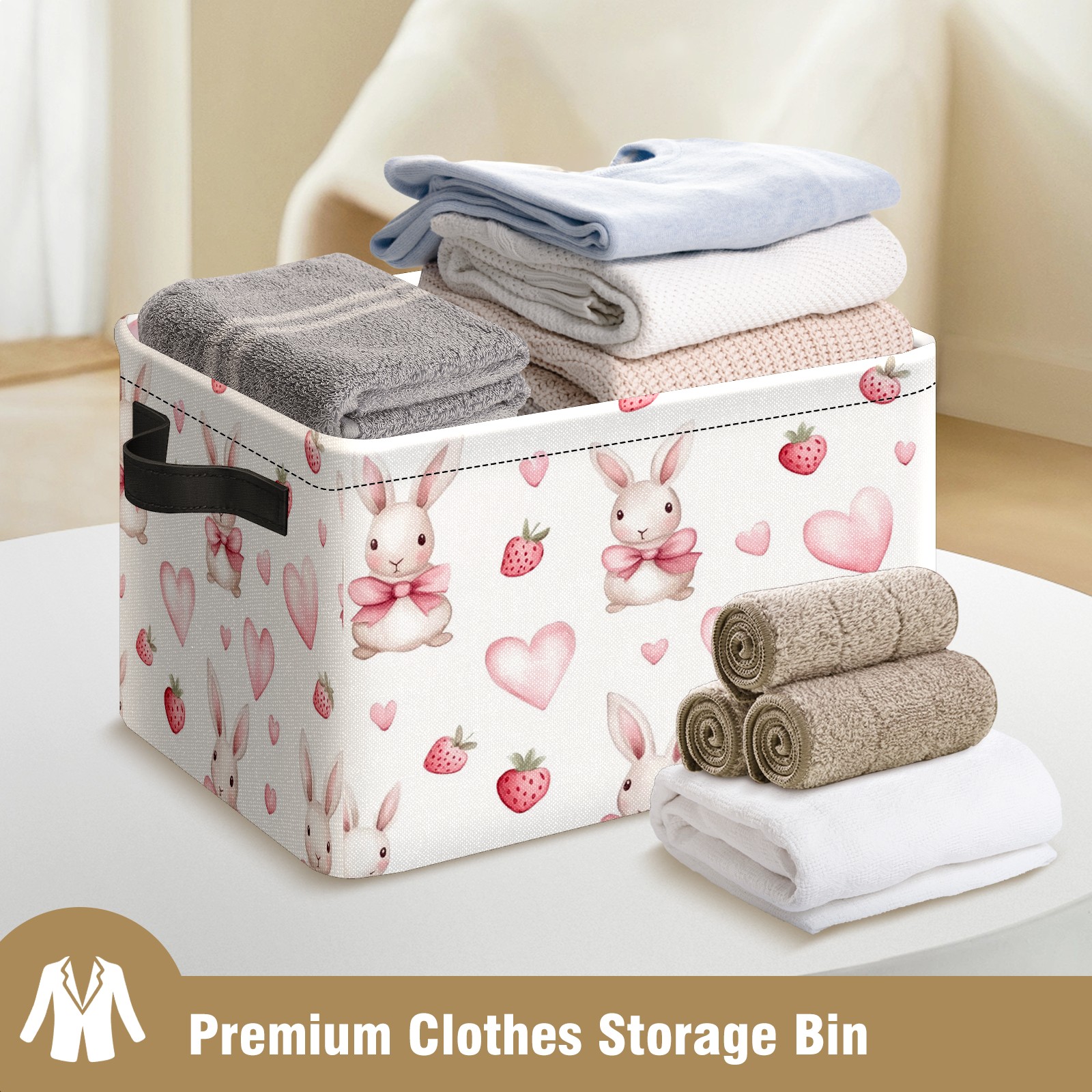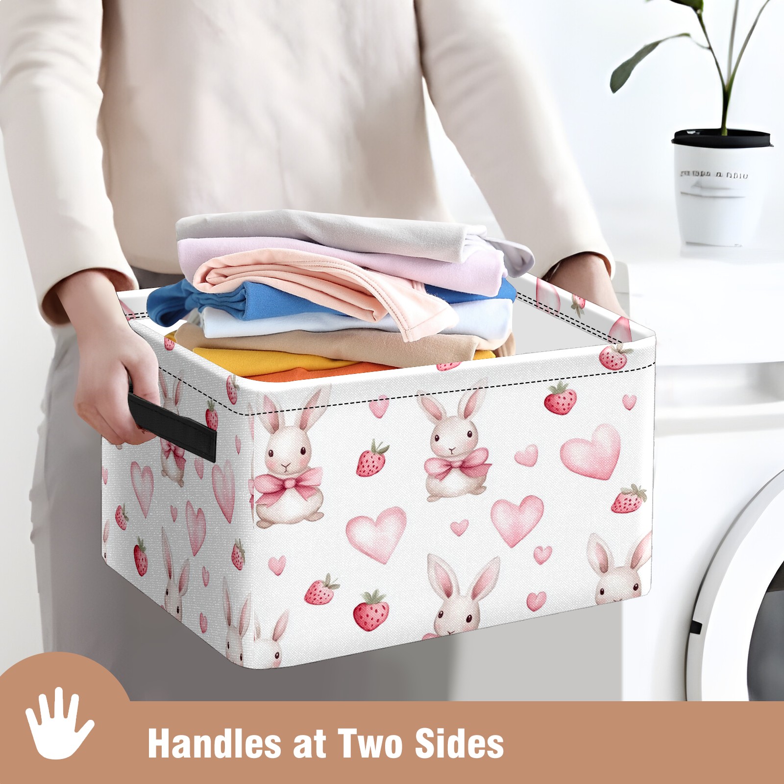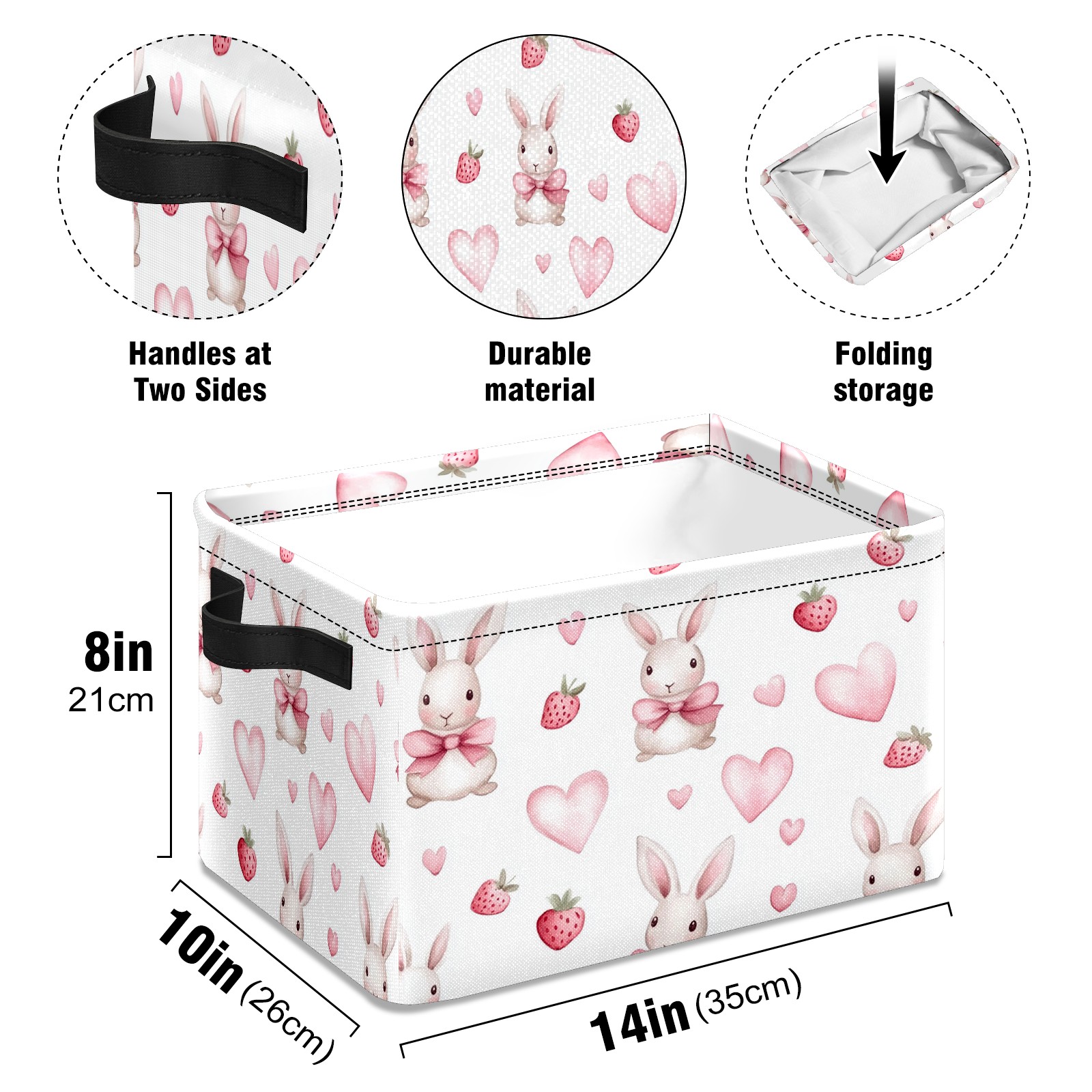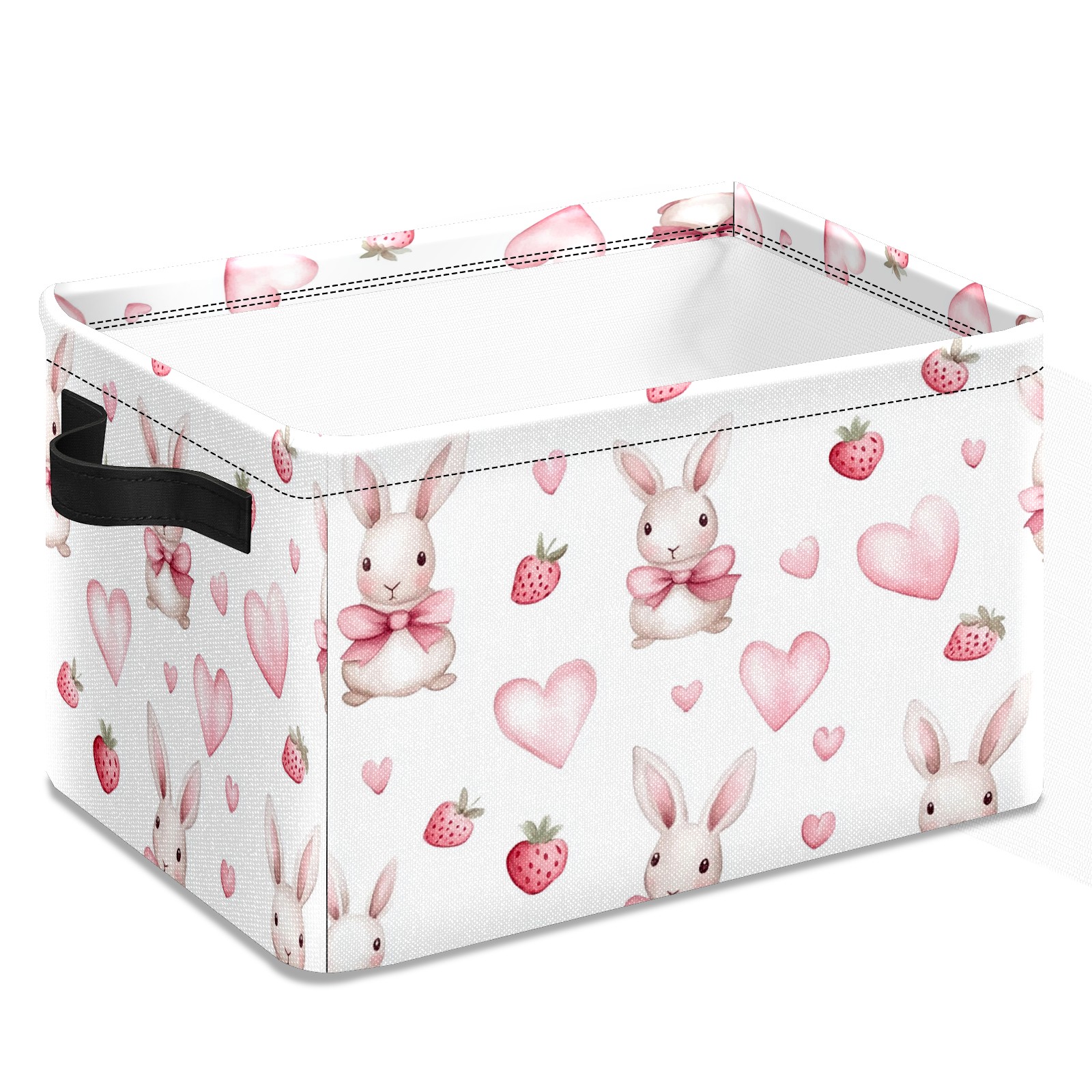 Foldable and Stackable Fabric Storage Basket for Home Organization with Handles, Decorative Closet Bins for Shelves and Laundry Storage( Bunnies And Pink Heart)