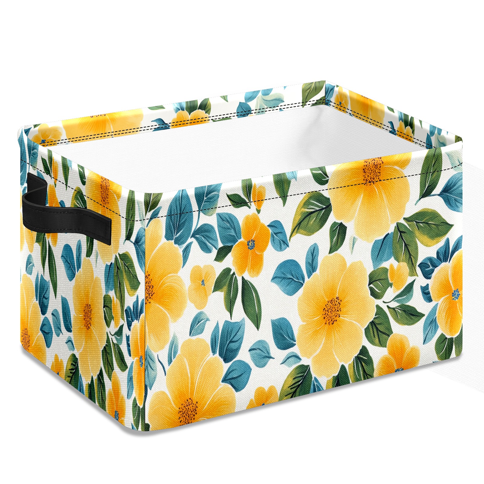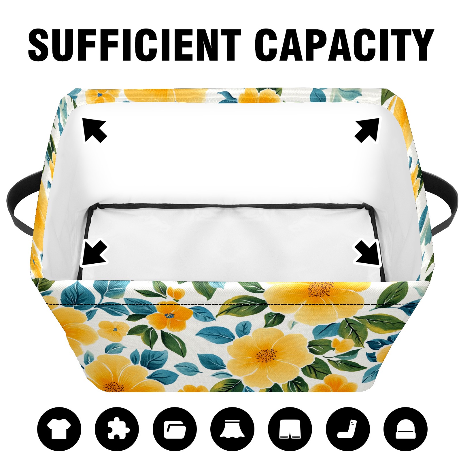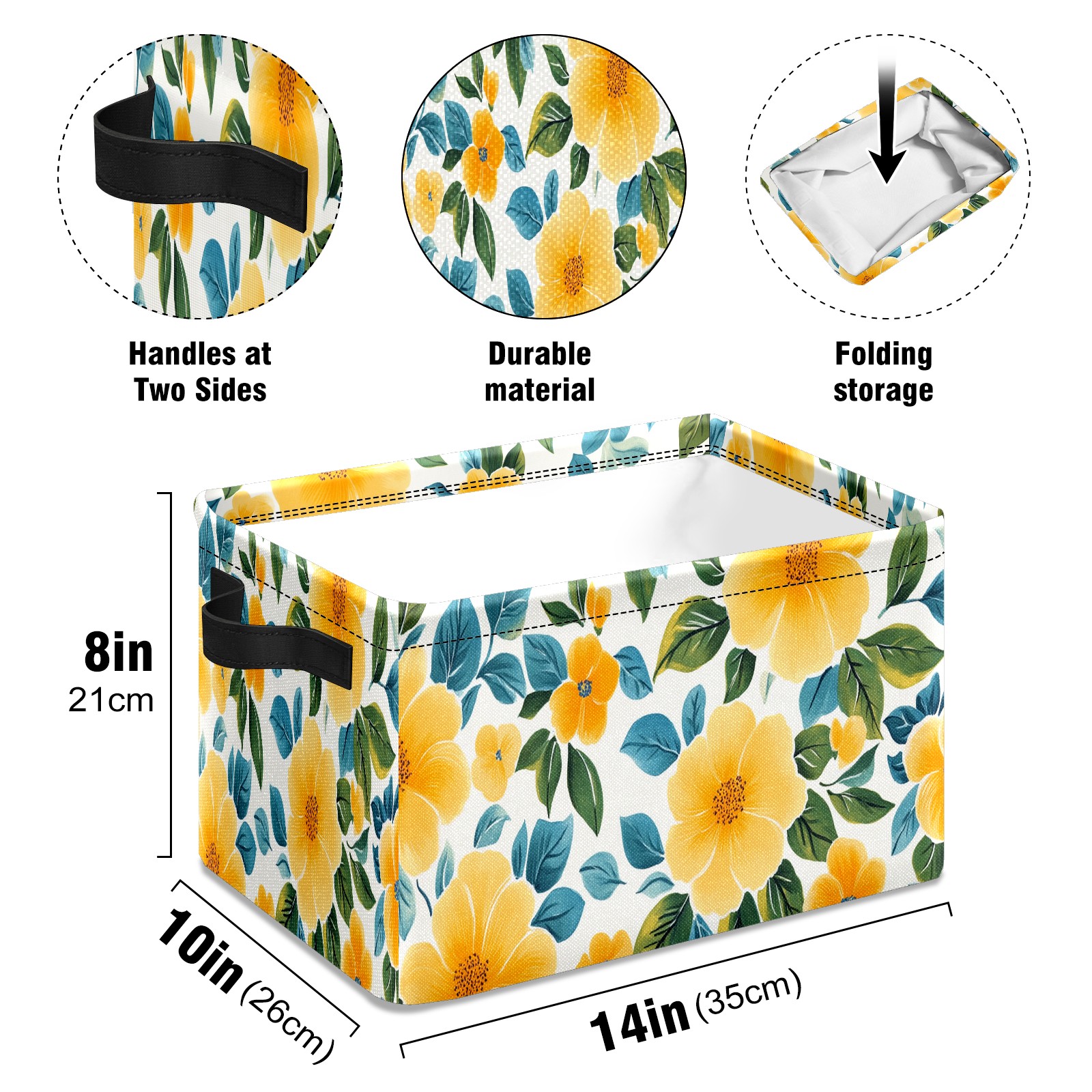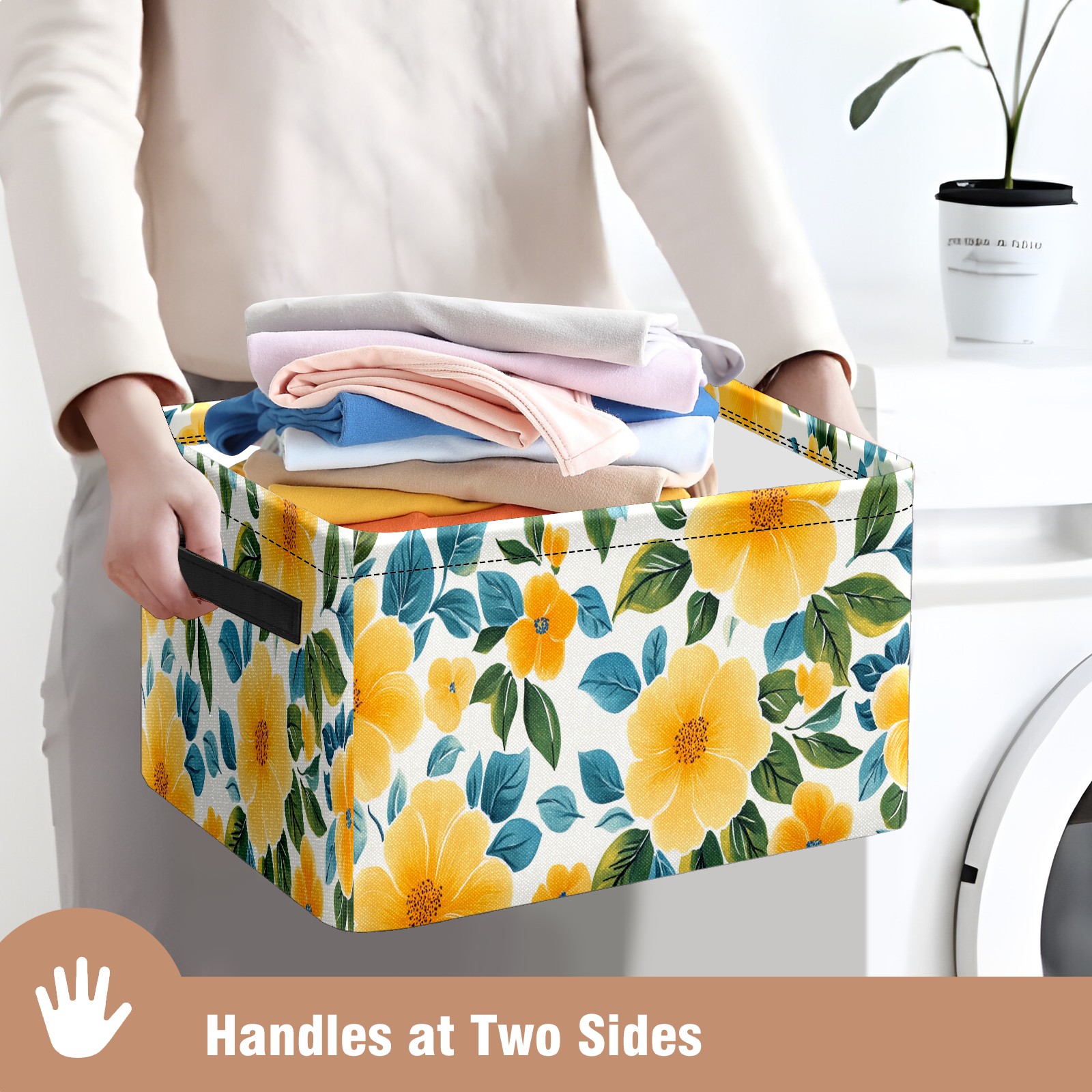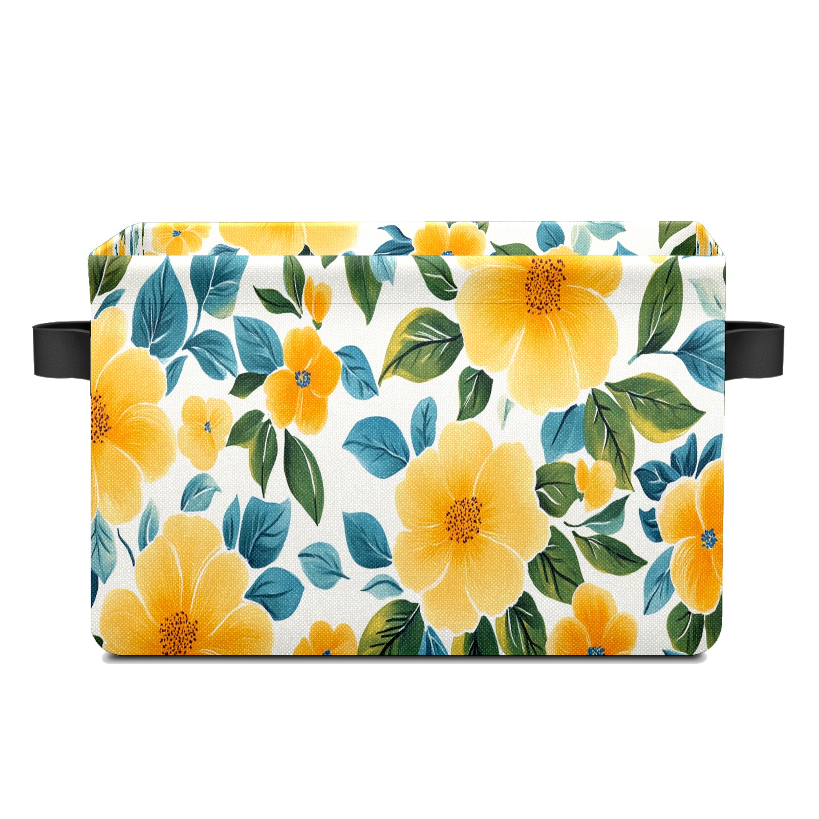 Foldable and Stackable Fabric Storage Basket for Home Organization with Handles, Decorative Closet Bins for Shelves and Laundry Storage( Yellow Green Floral)
