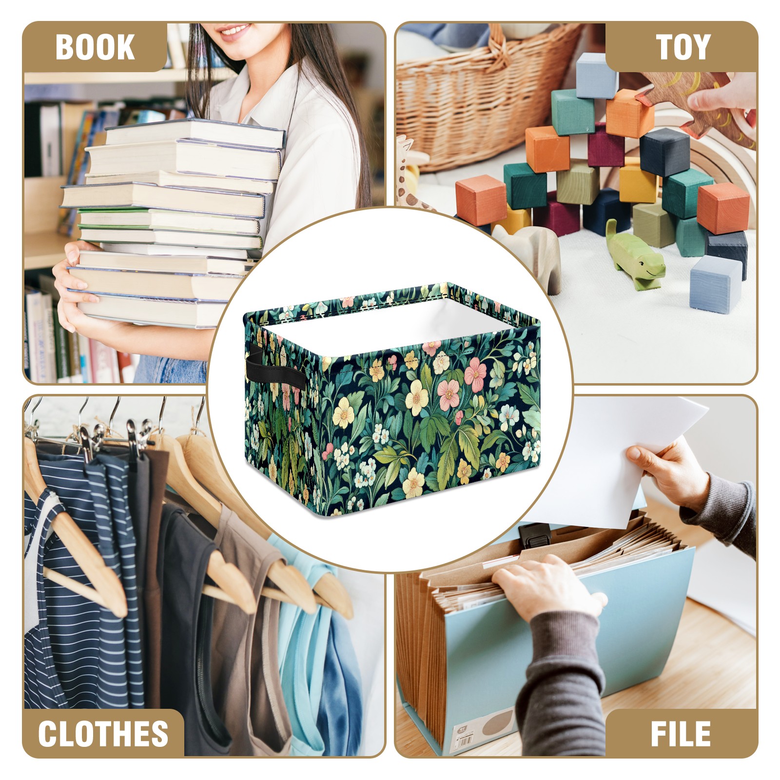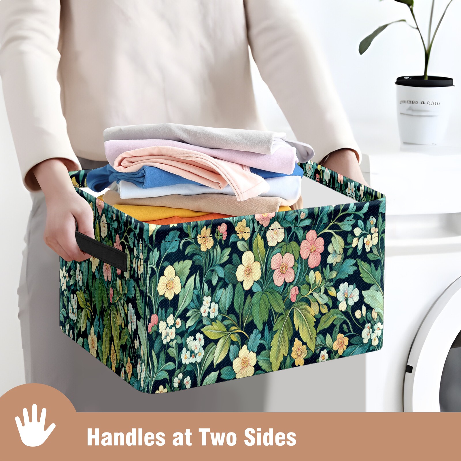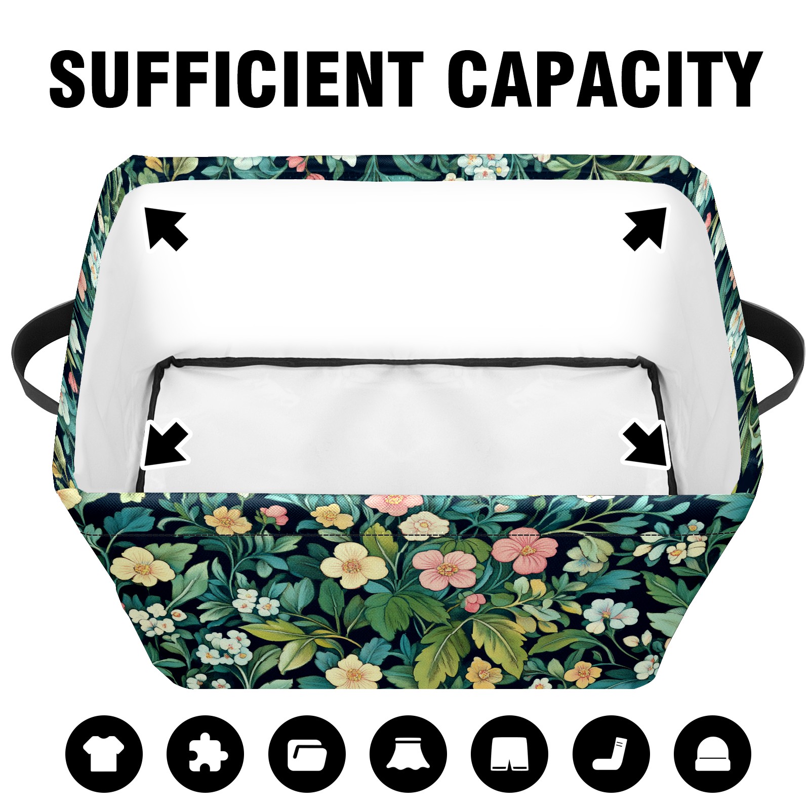 Foldable and Stackable Fabric Storage Basket for Home Organization with Handles, Decorative Closet Bins for Shelves and Laundry Storage( Colorful Floral)