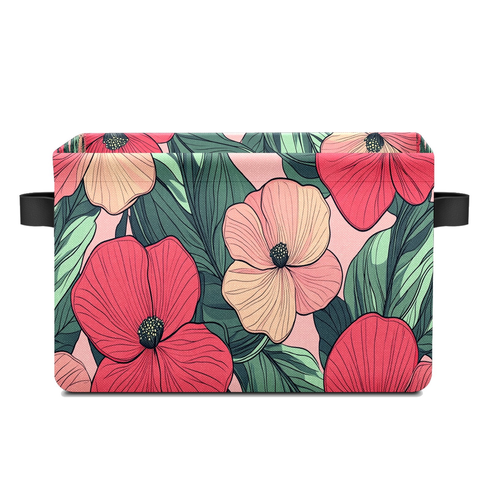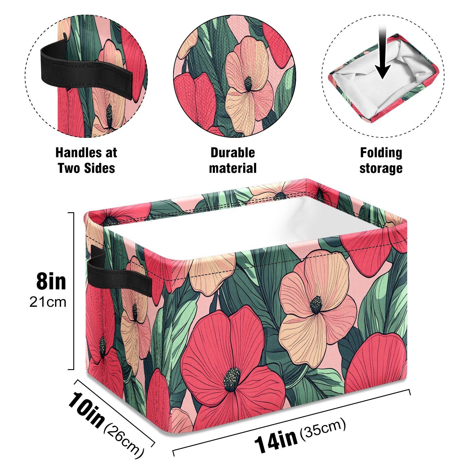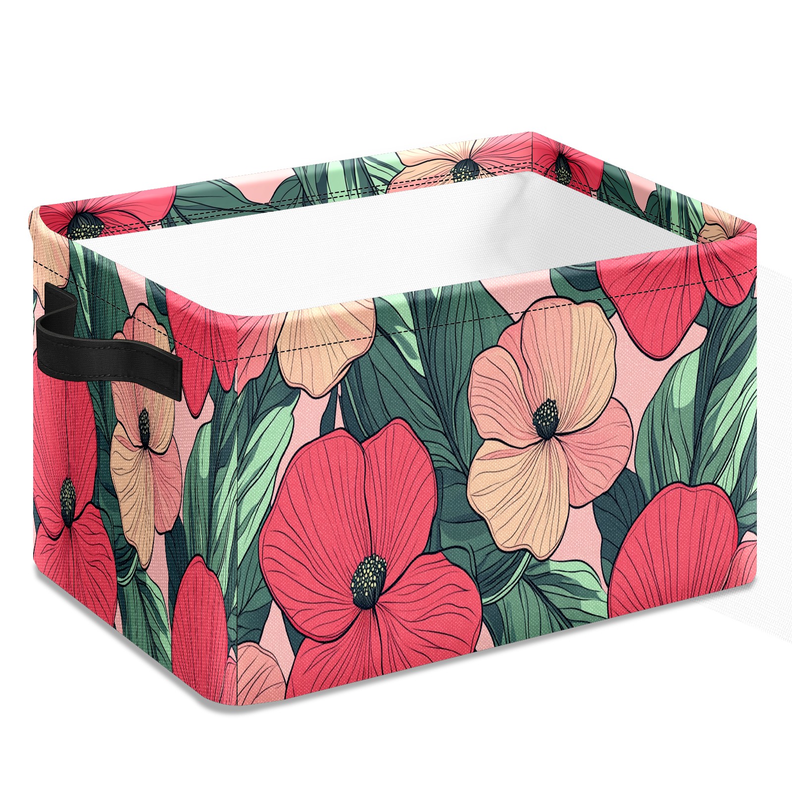 Foldable and Stackable Fabric Storage Basket for Home Organization with Handles, Decorative Closet Bins for Shelves and Laundry Storage( Red Pink Flowers)