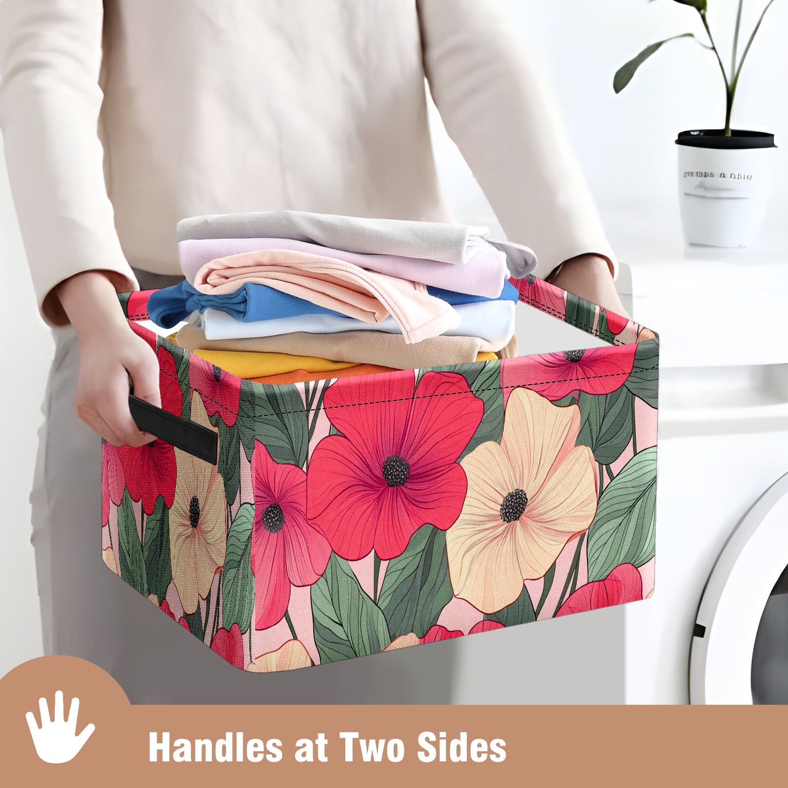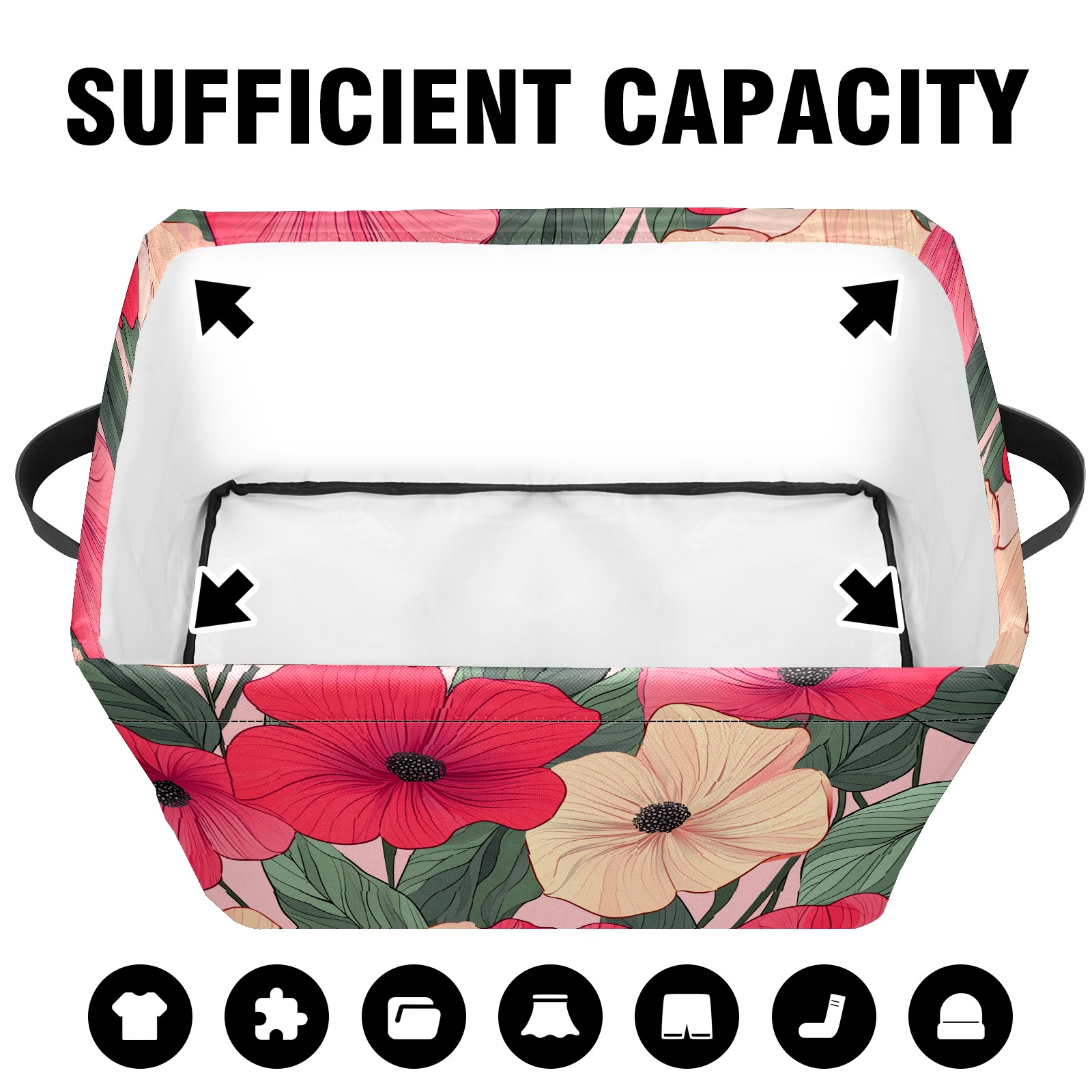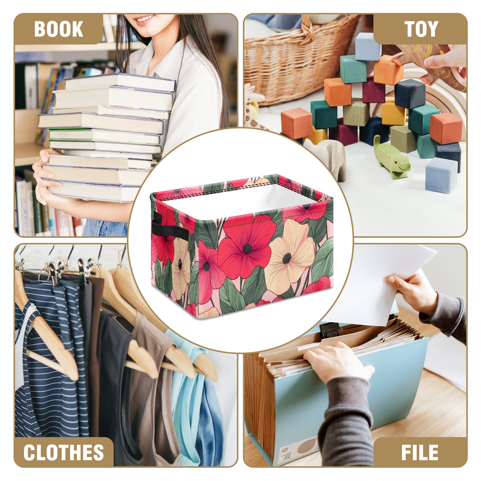 Foldable and Stackable Fabric Storage Basket for Home Organization with Handles, Decorative Closet Bins for Shelves and Laundry Storage( Red Pink Floral)