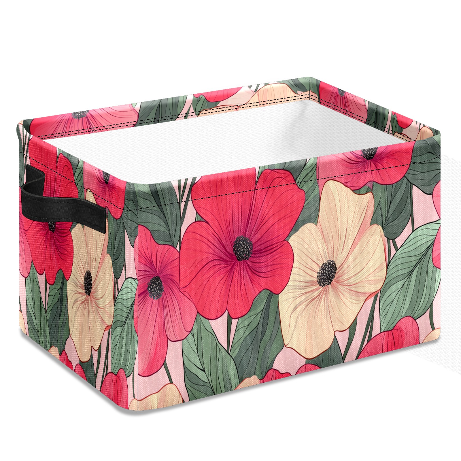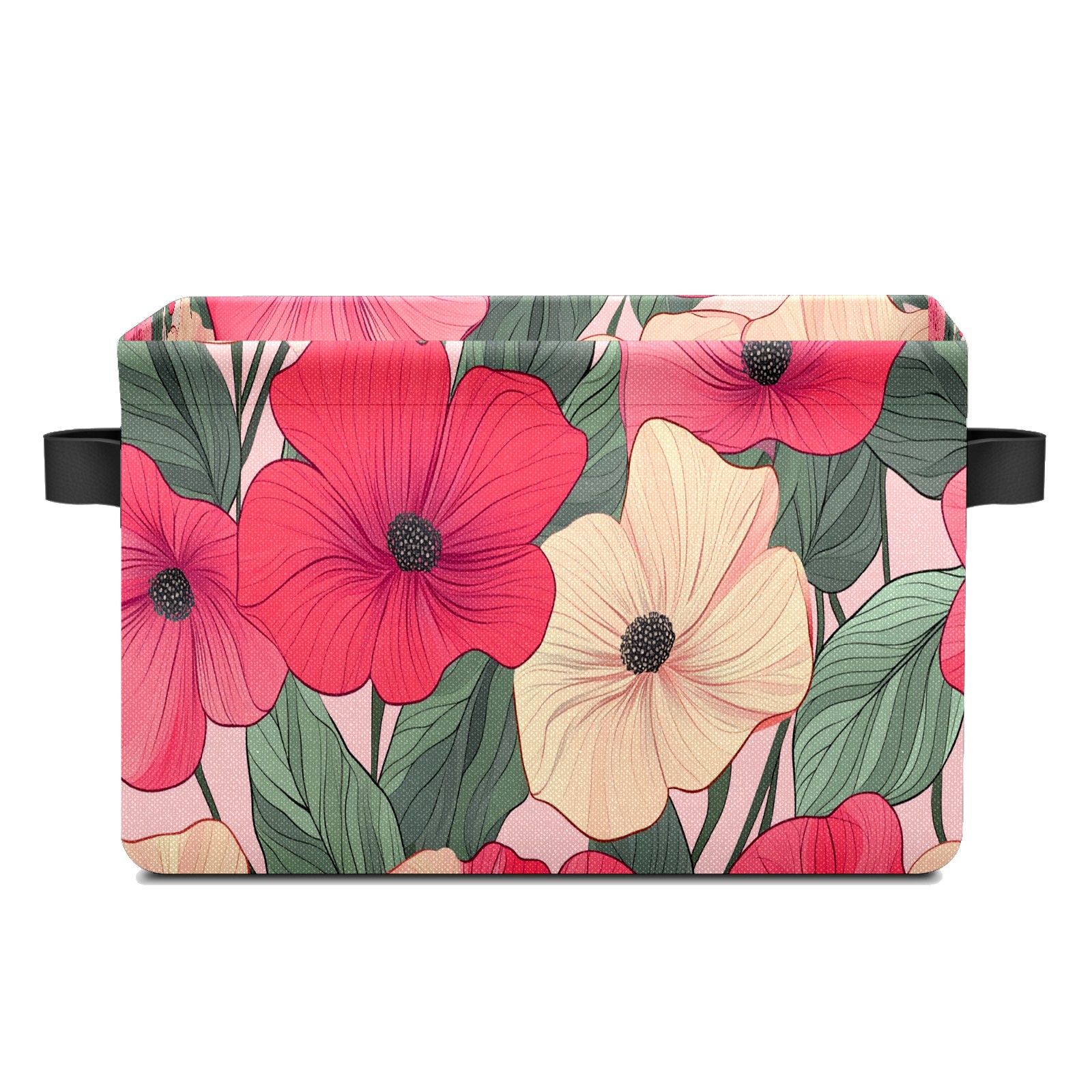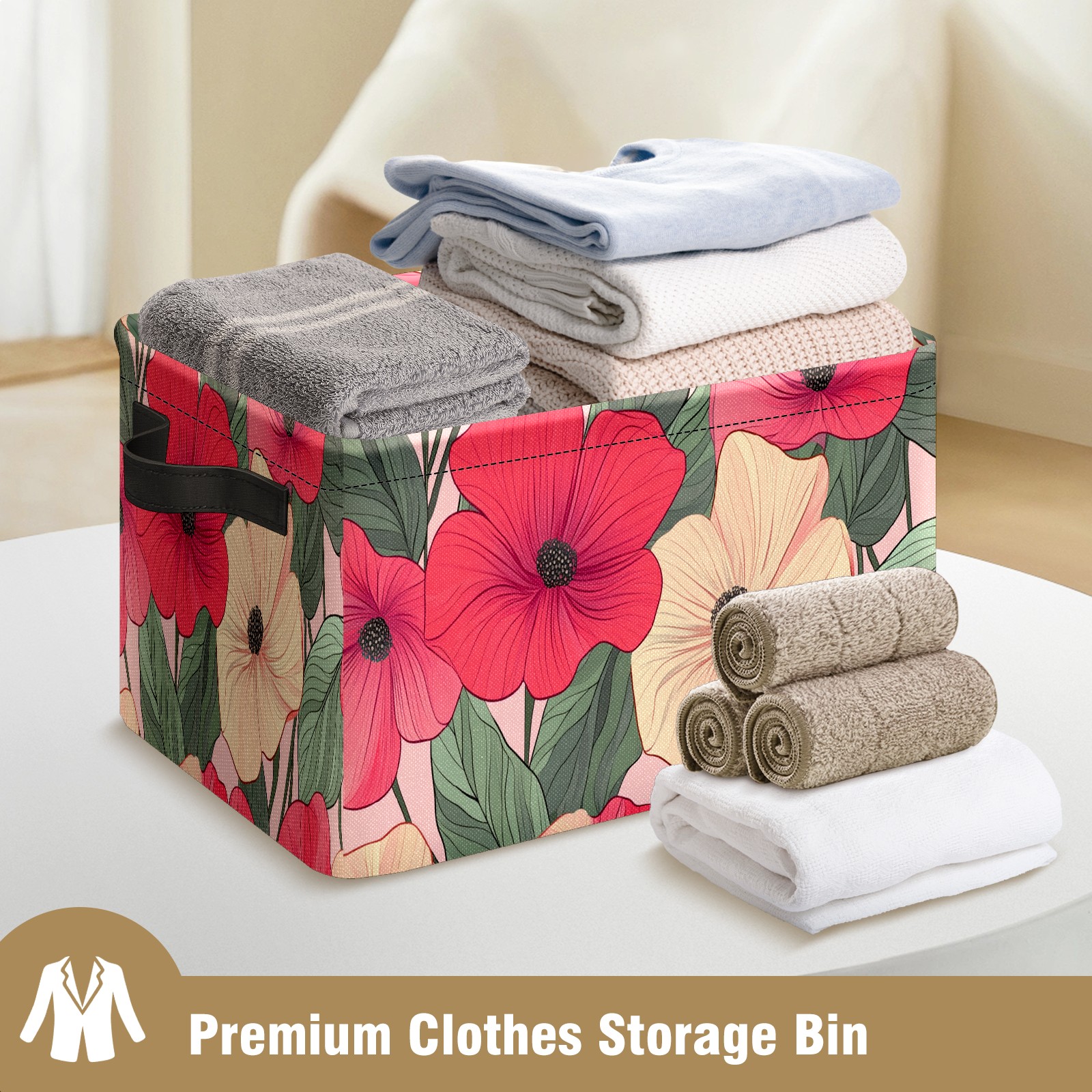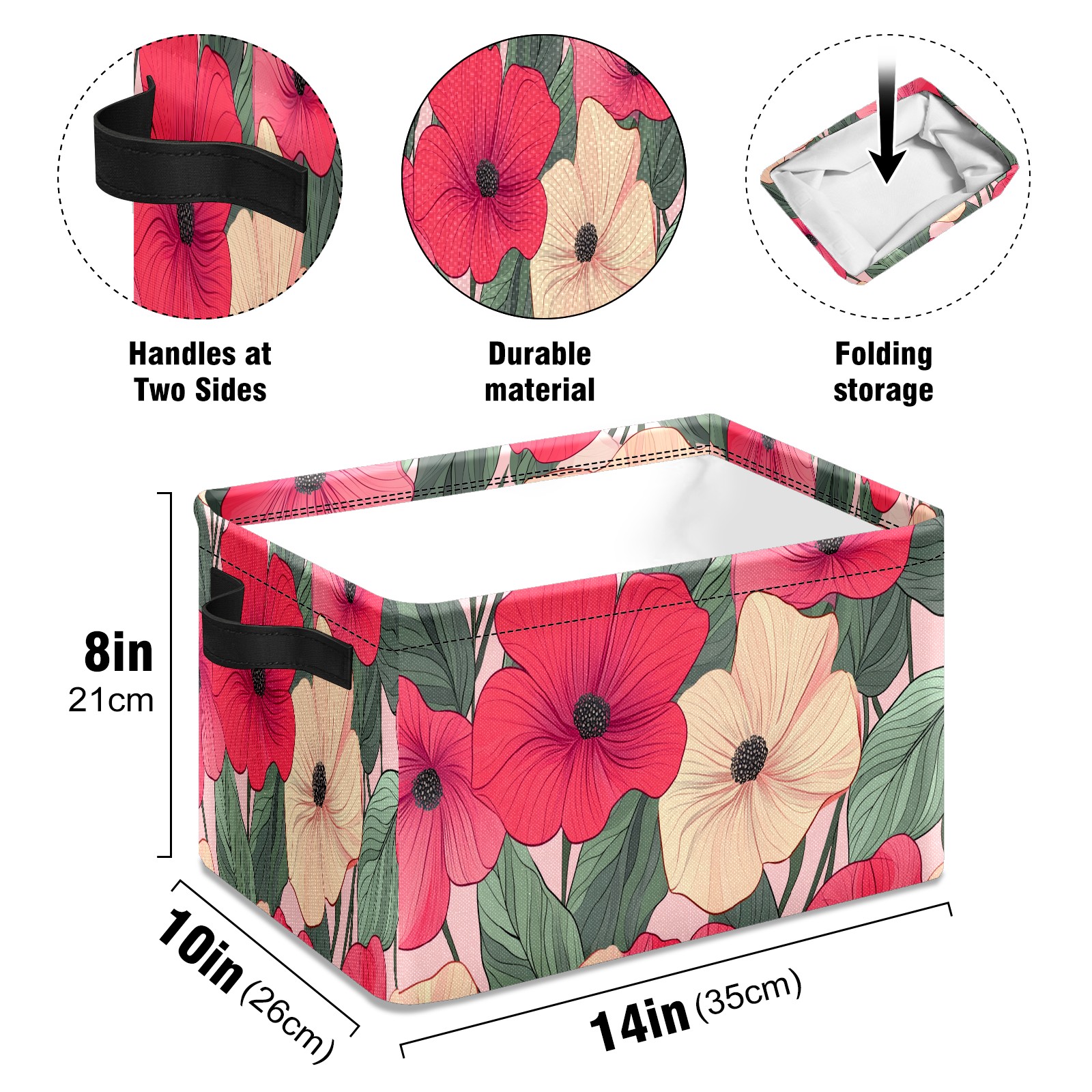 Foldable and Stackable Fabric Storage Basket for Home Organization with Handles, Decorative Closet Bins for Shelves and Laundry Storage( Red Pink Floral)