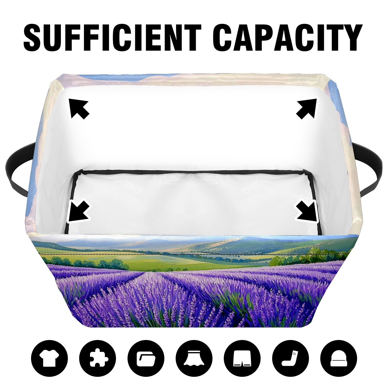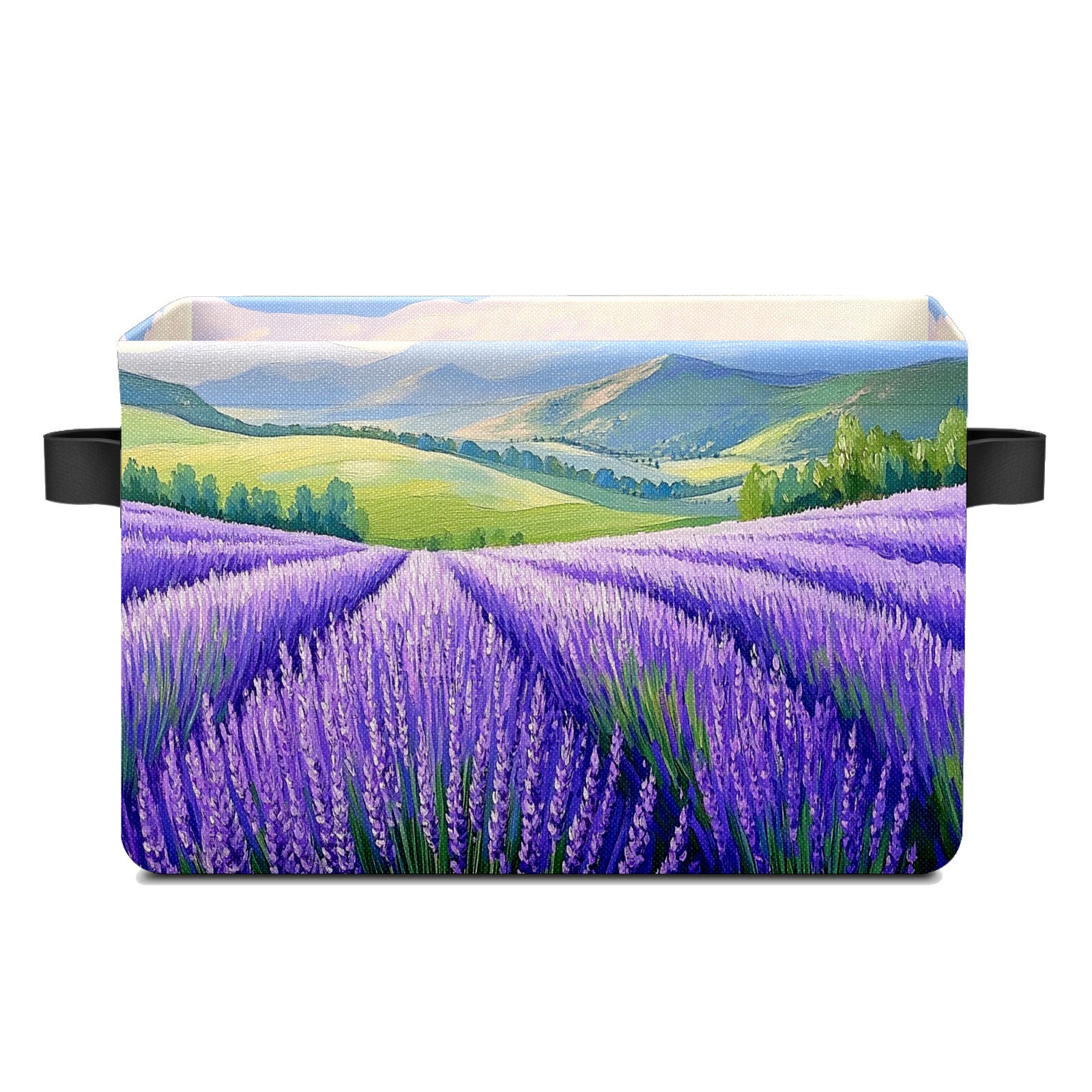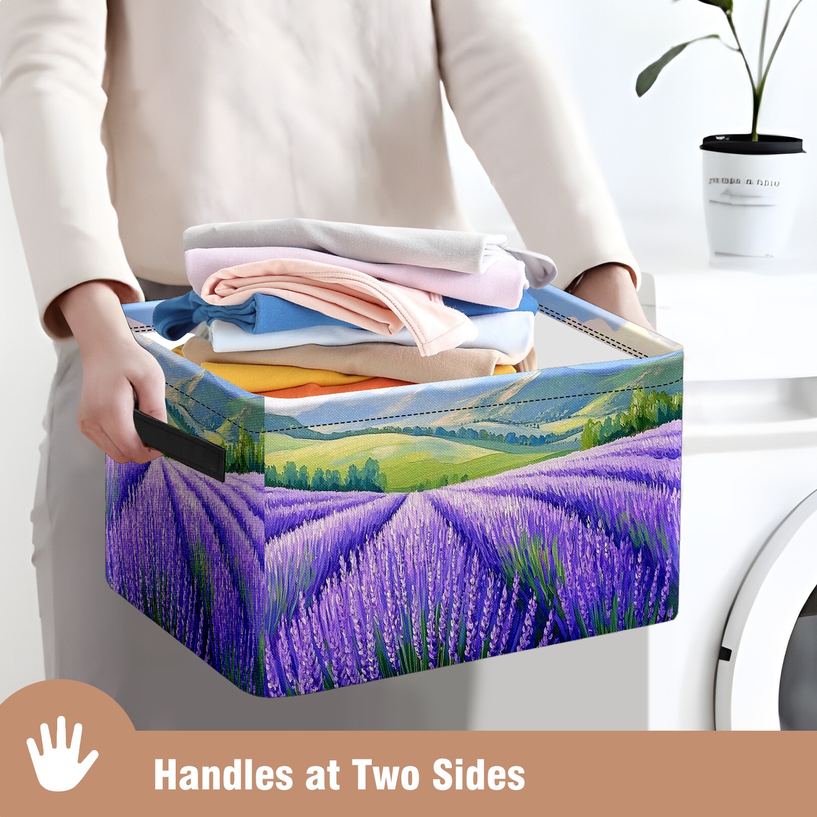 Foldable and Stackable Fabric Storage Basket for Home Organization with Handles, Decorative Closet Bins for Shelves and Laundry Storage( Painting Lavender)