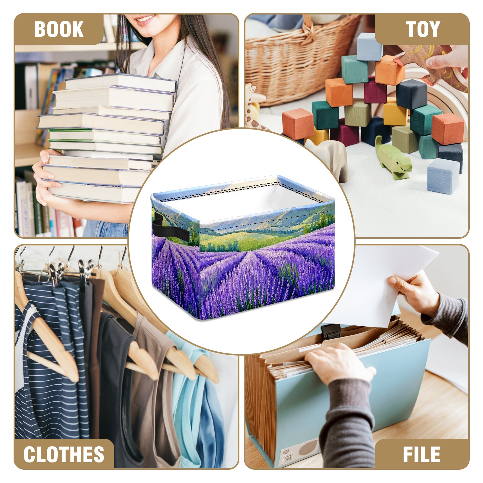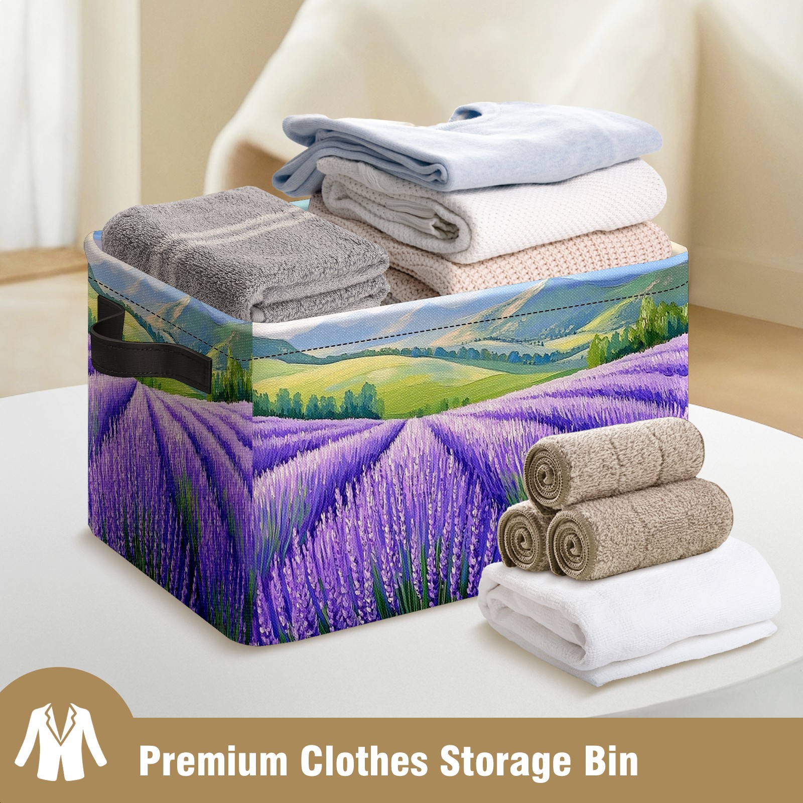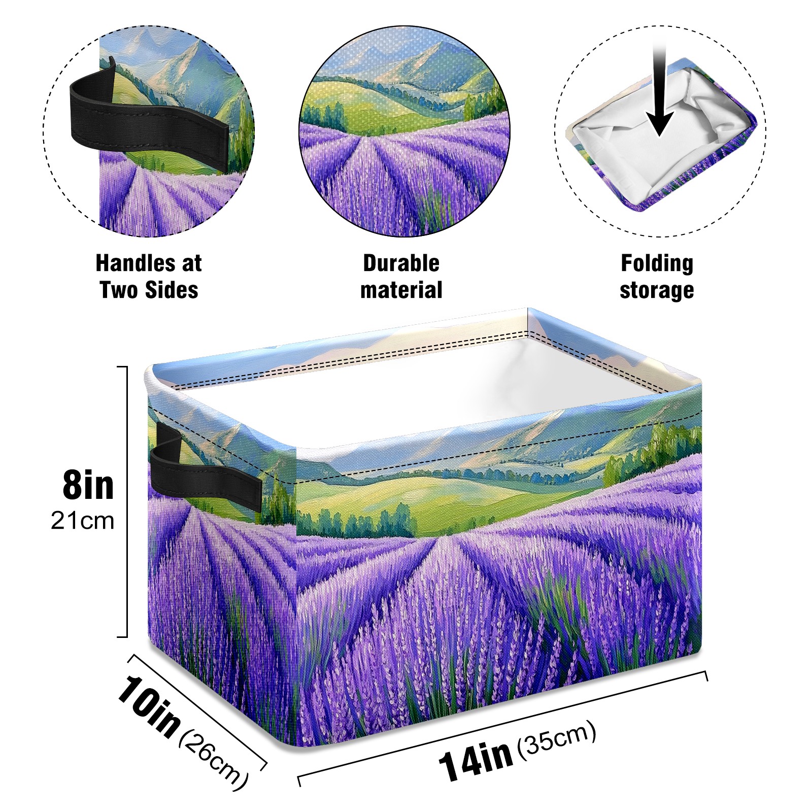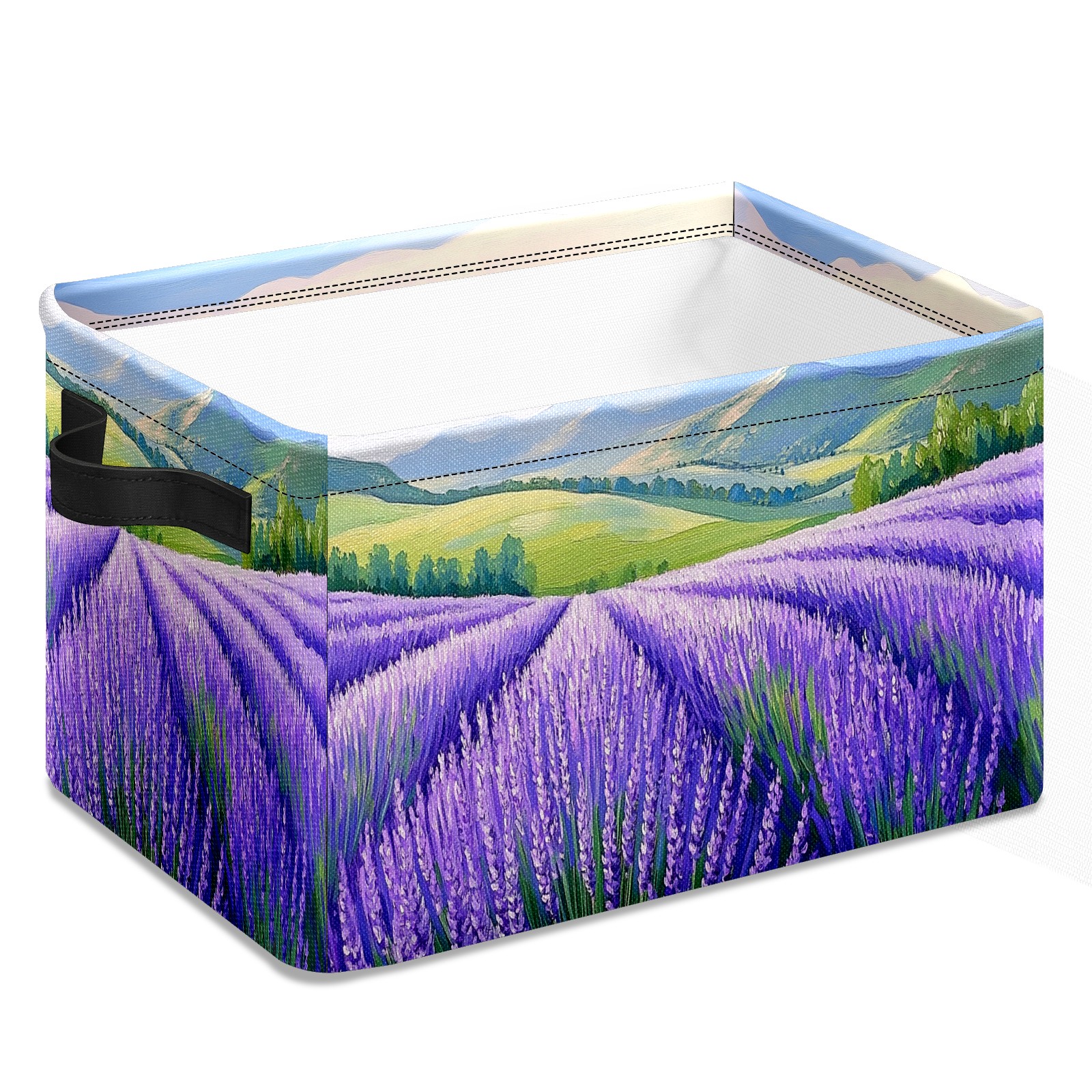 Foldable and Stackable Fabric Storage Basket for Home Organization with Handles, Decorative Closet Bins for Shelves and Laundry Storage( Painting Lavender)