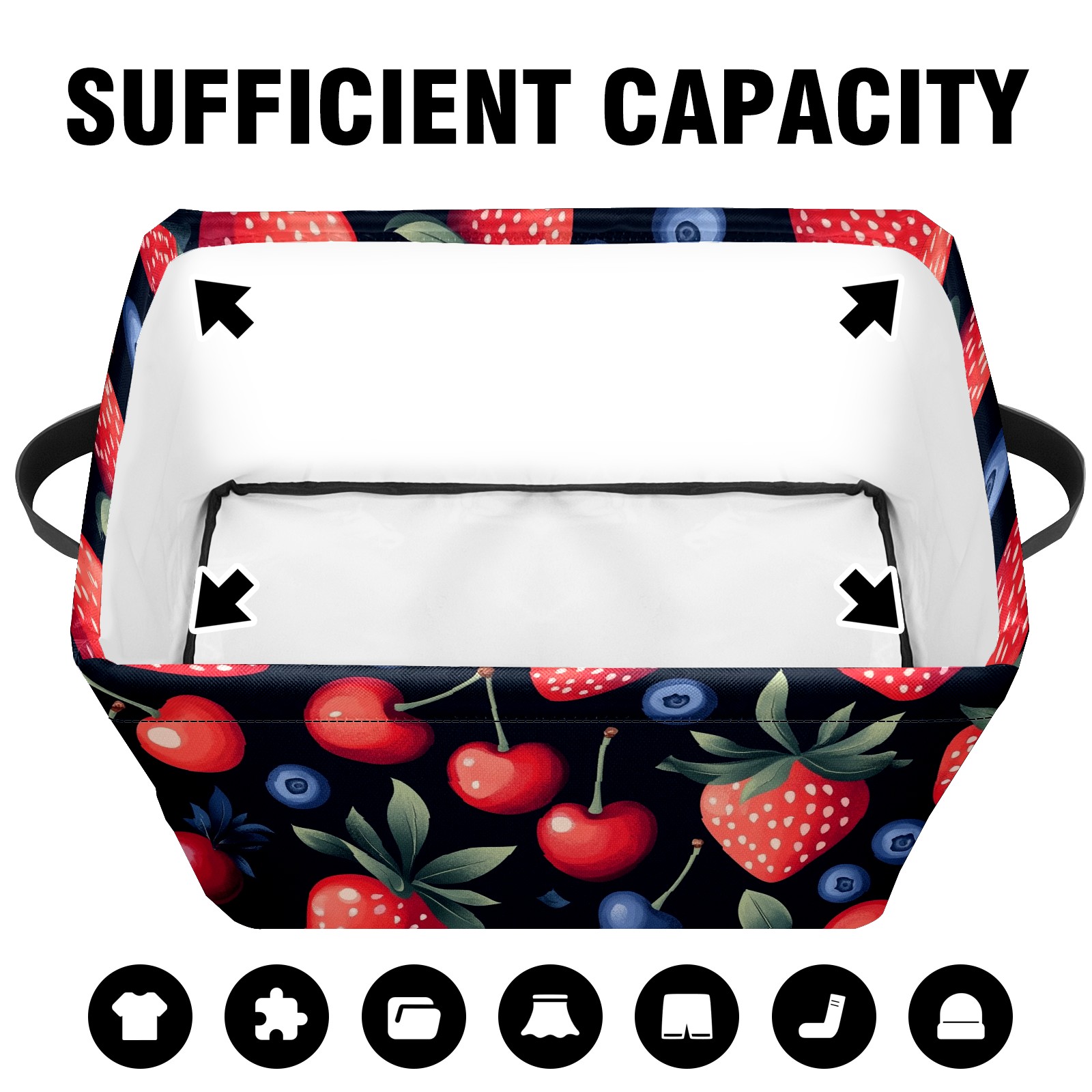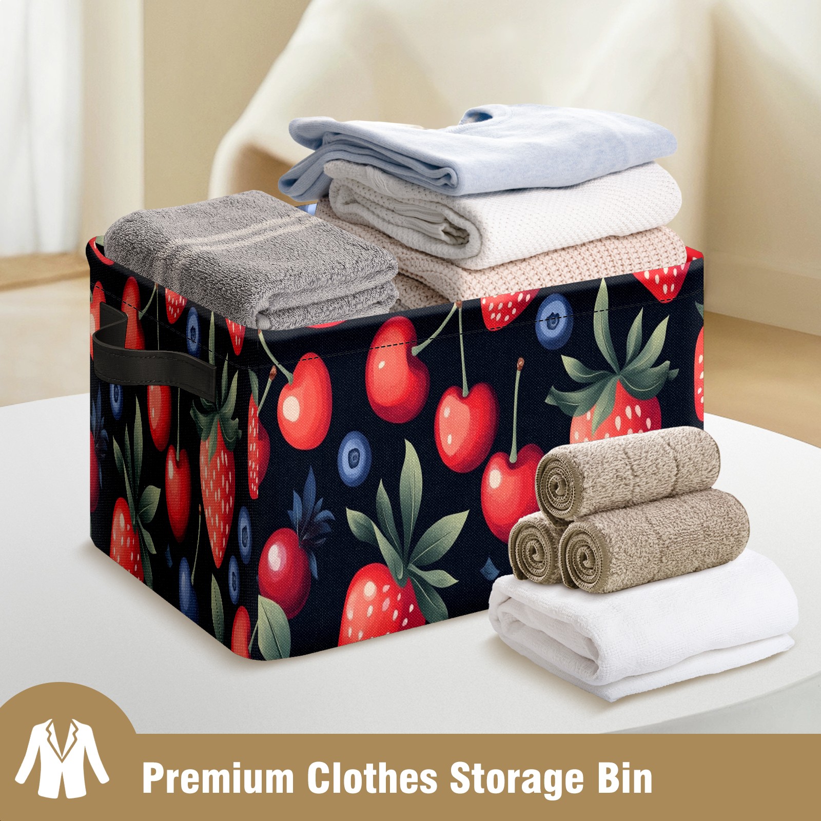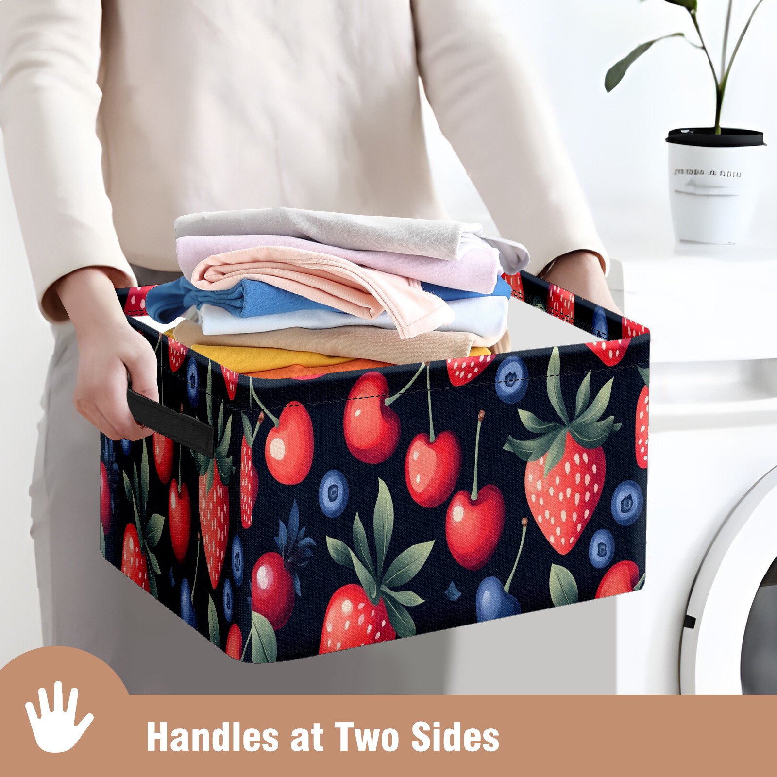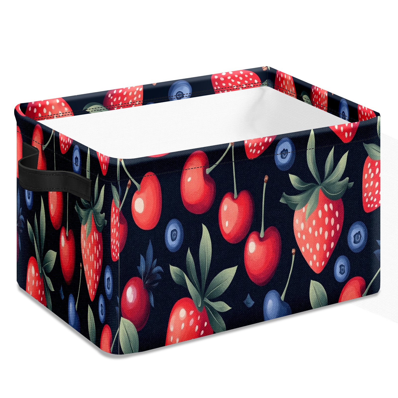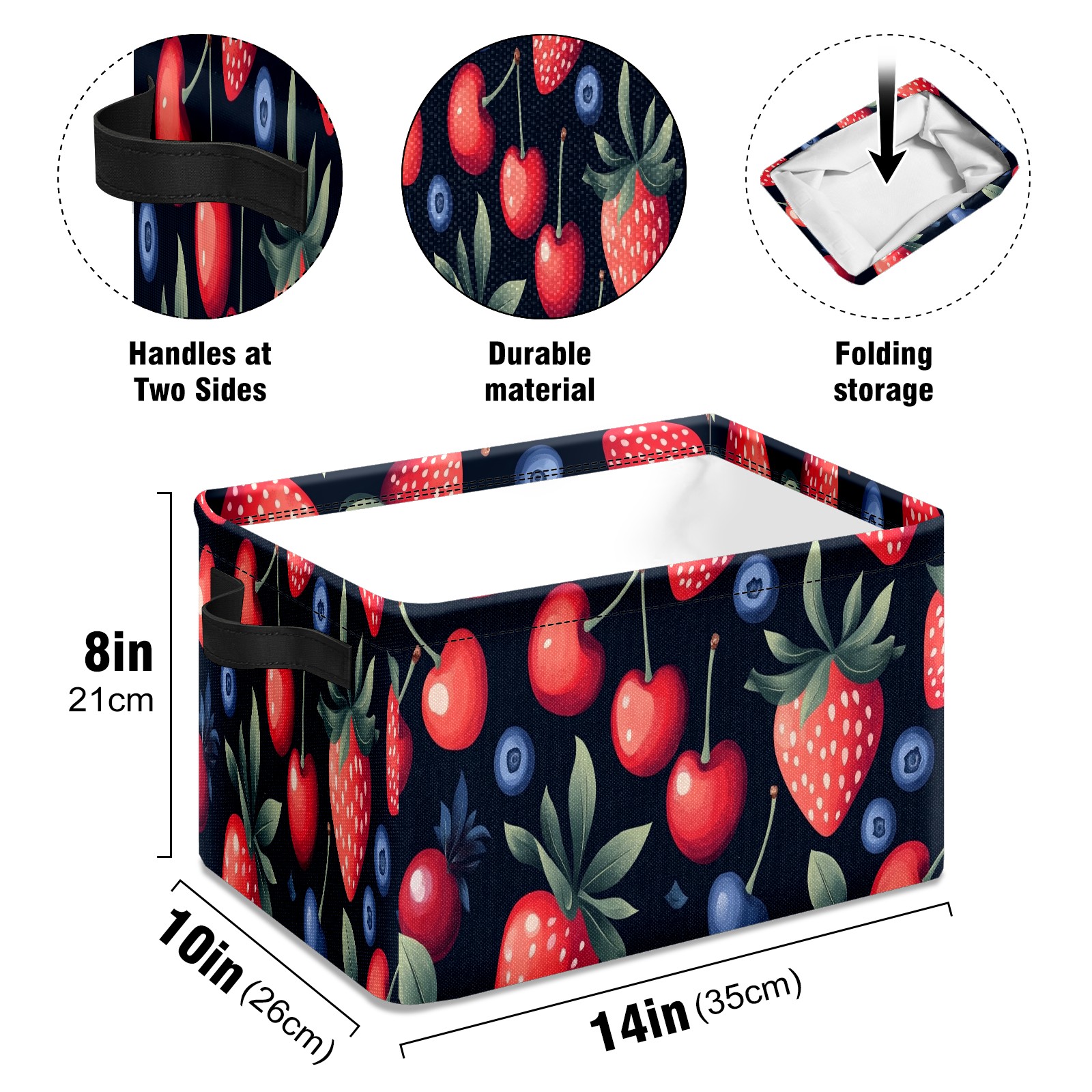 Foldable and Stackable Fabric Storage Basket for Home Organization with Handles, Decorative Closet Bins for Shelves and Laundry Storage( Strawberries Blueberry)