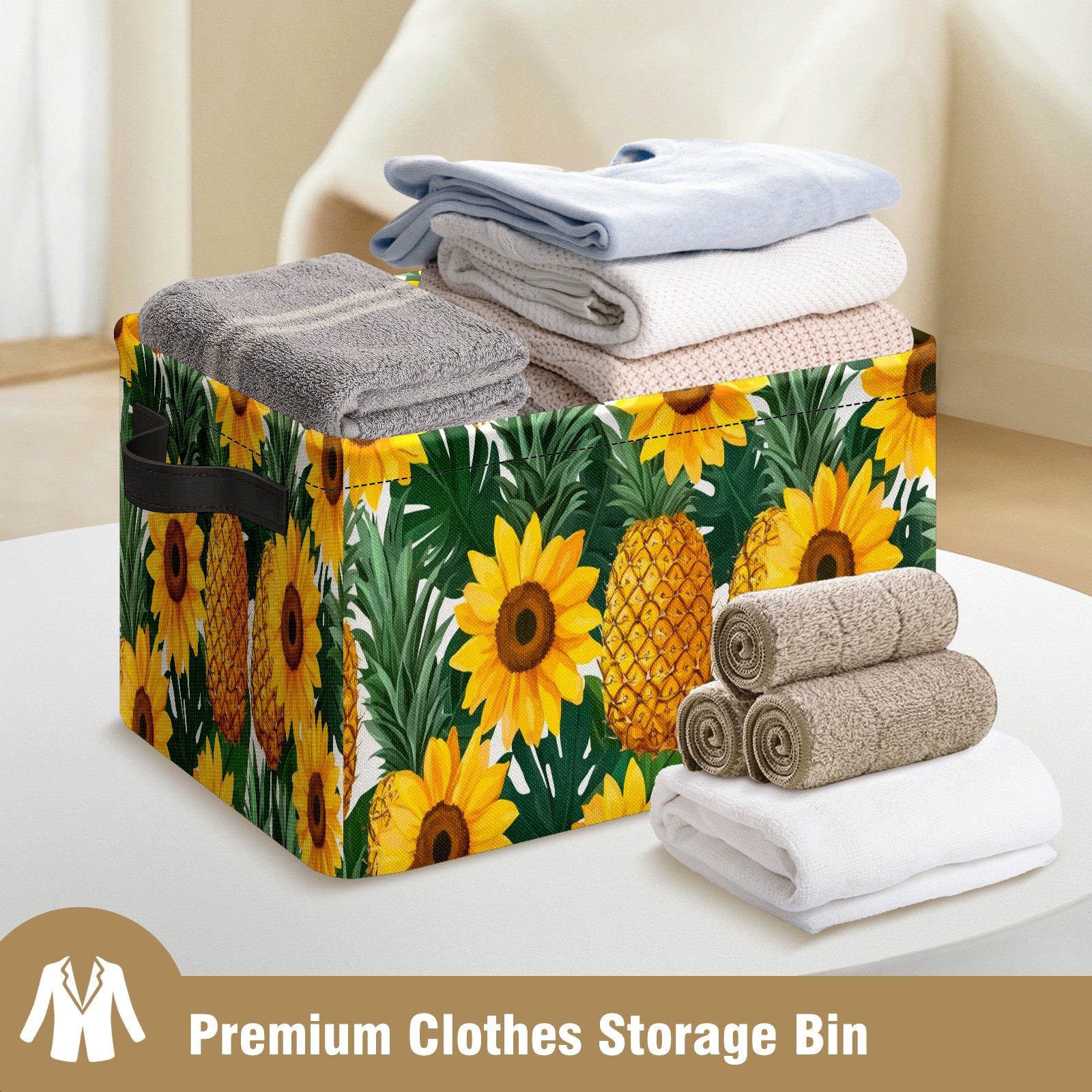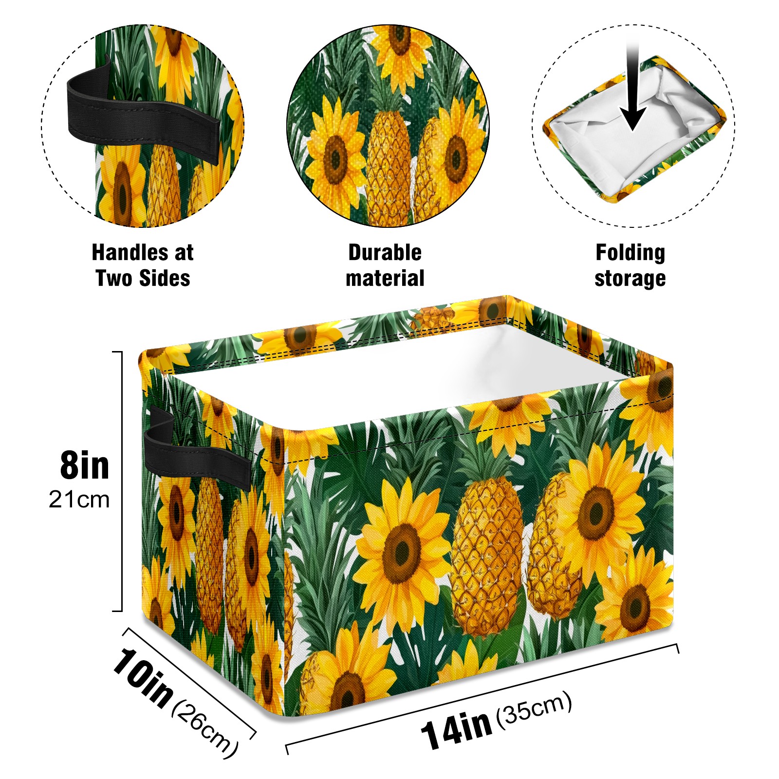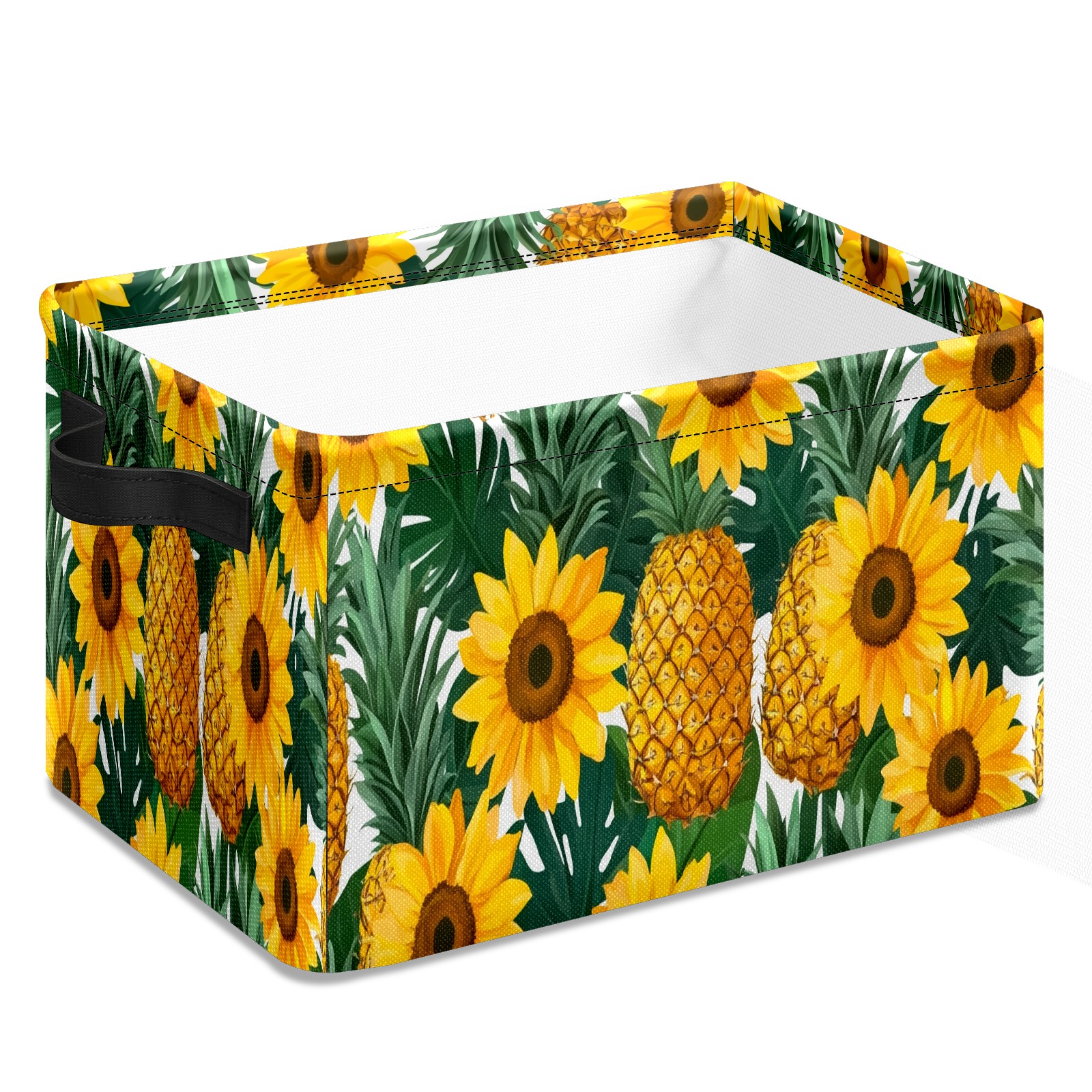 Foldable and Stackable Fabric Storage Basket for Home Organization with Handles, Decorative Closet Bins for Shelves and Laundry Storage( Pineapples Sunflowers)