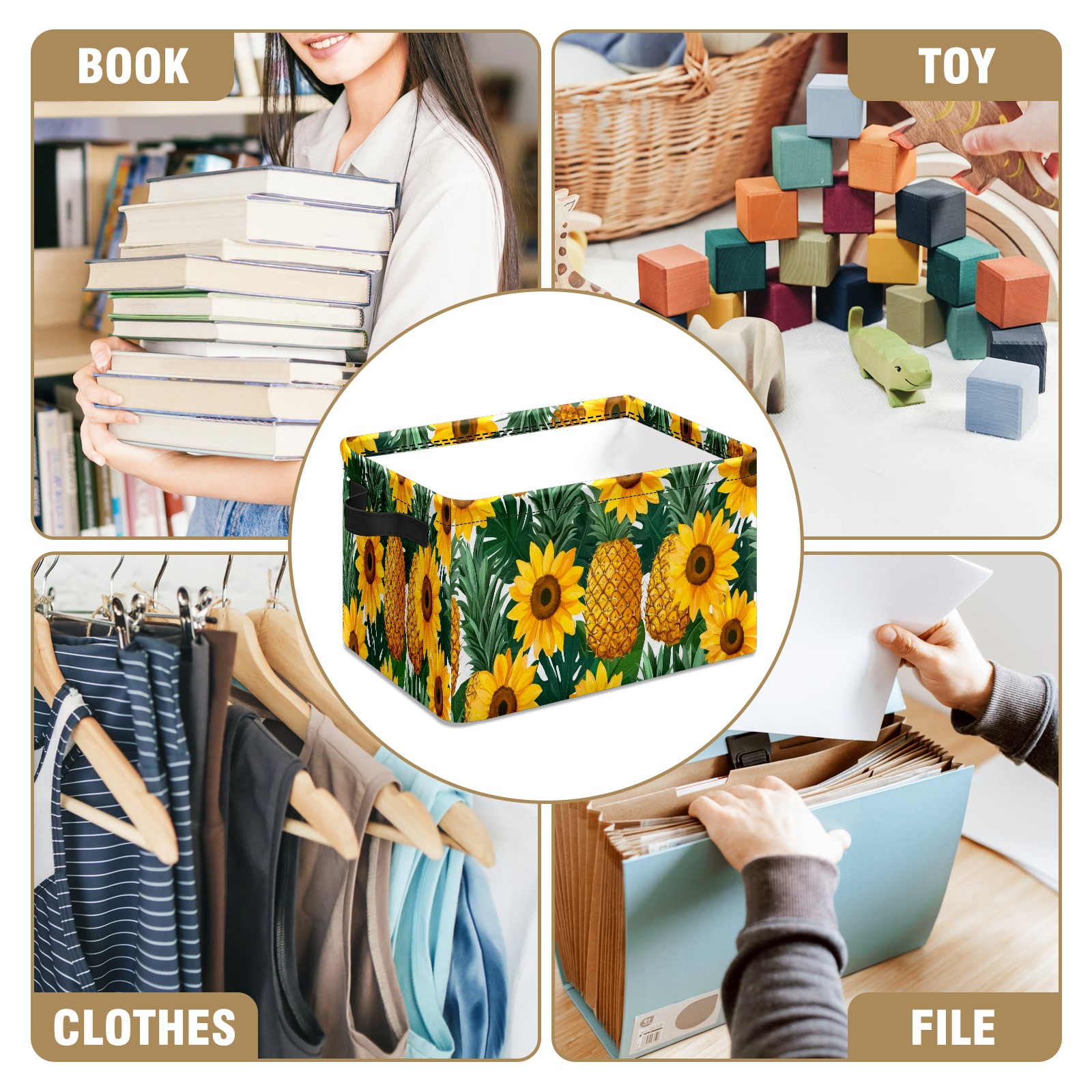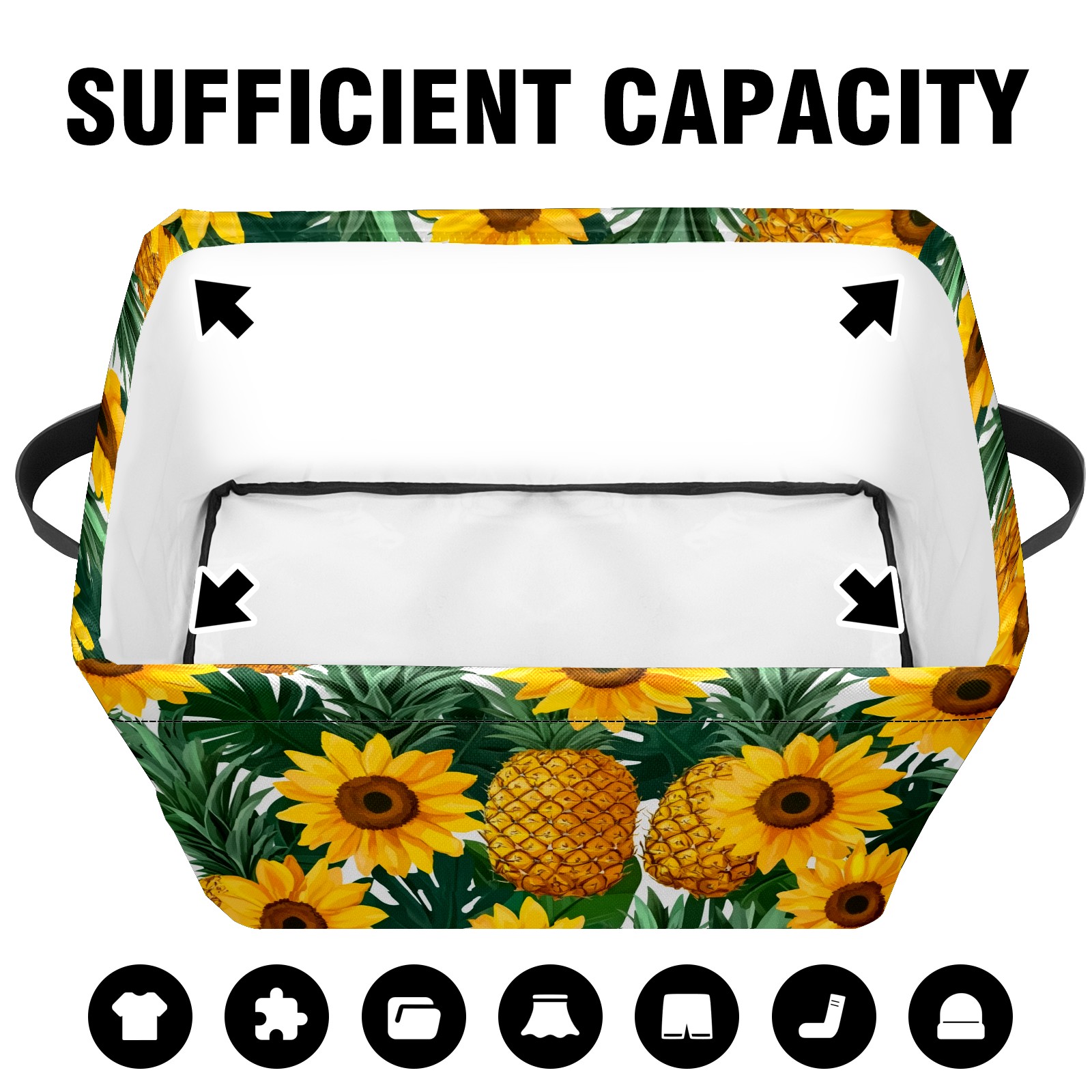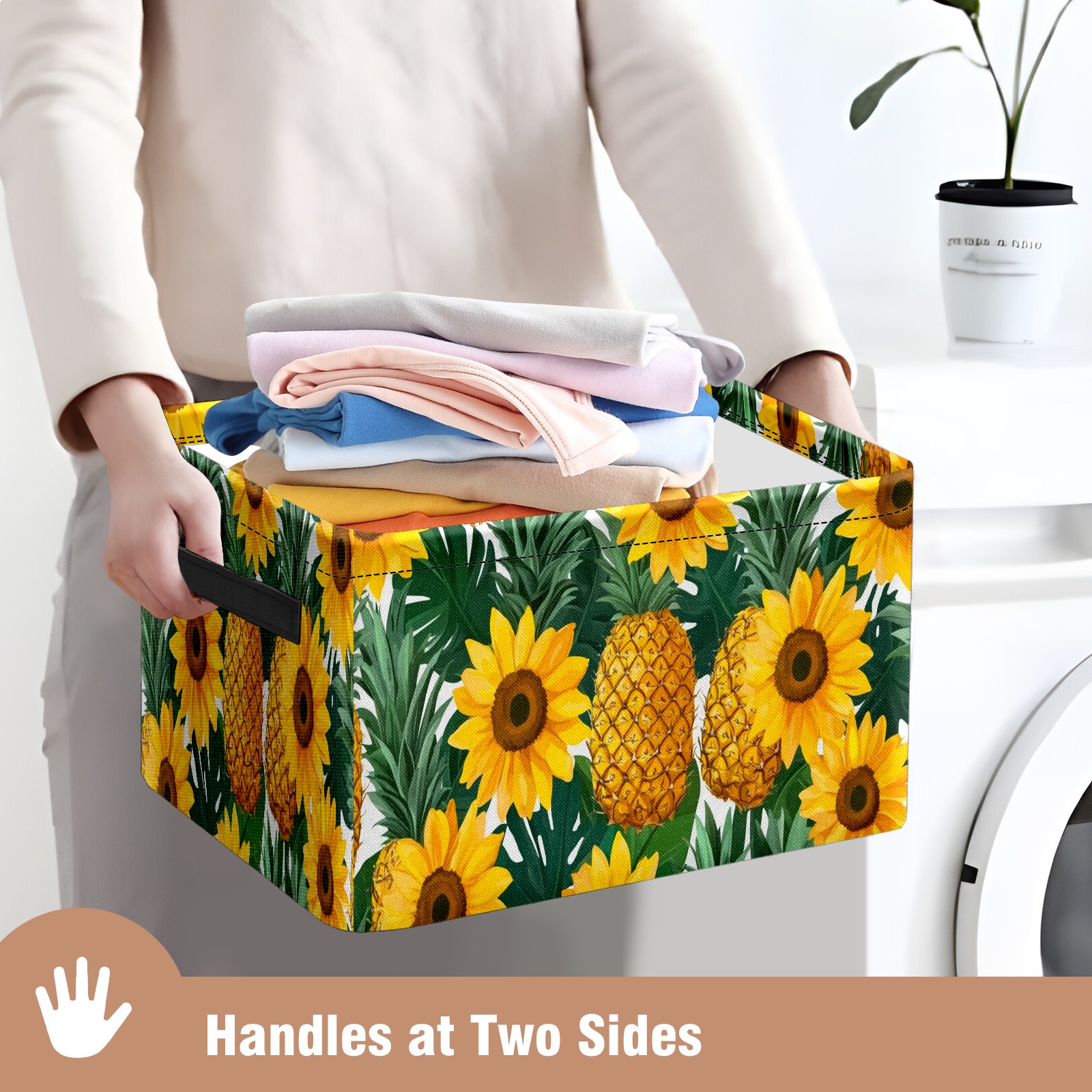 Foldable and Stackable Fabric Storage Basket for Home Organization with Handles, Decorative Closet Bins for Shelves and Laundry Storage( Pineapples Sunflowers)