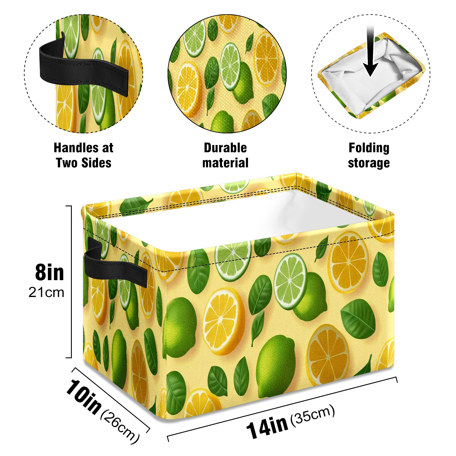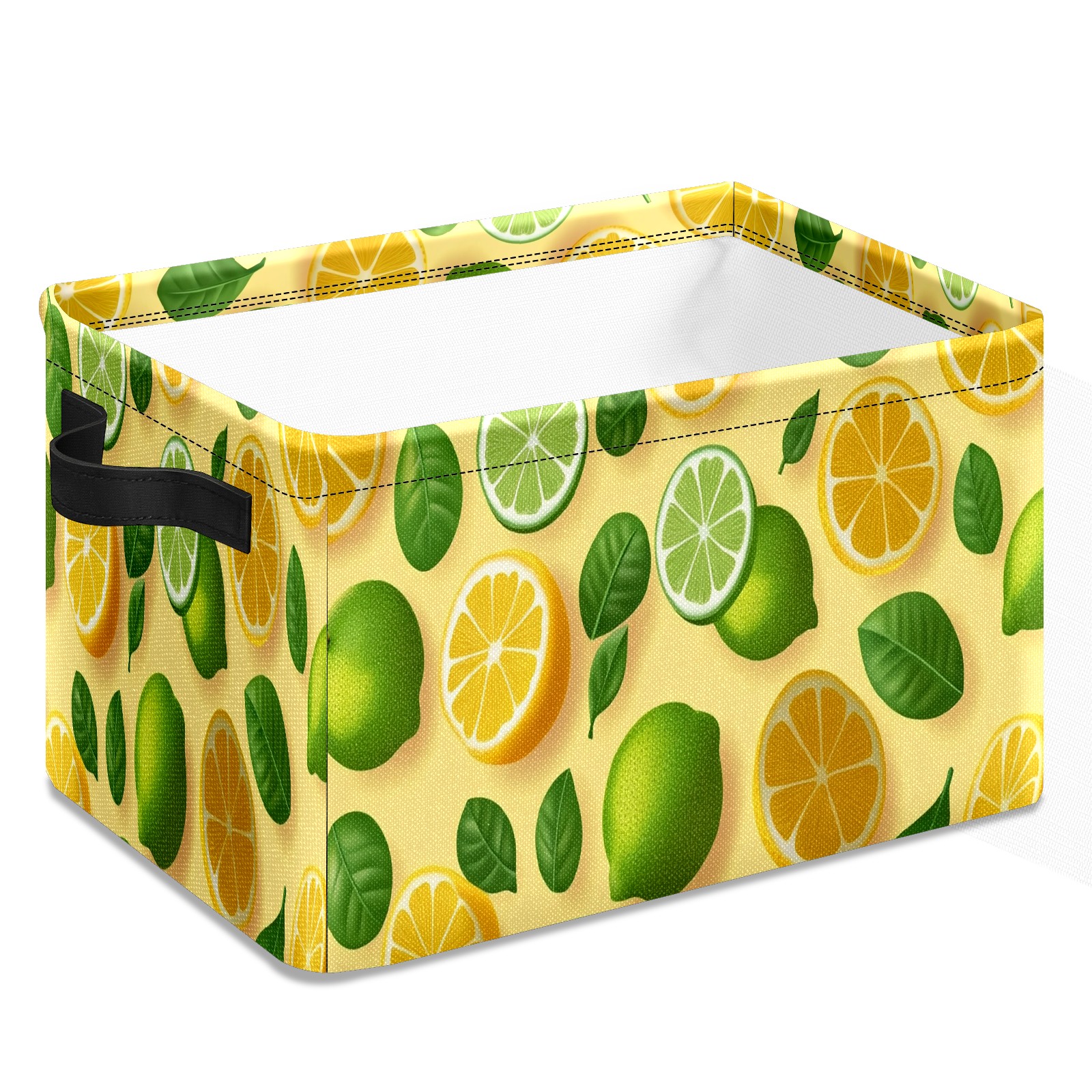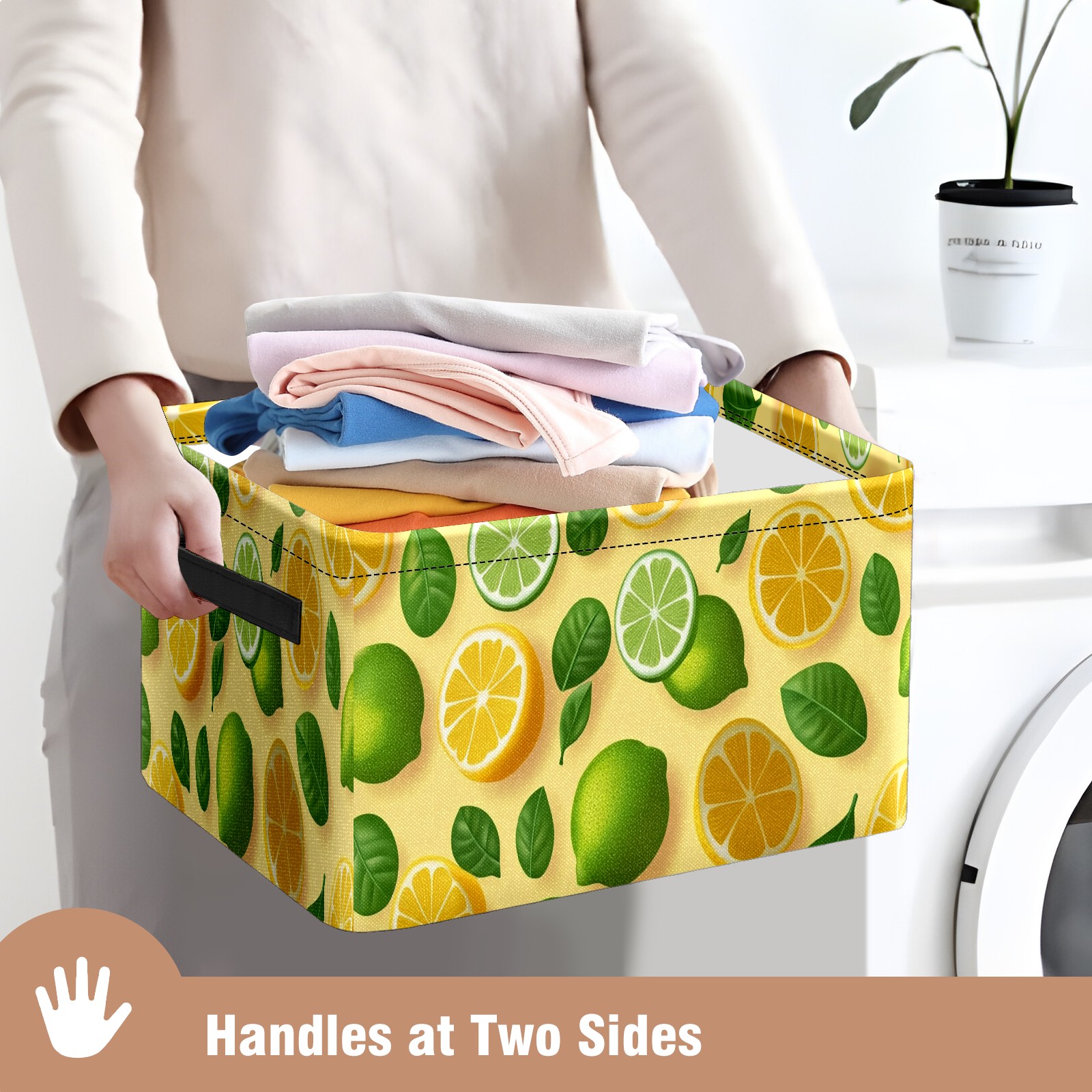 Foldable and Stackable Fabric Storage Basket for Home Organization with Handles, Decorative Closet Bins for Shelves and Laundry Storage( Lemons And Limes)