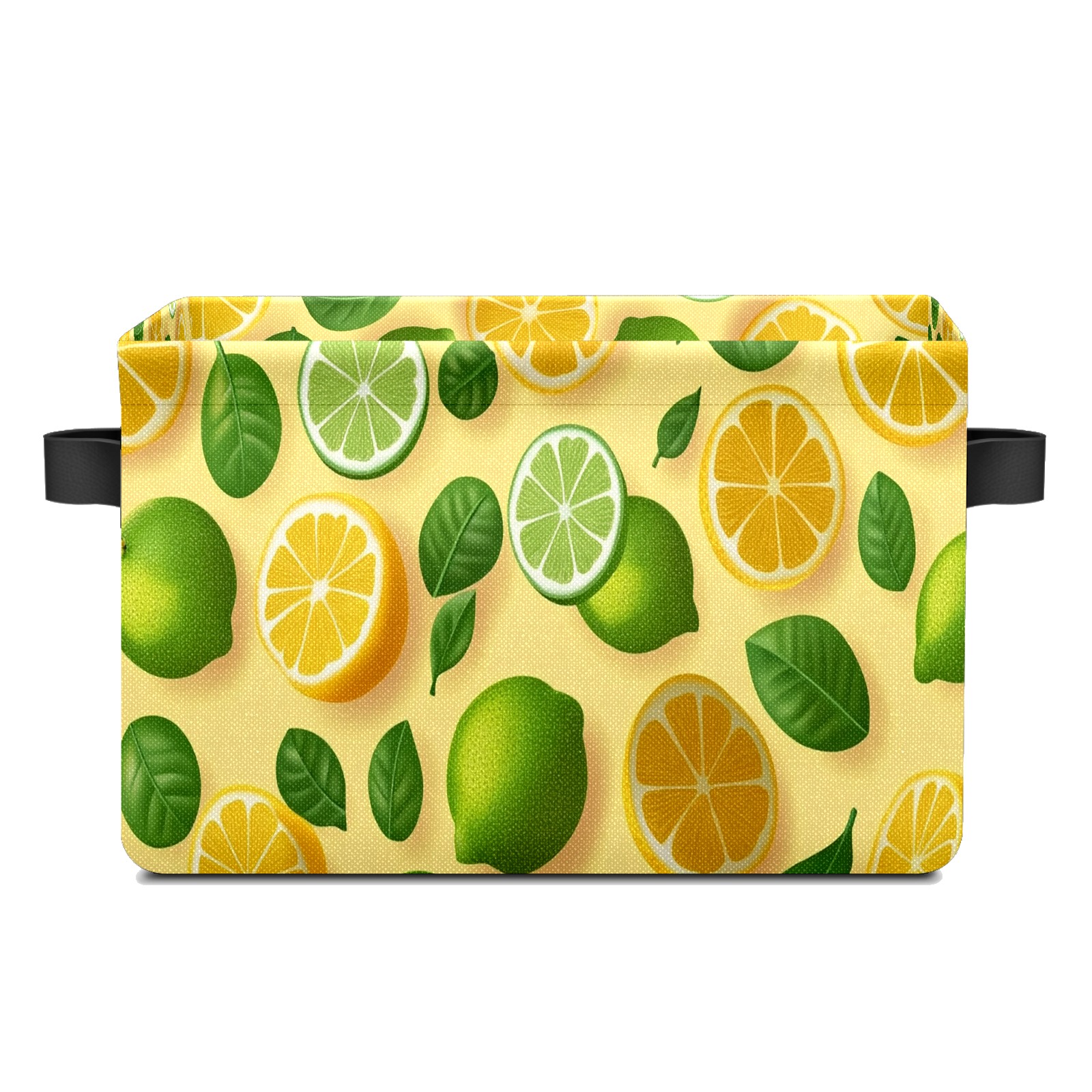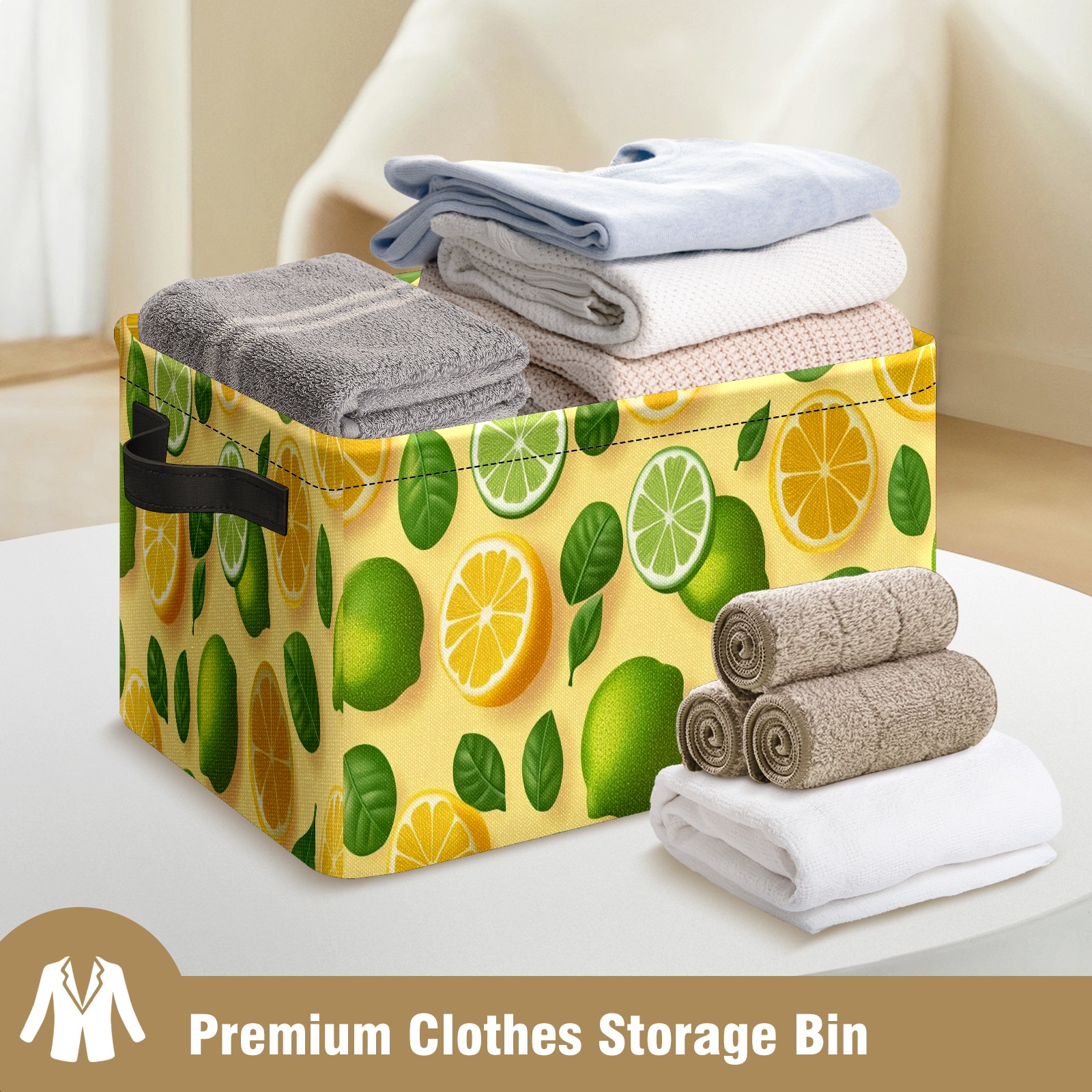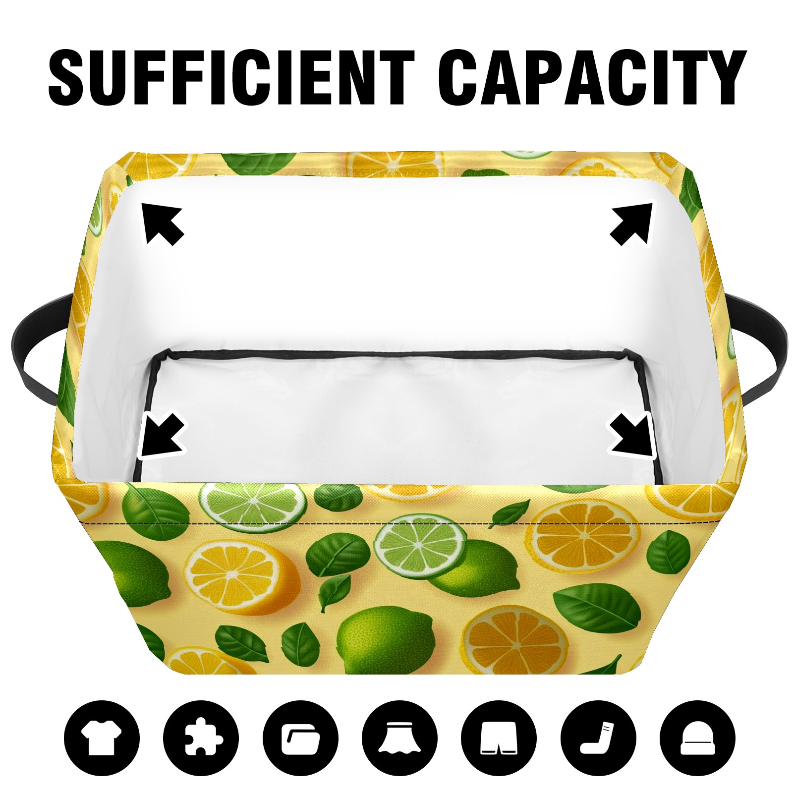 Foldable and Stackable Fabric Storage Basket for Home Organization with Handles, Decorative Closet Bins for Shelves and Laundry Storage( Lemons And Limes)