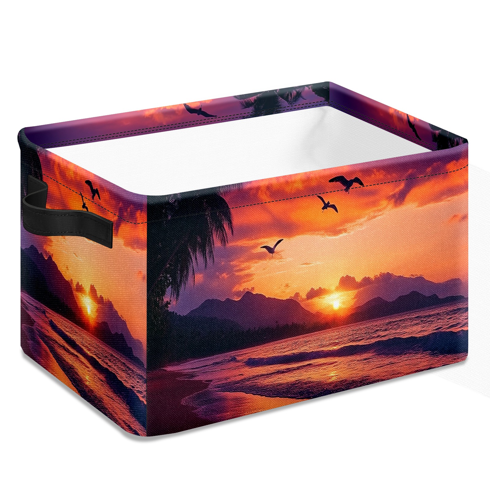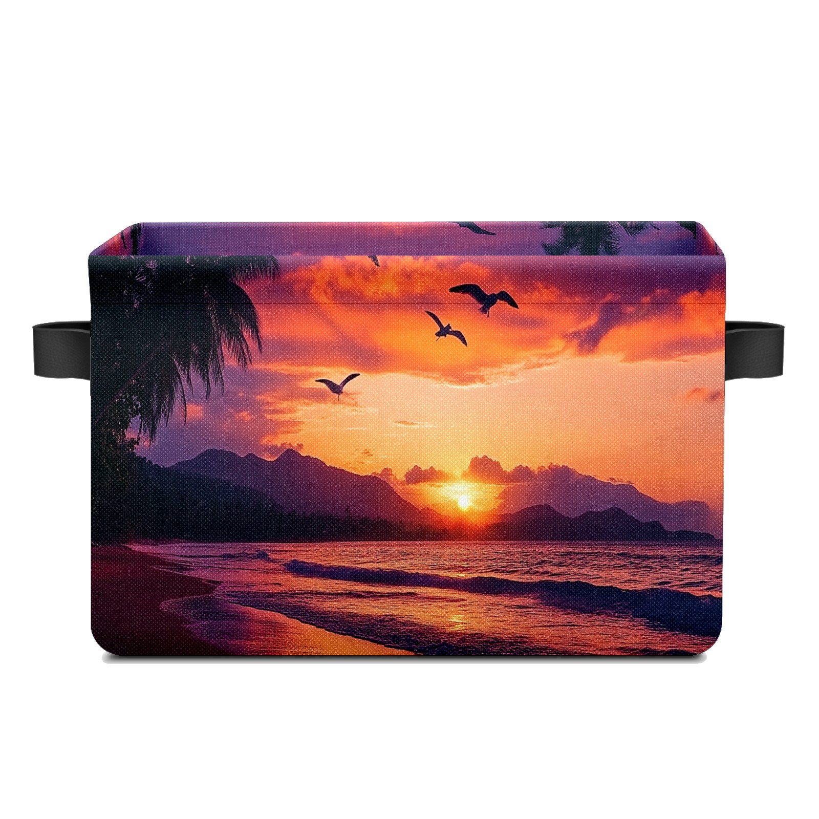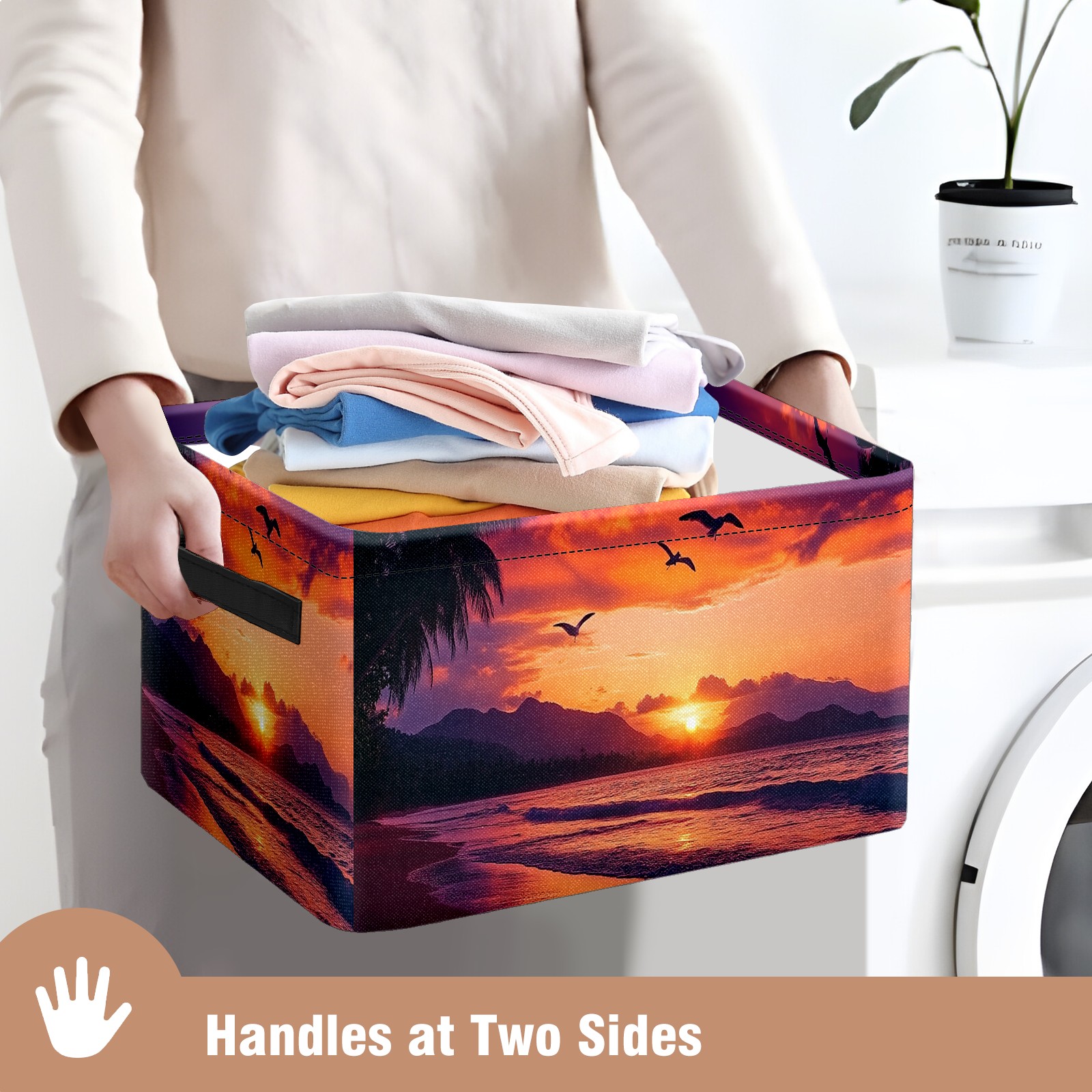 Foldable and Stackable Fabric Storage Basket for Home Organization with Handles, Decorative Closet Bins for Shelves and Laundry Storage( Sunset Seagulls Flying)