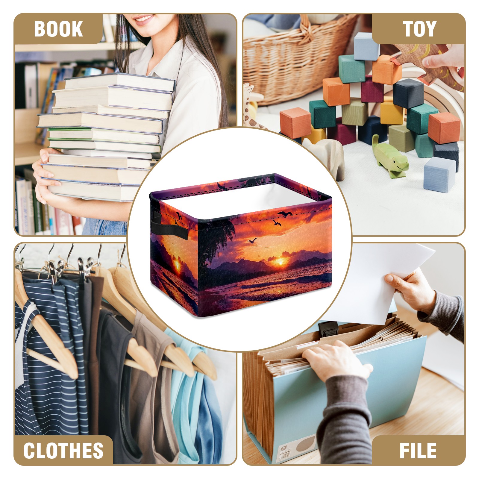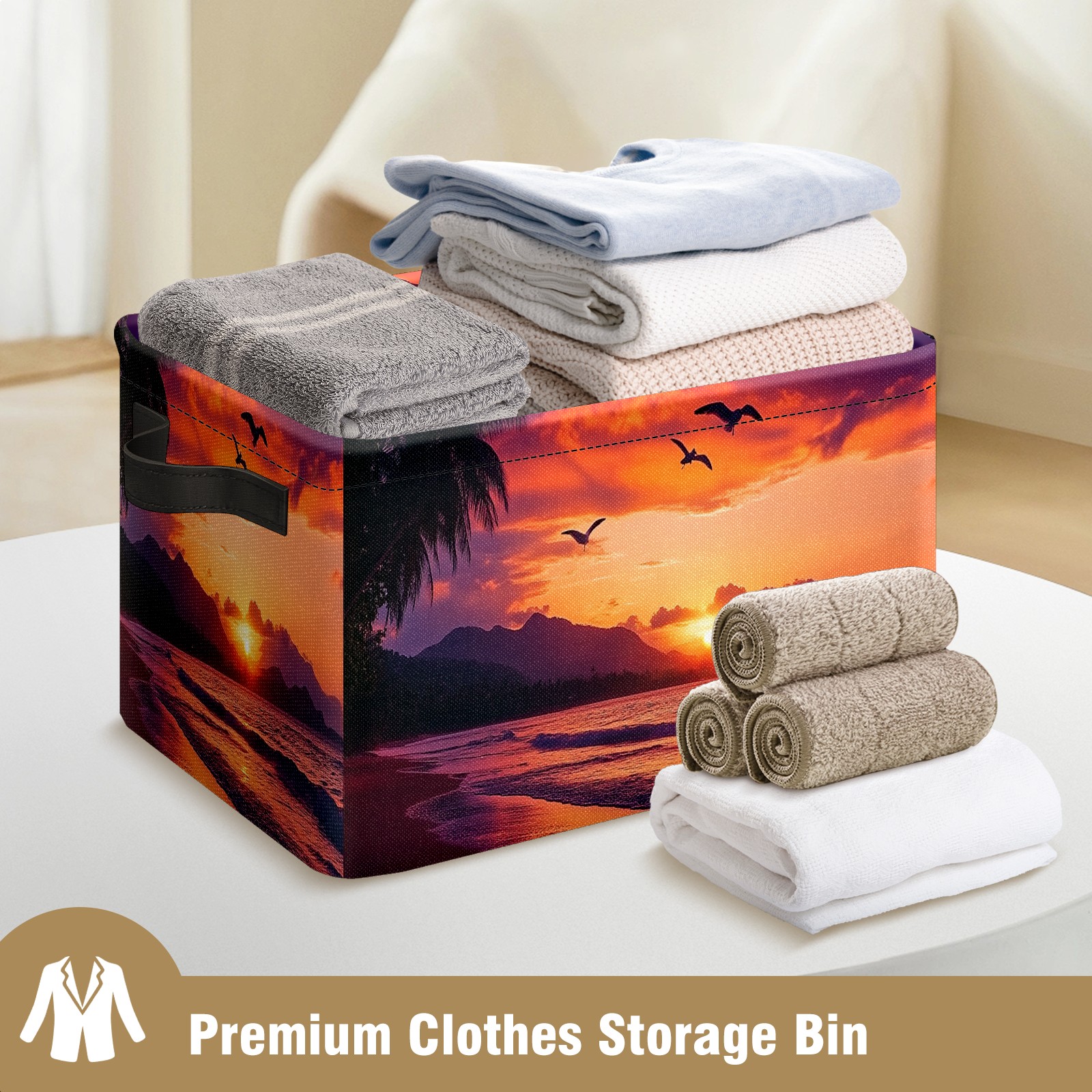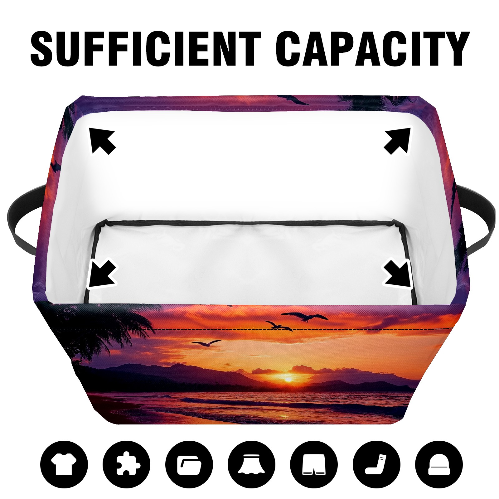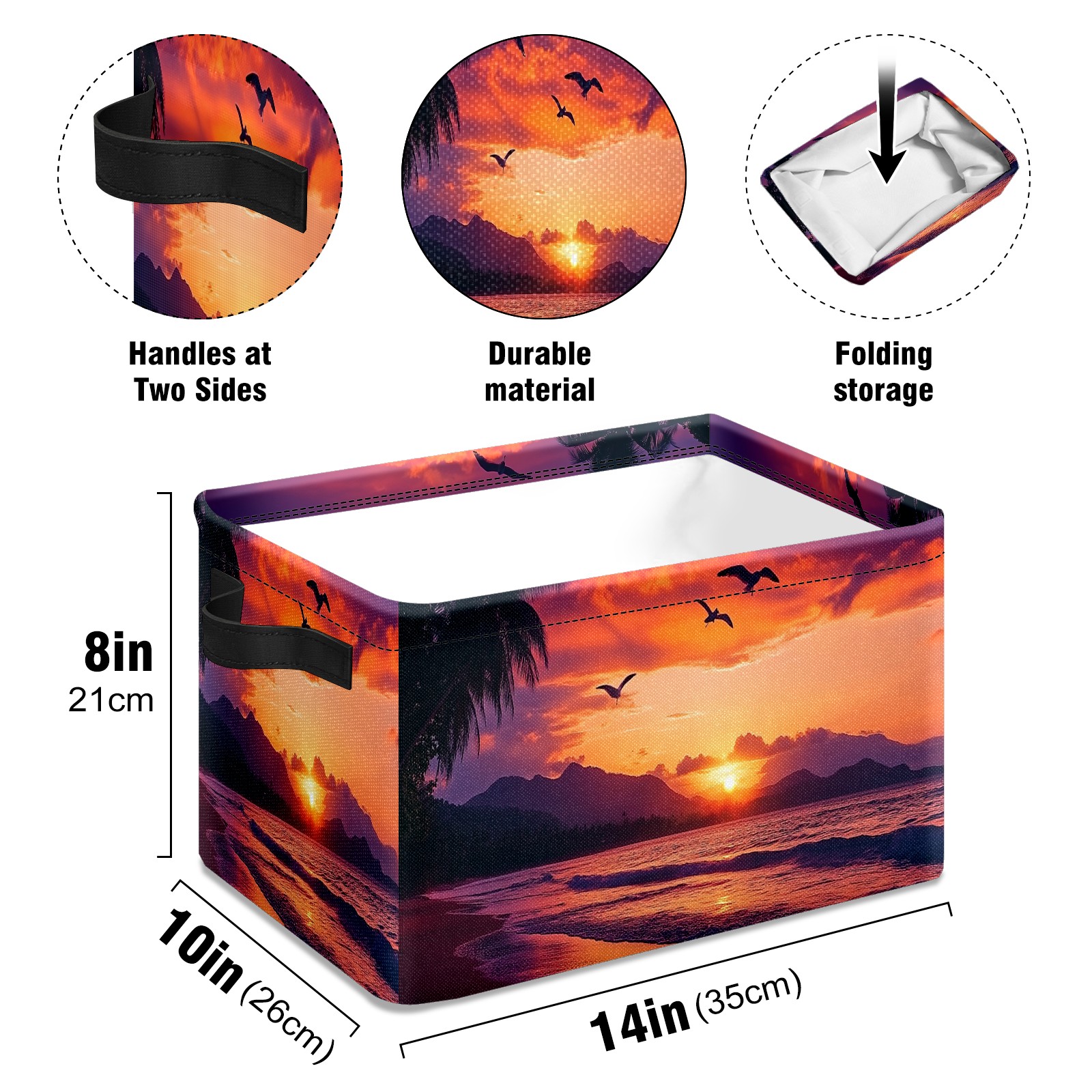 Foldable and Stackable Fabric Storage Basket for Home Organization with Handles, Decorative Closet Bins for Shelves and Laundry Storage( Sunset Seagulls Flying)