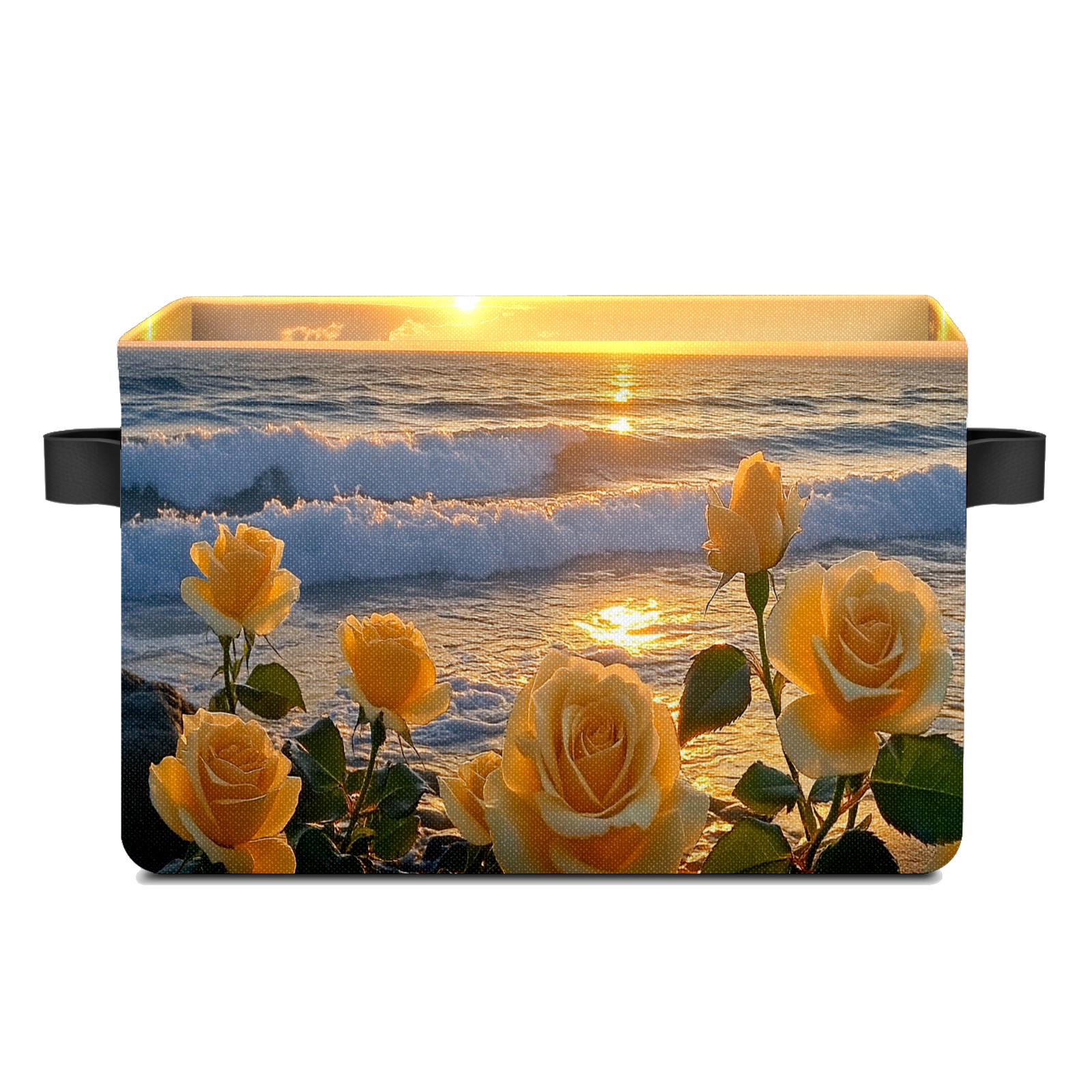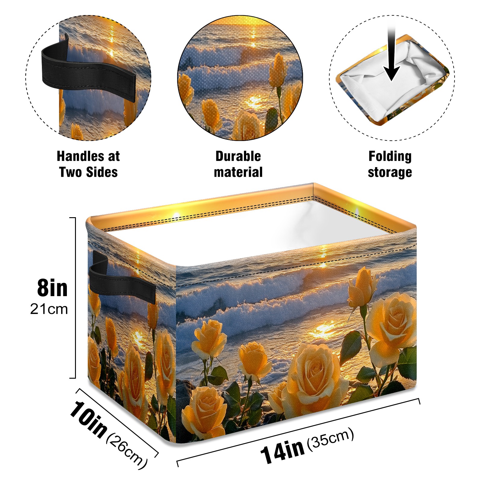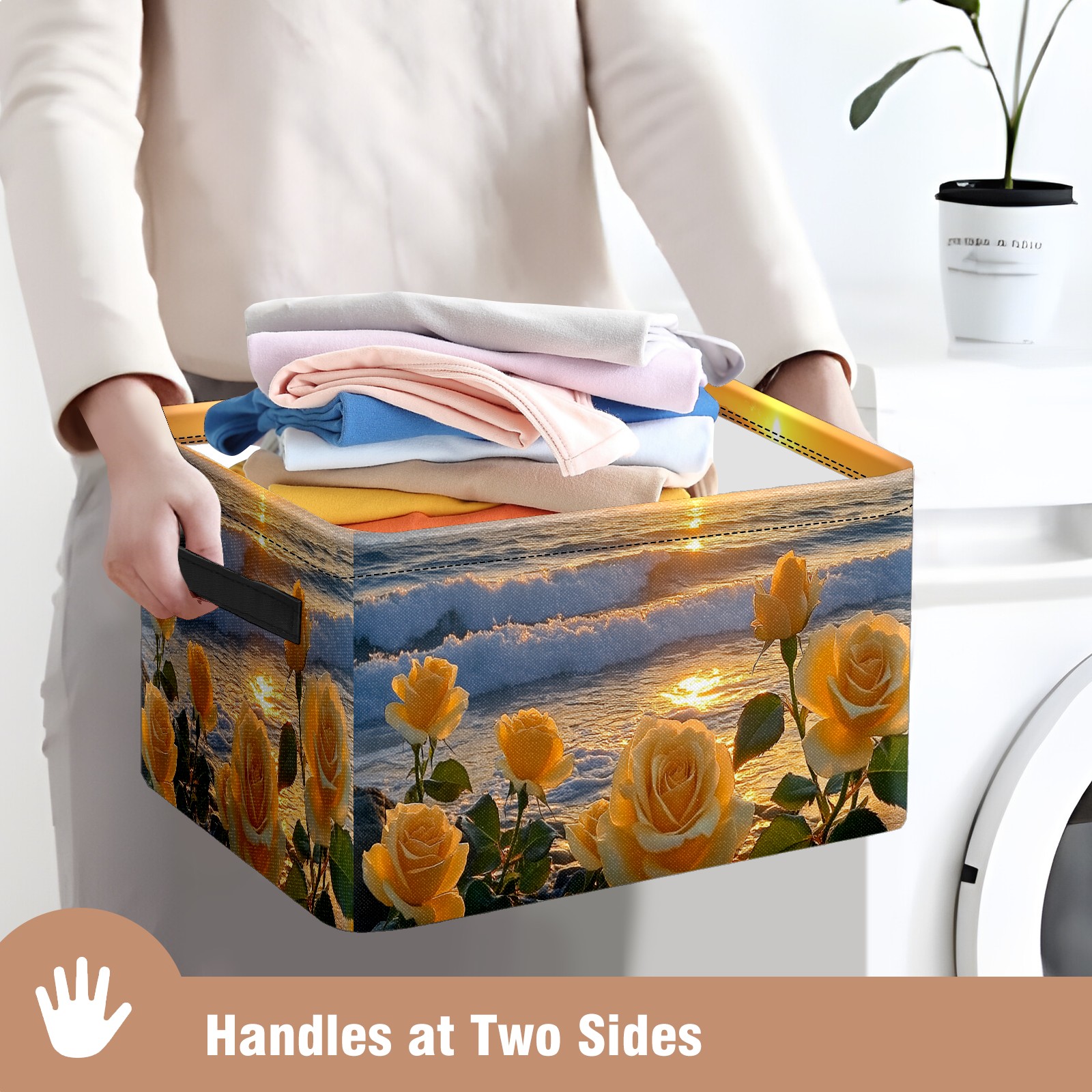 Foldable and Stackable Fabric Storage Basket for Home Organization with Handles, Decorative Closet Bins for Shelves and Laundry Storage( Yellow Roses Sunset)