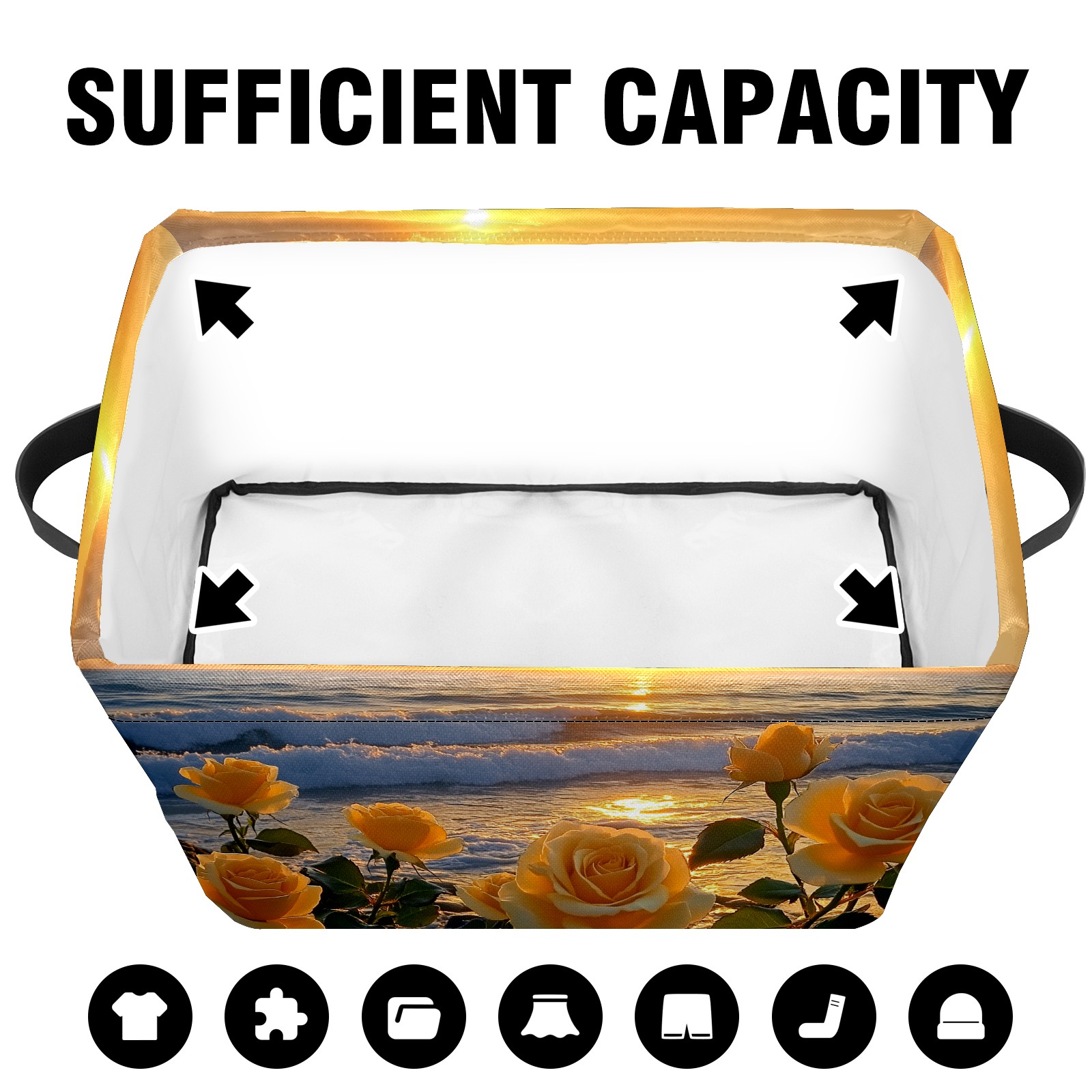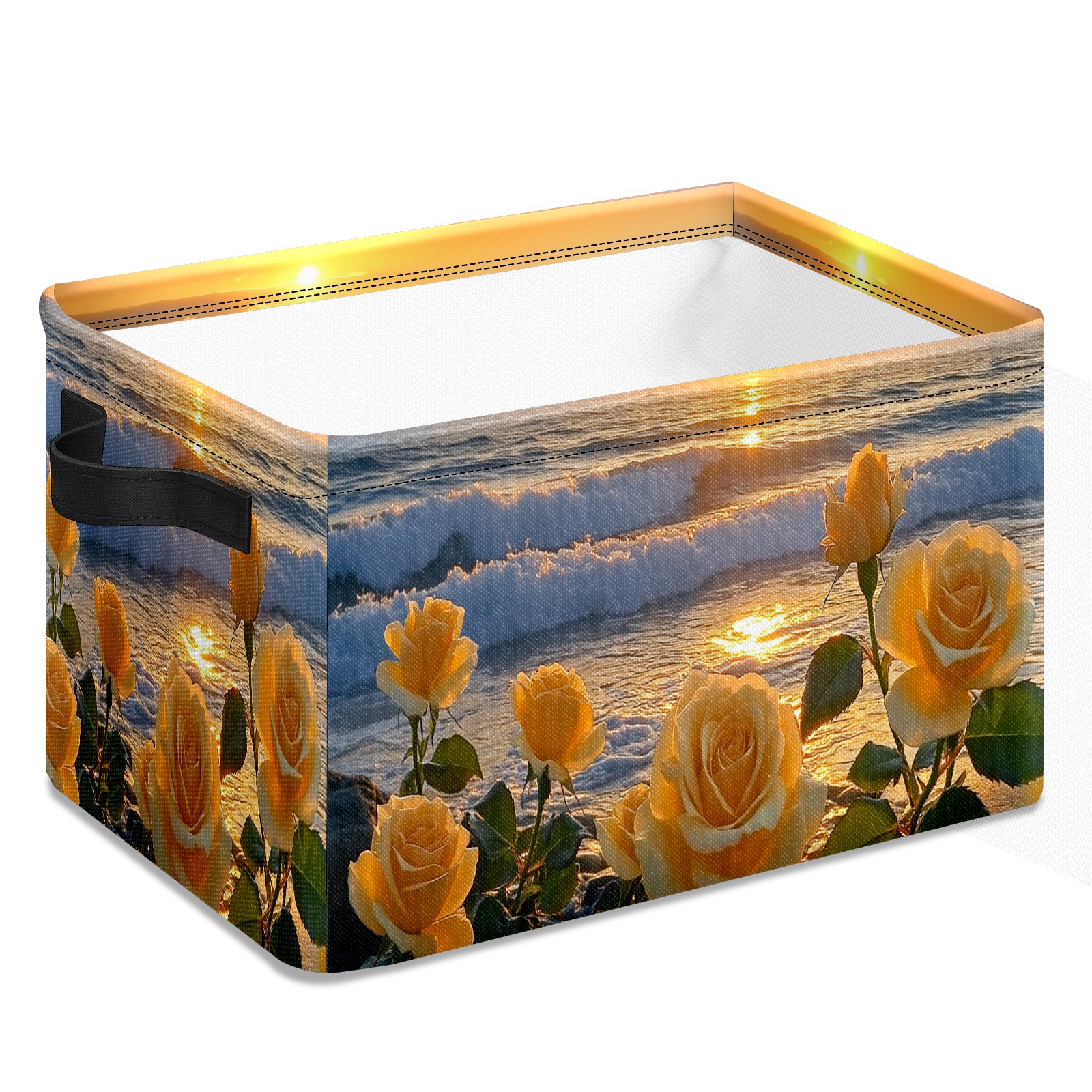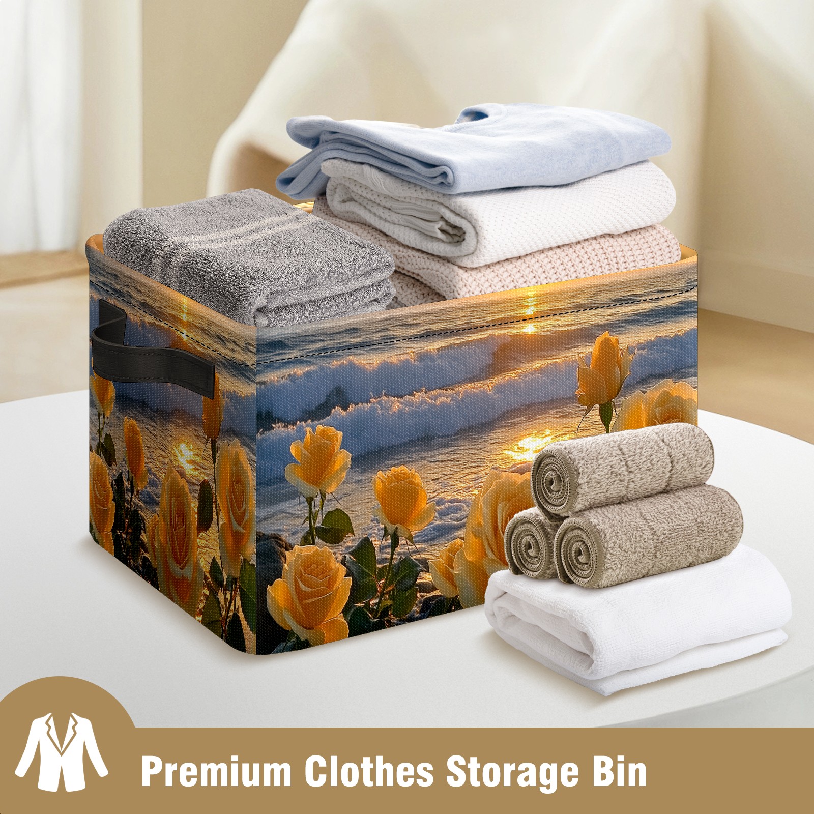 Foldable and Stackable Fabric Storage Basket for Home Organization with Handles, Decorative Closet Bins for Shelves and Laundry Storage( Yellow Roses Sunset)