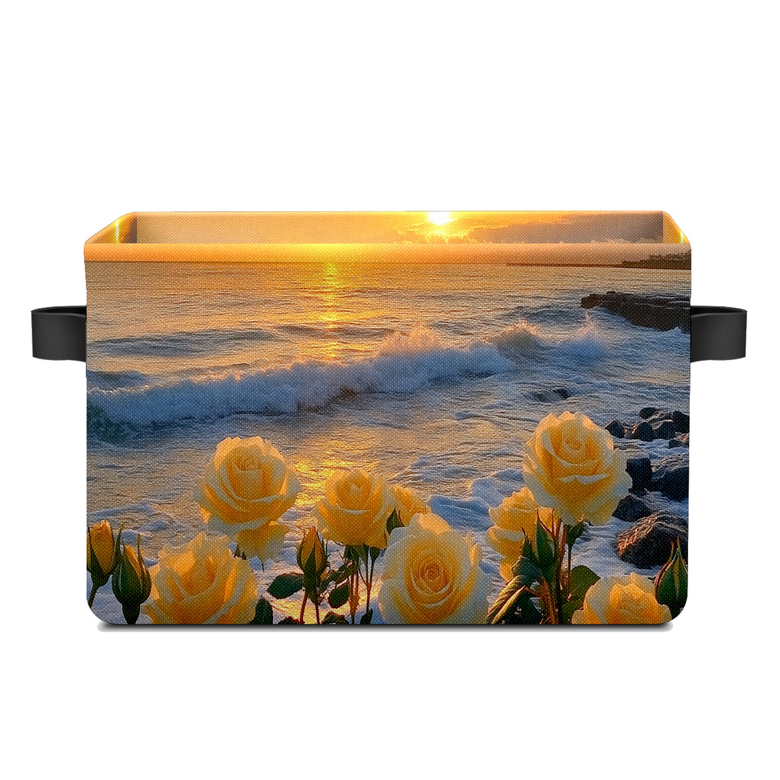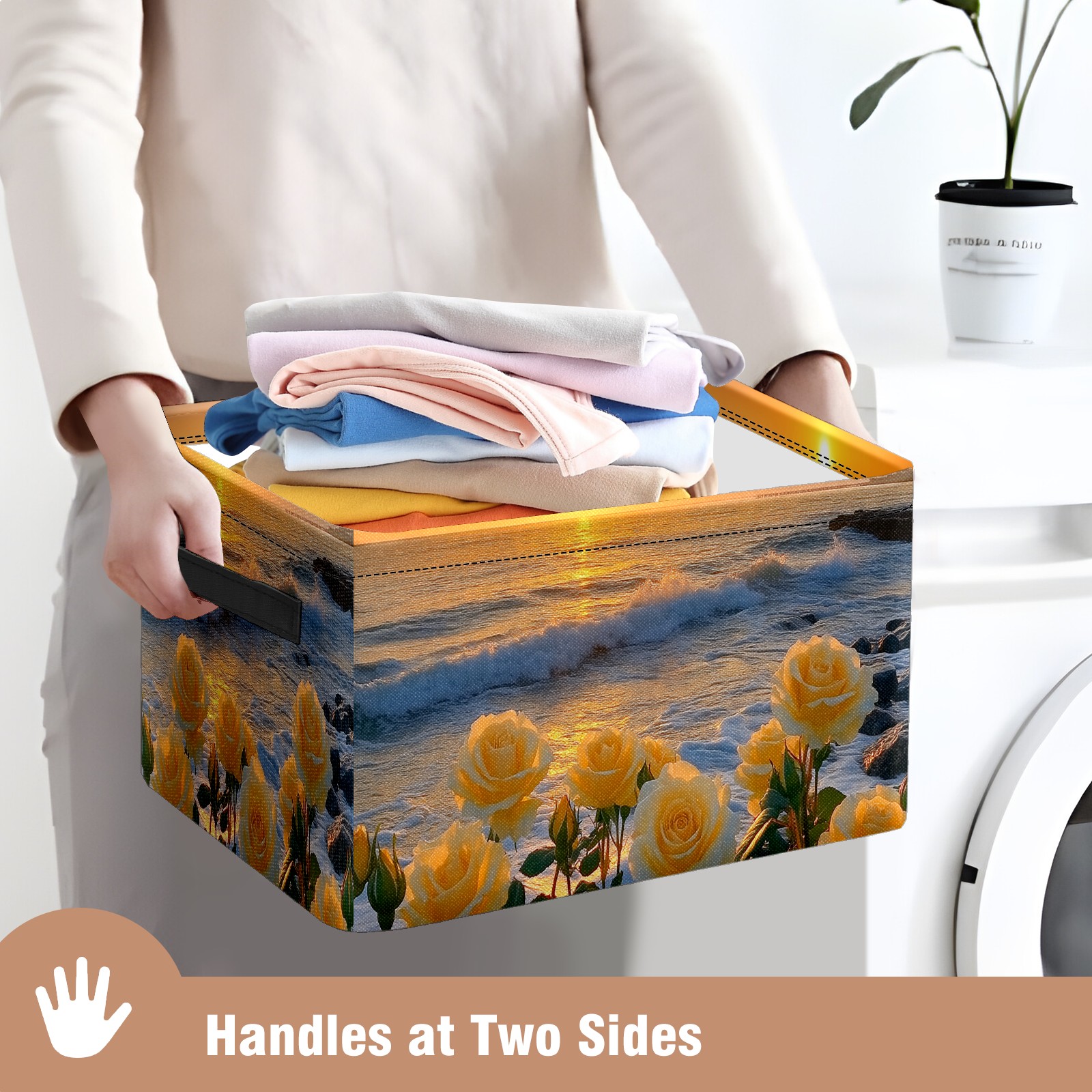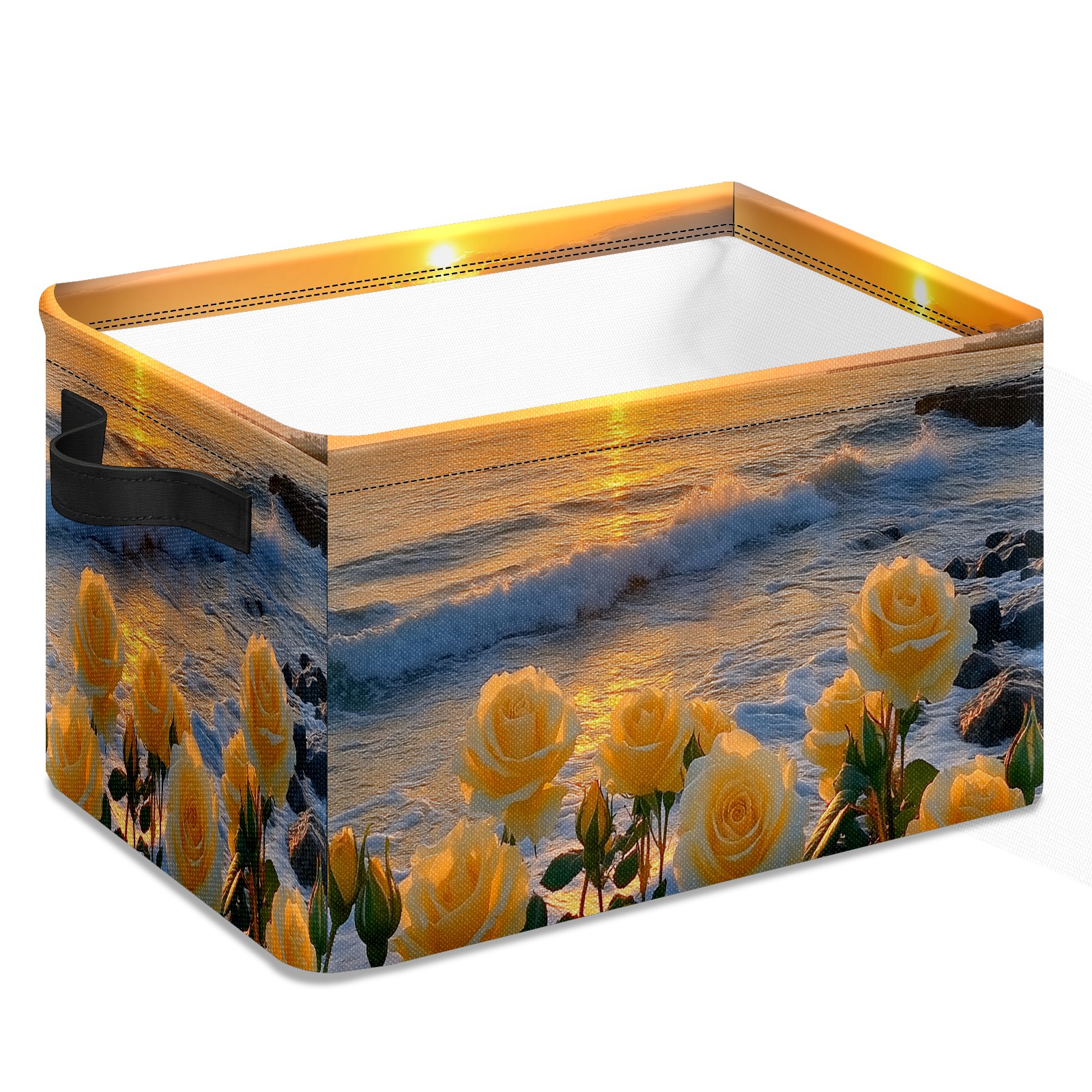 Foldable and Stackable Fabric Storage Basket for Home Organization with Handles, Decorative Closet Bins for Shelves and Laundry Storage( Sunset Yellow Roses)