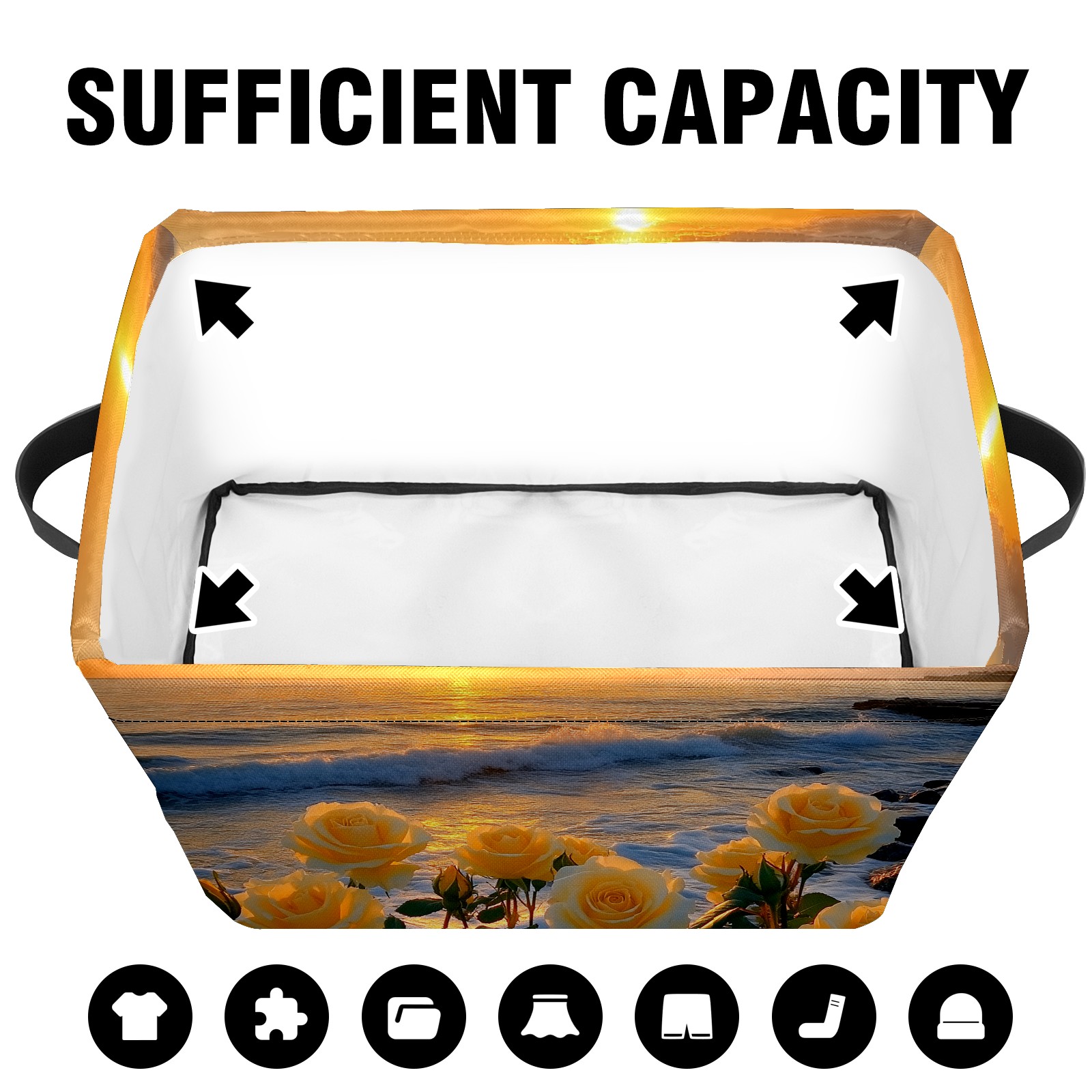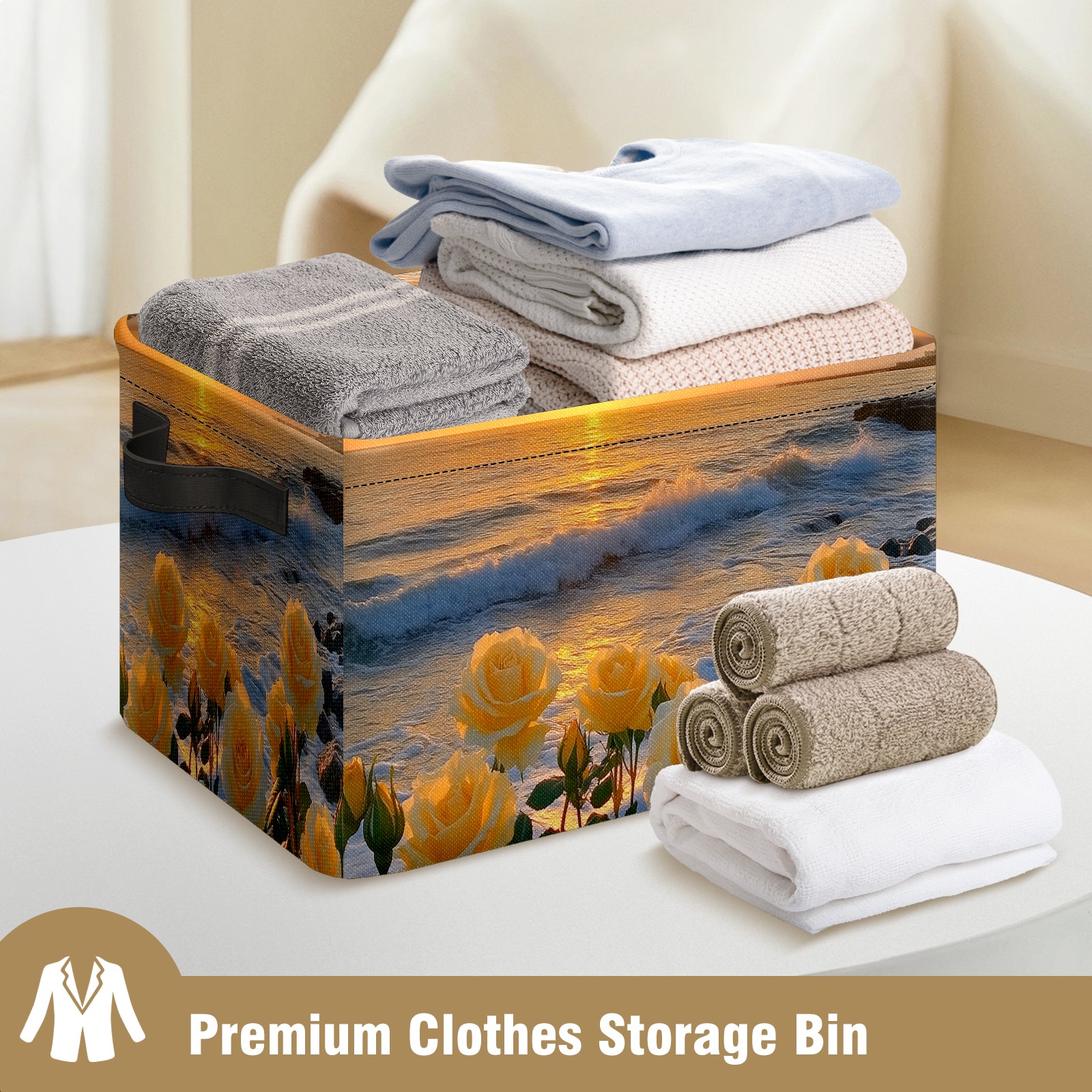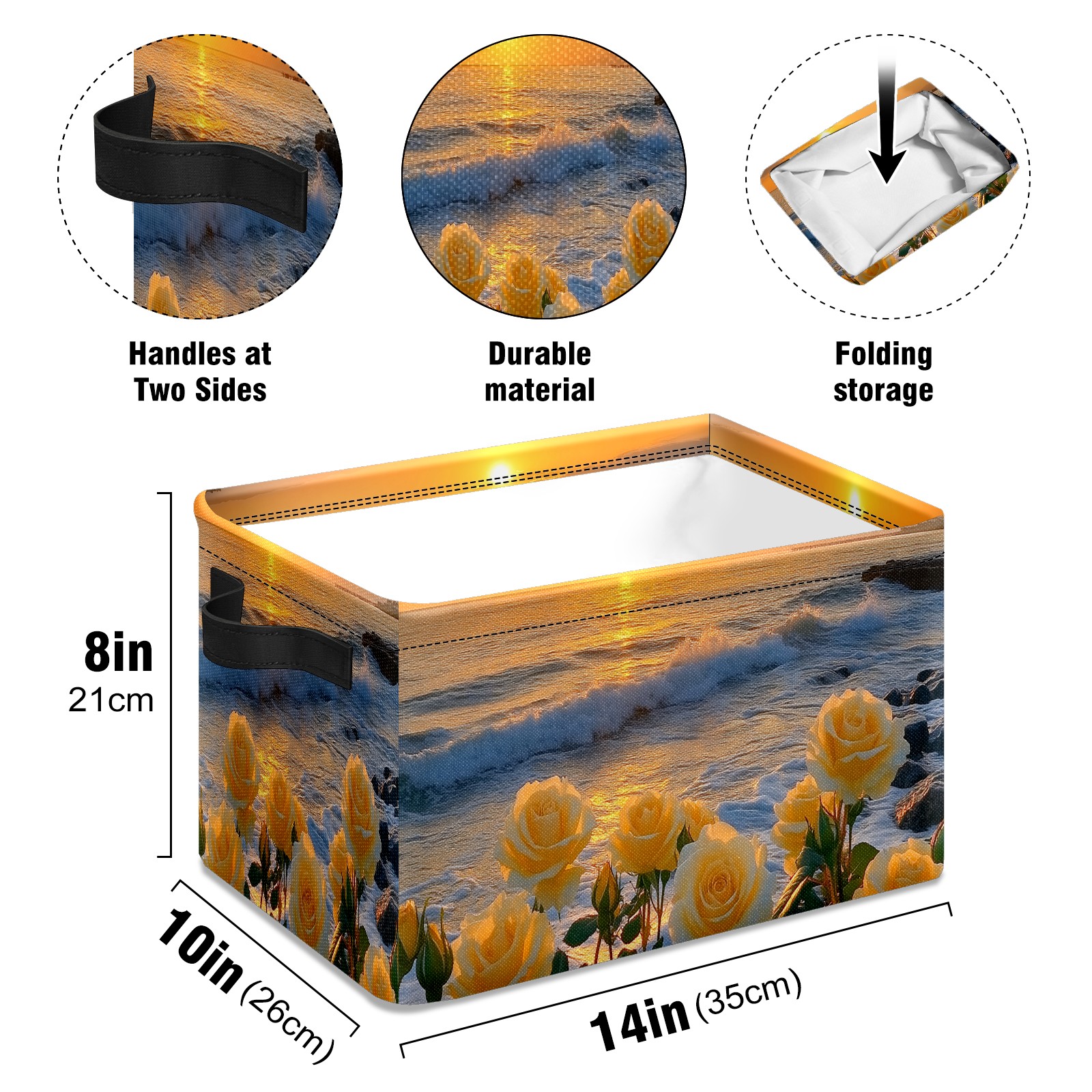 Foldable and Stackable Fabric Storage Basket for Home Organization with Handles, Decorative Closet Bins for Shelves and Laundry Storage( Sunset Yellow Roses)