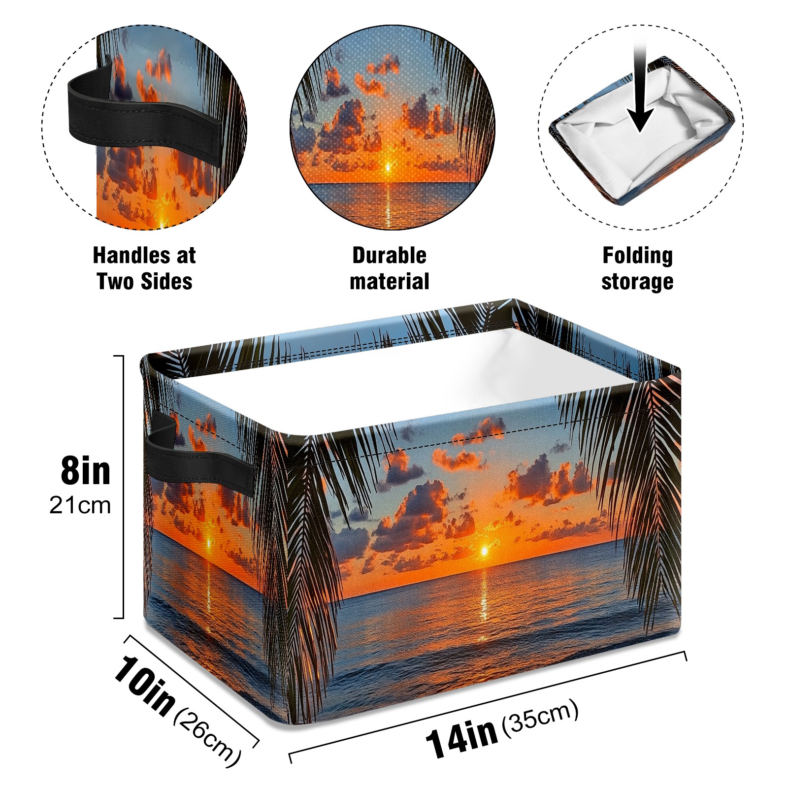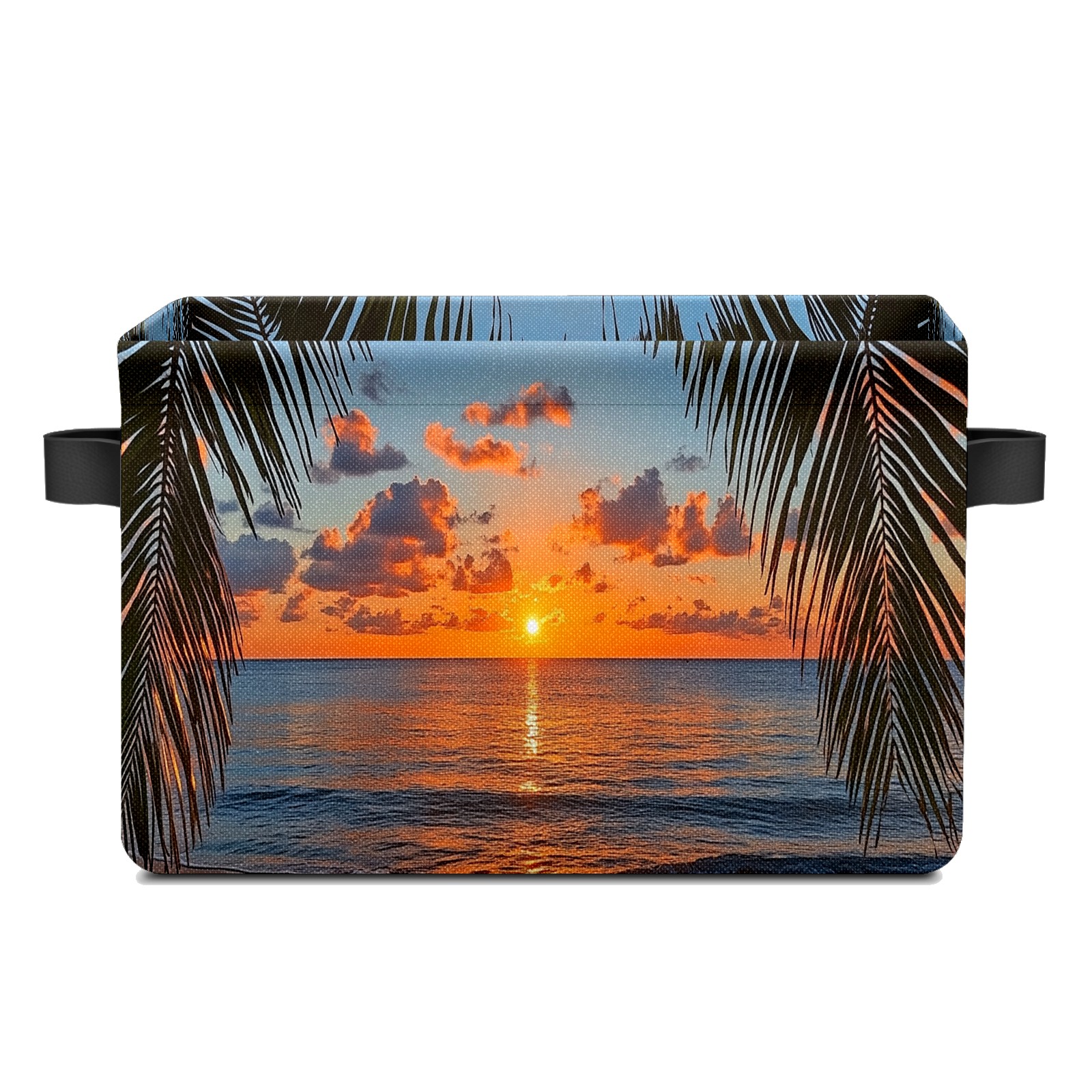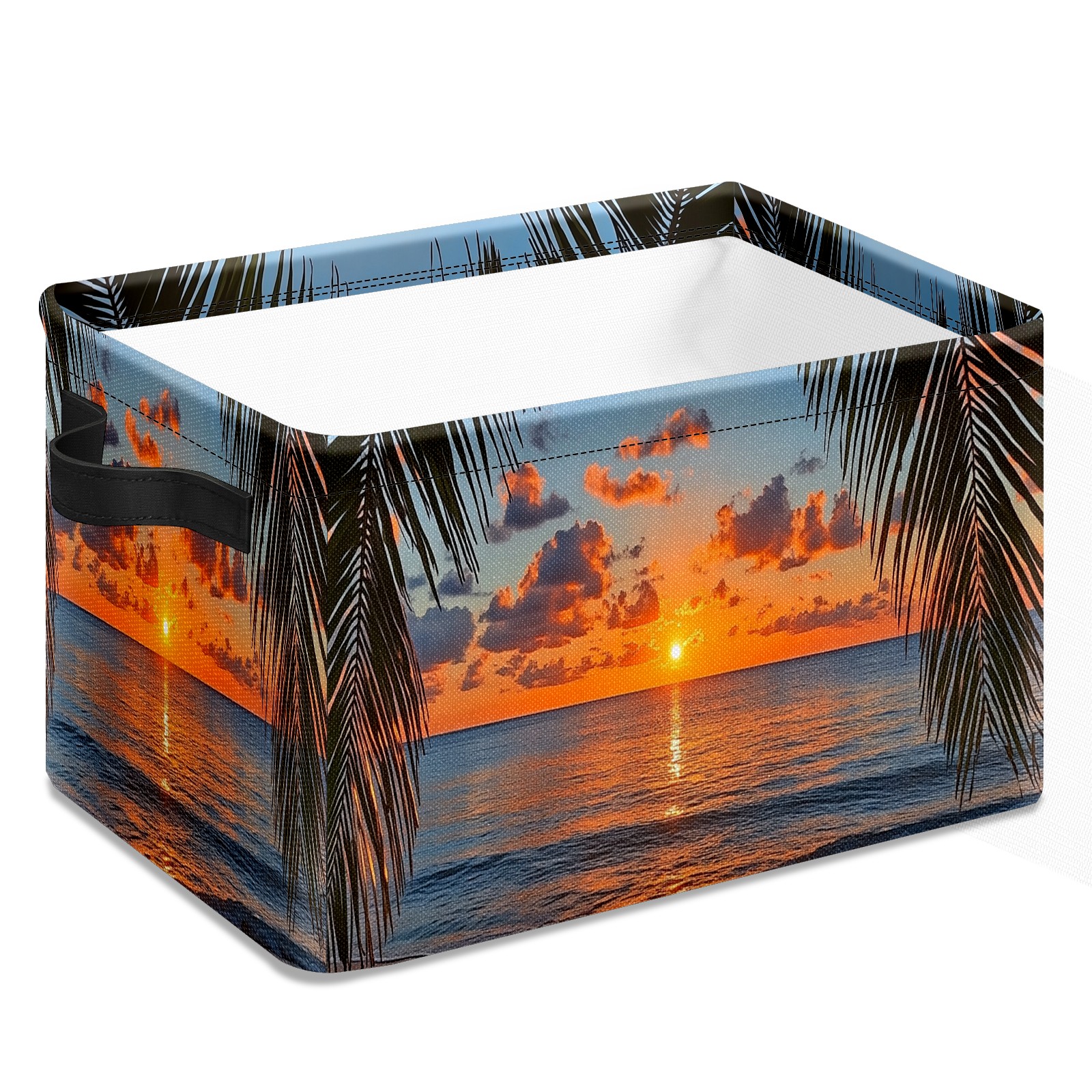 Foldable and Stackable Fabric Storage Basket for Home Organization with Handles, Decorative Closet Bins for Shelves and Laundry Storage( Sunset Beach Palm Leaves)