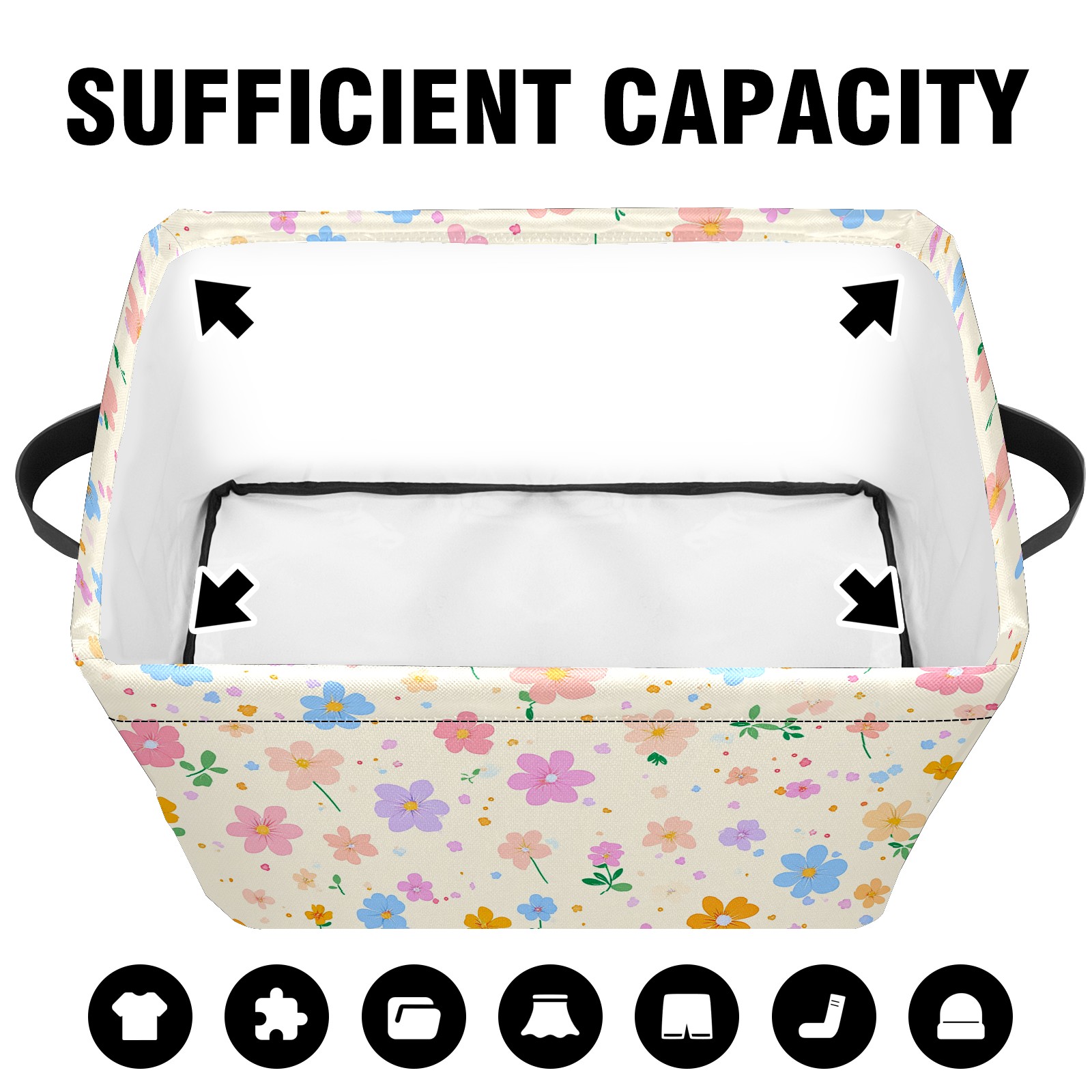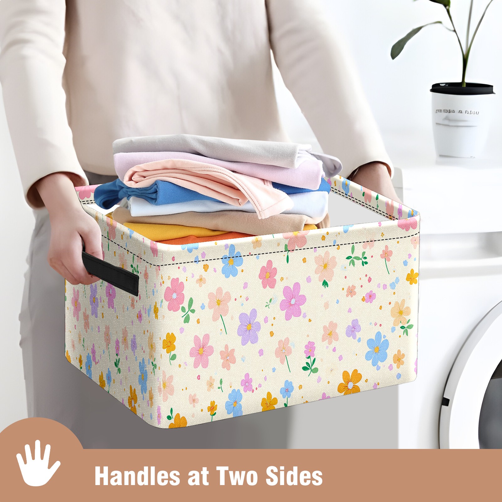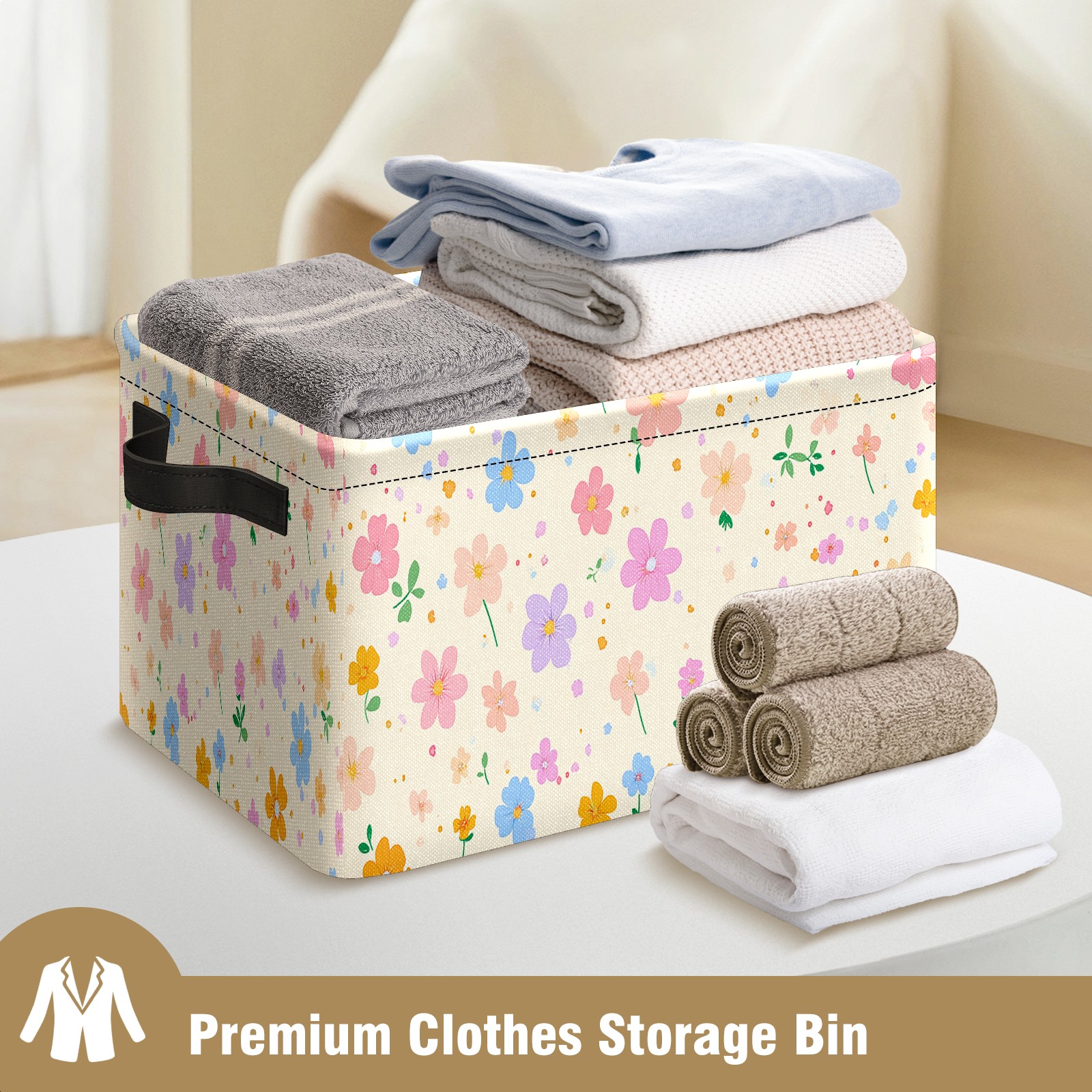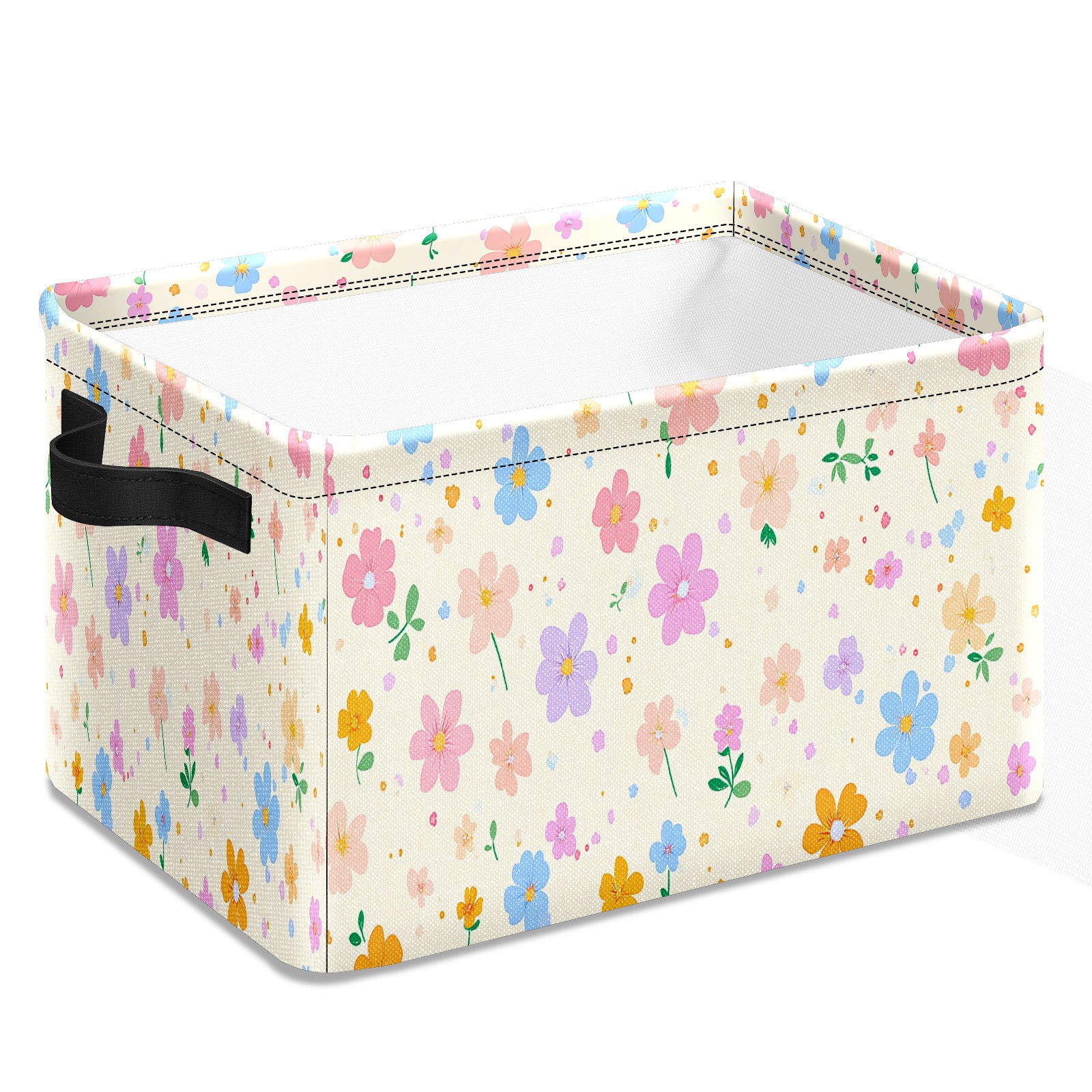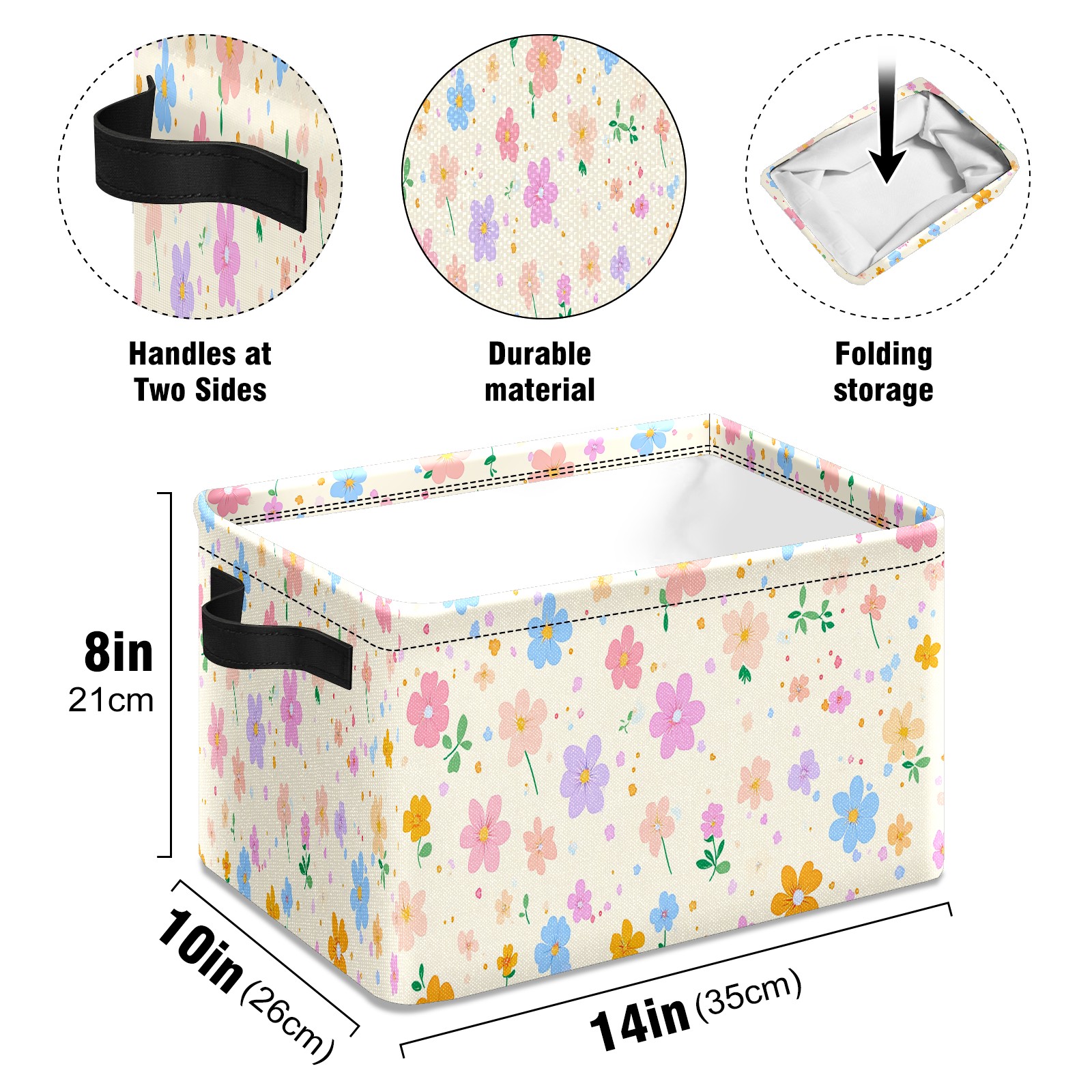 Foldable and Stackable Fabric Storage Basket for Home Organization with Handles, Decorative Closet Bins for Shelves and Laundry Storage( Spring Flowers)