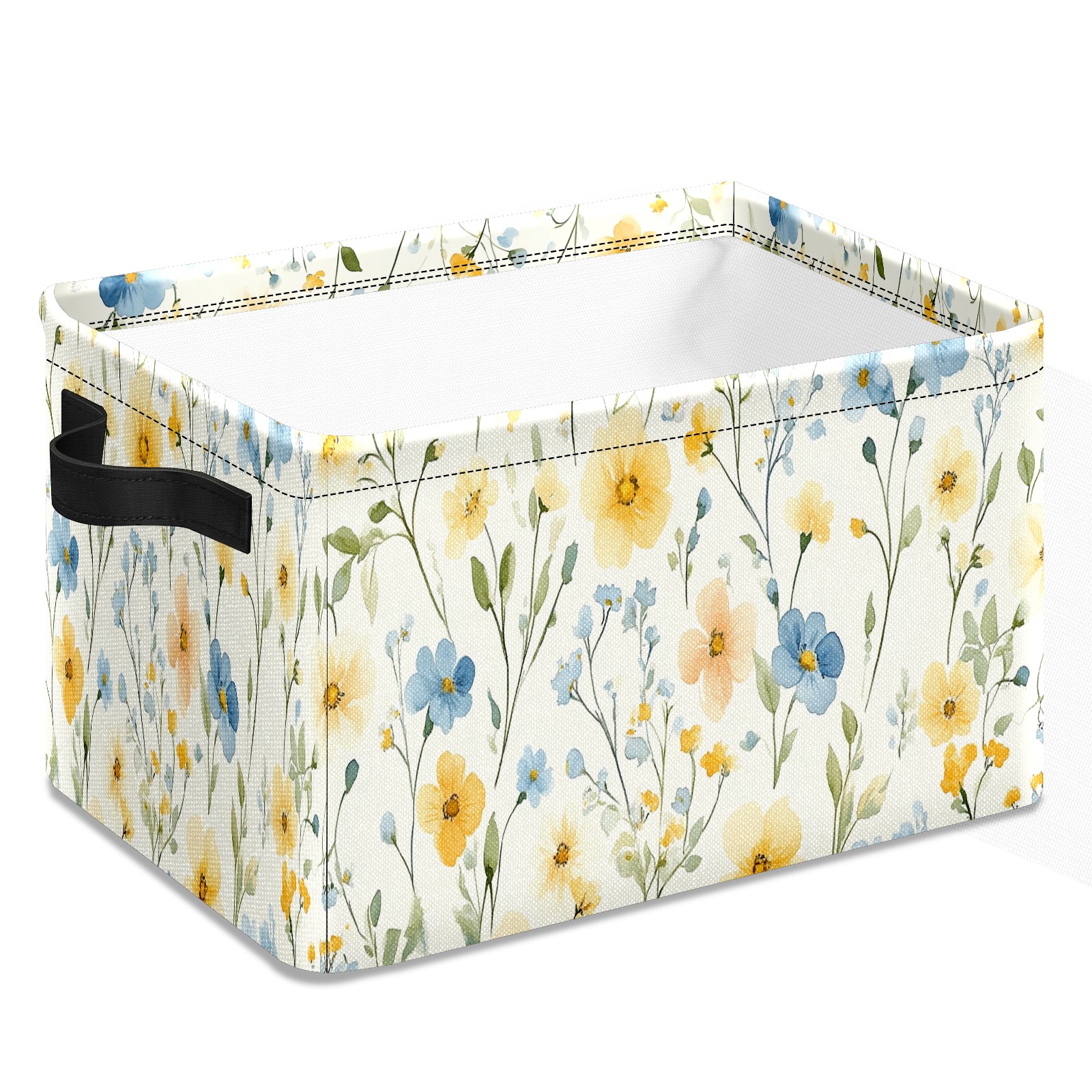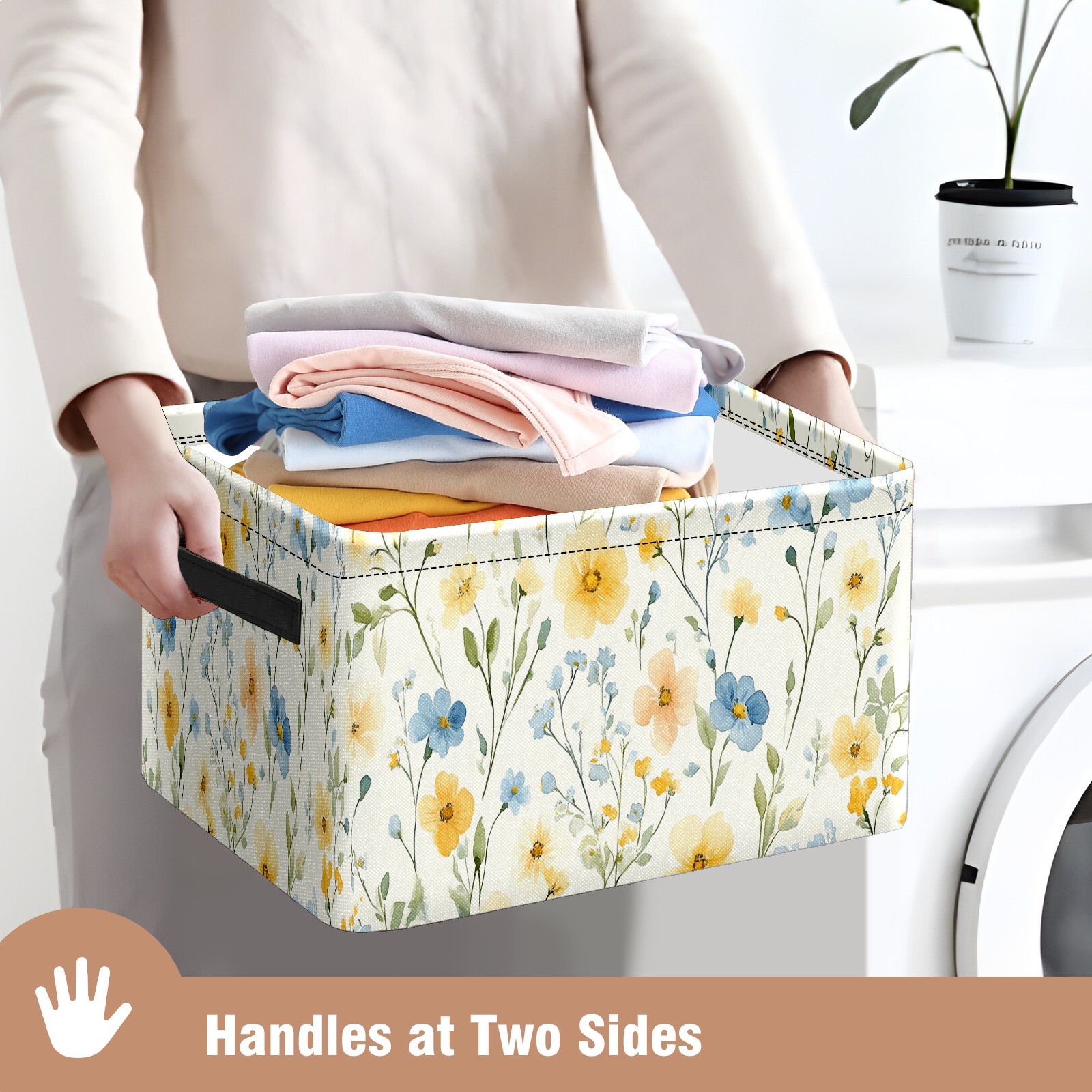 Foldable and Stackable Fabric Storage Basket for Home Organization with Handles, Decorative Closet Bins for Shelves and Laundry Storage( Pastel Watercolor Flowers)