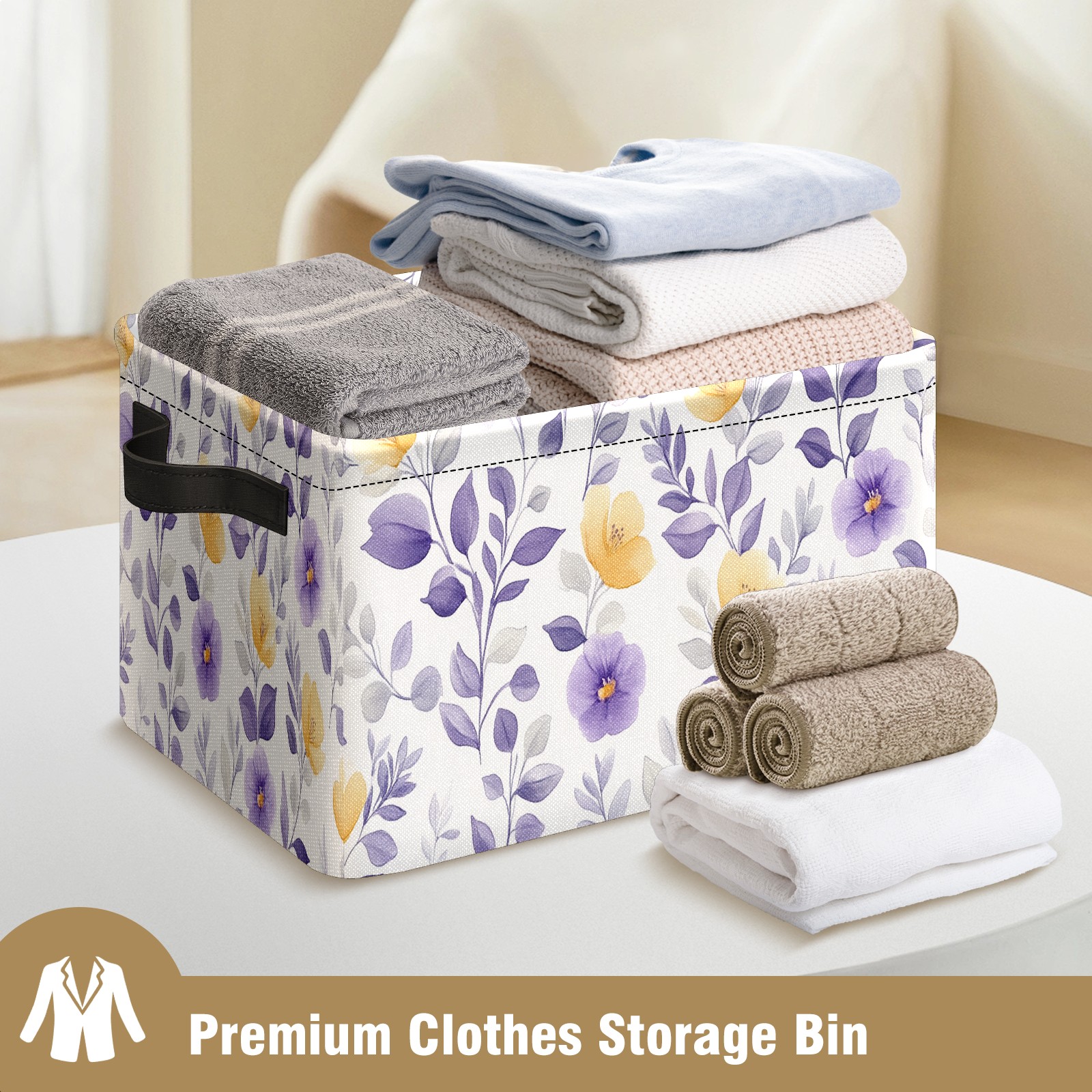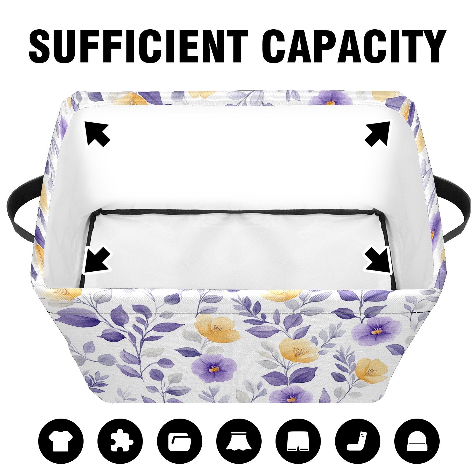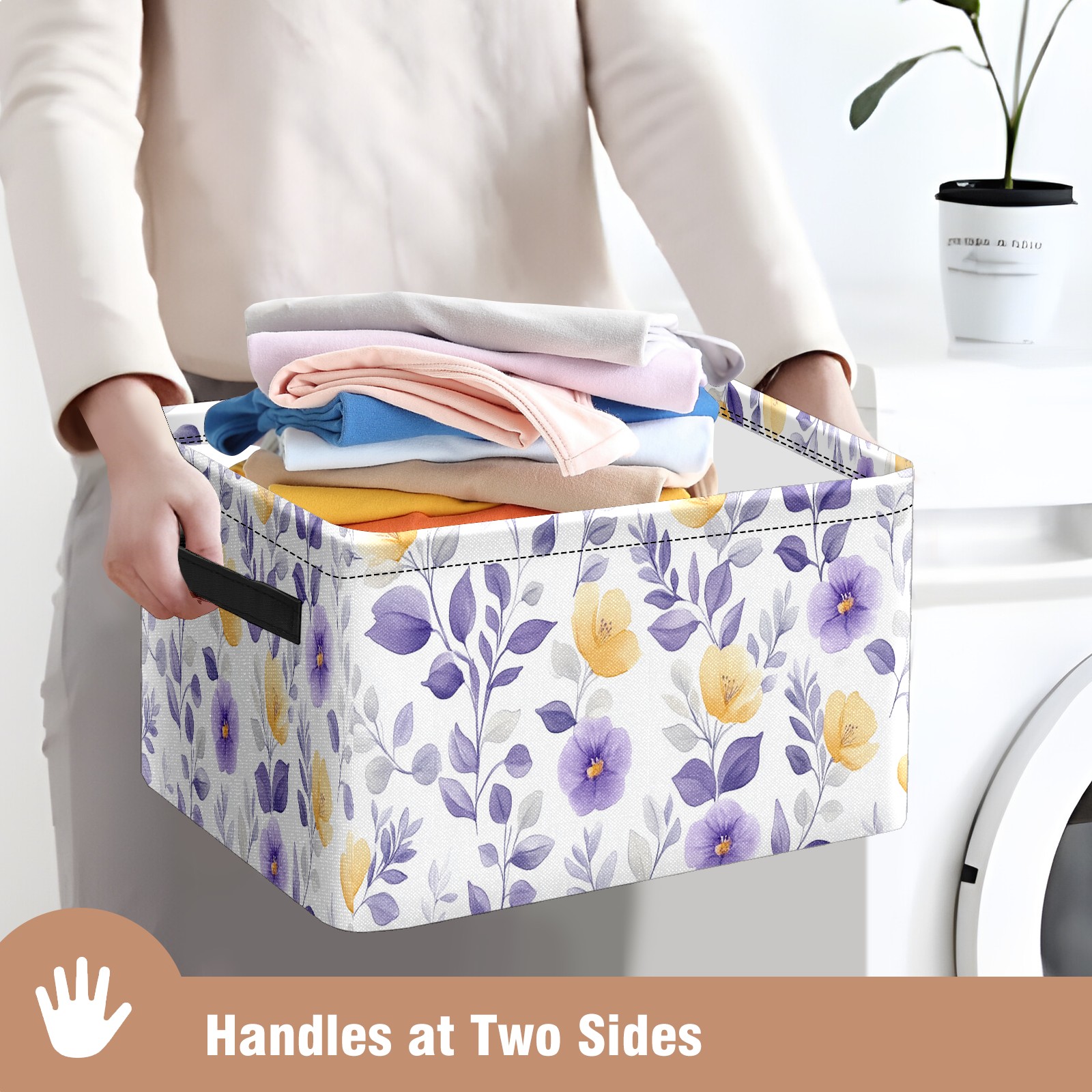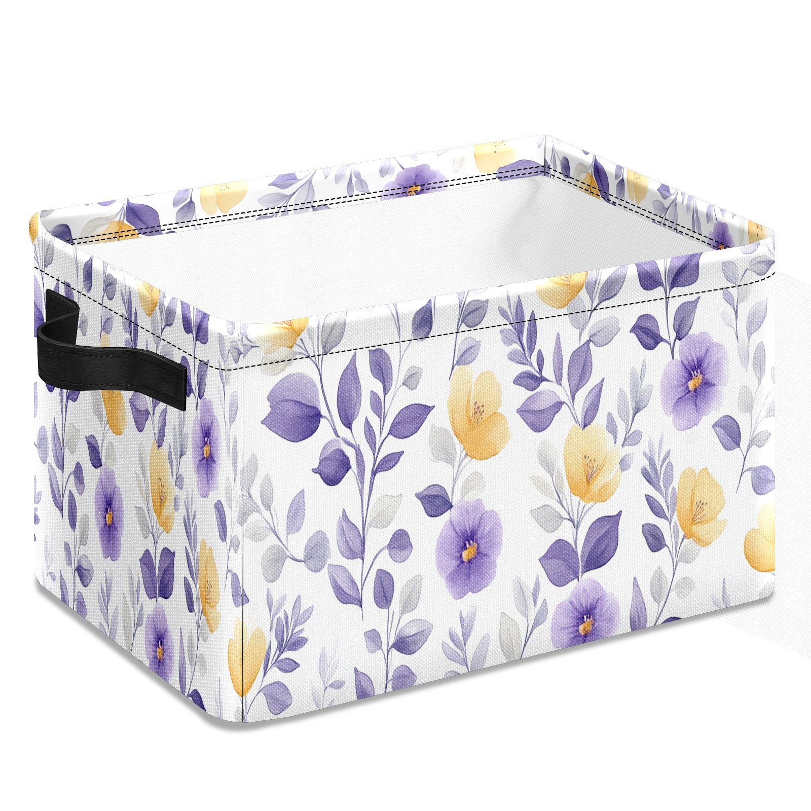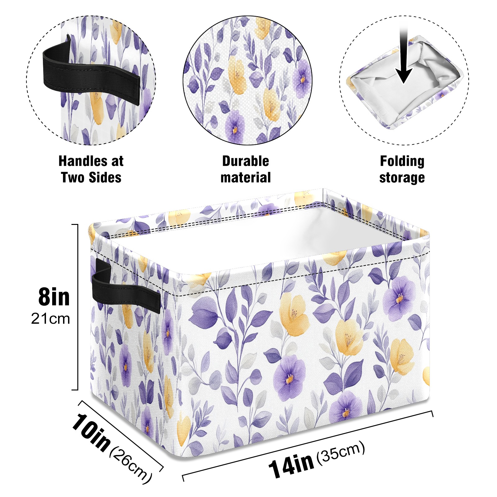 Foldable and Stackable Fabric Storage Basket for Home Organization with Handles, Decorative Closet Bins for Shelves and Laundry Storage( Purple Yellow Floral)