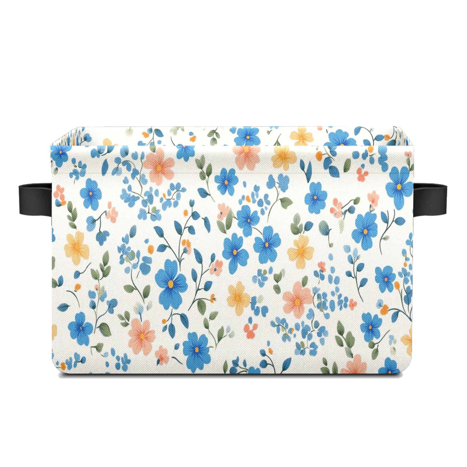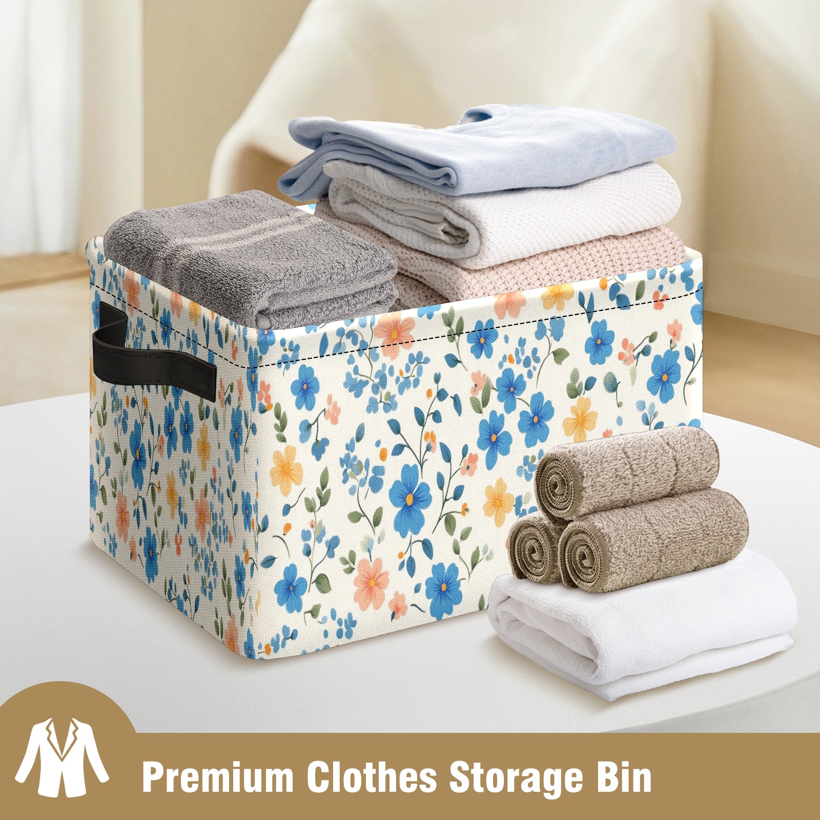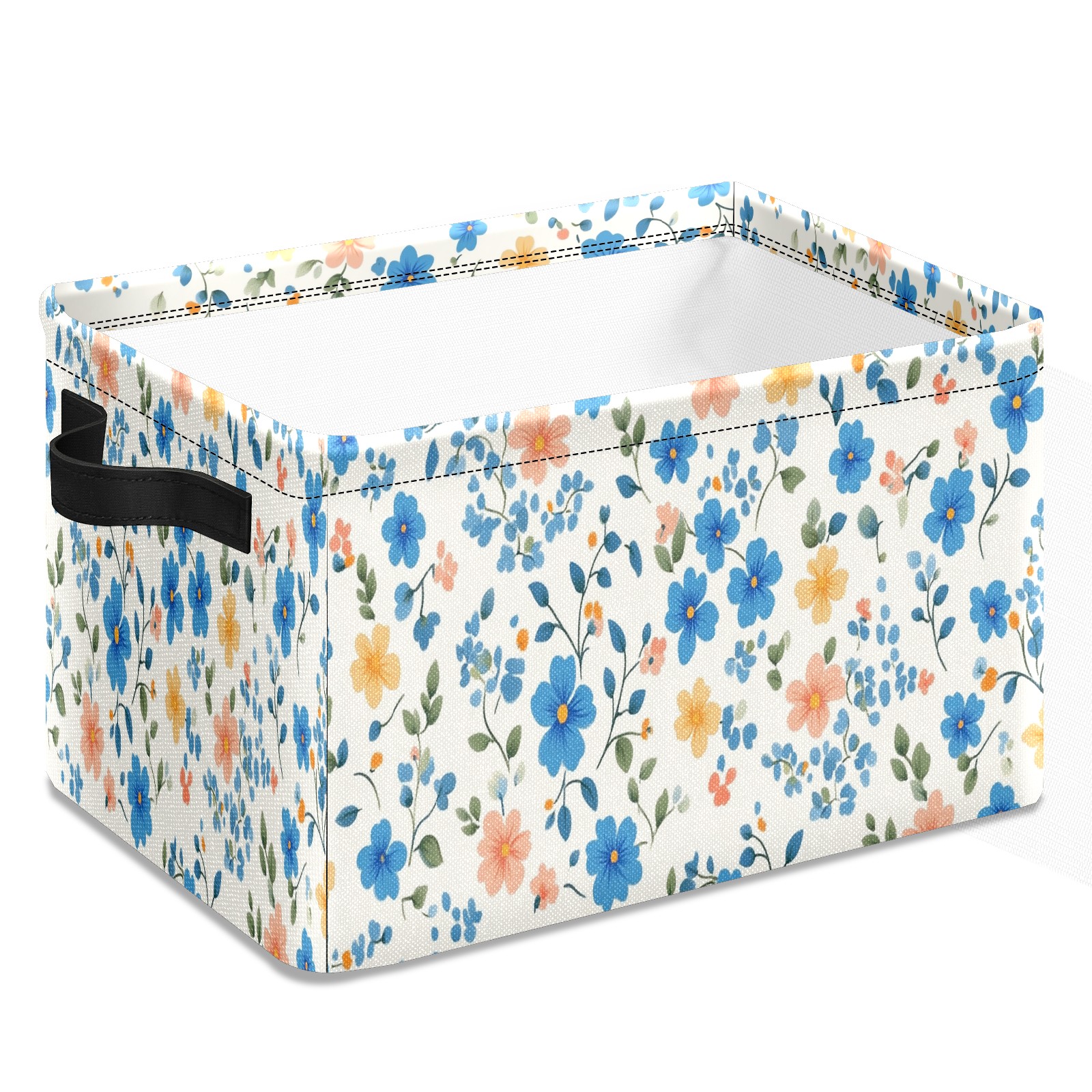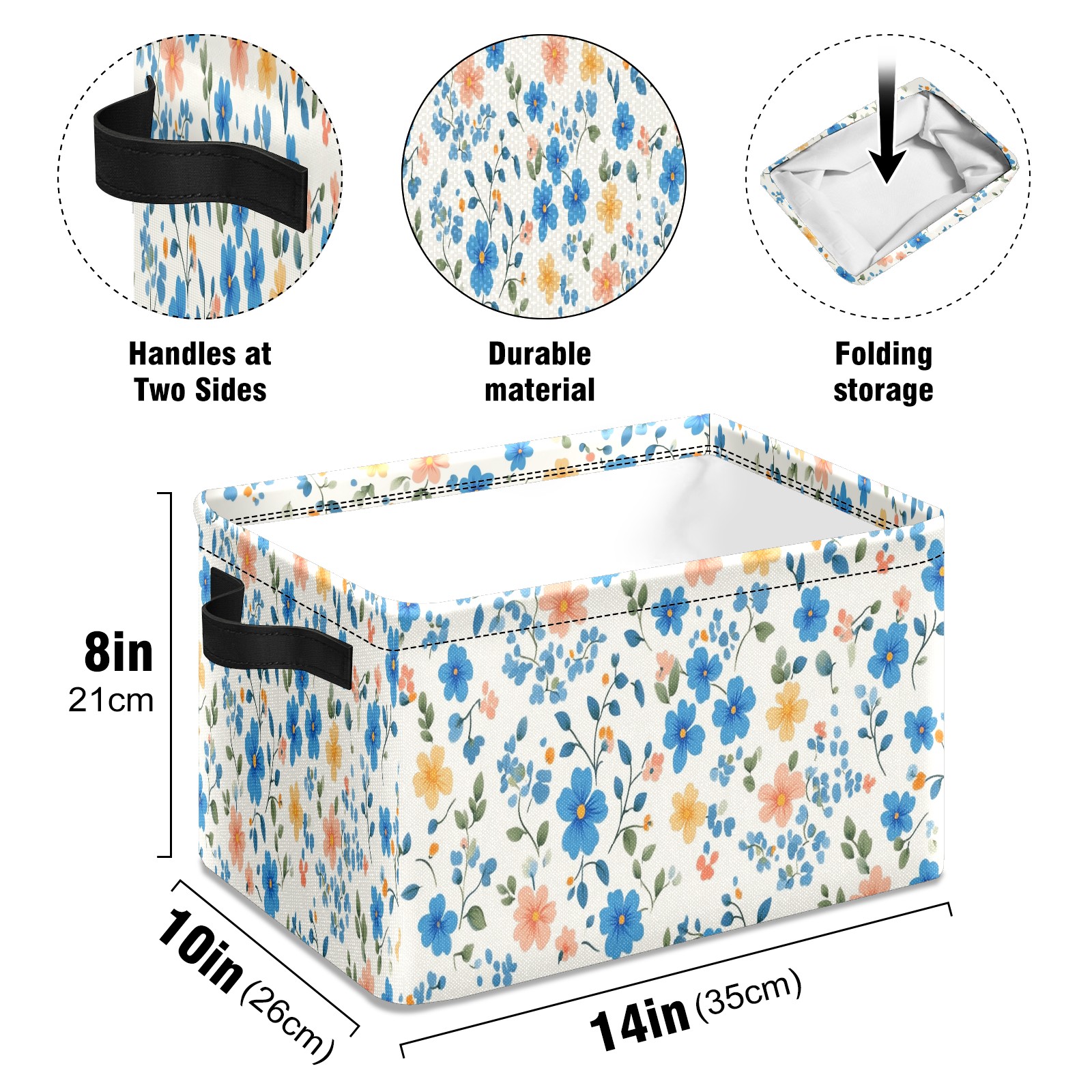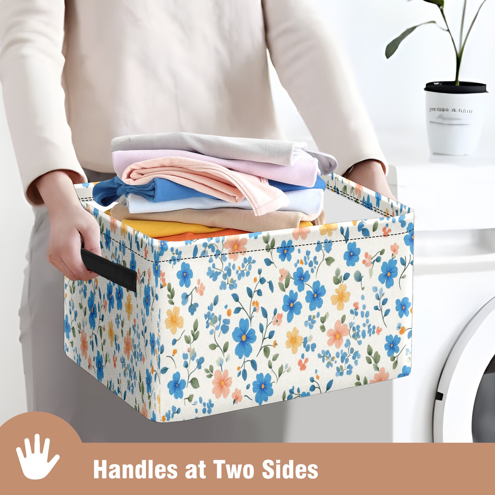 Foldable and Stackable Fabric Storage Basket for Home Organization with Handles, Decorative Closet Bins for Shelves and Laundry Storage( Blue Yellow Flowers)
