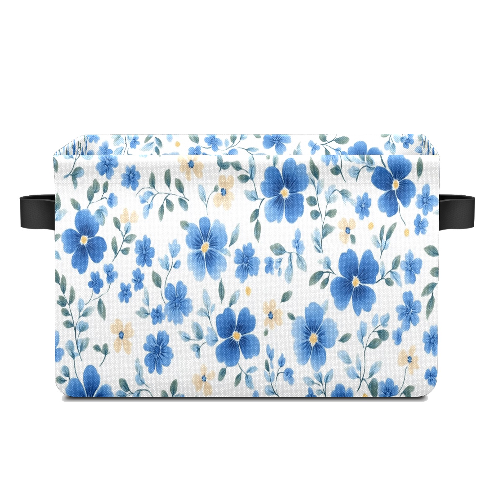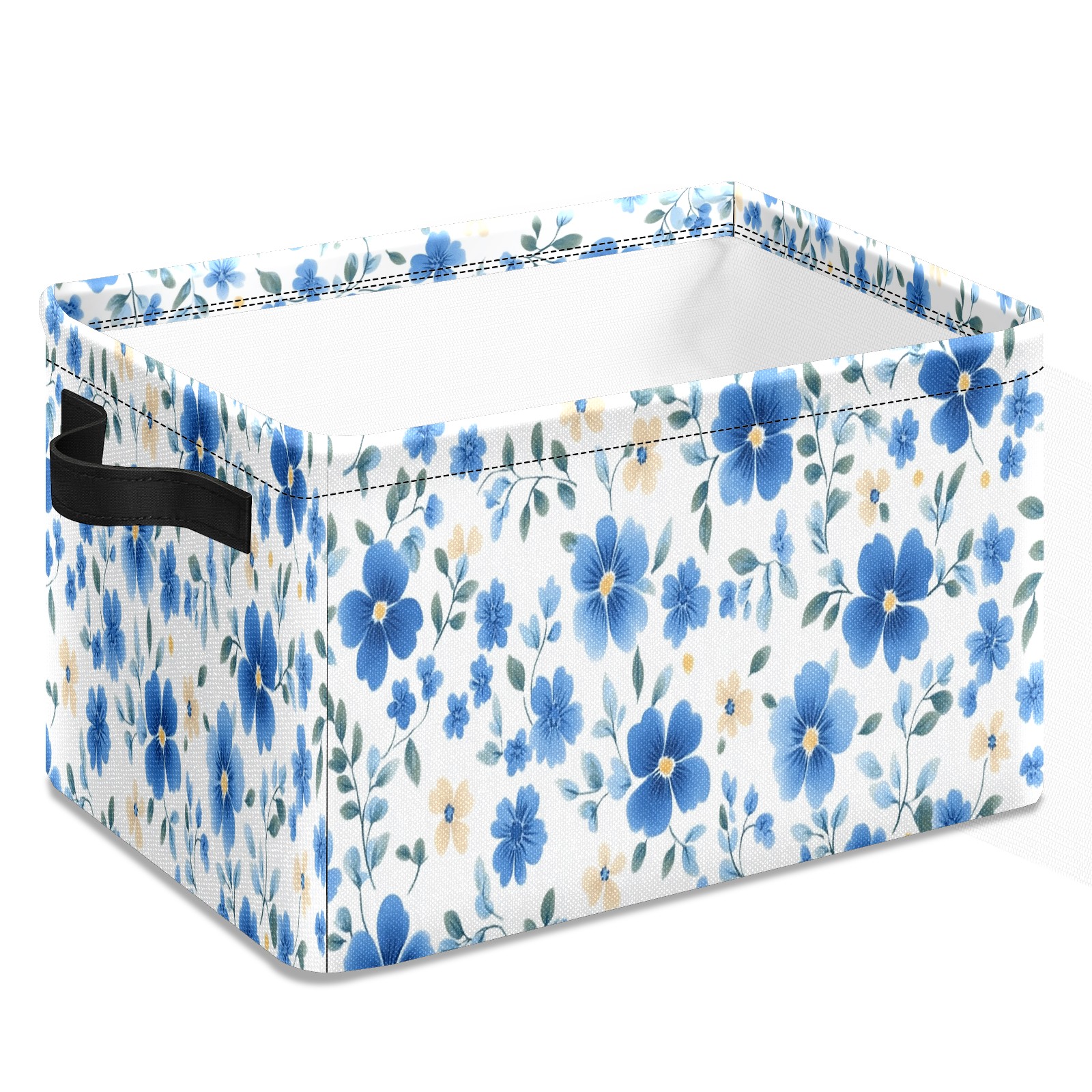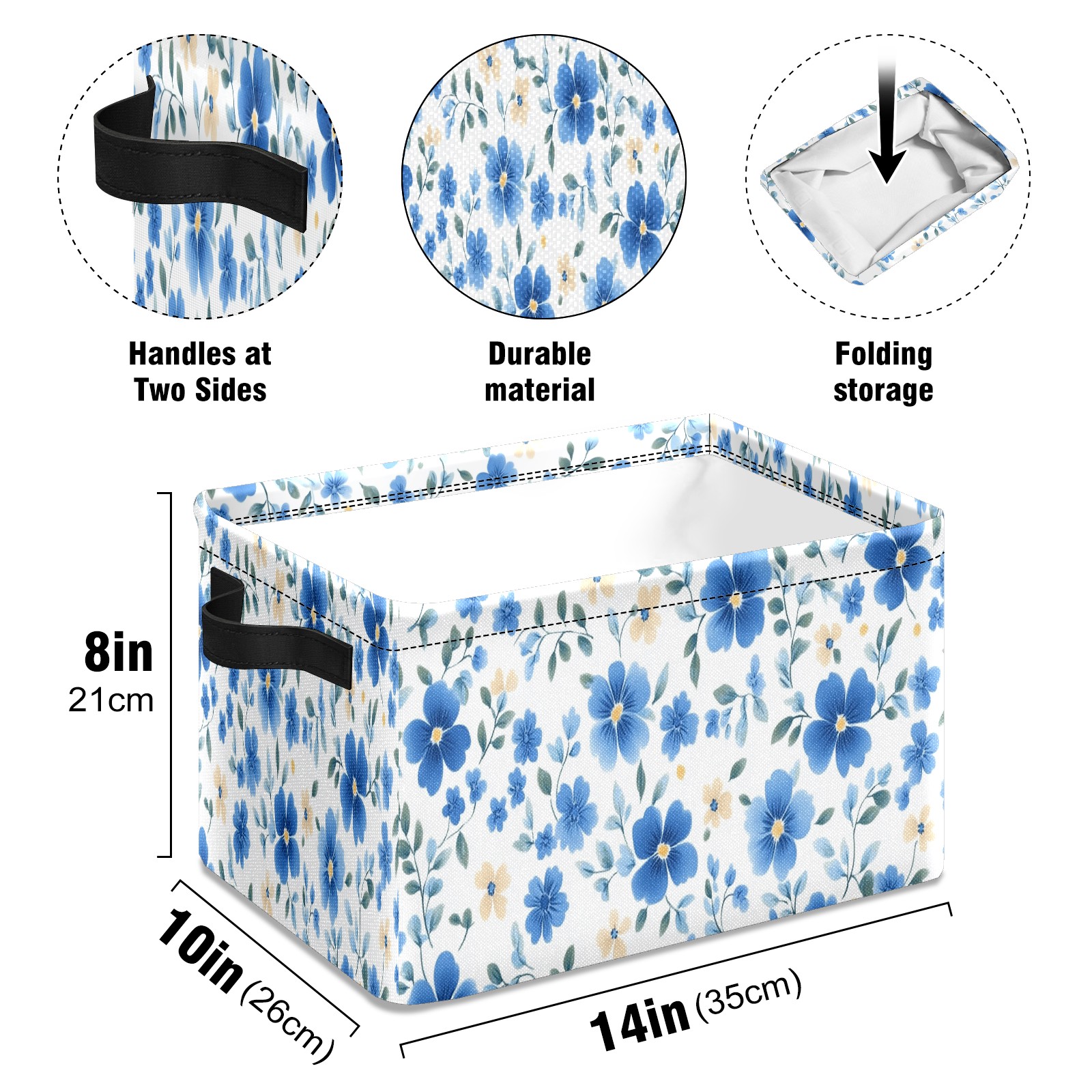 Foldable and Stackable Fabric Storage Basket for Home Organization with Handles, Decorative Closet Bins for Shelves and Laundry Storage( Blue Small Flowers)