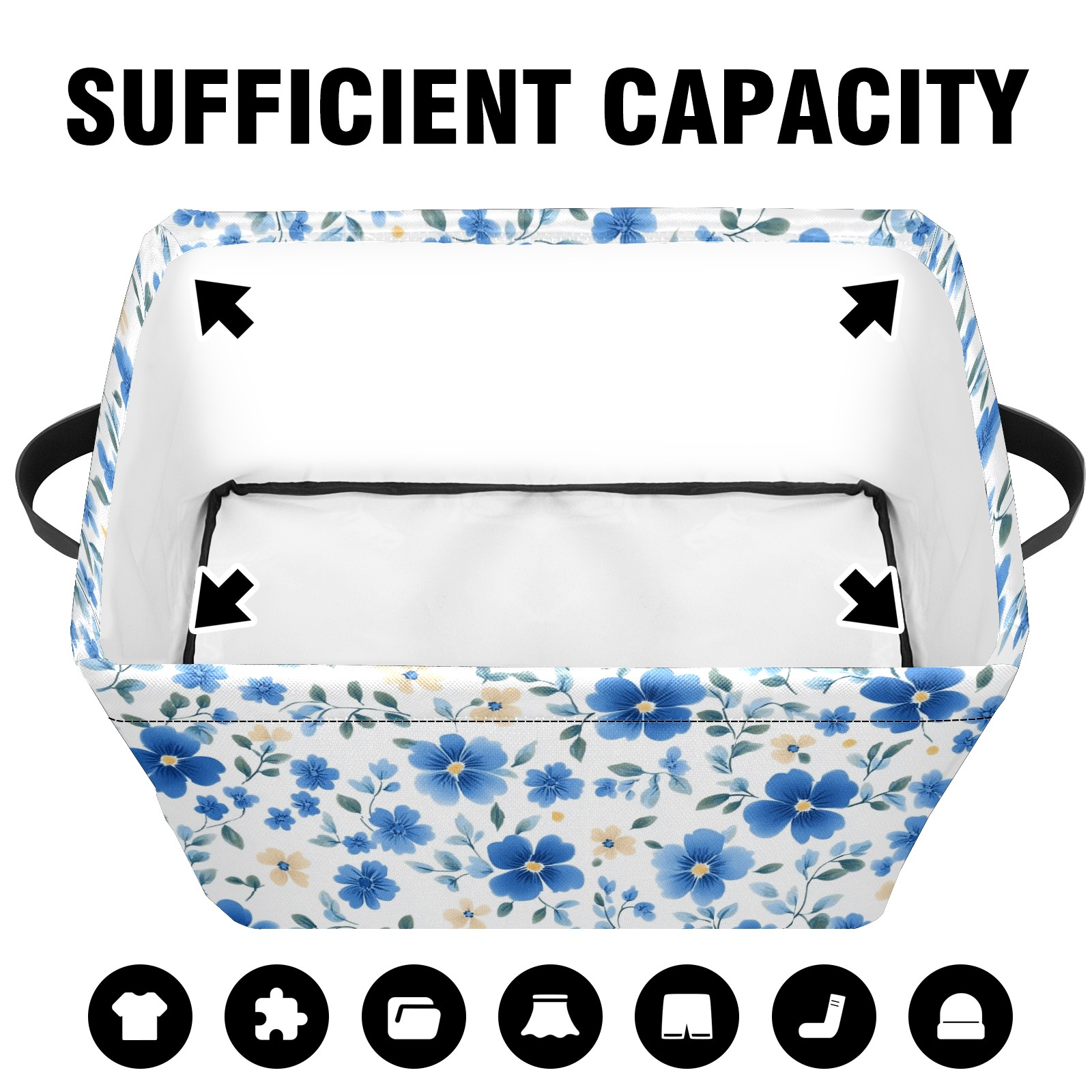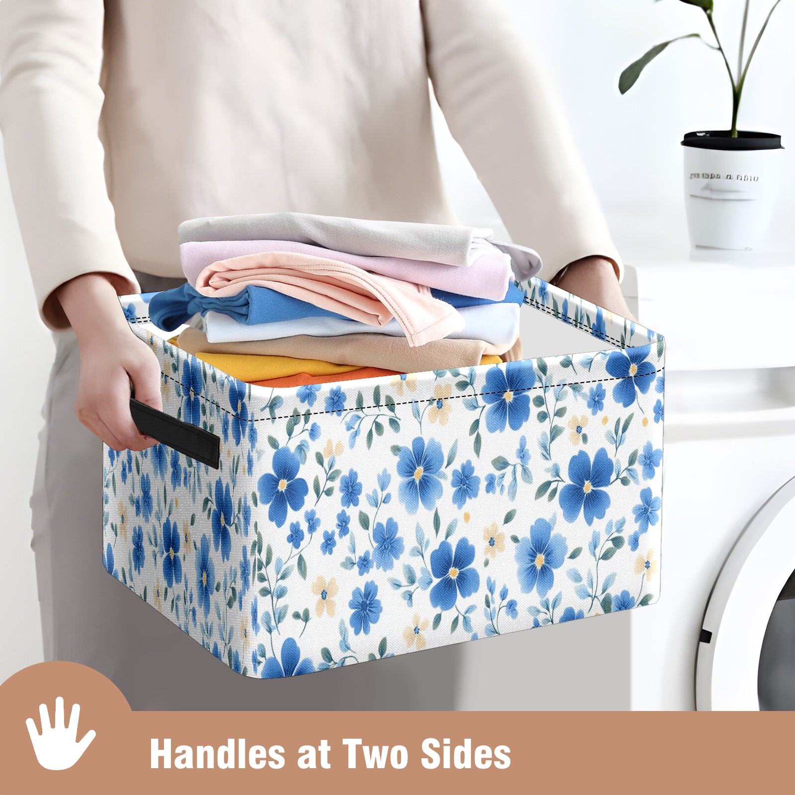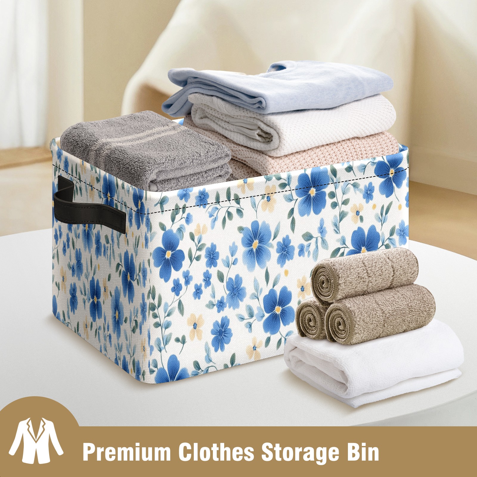 Foldable and Stackable Fabric Storage Basket for Home Organization with Handles, Decorative Closet Bins for Shelves and Laundry Storage( Blue Small Flowers)