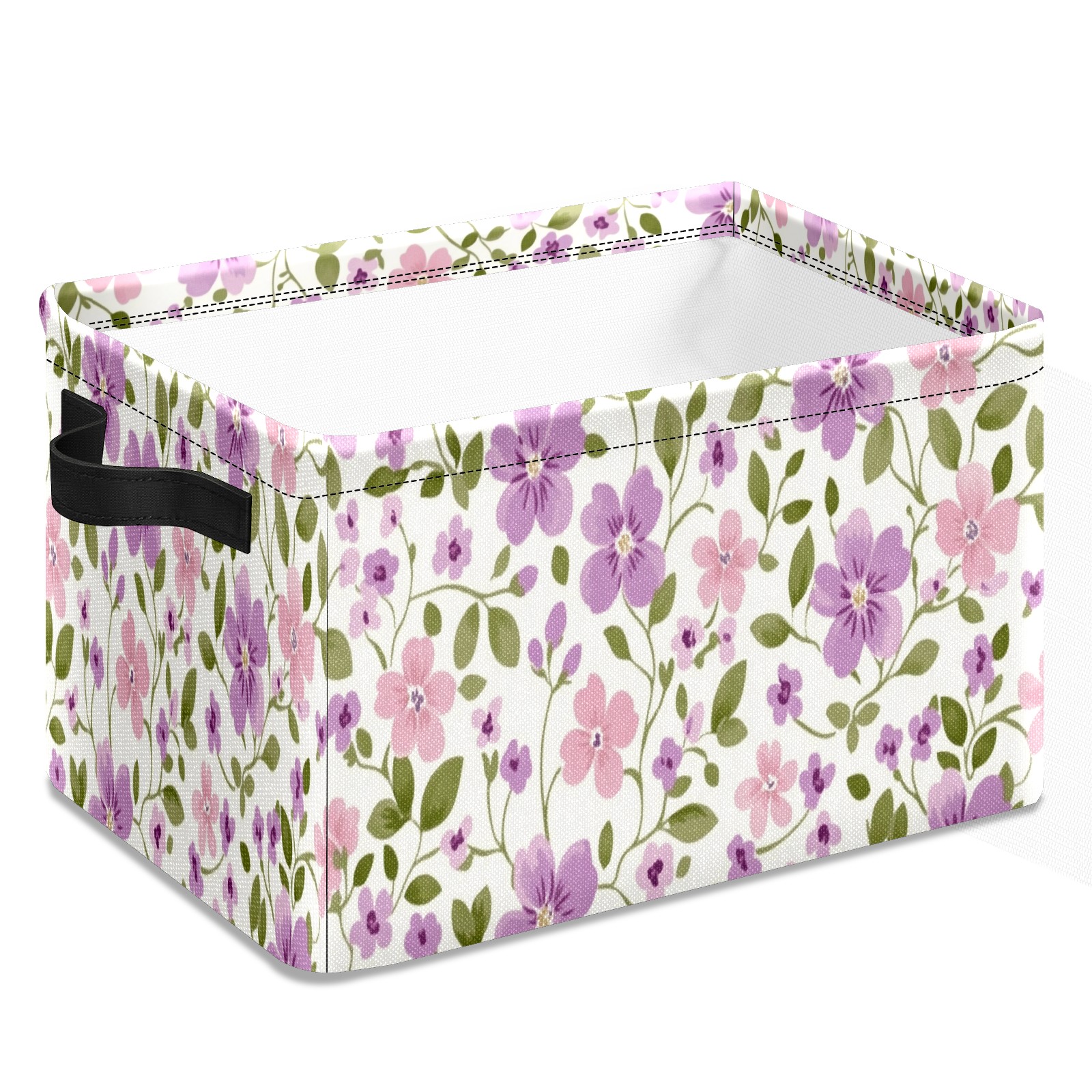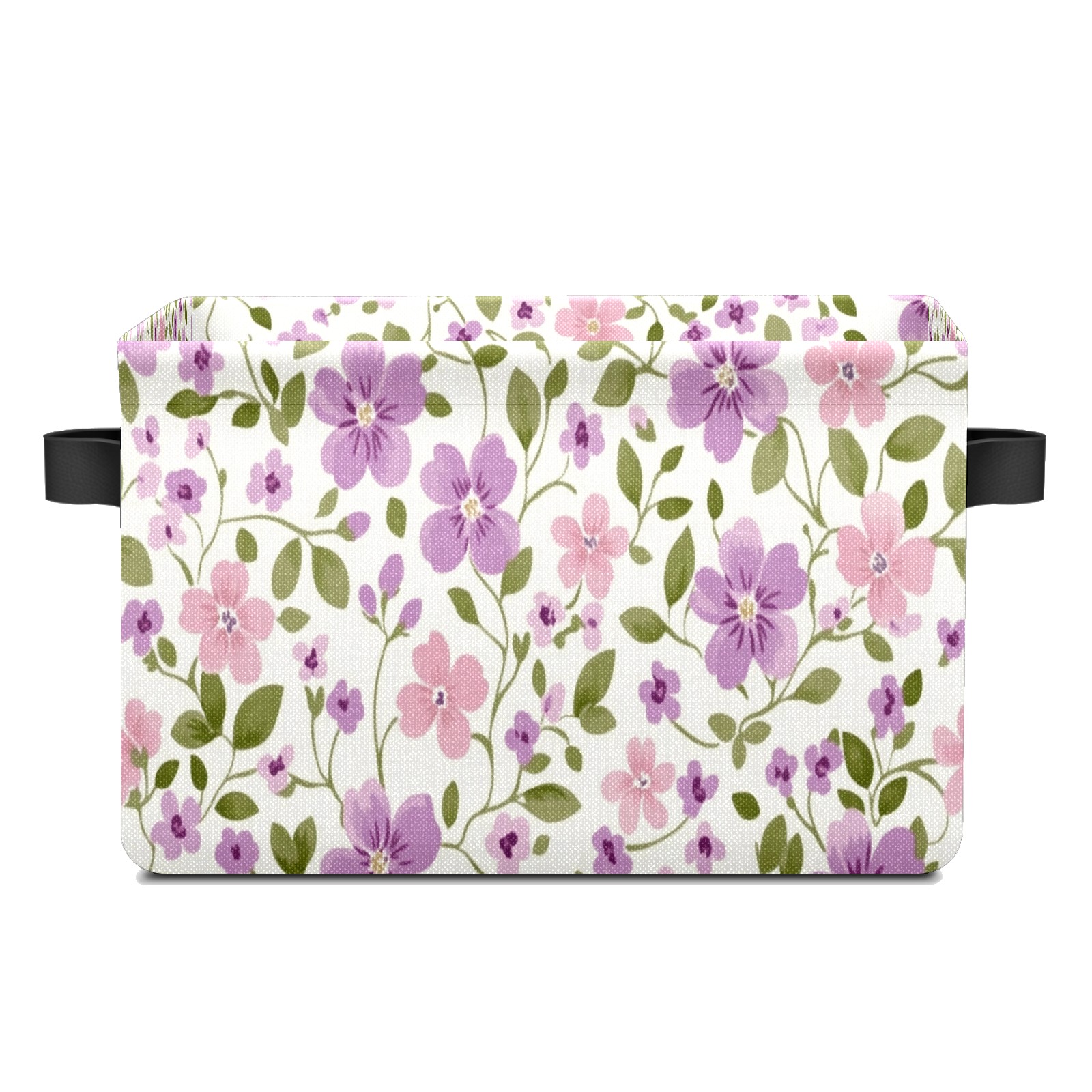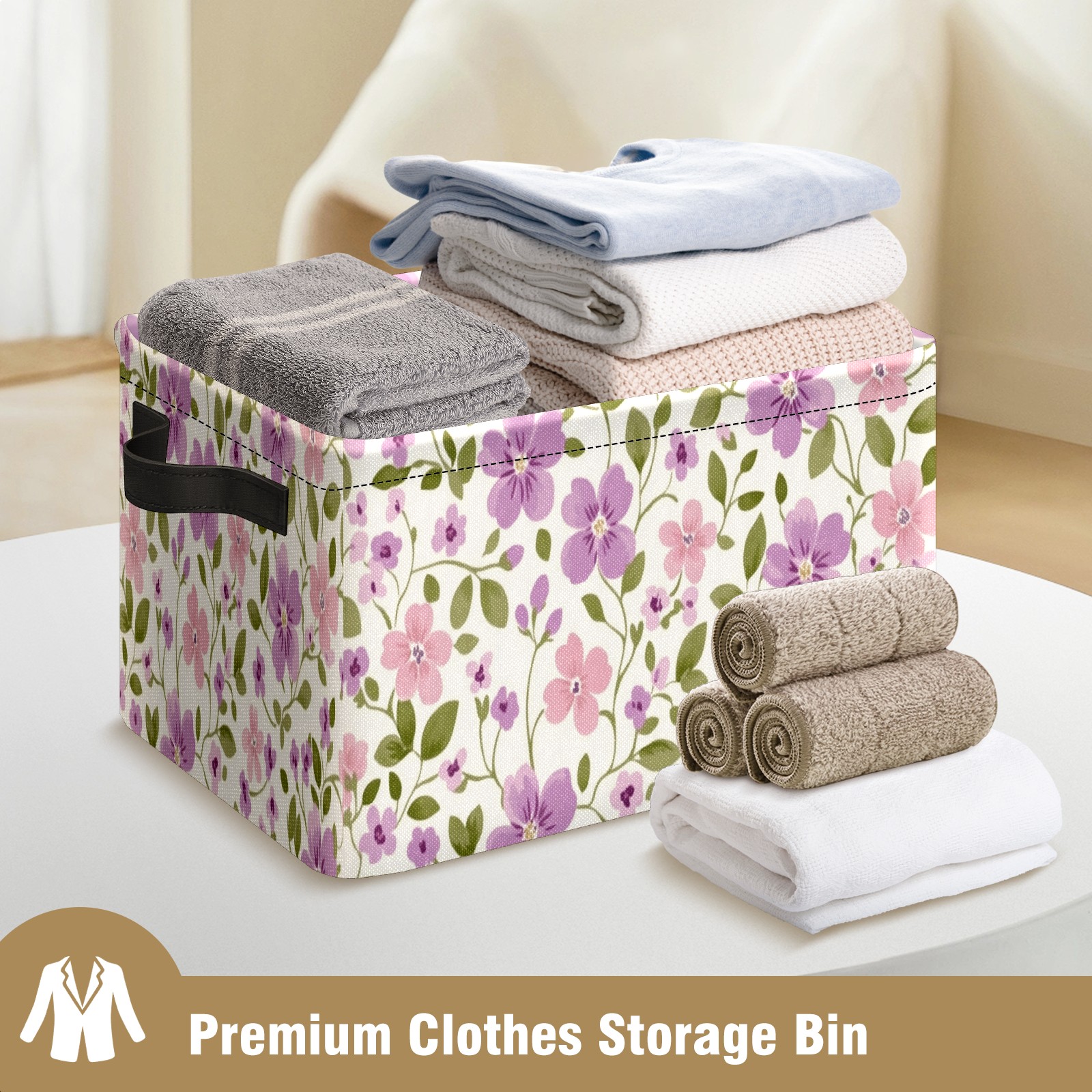 Foldable and Stackable Fabric Storage Basket for Home Organization with Handles, Decorative Closet Bins for Shelves and Laundry Storage( Small Purple Flowers)