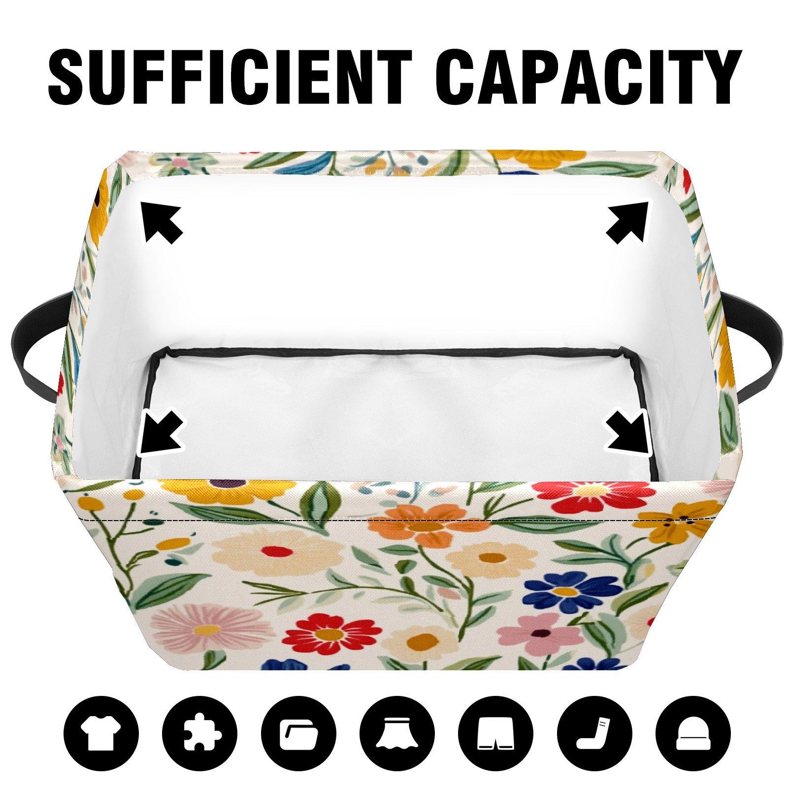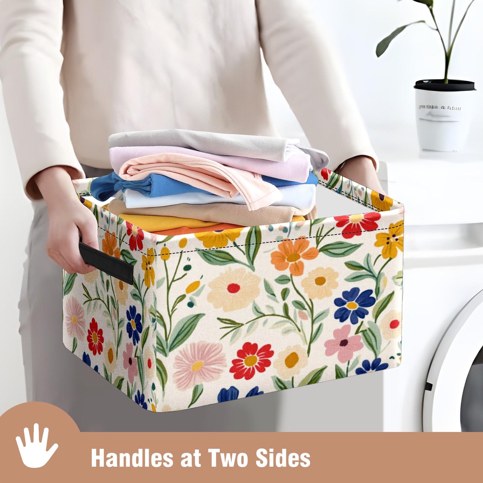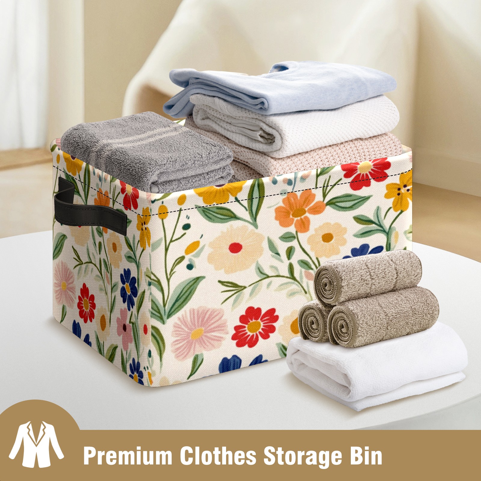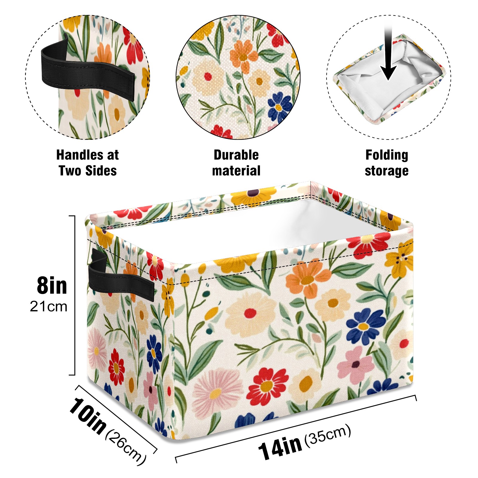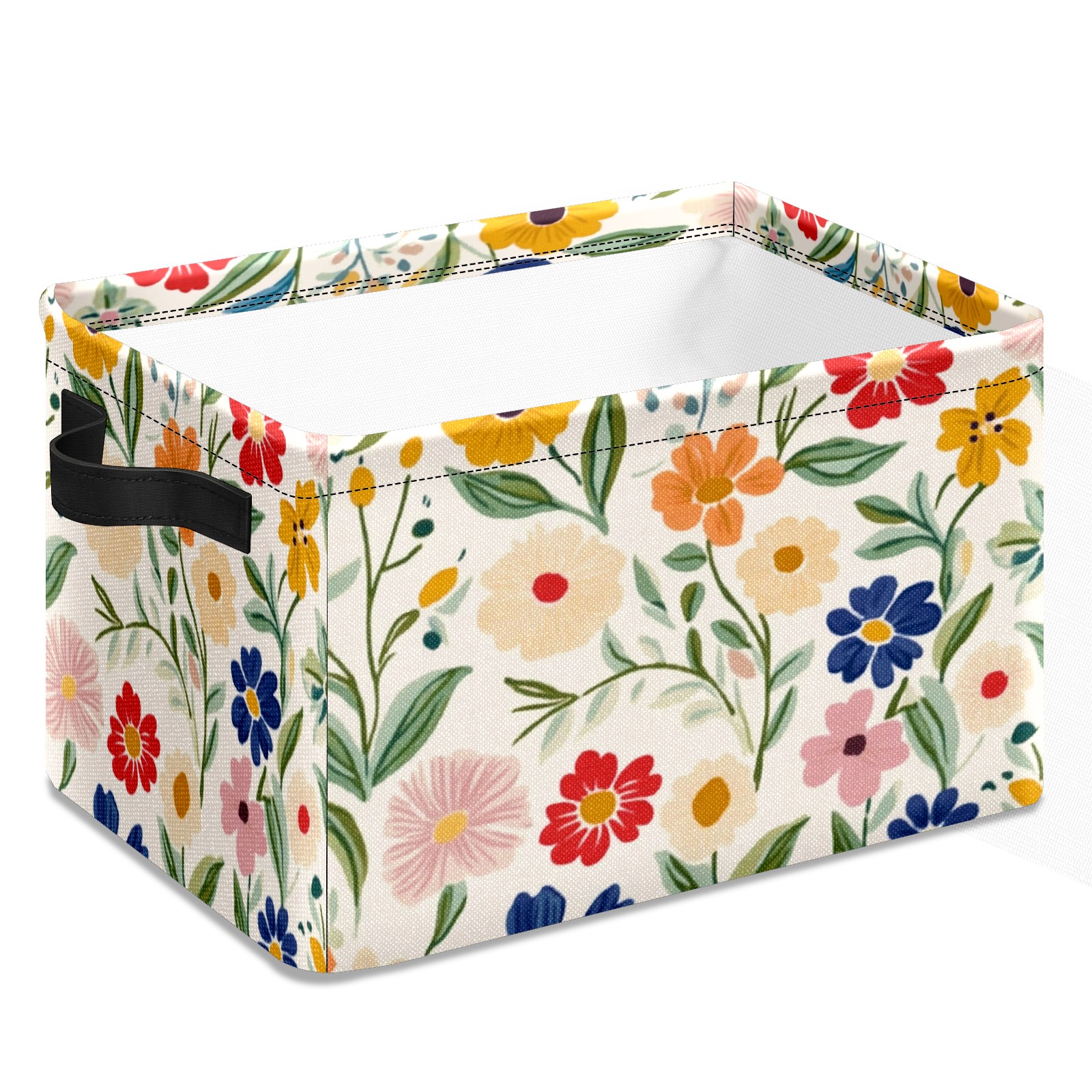 Foldable and Stackable Fabric Storage Basket for Home Organization with Handles, Decorative Closet Bins for Shelves and Laundry Storage( Simple Colorful Spring Flowers)