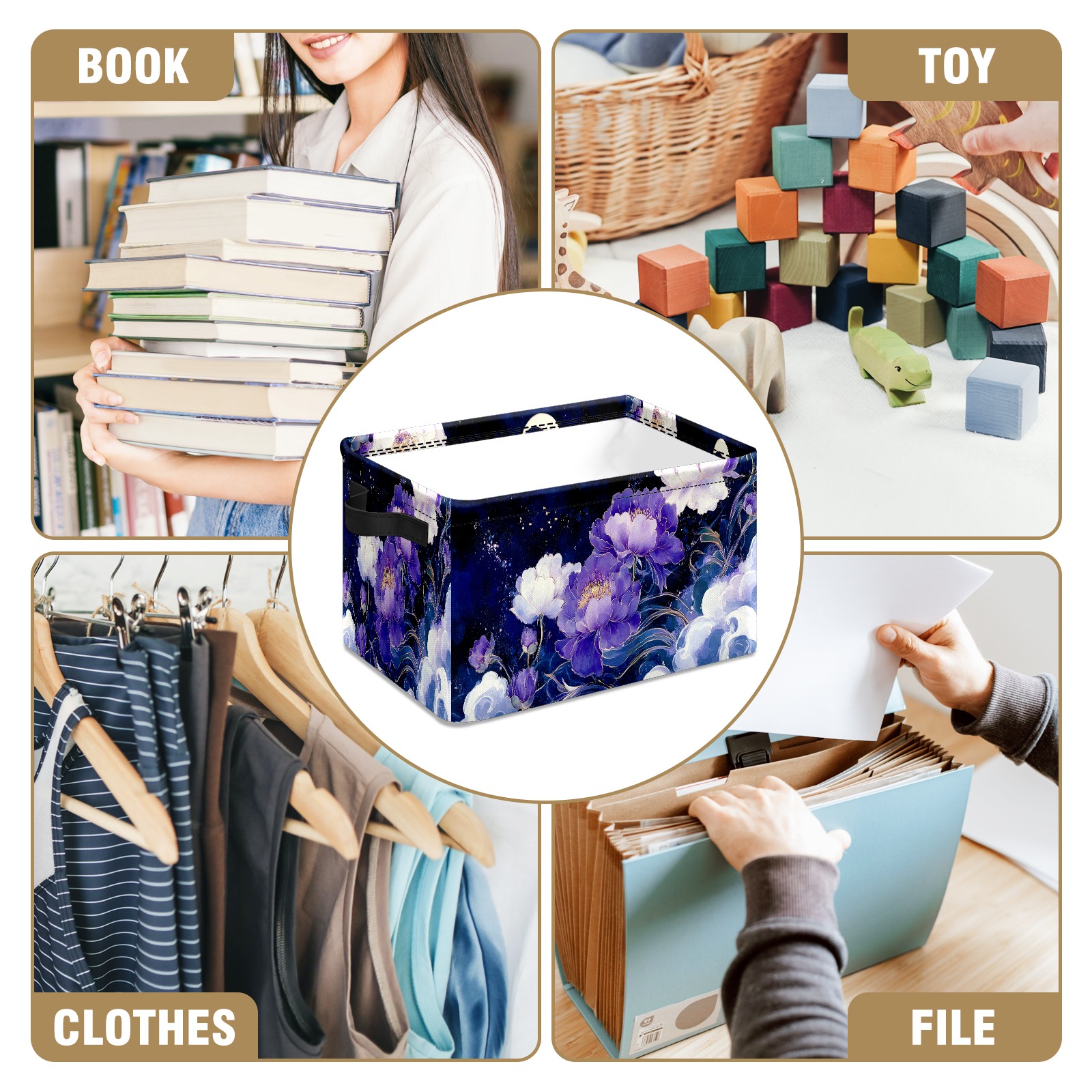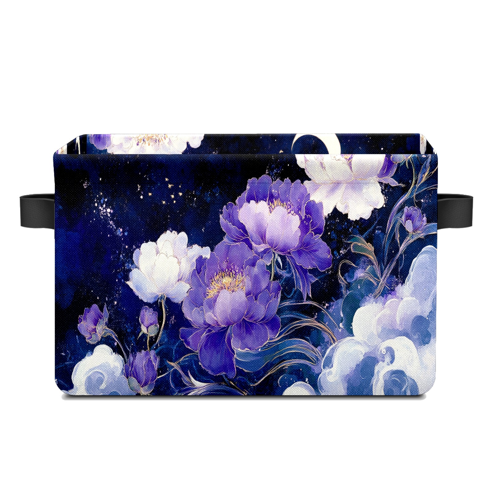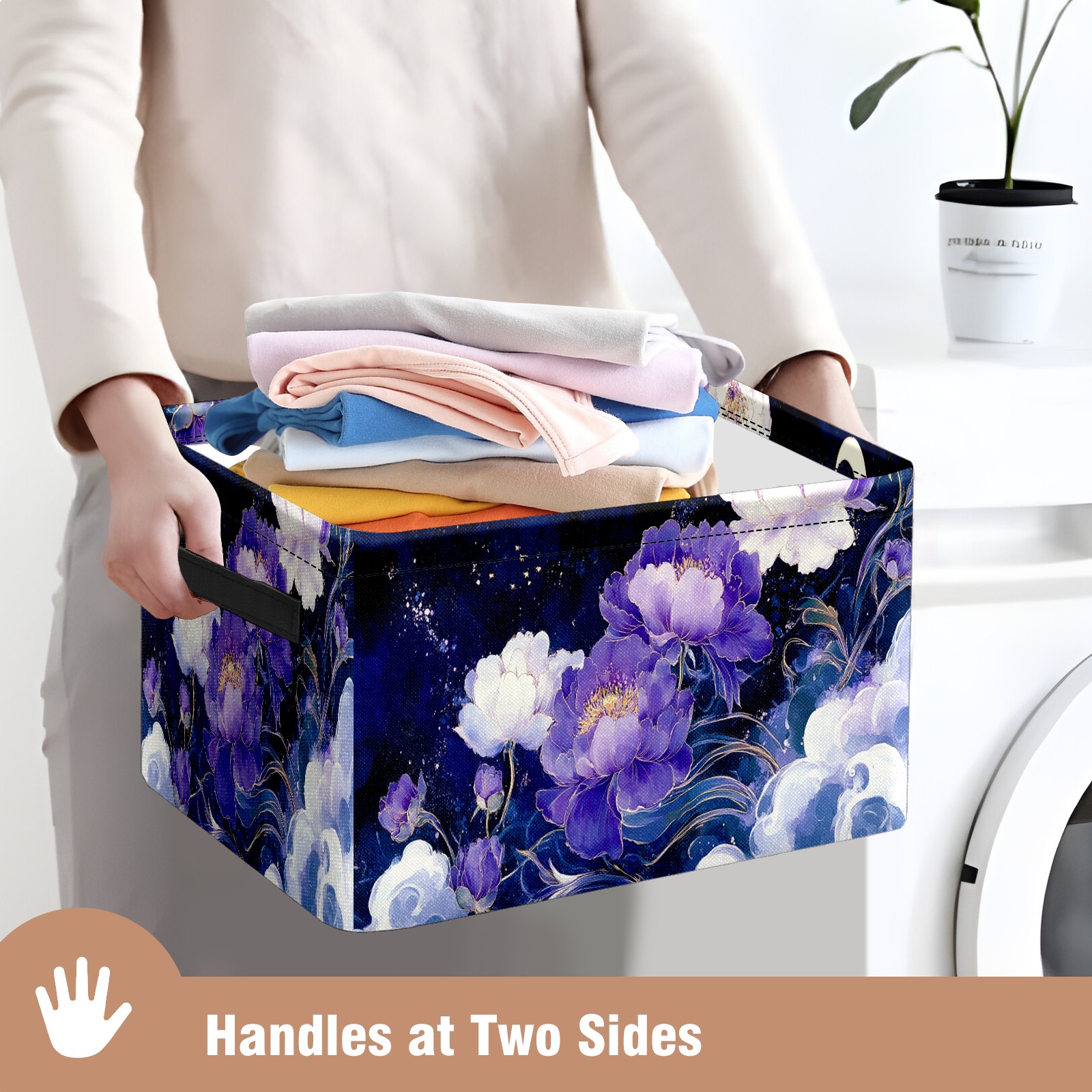 Foldable and Stackable Fabric Storage Basket for Home Organization with Handles, Decorative Closet Bins for Shelves and Laundry Storage( Purple White Floral)