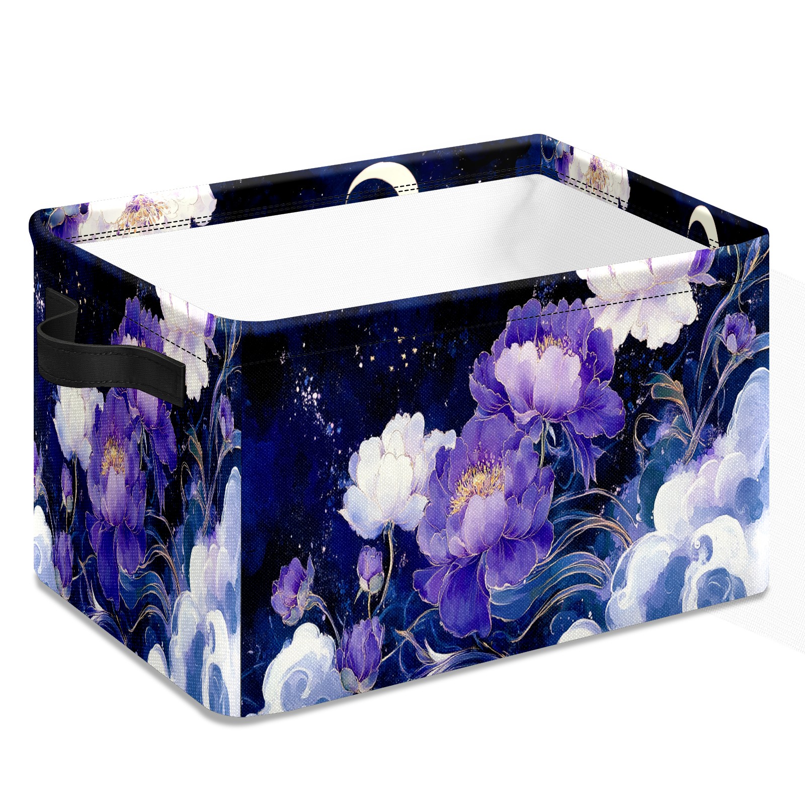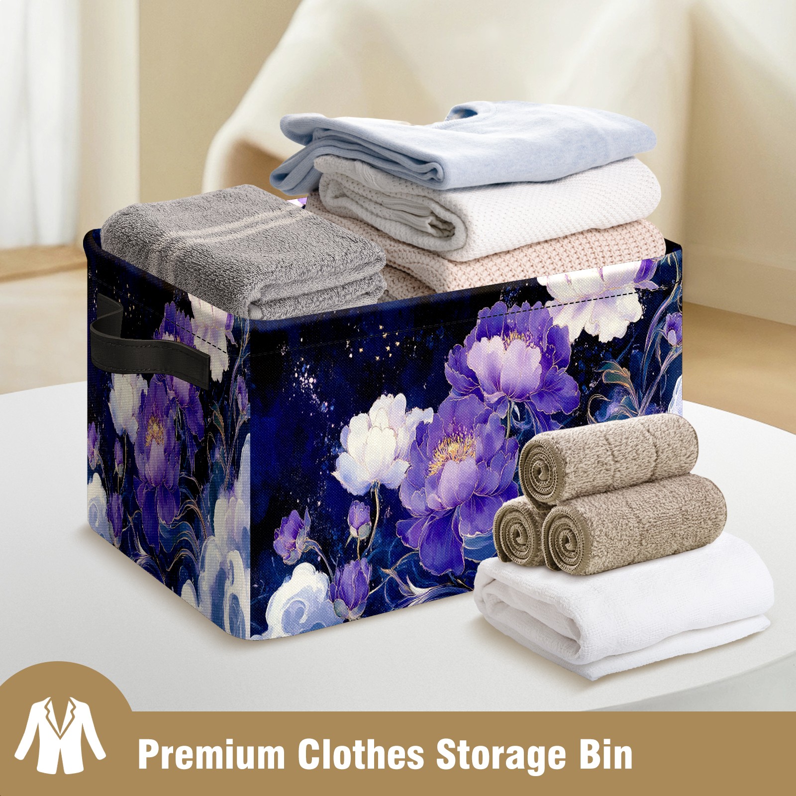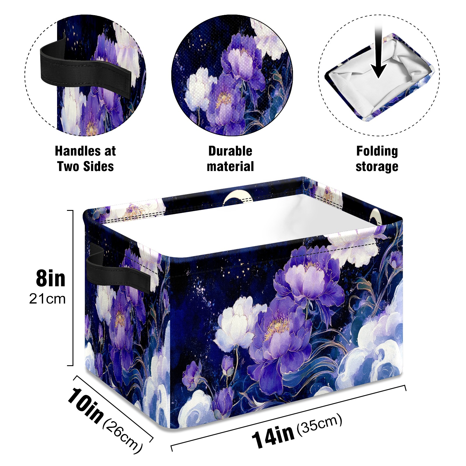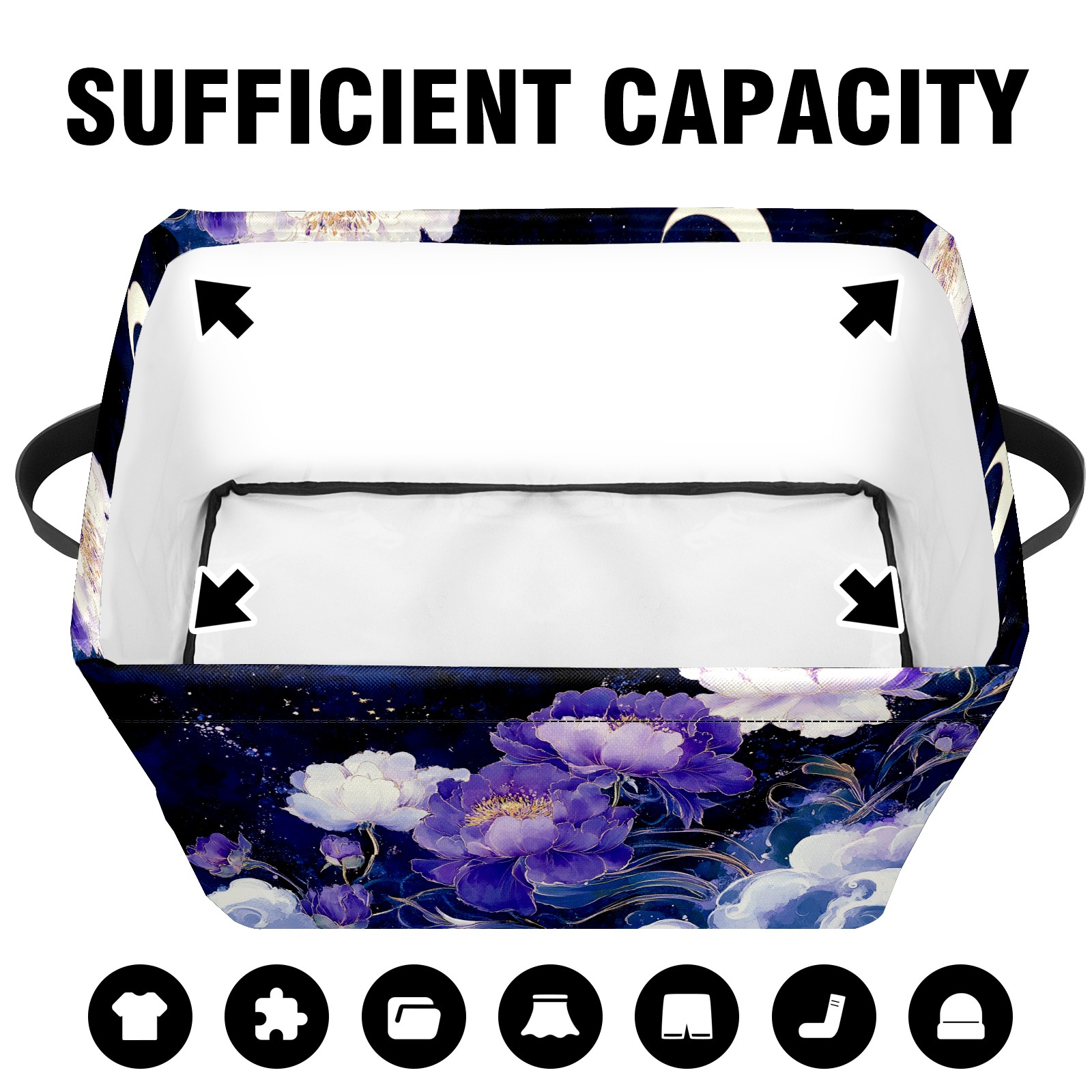 Foldable and Stackable Fabric Storage Basket for Home Organization with Handles, Decorative Closet Bins for Shelves and Laundry Storage( Purple White Floral)