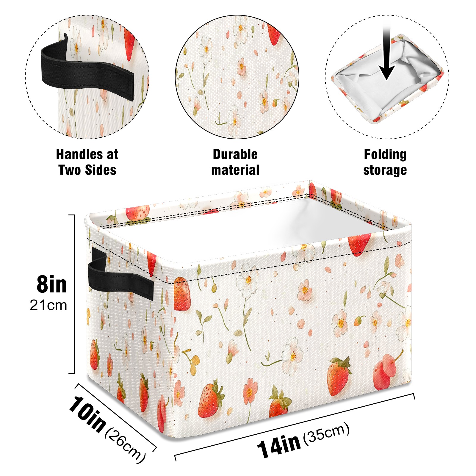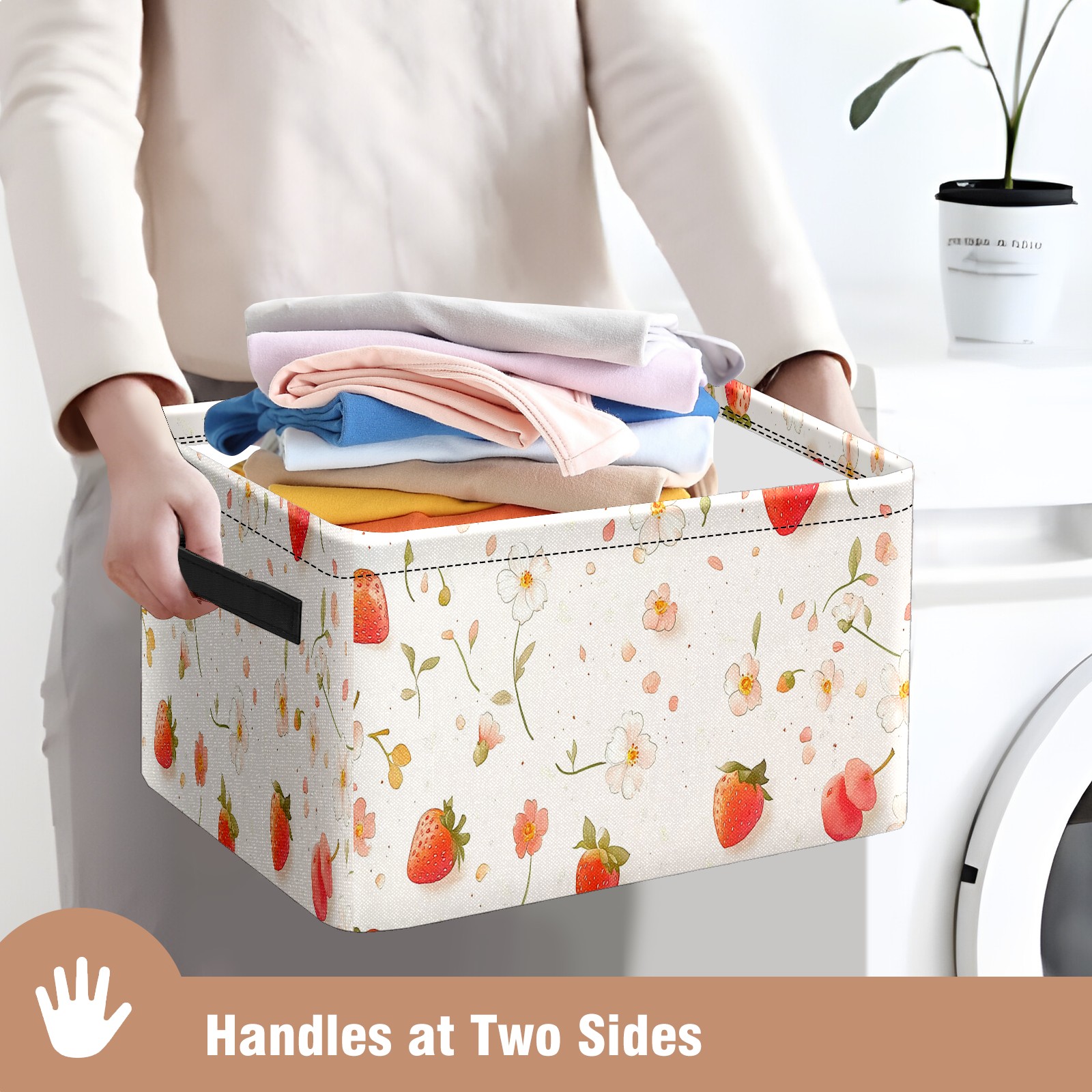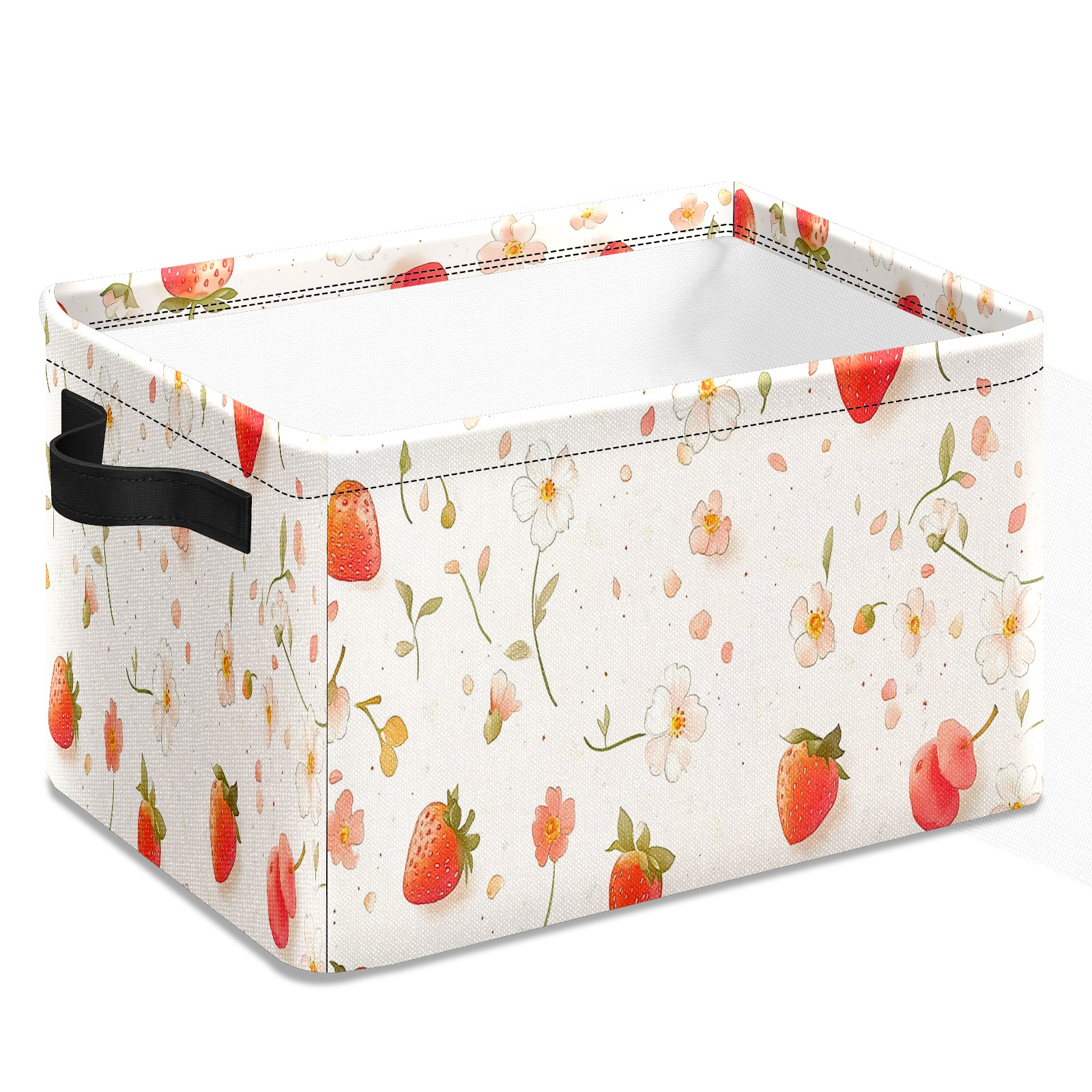 Foldable and Stackable Fabric Storage Basket for Home Organization with Handles, Decorative Closet Bins for Shelves and Laundry Storage( Cute Tiny Strawberry Pattern)