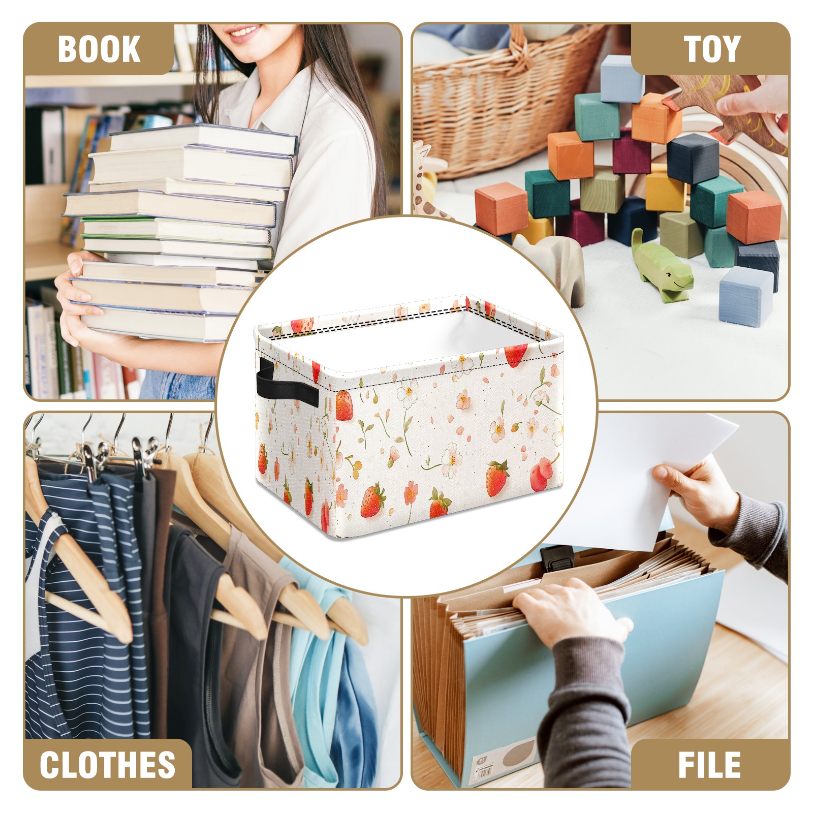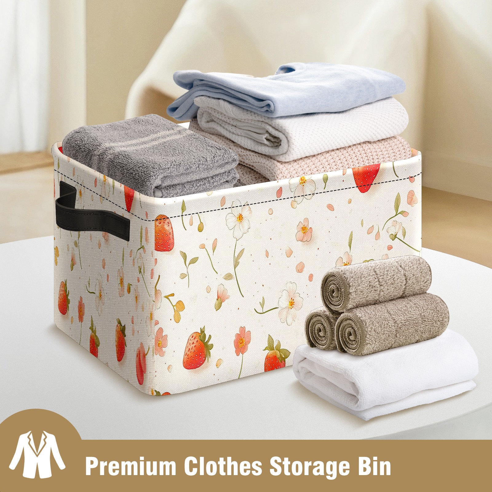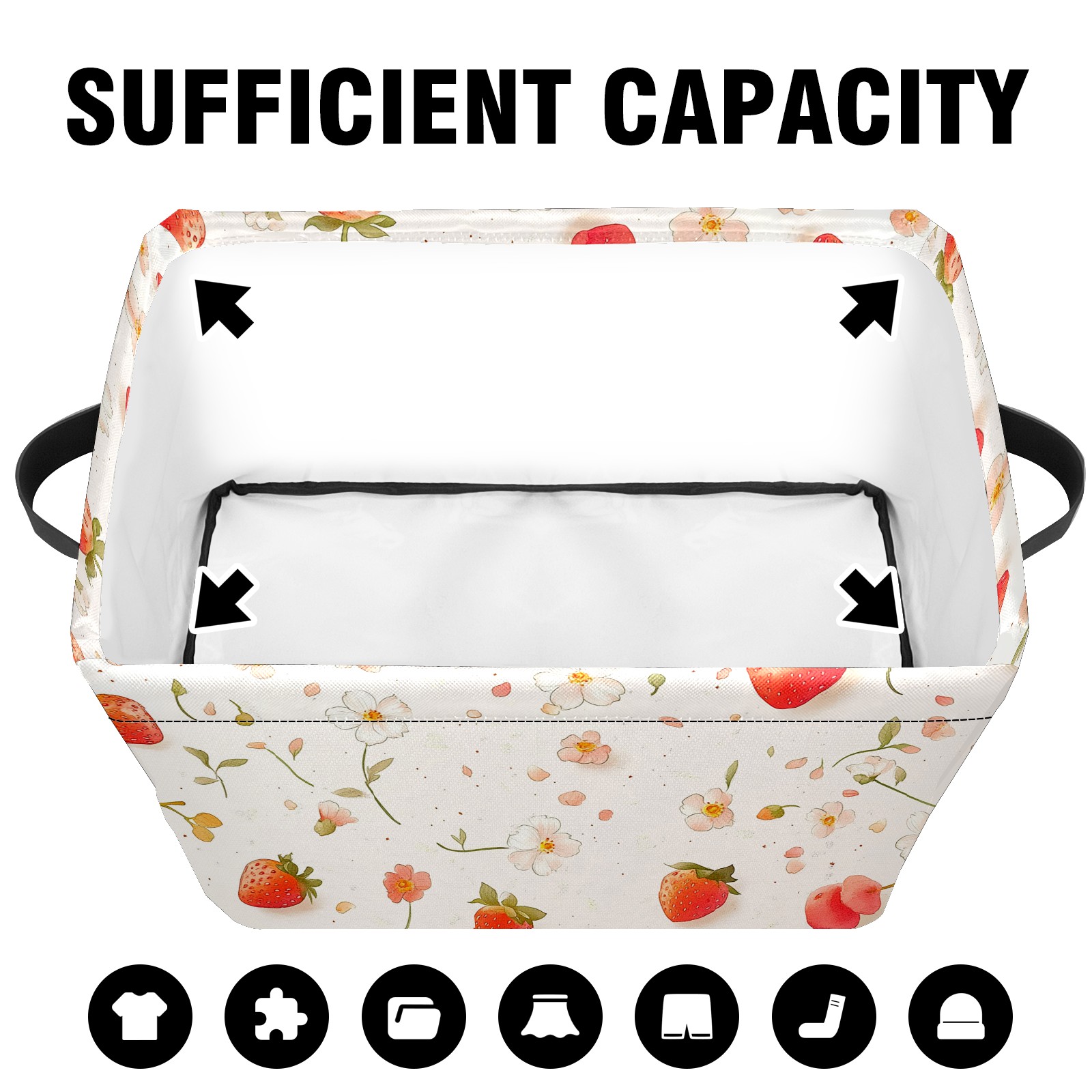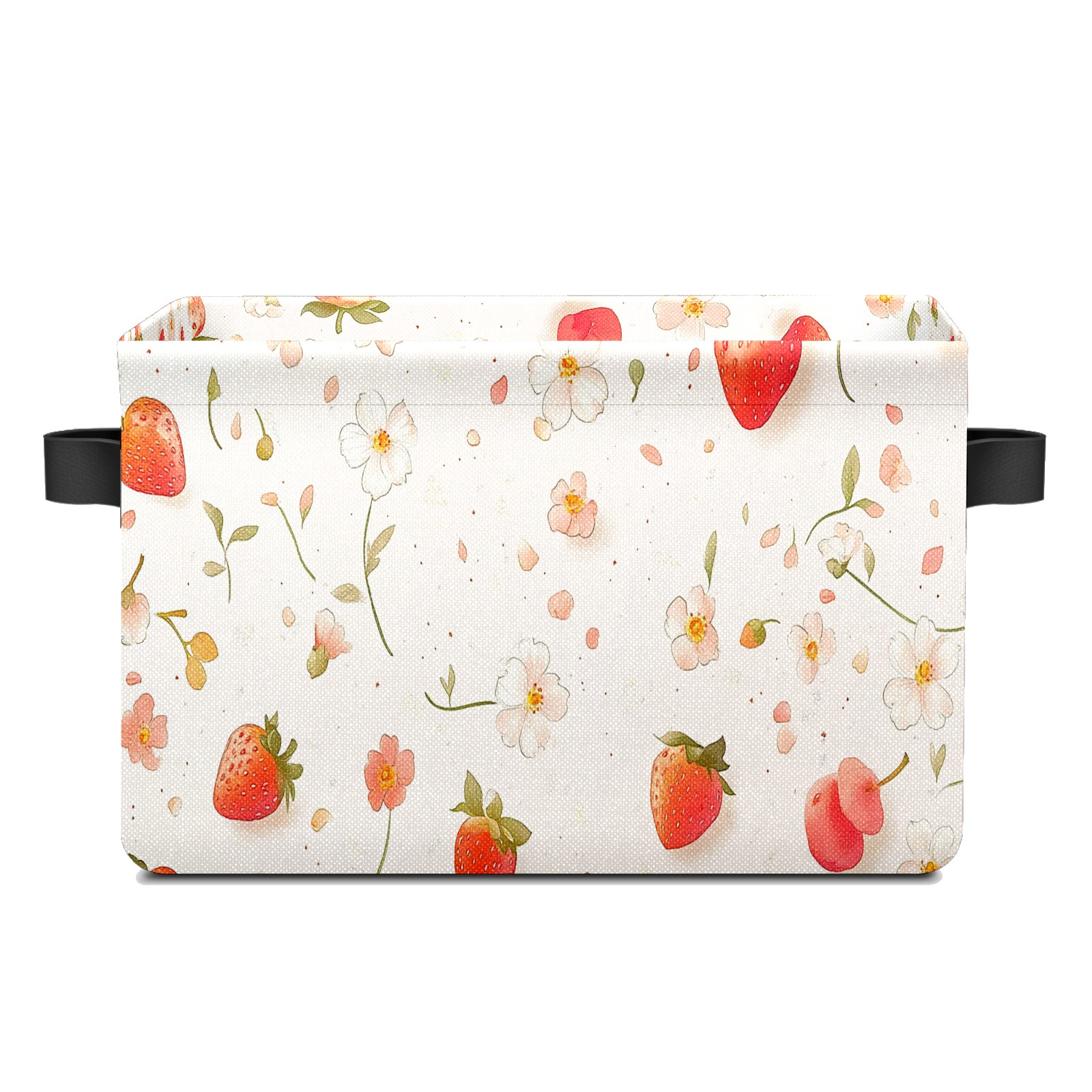 Foldable and Stackable Fabric Storage Basket for Home Organization with Handles, Decorative Closet Bins for Shelves and Laundry Storage( Cute Tiny Strawberry Pattern)