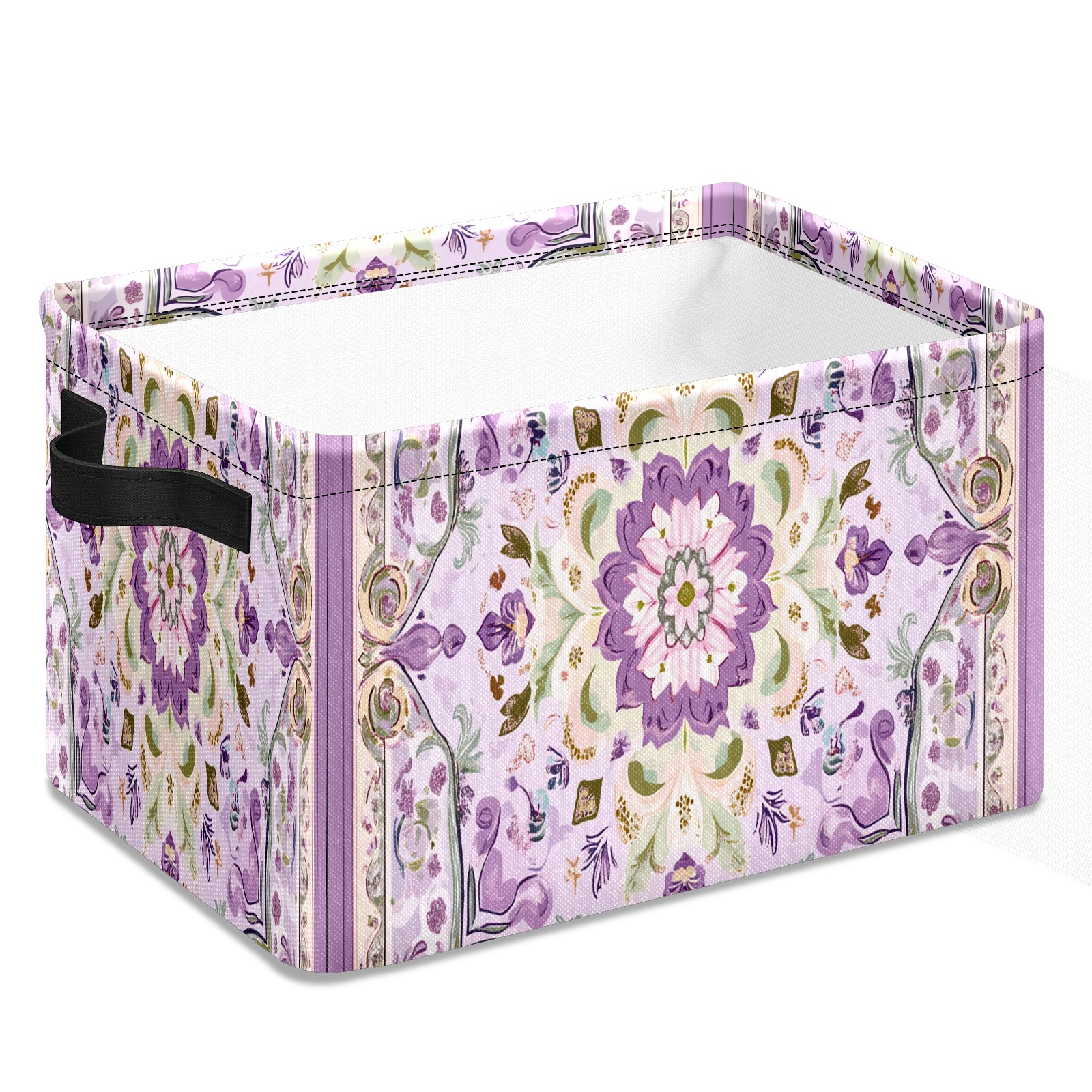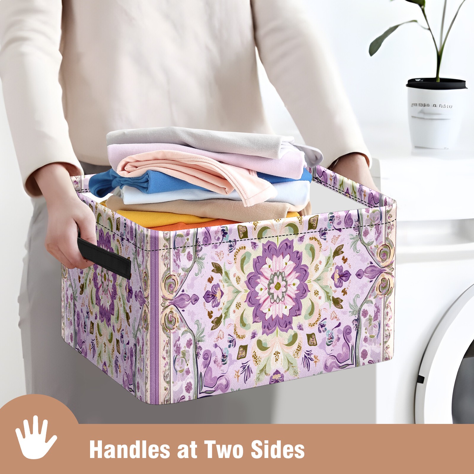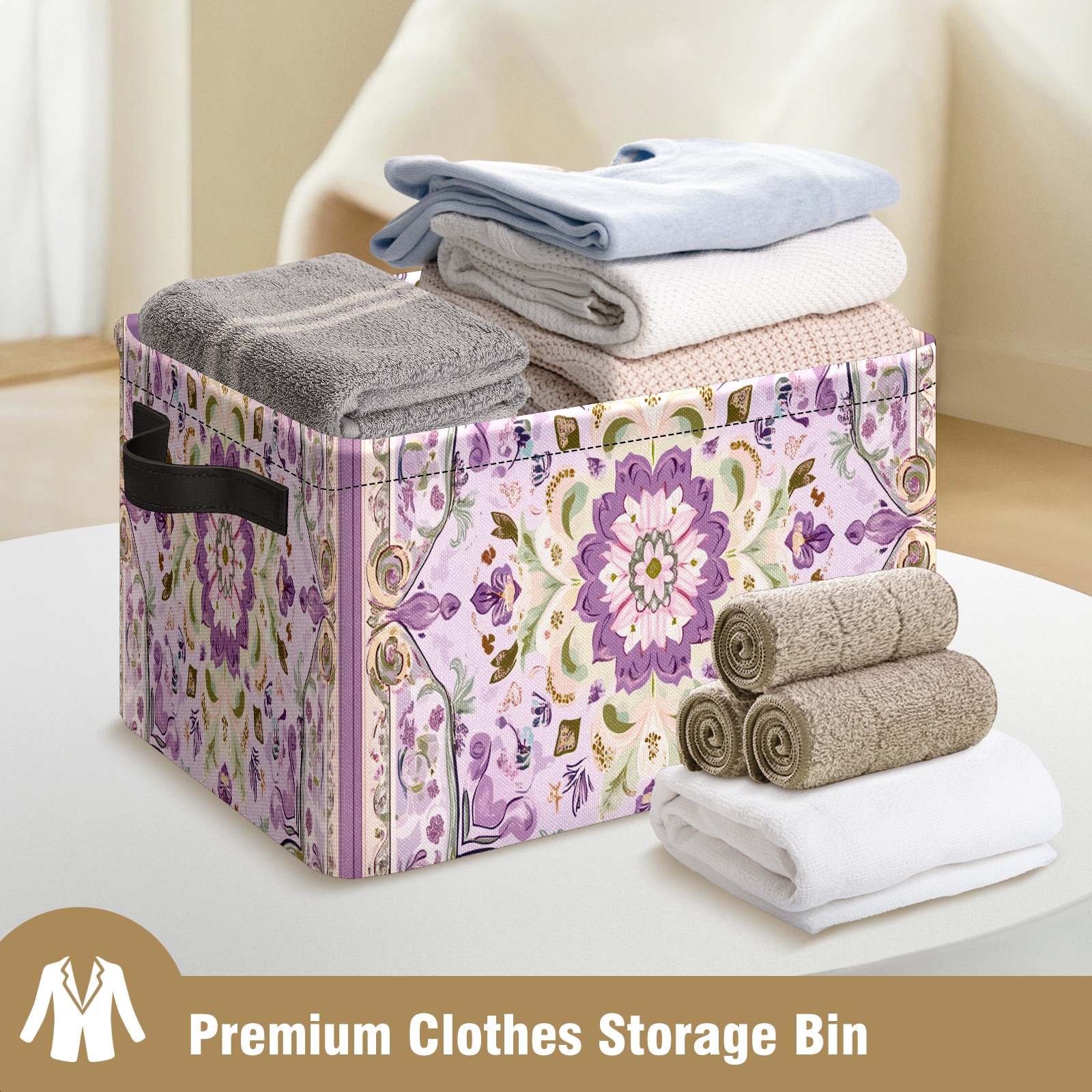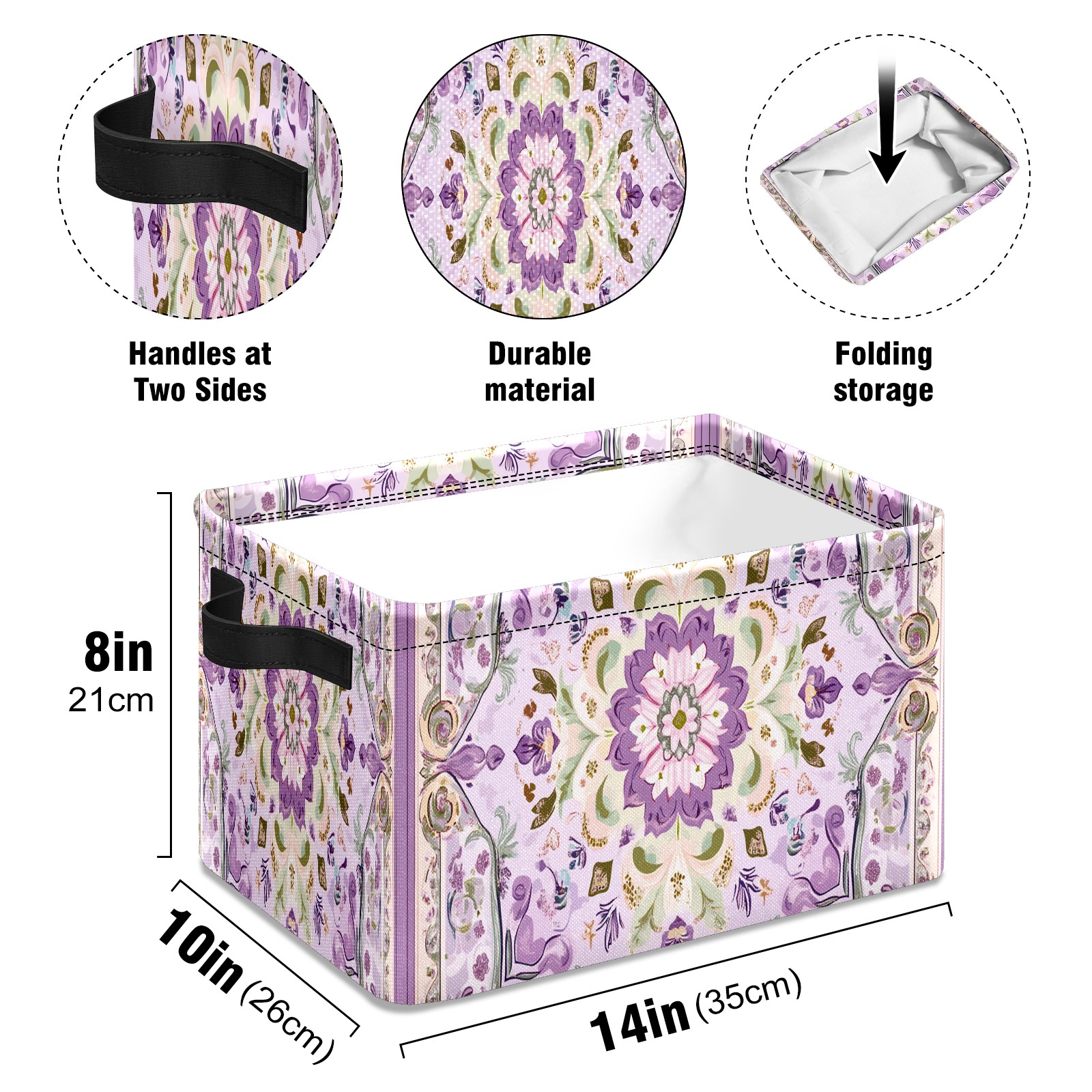 Foldable and Stackable Fabric Storage Basket for Home Organization with Handles, Decorative Closet Bins for Shelves and Laundry Storage( Light Purple Pattern)